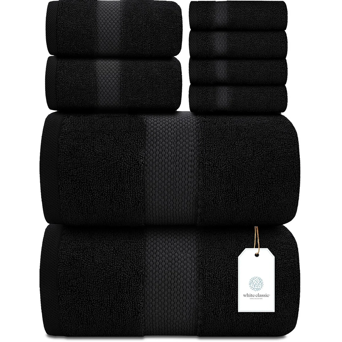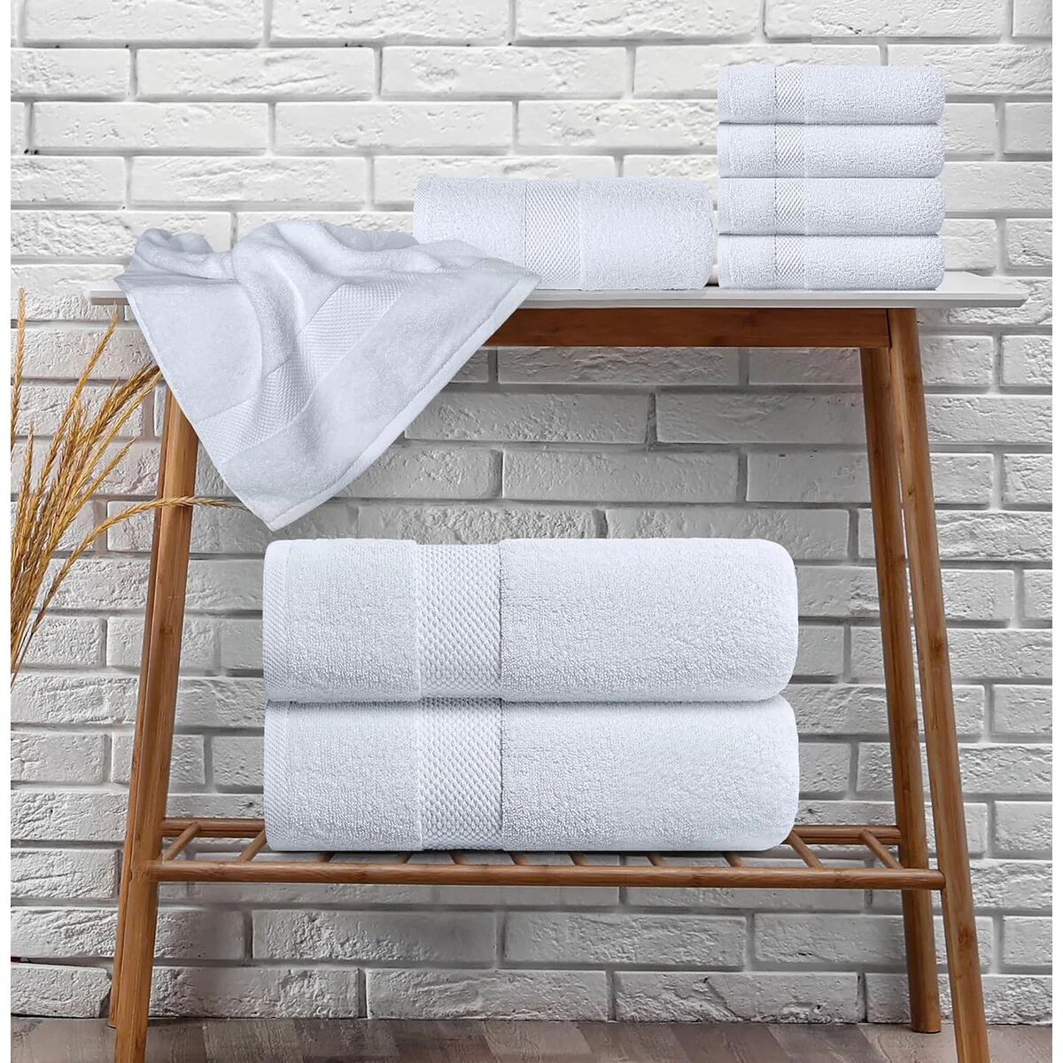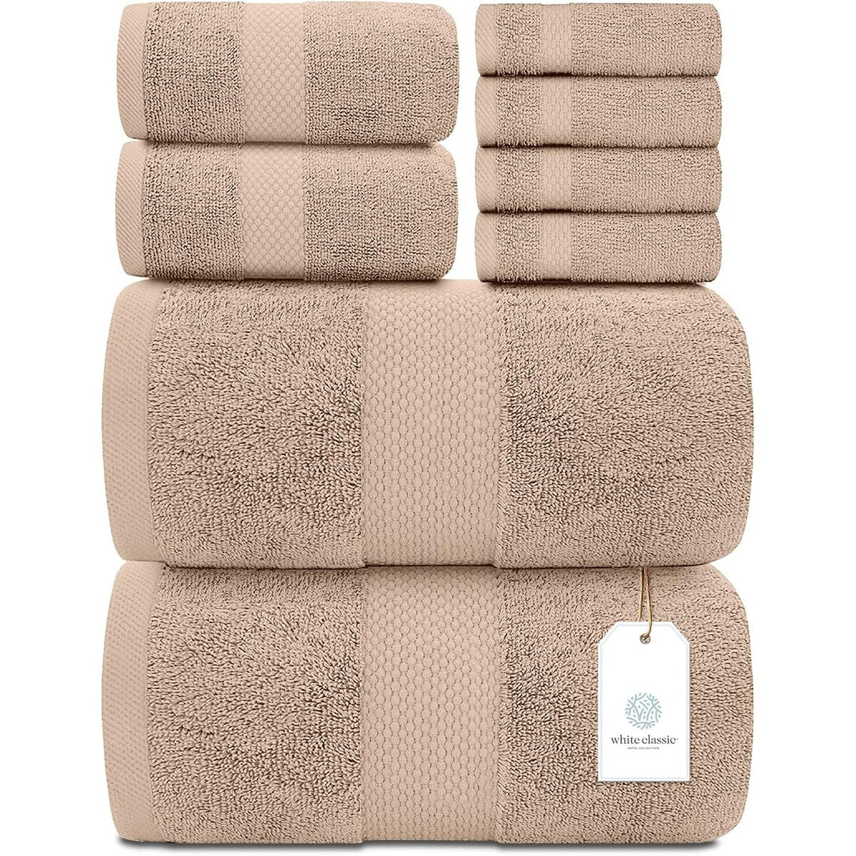 White Classic Luxury Cotton 8Pc Multi Size Towel Set [2 Bath Towels, 2 Hand Towels, 4 Washcloths] - N/A