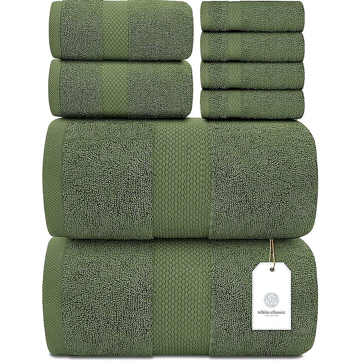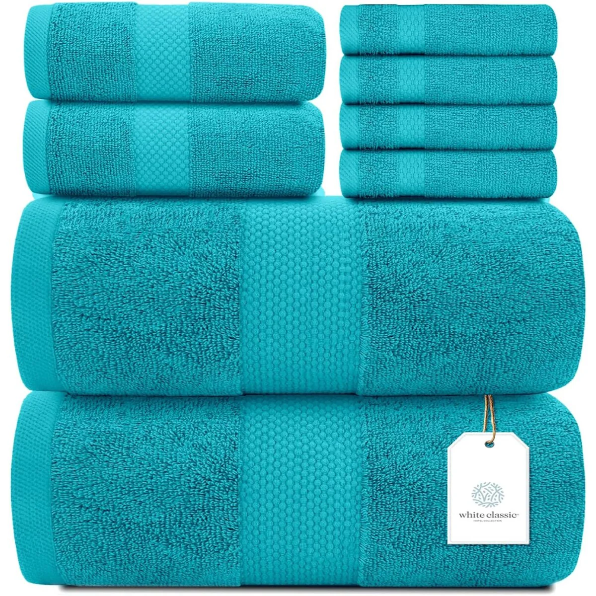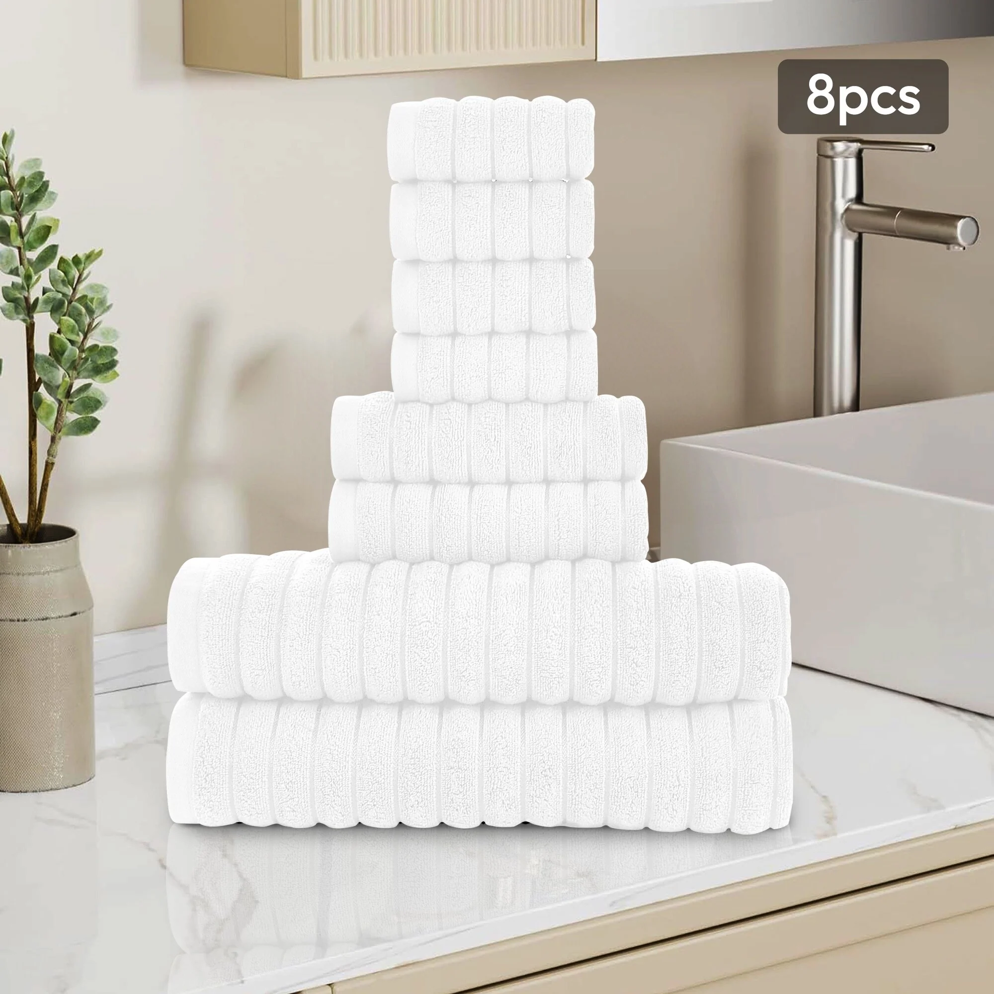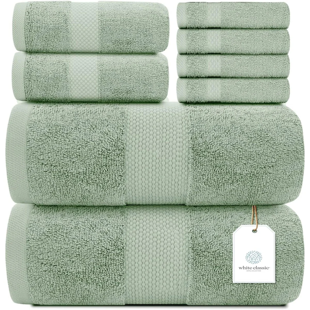 White Classic Luxury Cotton 8Pc Multi Size Towel Set [2 Bath Towels, 2 Hand Towels, 4 Washcloths] - N/A