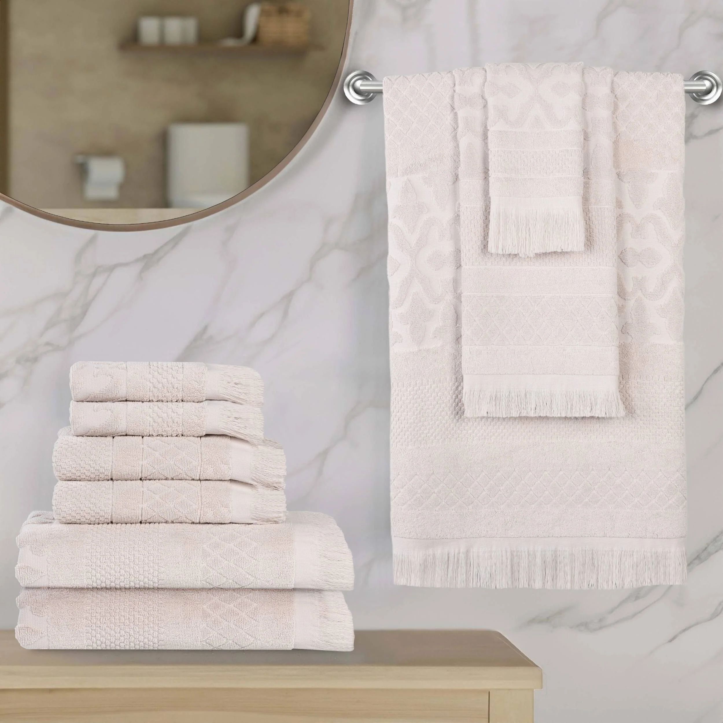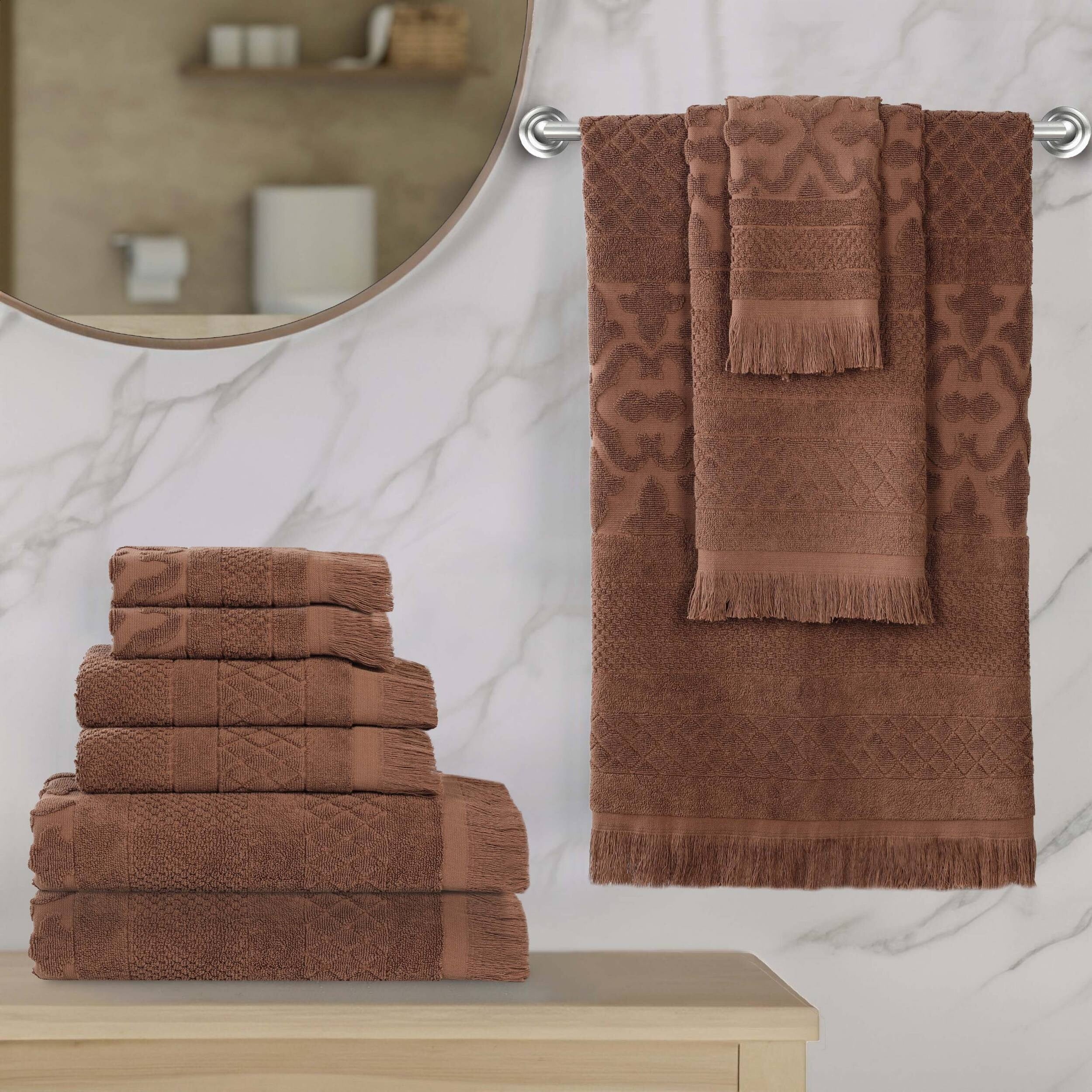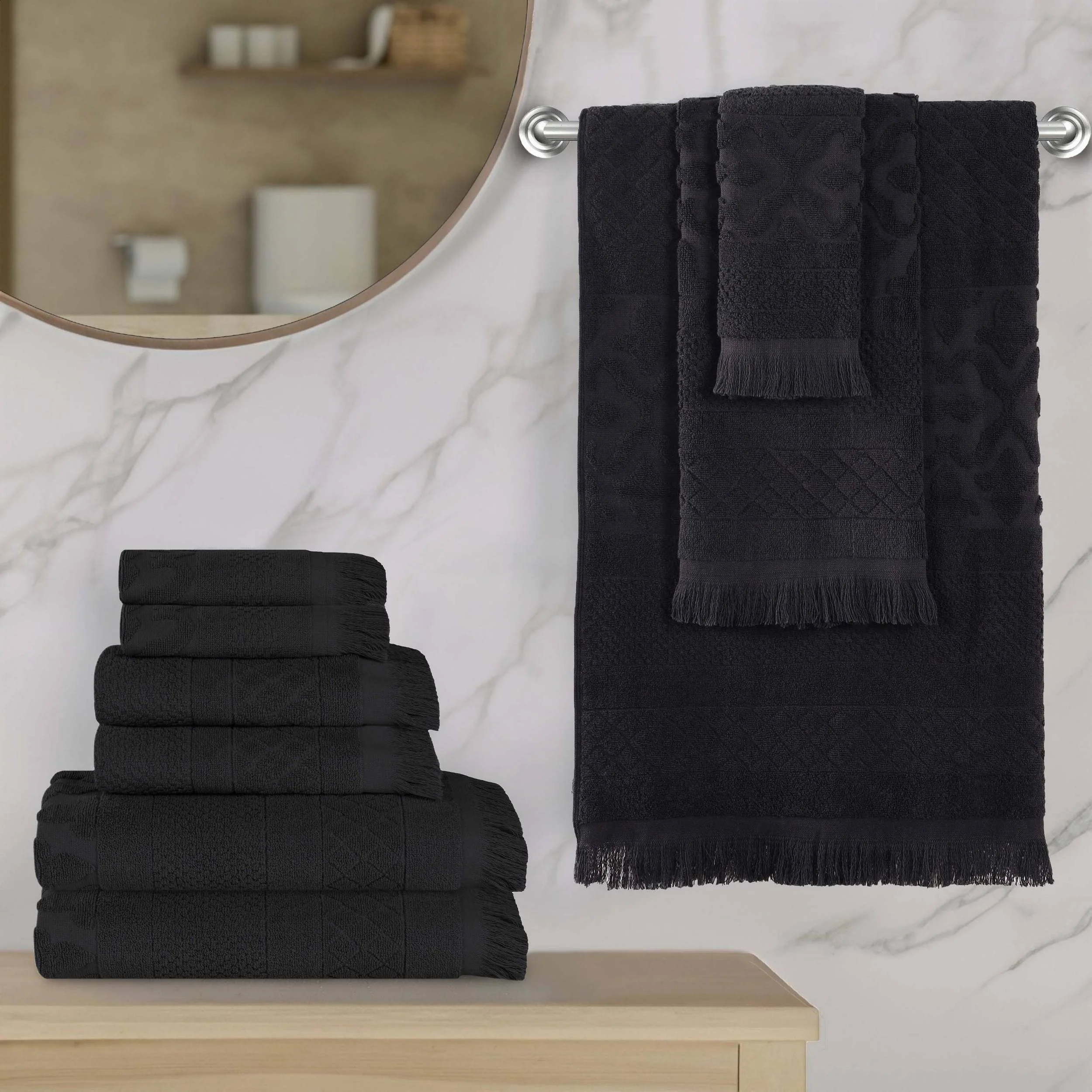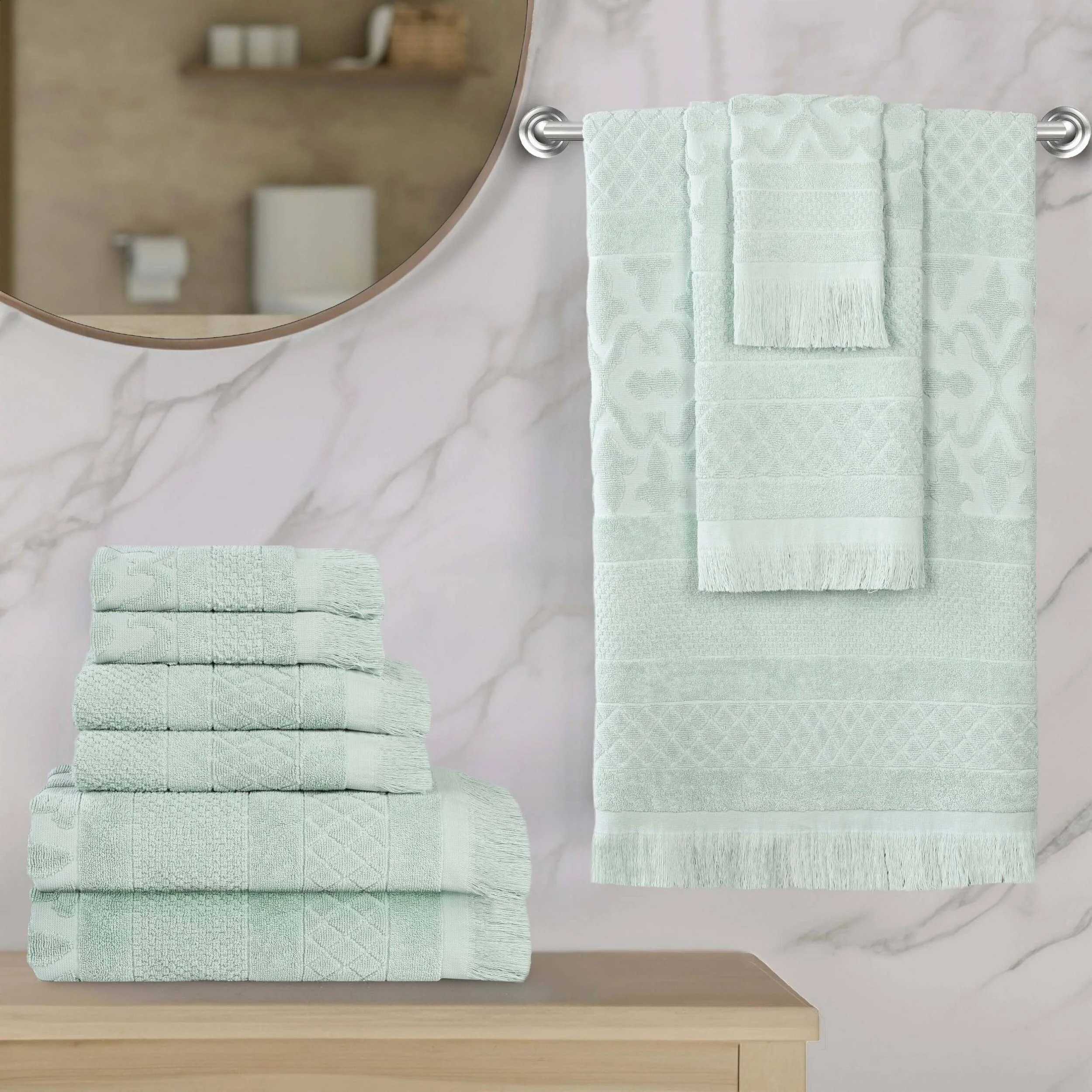 Superior Rolla Cotton Geometric Jacquard Plush Soft 9 Piece Towel Set
