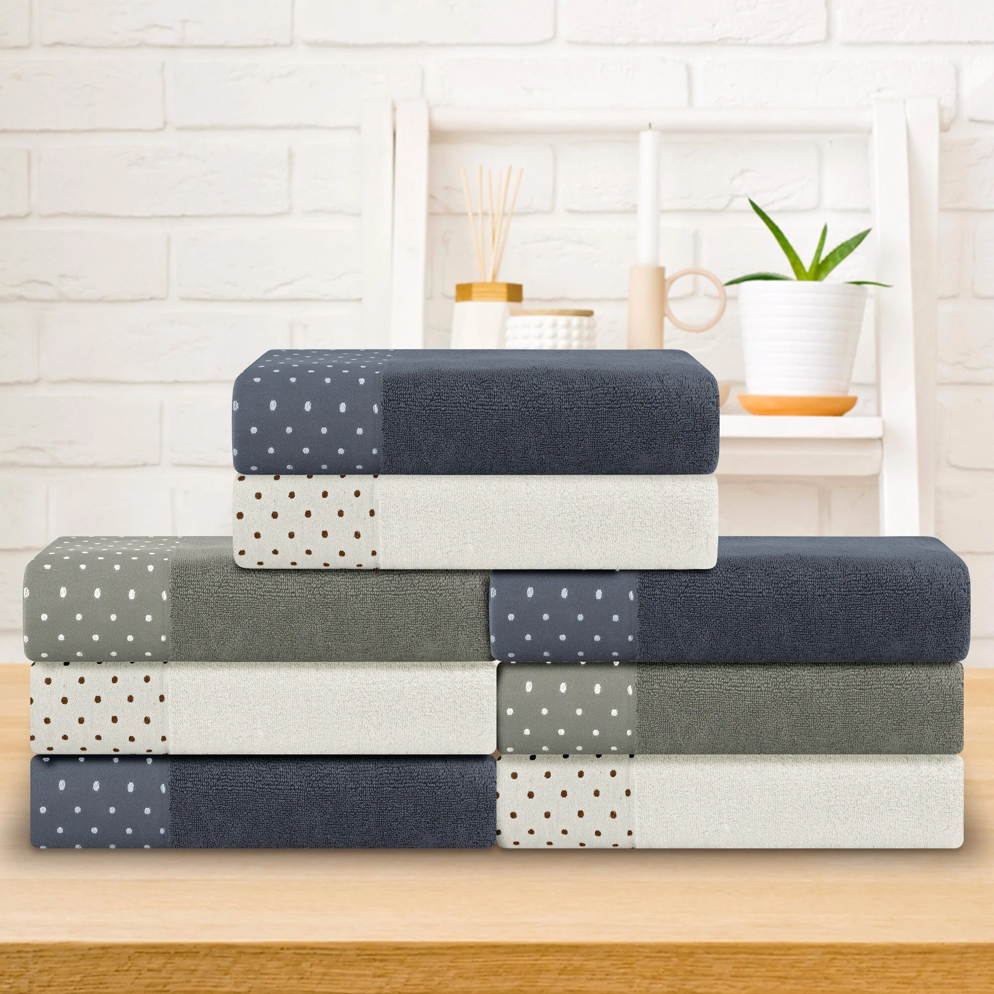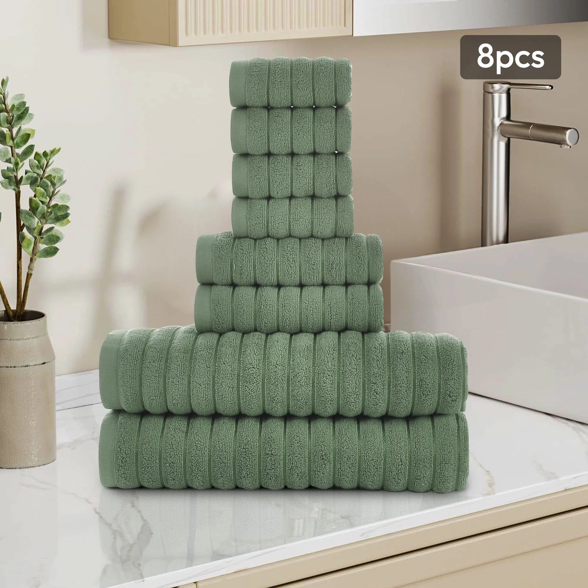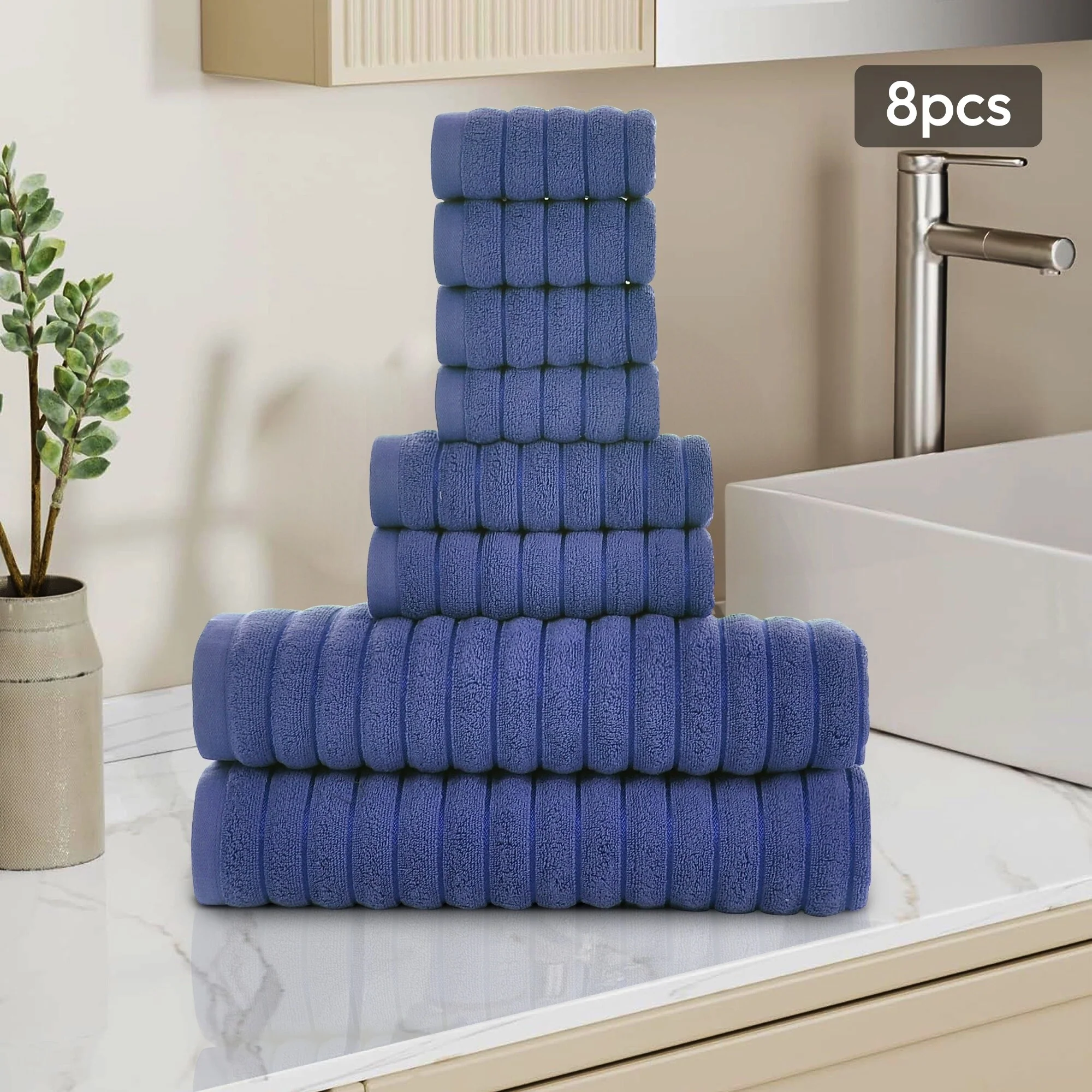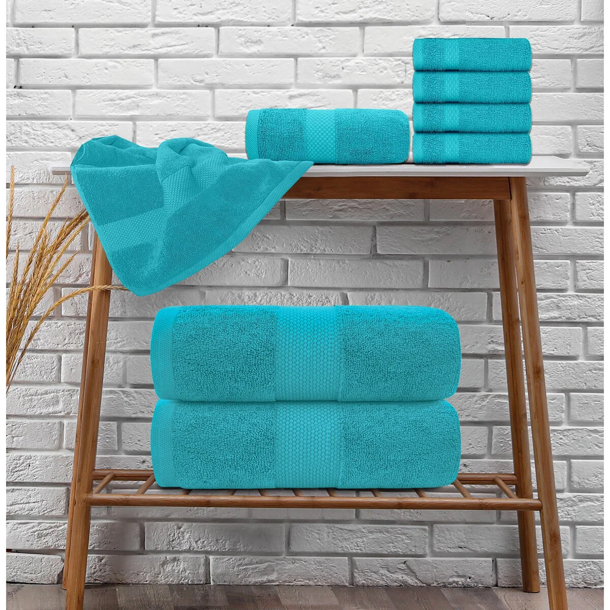 One hundred percent Cotton 8 Piece Antimicrobial Towel Set