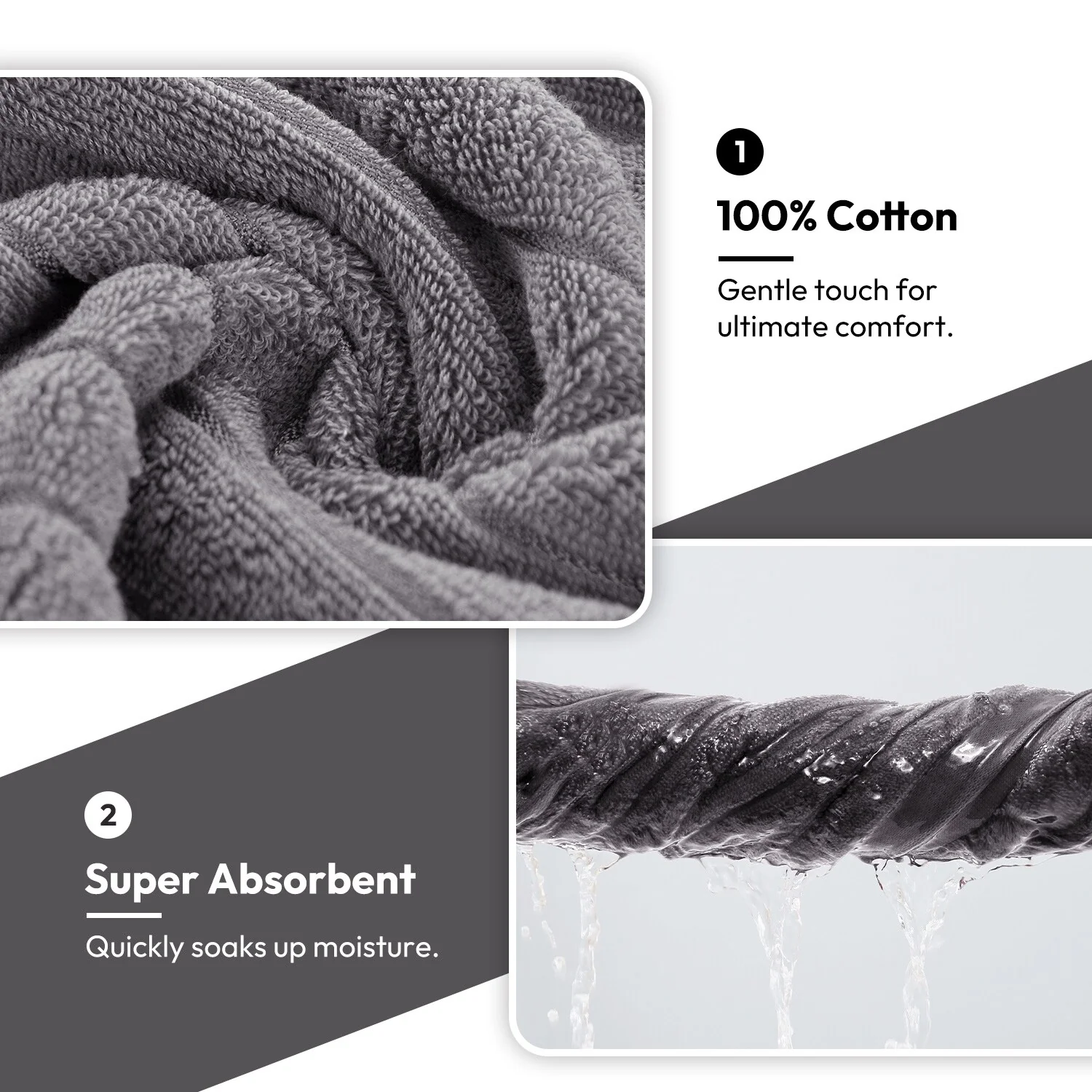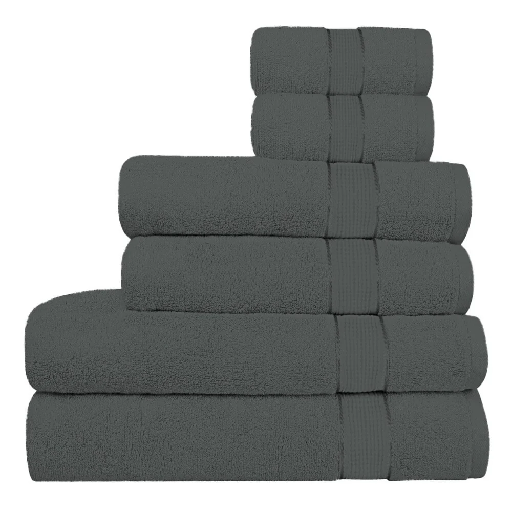 Décor&More BathEssentials 100% Cotton Extra Heavy 6 Piece Bath Towel Set - Grey