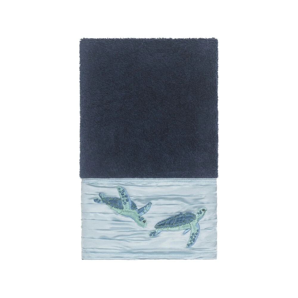Authentic Hotel and Spa Turkish Cotton Turtles Embroidered Midnight Blue 3-piece Towel Set