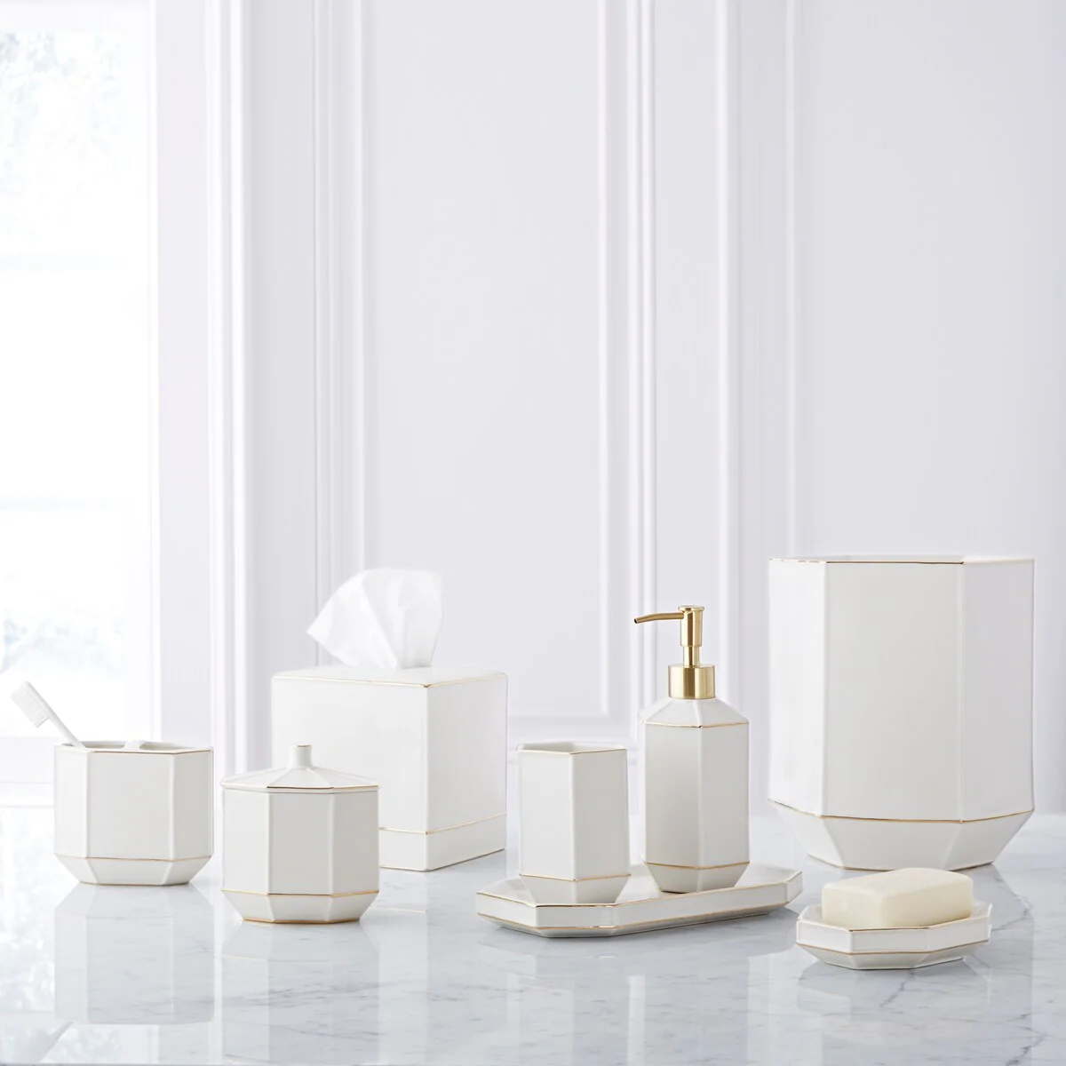 Roksana White Marble Bath Accessories, Set of 4