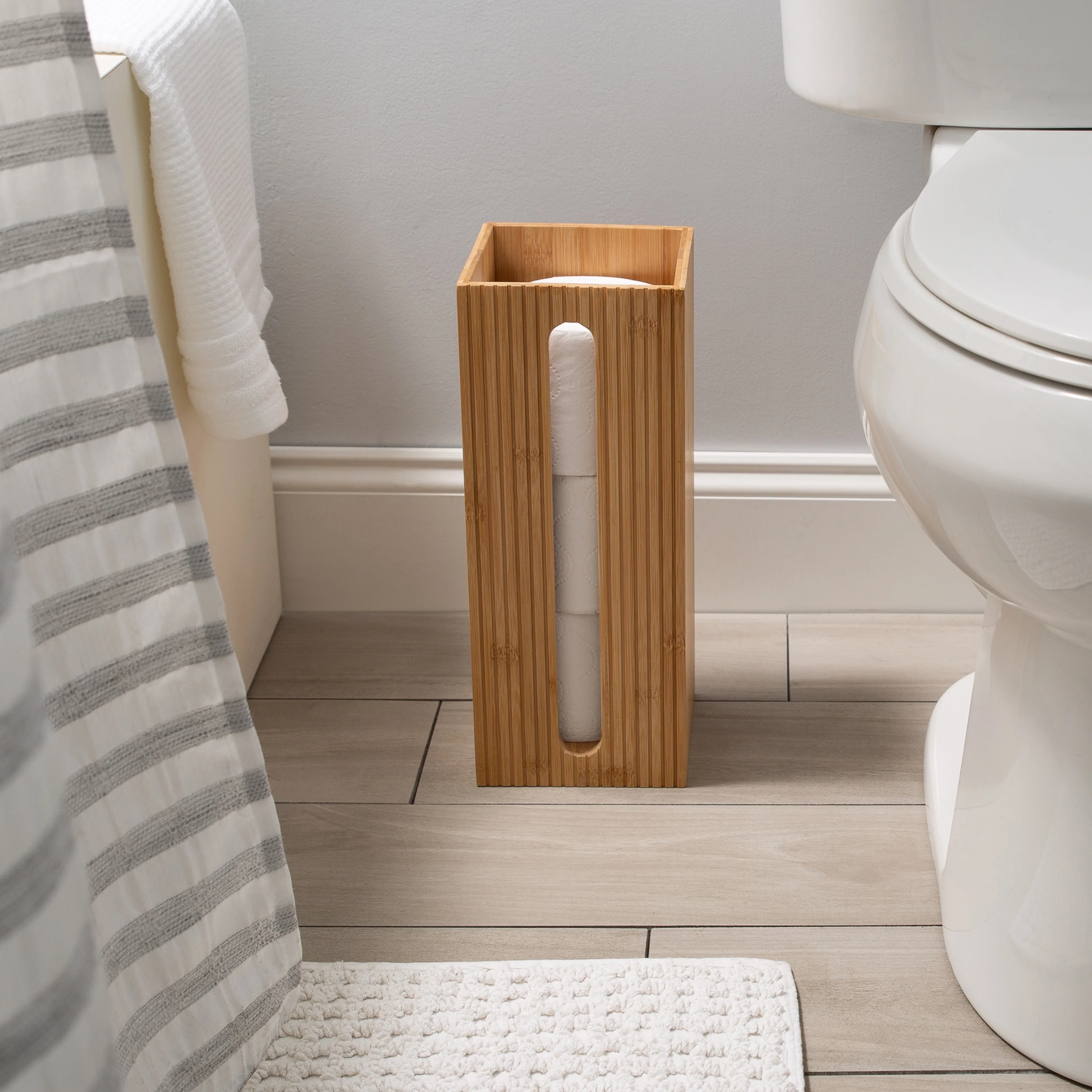 Bath Bliss Bamboo Square Oslo Brush and Toilet Paper Holder Set