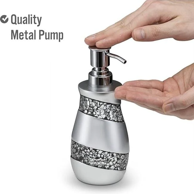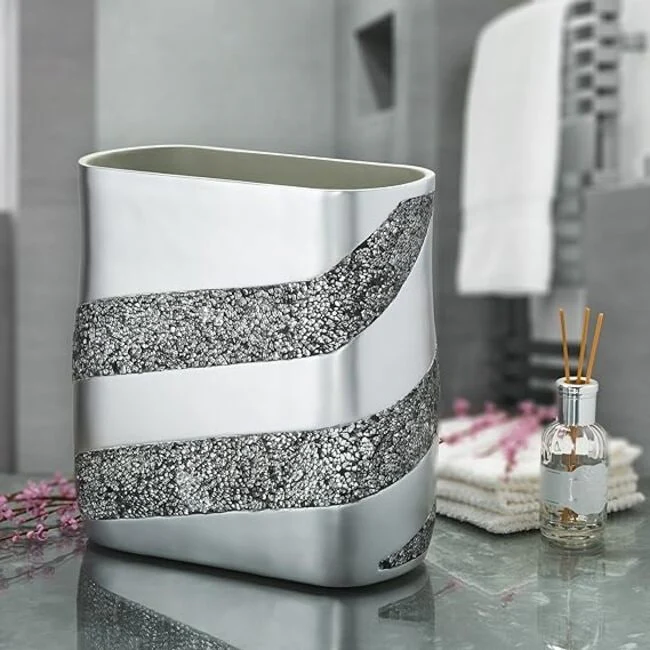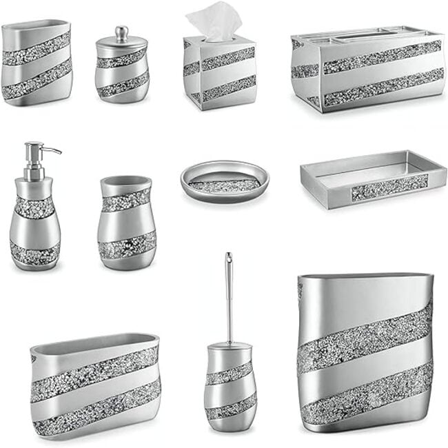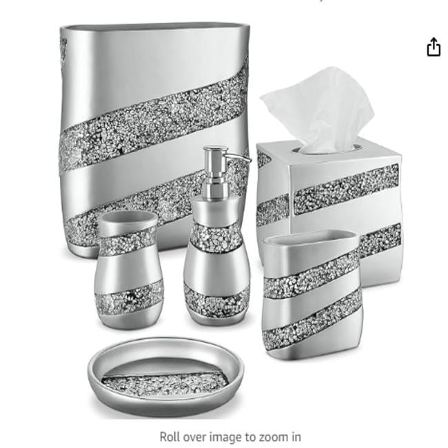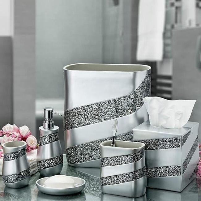 Creative Scents Mosaic Glass Silver Bathroom Accessories Set of 6 - Gray