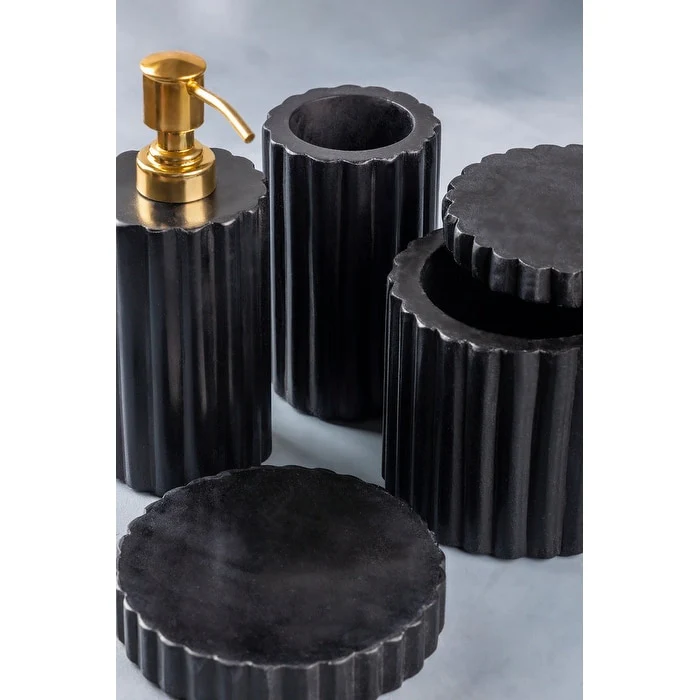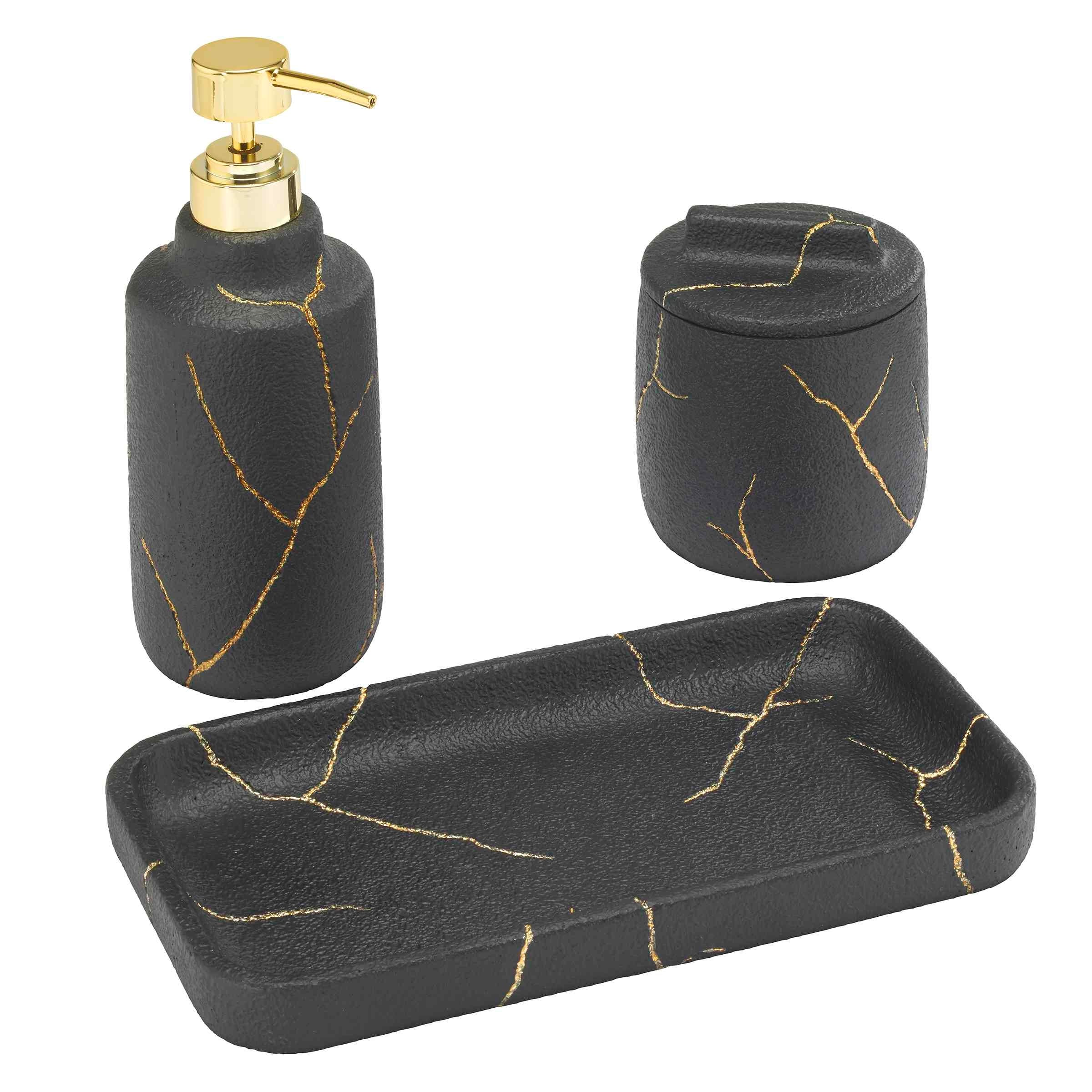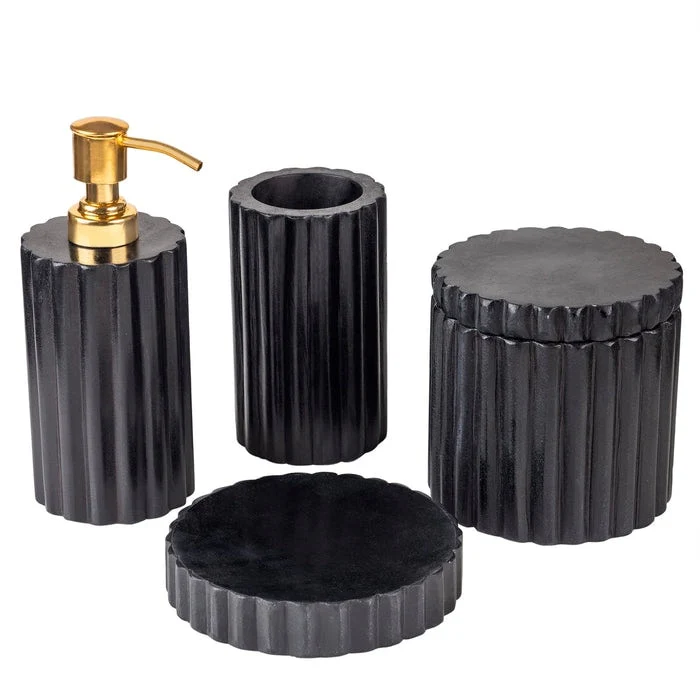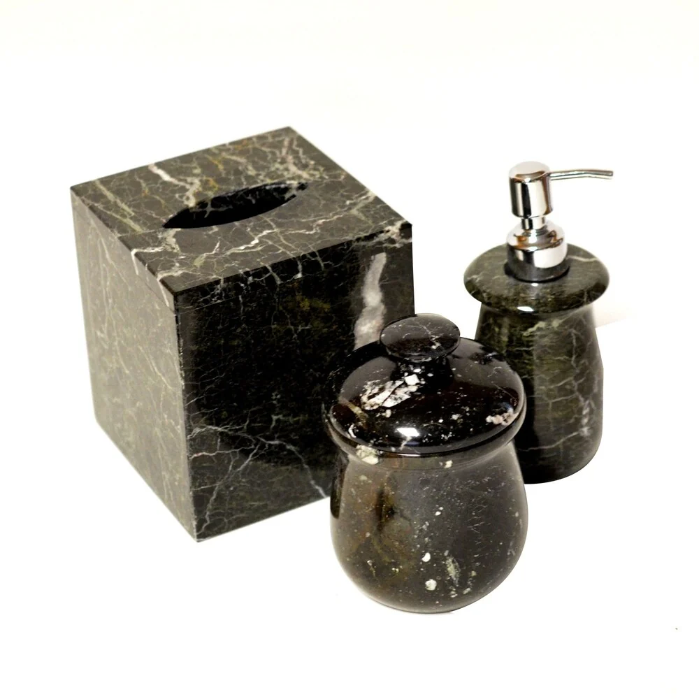 Polished Marble 3-Piece Bath Set, Black Zebra, Shower and Bathroom Accessory