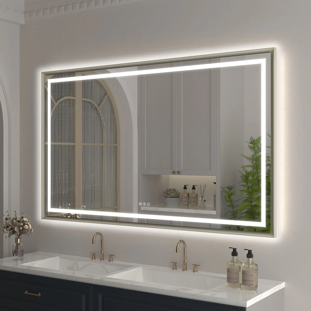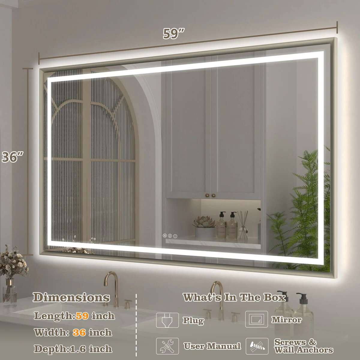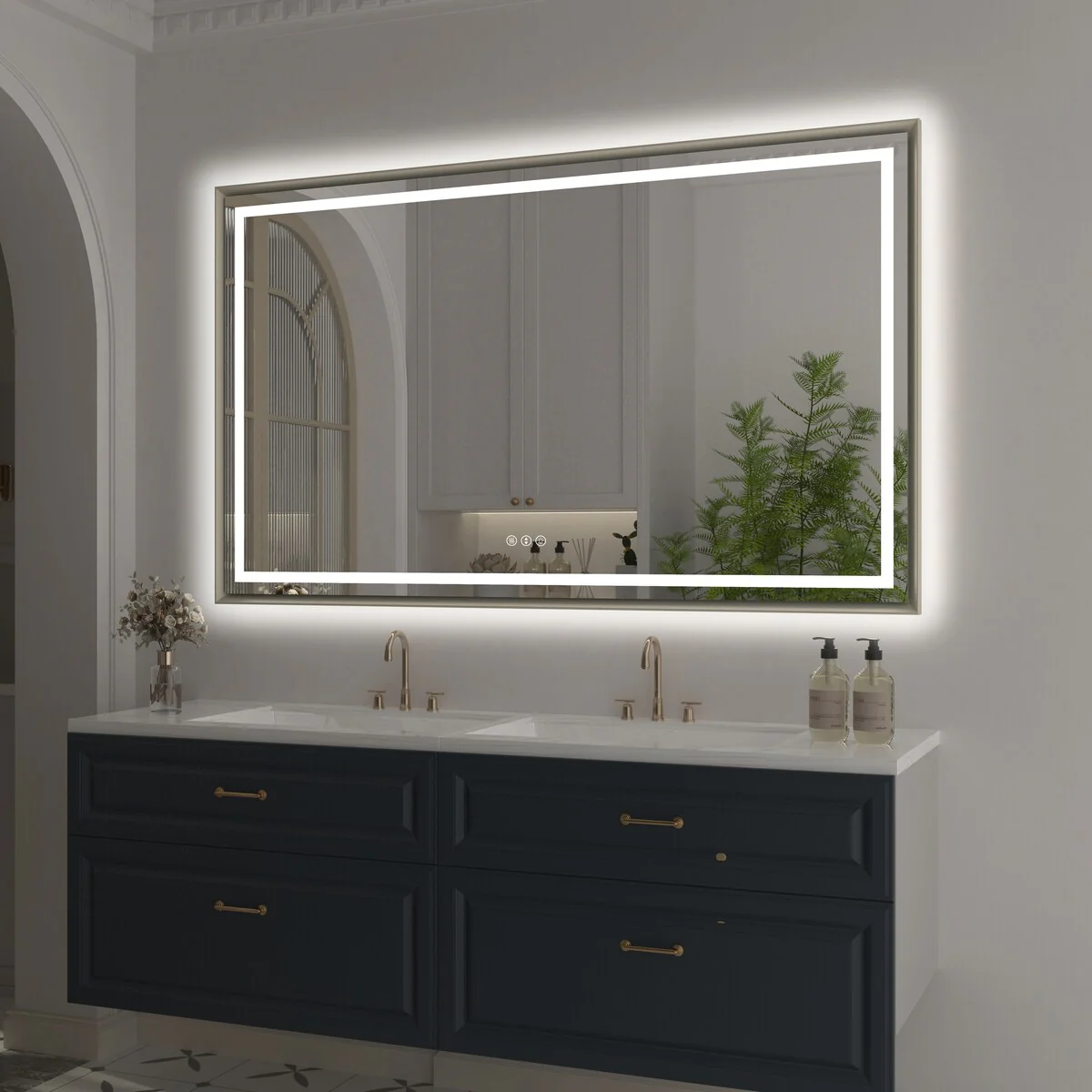 60 in. W x 36 in. H Aluminum Slope Framed Backlit Front Light LED Bathroom Vanity Mirror in Champagne Gold - 60 in. W x 36 in. H