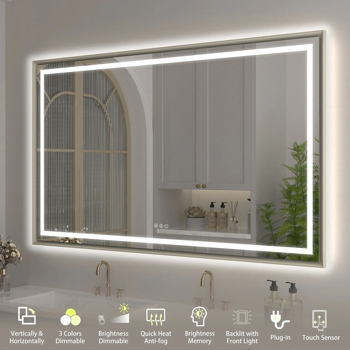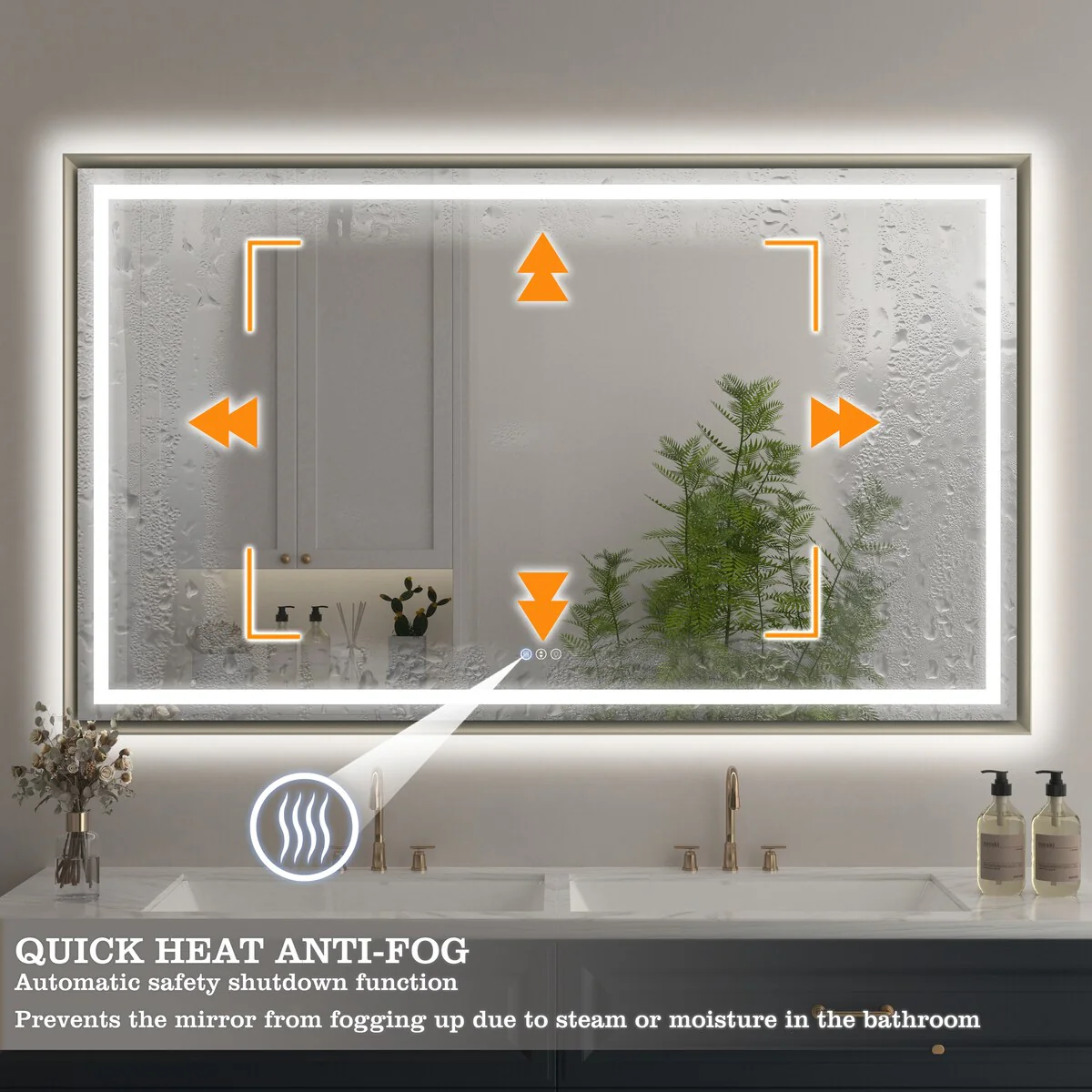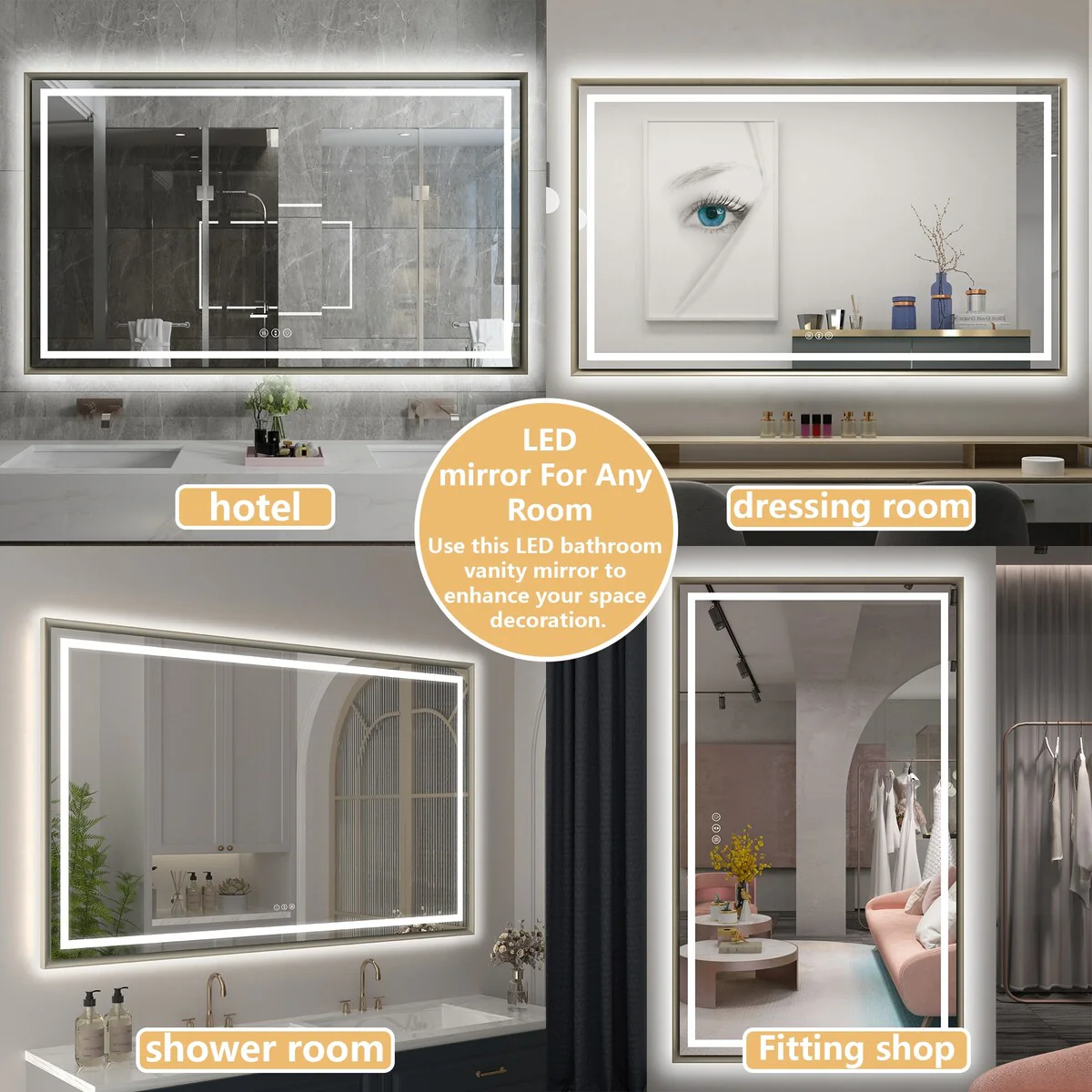 60 in. W x 36 in. H Aluminum Slope Framed Backlit Front Light LED Bathroom Vanity Mirror in Champagne Gold - 60 in. W x 36 in. H