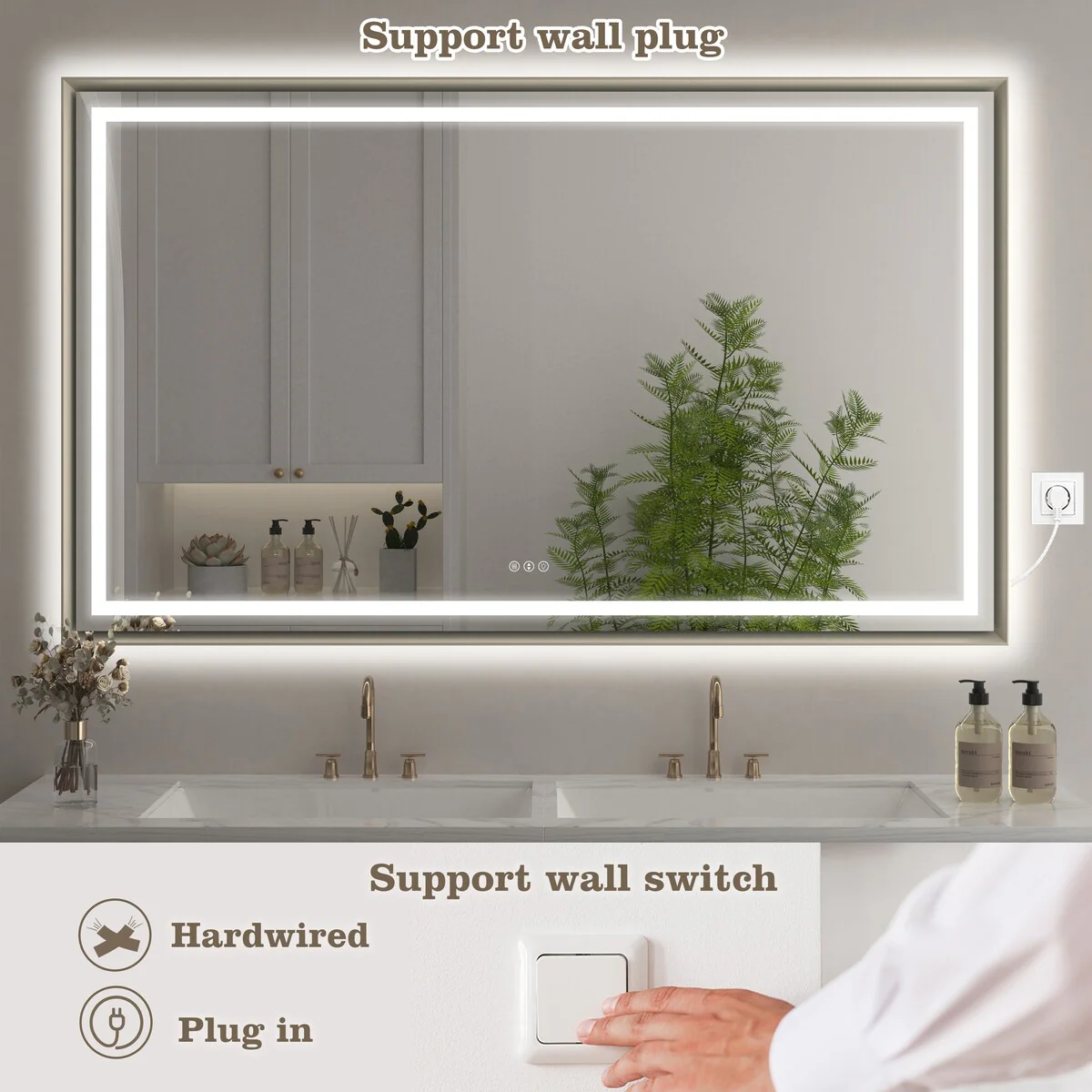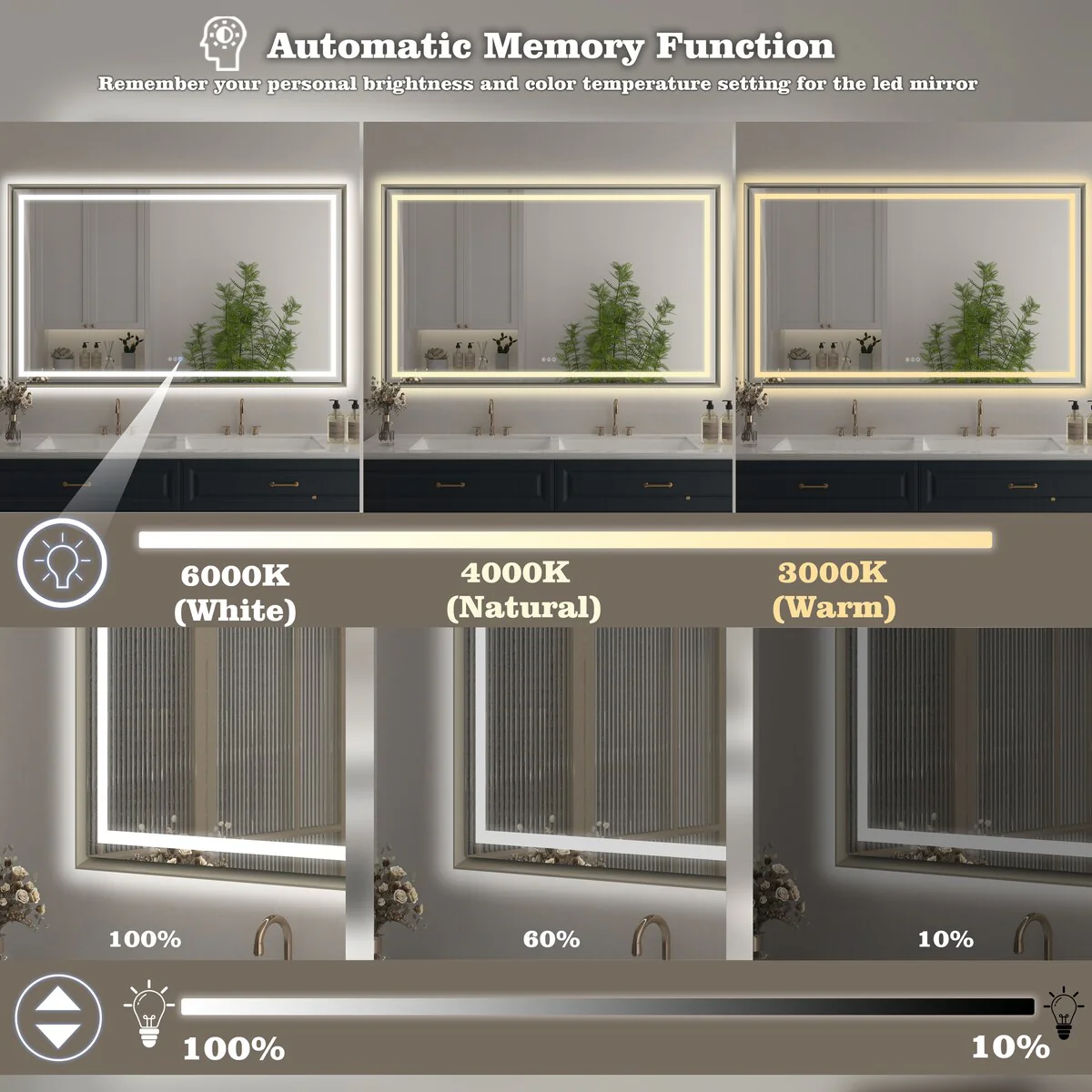 72 in. W x 36 in. H Large Rectangular Frameless Anti-Fog LED Light Wall Mounted Bathroom Vanity Mirror in White