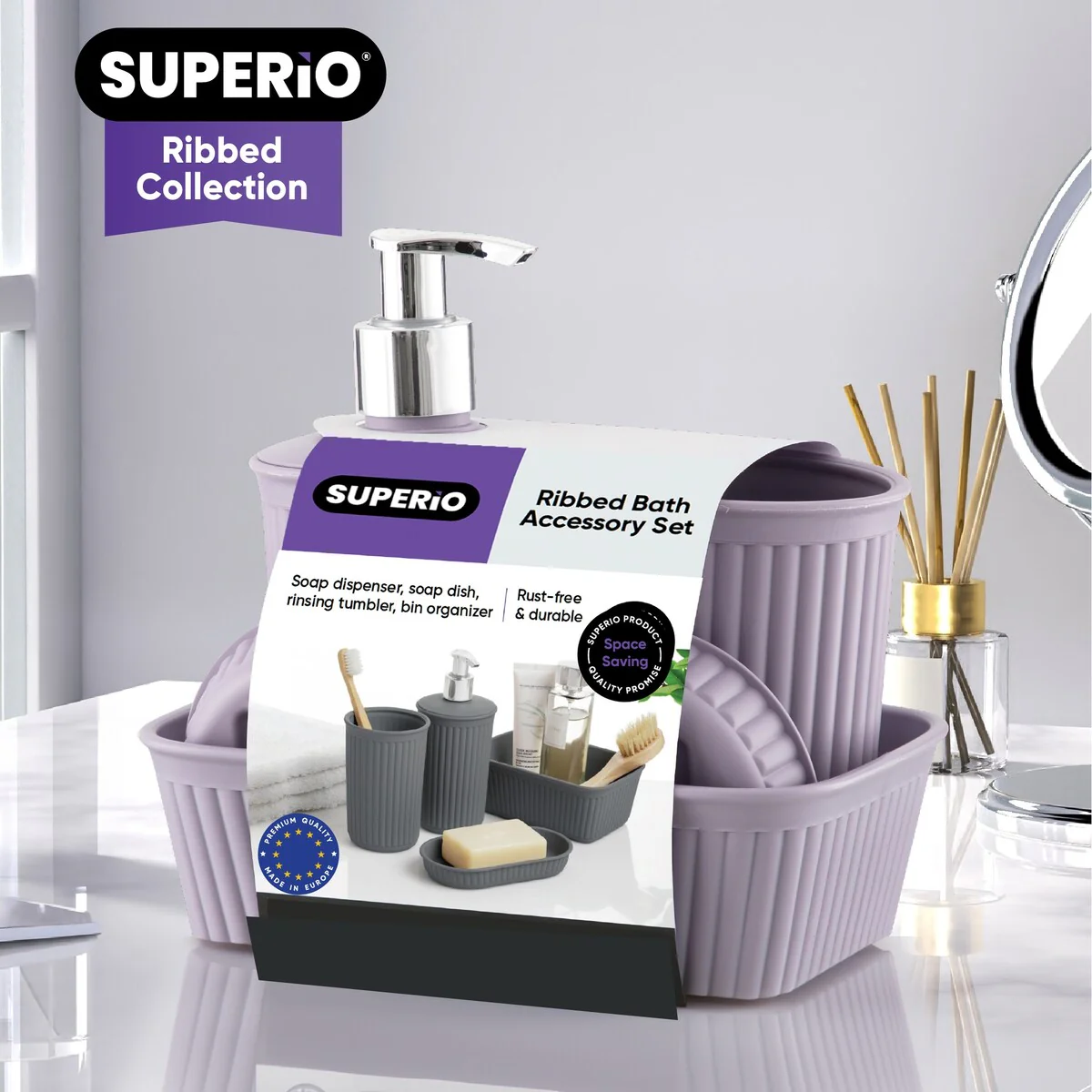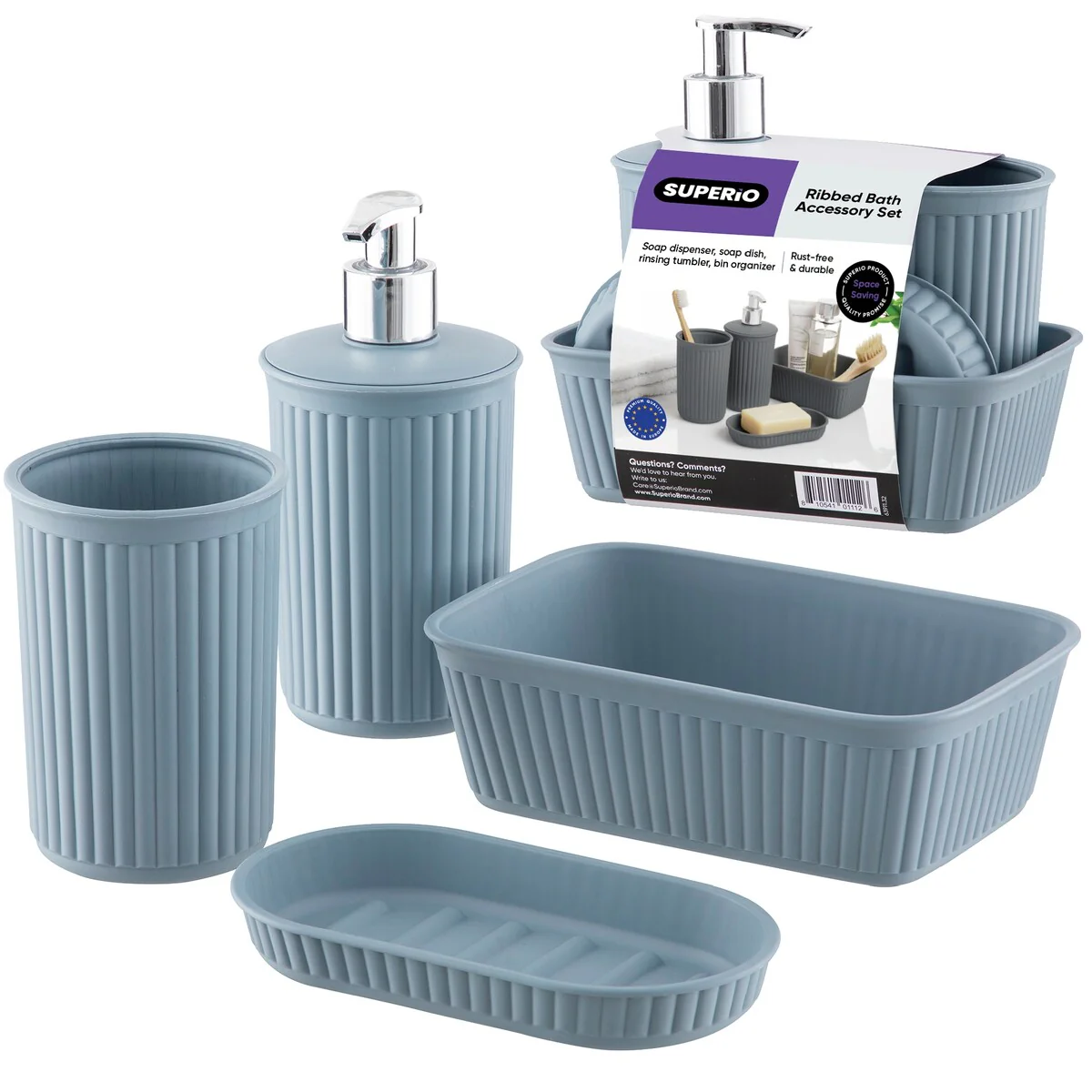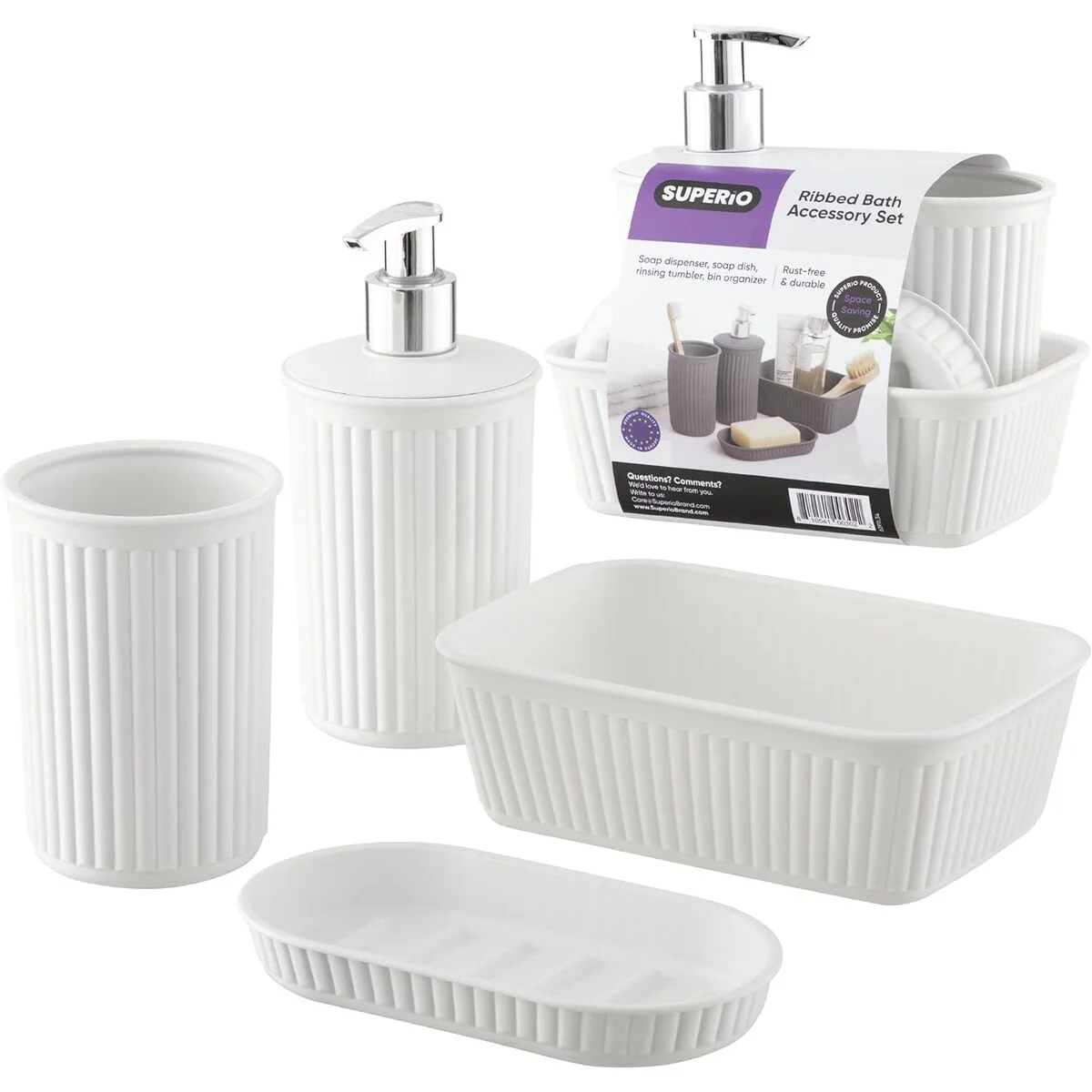 Superio Ribbed Bathroom Accessory Set, 4 pack - 6.34"W x 4.41"D x 6.54"H