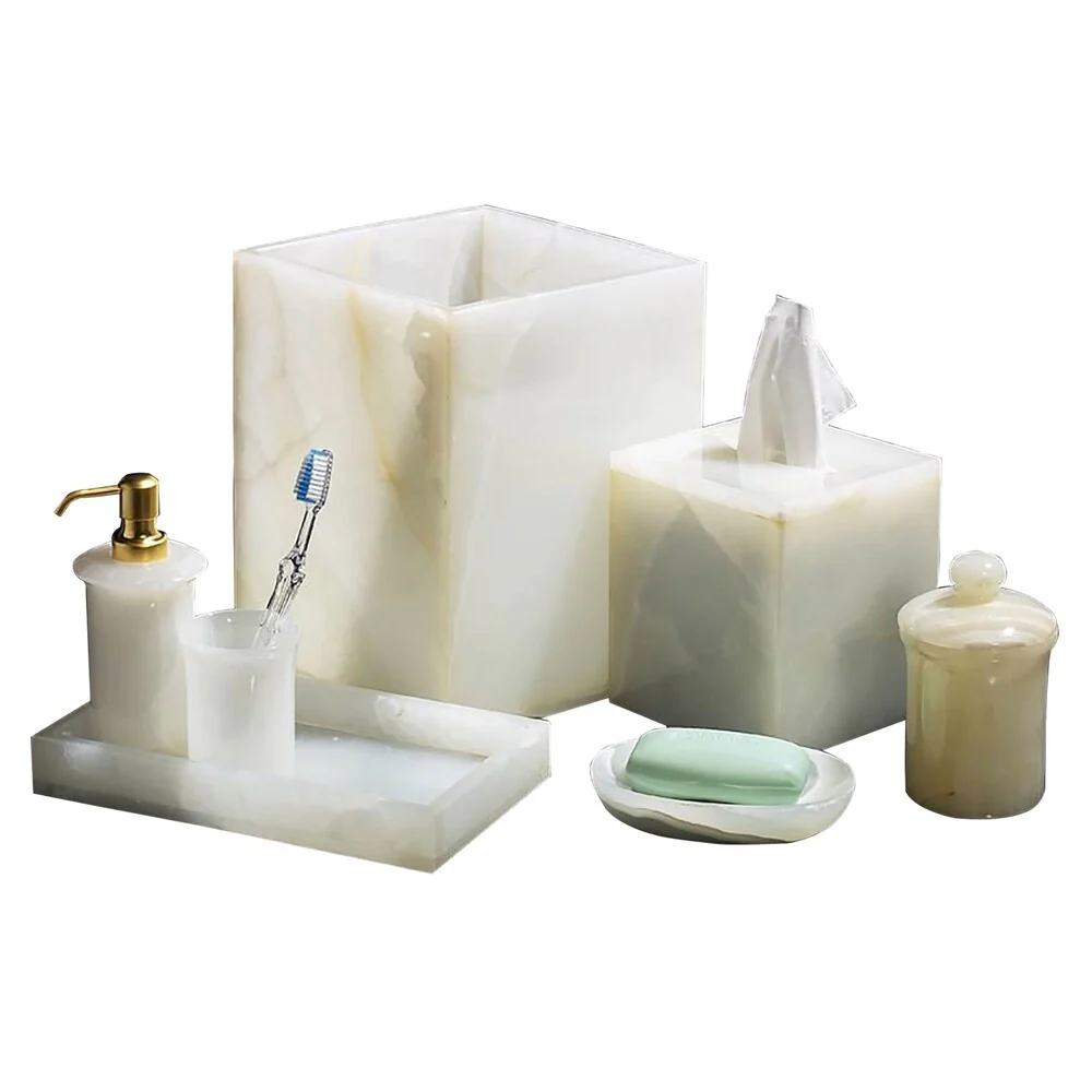 Polished Marble 7-Piece Bath Set, Pearl Onyx, Shower and Bathroom Accessory
