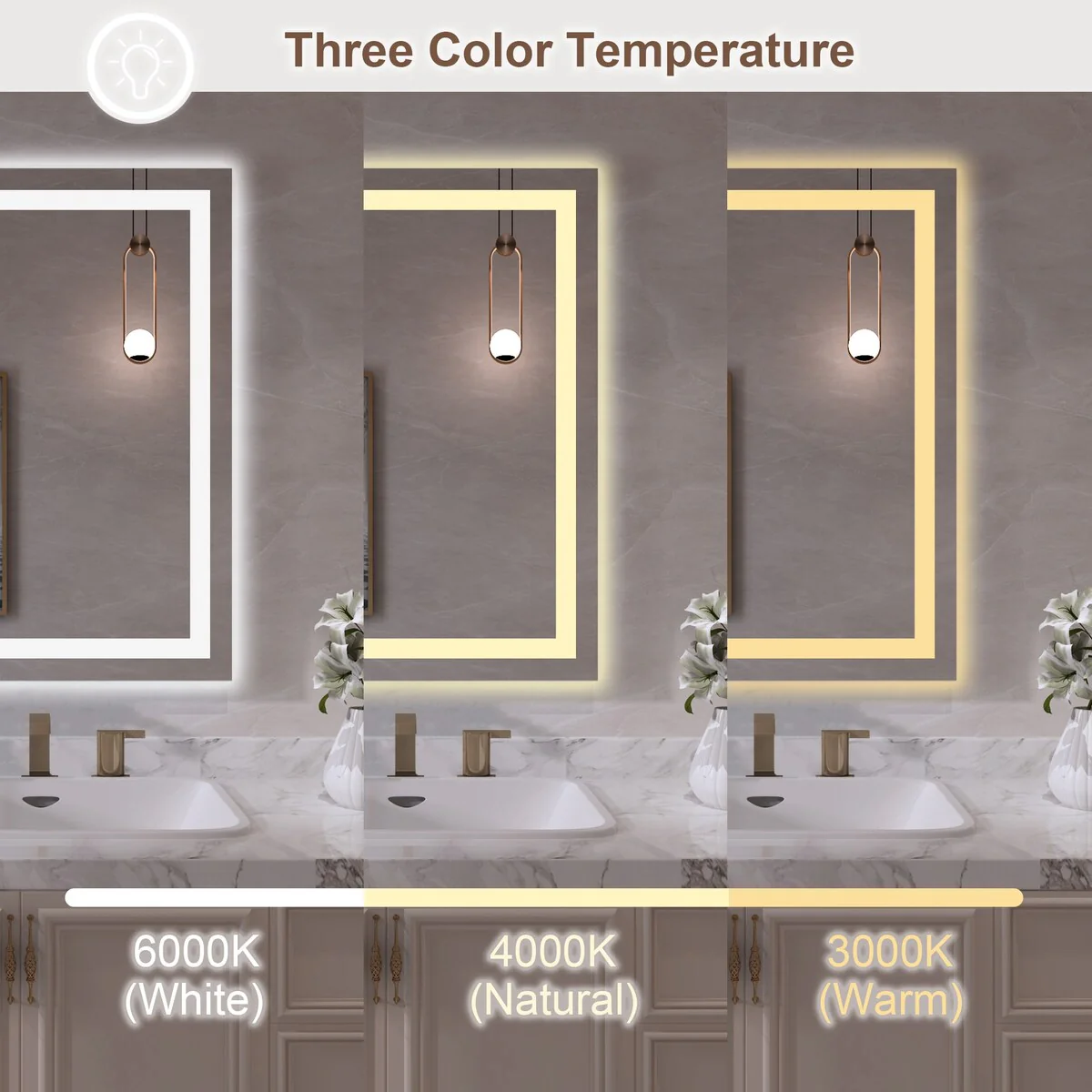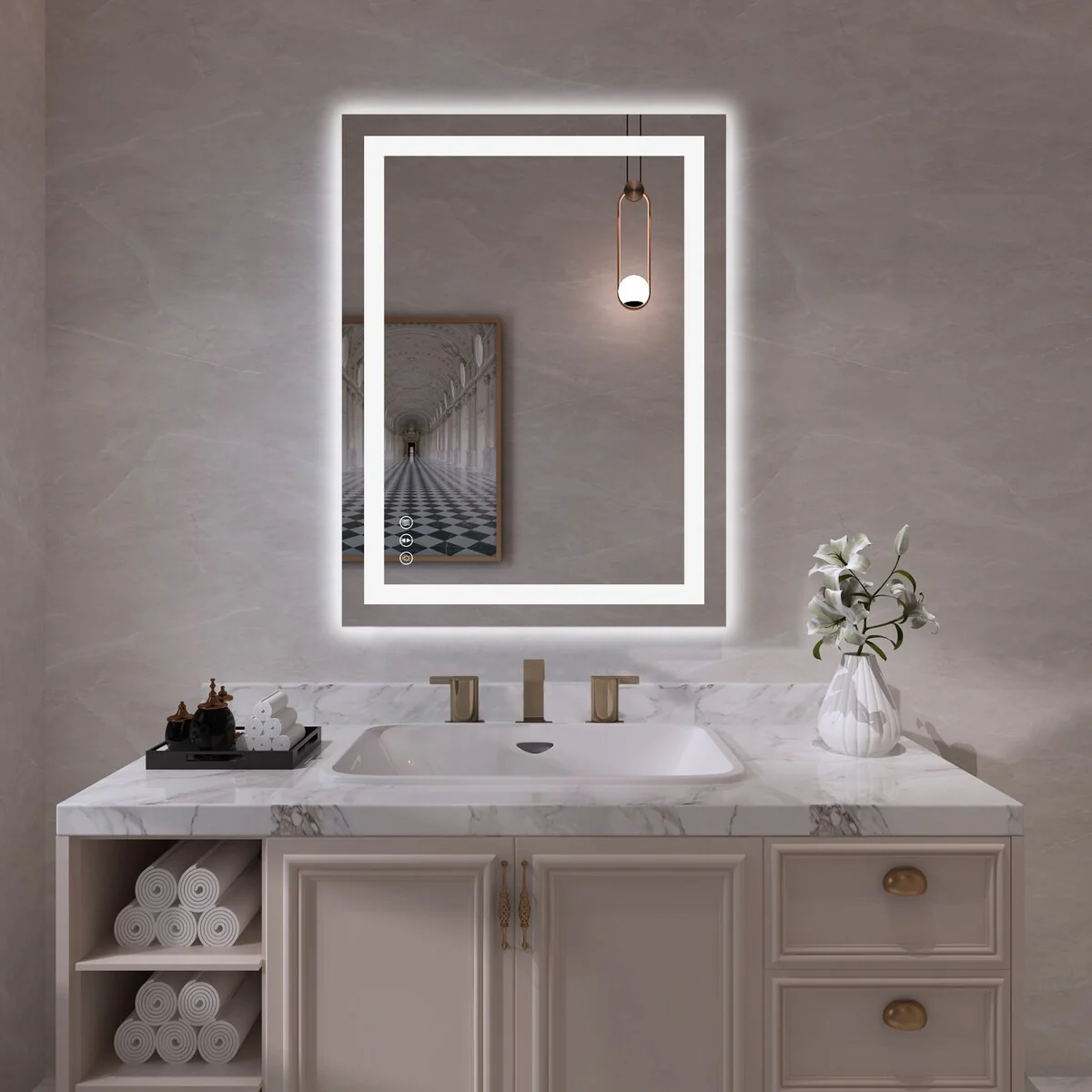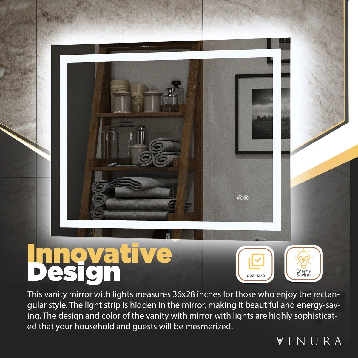 LED Mirror for Bathroom - 36�� White Aluminum Bathroom Vanity Mirror - Medium