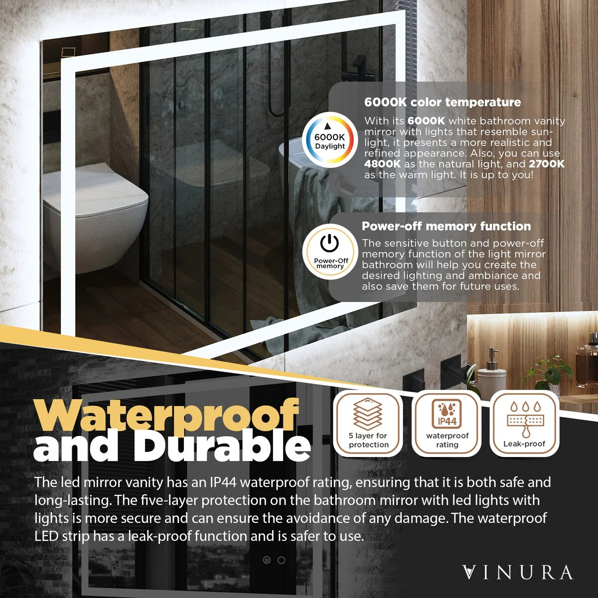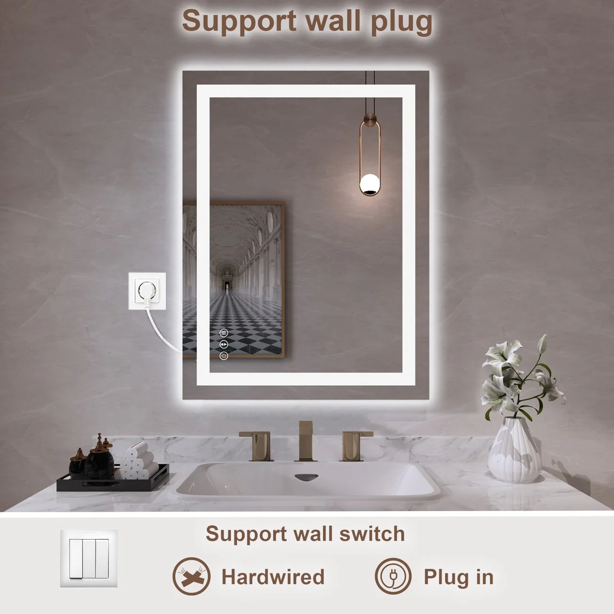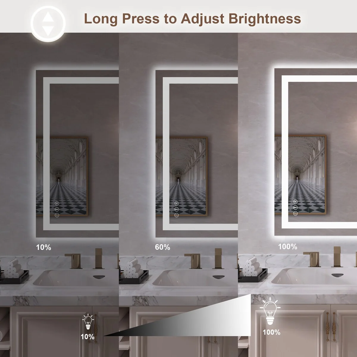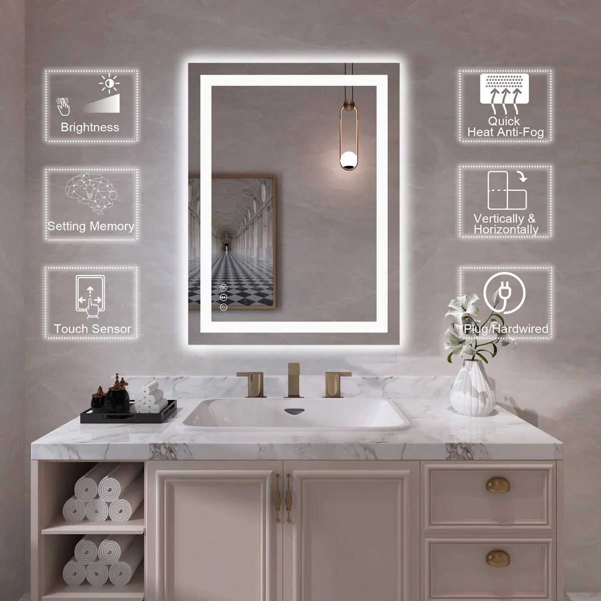 LED Mirror for Bathroom - 36�� White Aluminum Bathroom Vanity Mirror - Medium