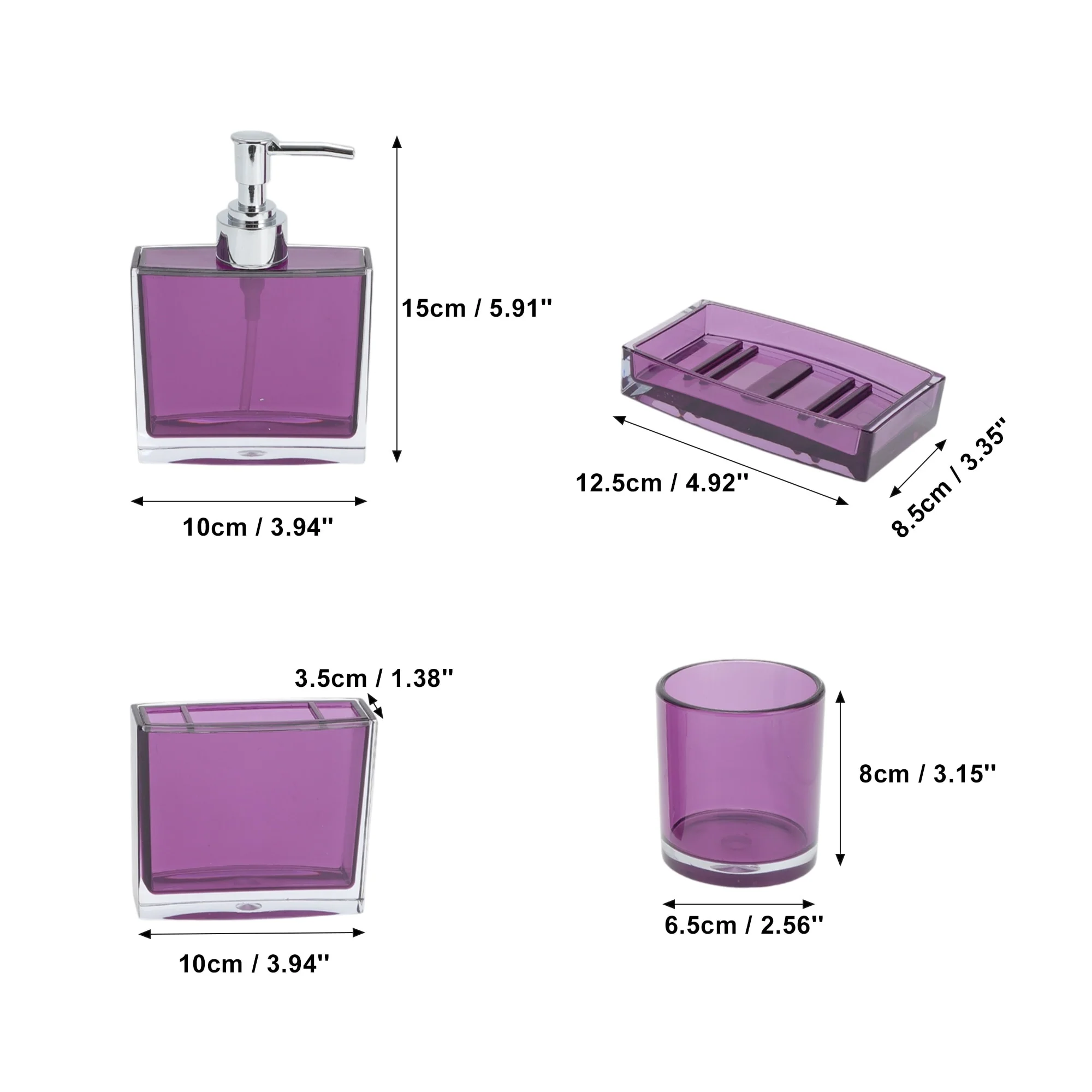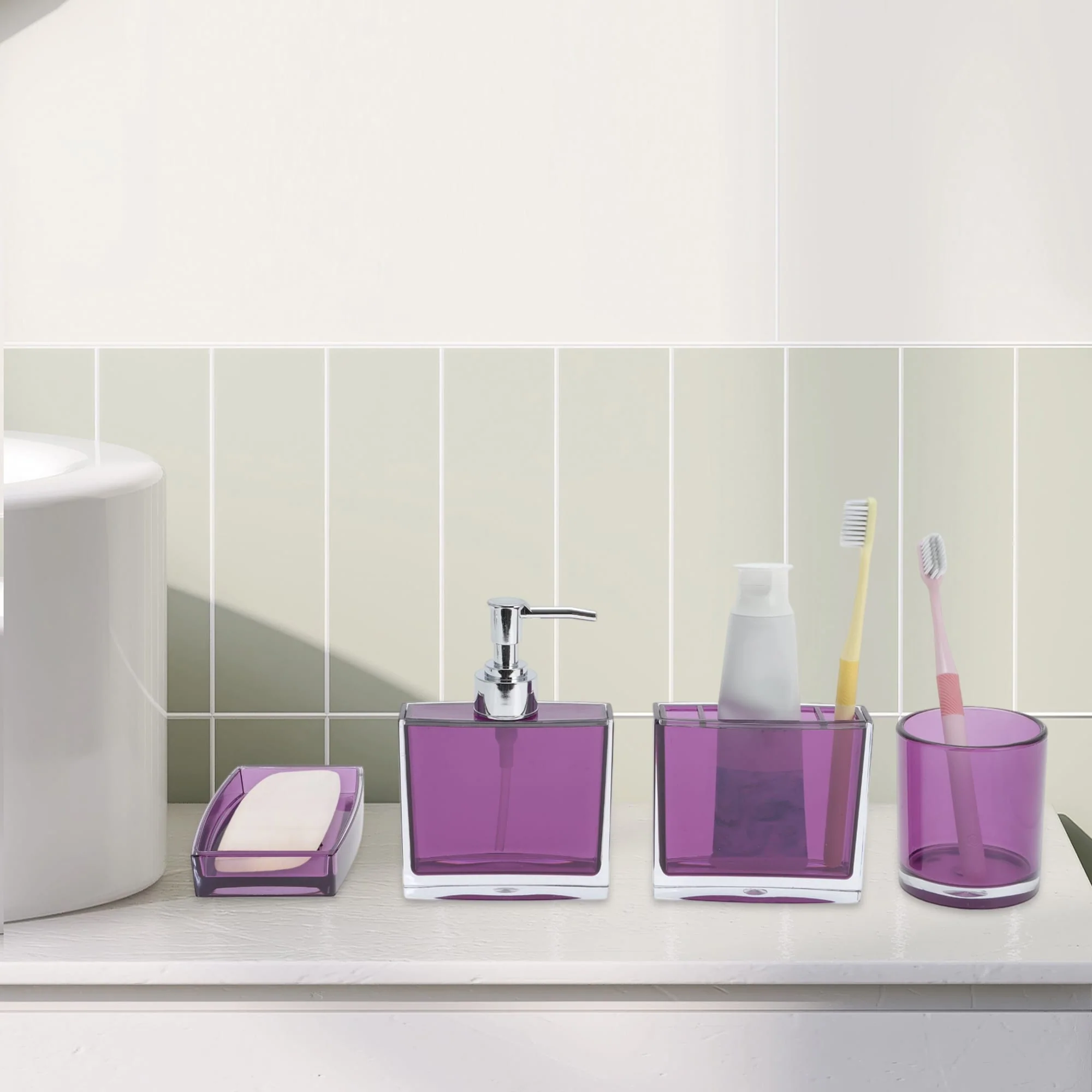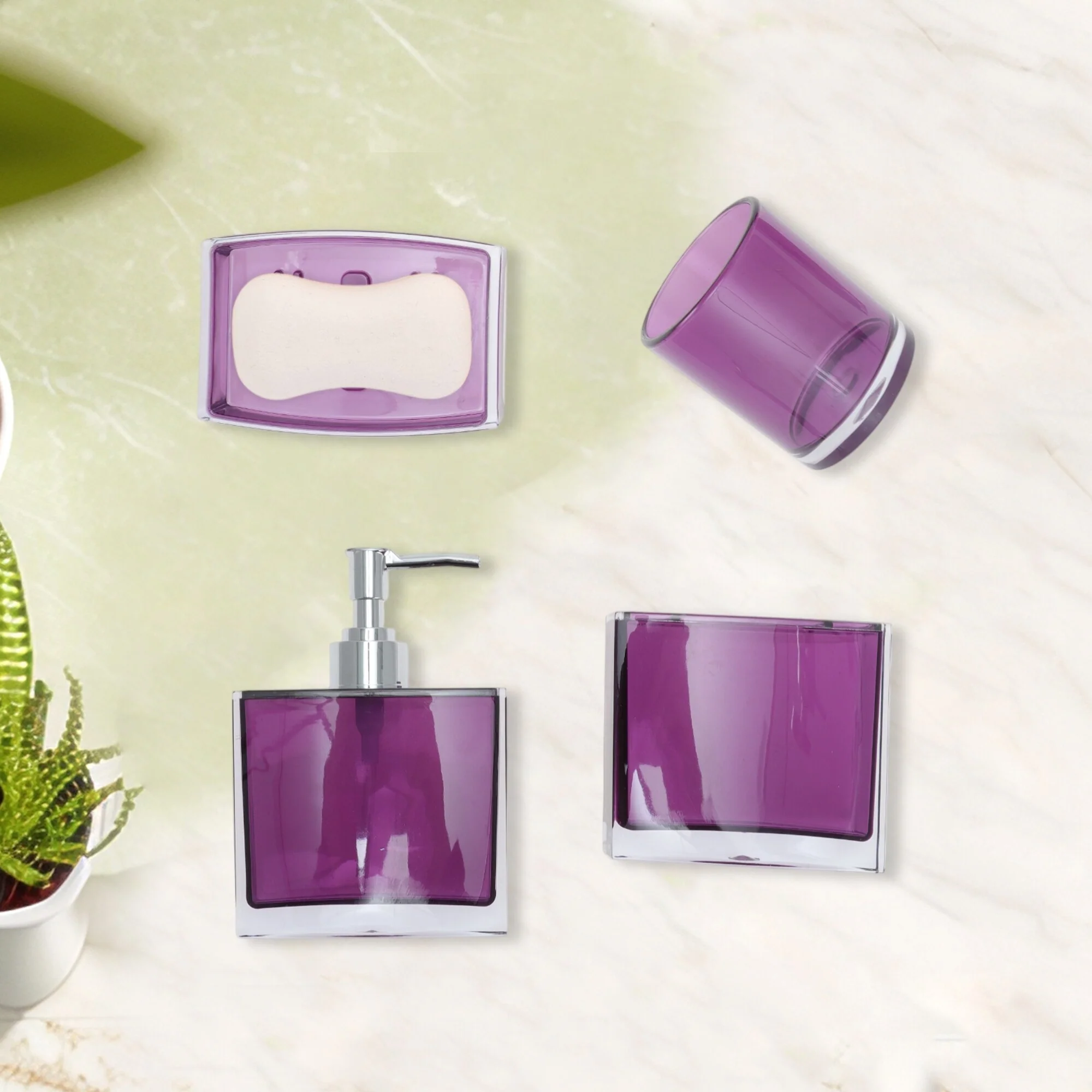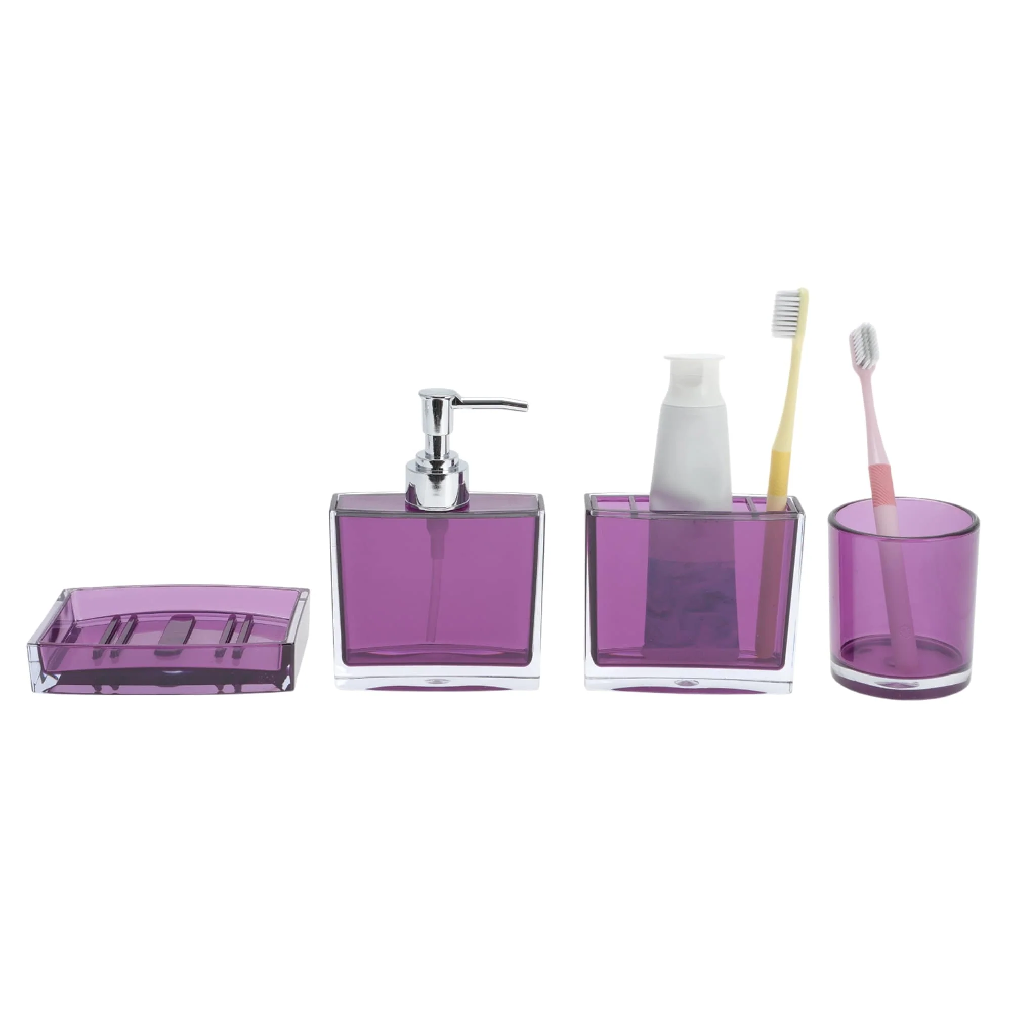 4-Piece Bathroom Accessories Set MSV-France Cagliari Purple Soft Ceramic