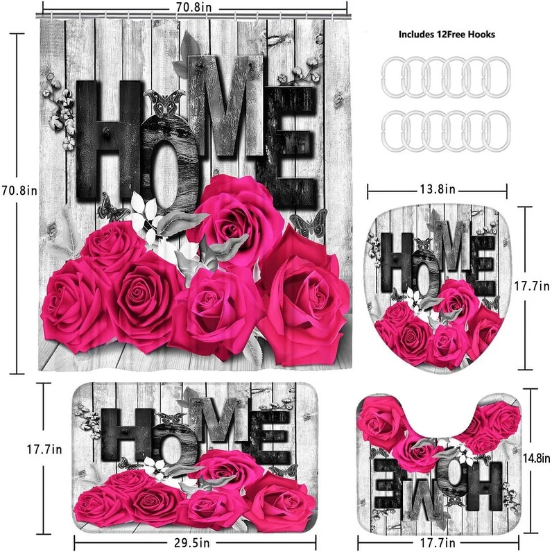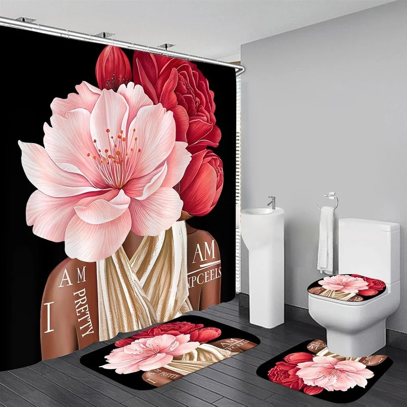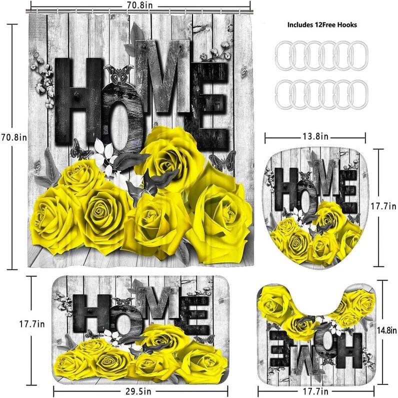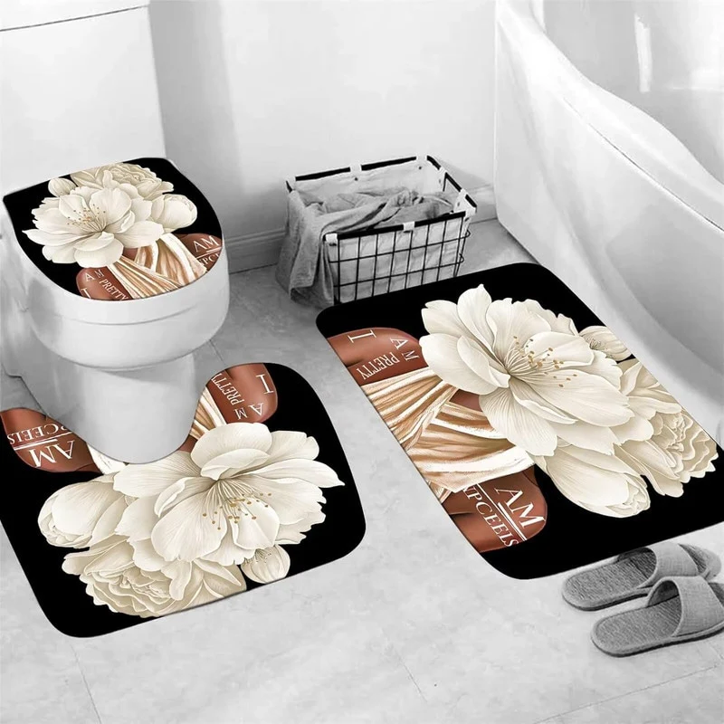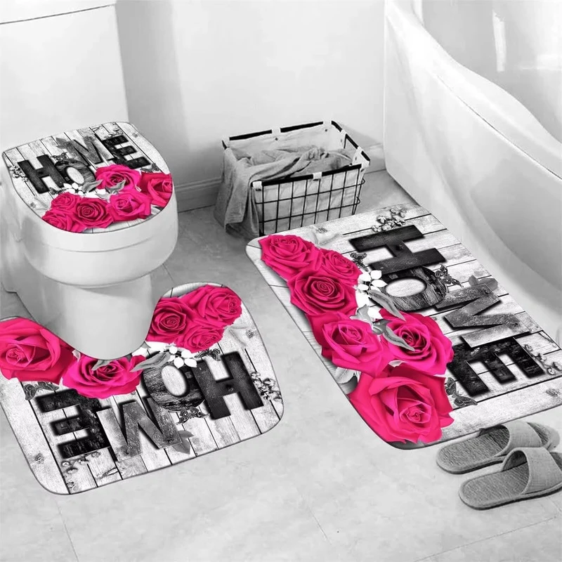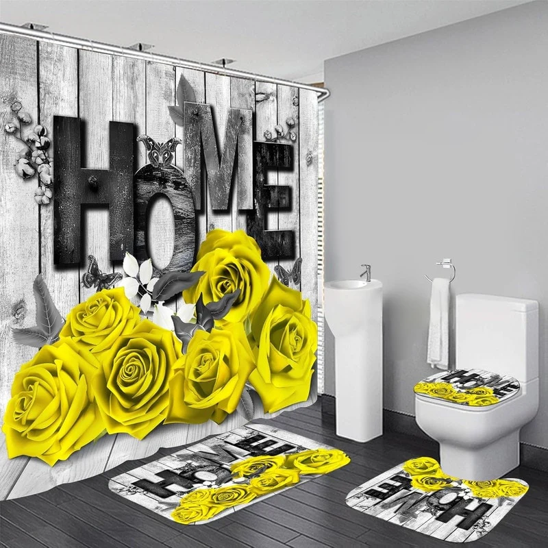 4 Pcs Shower Curtain Sets Non Slip Rugs Bath Mat Toilet Cover U Shaped Mat