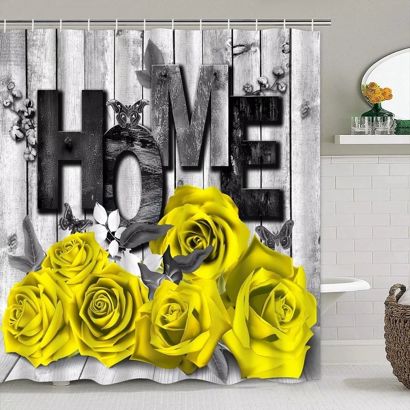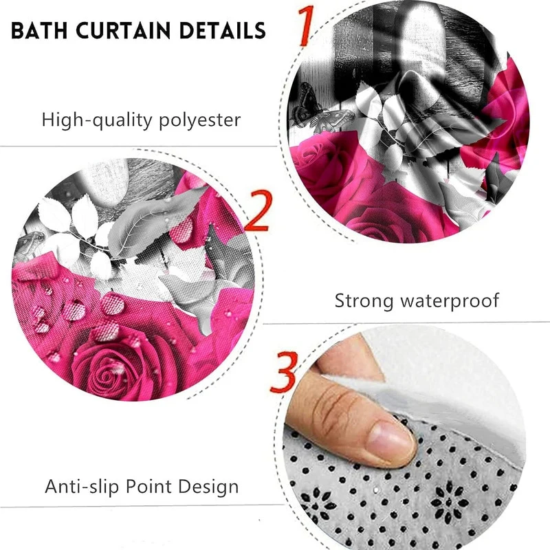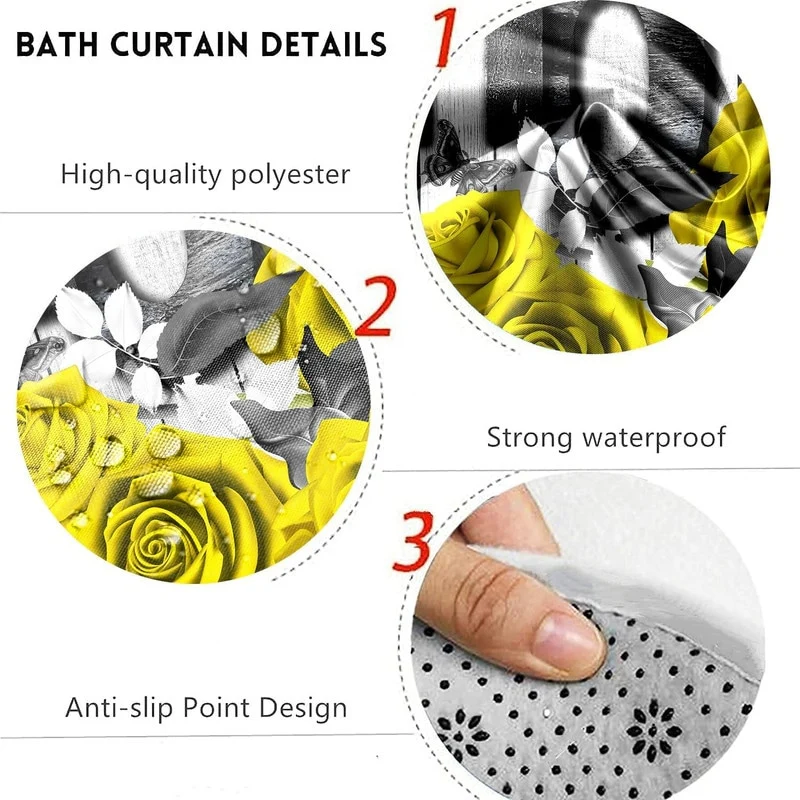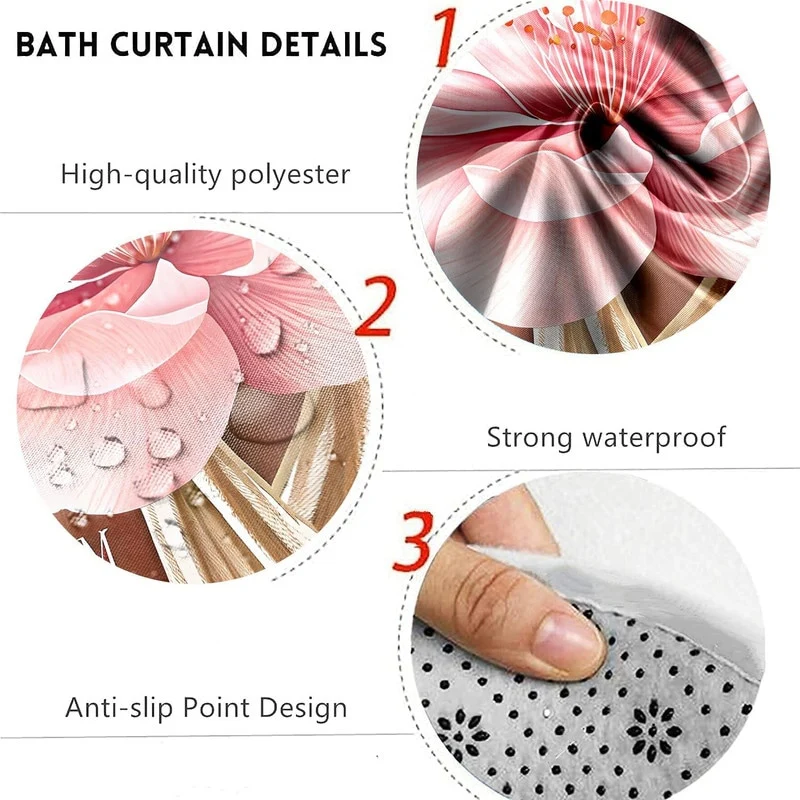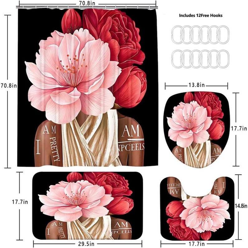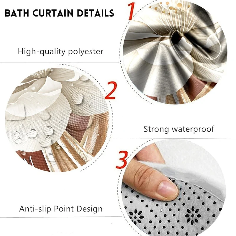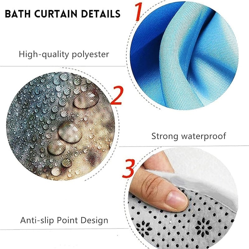 4 Pcs Shower Curtain Sets Non Slip Rugs Bath Mat Toilet Cover U Shaped Mat