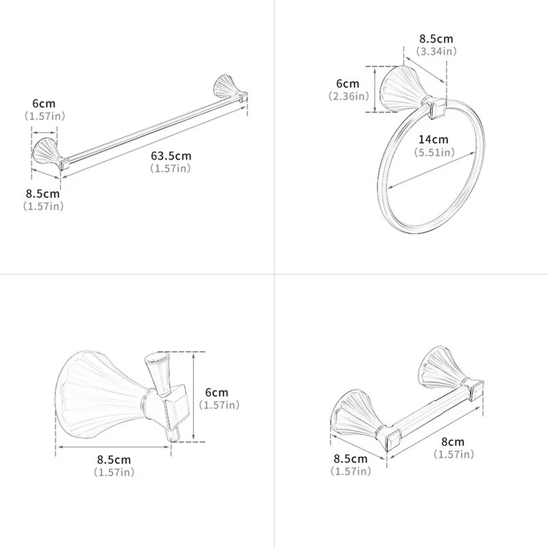 Bathroom zinc alloy four-piece set with fixed installation bathroom accessories