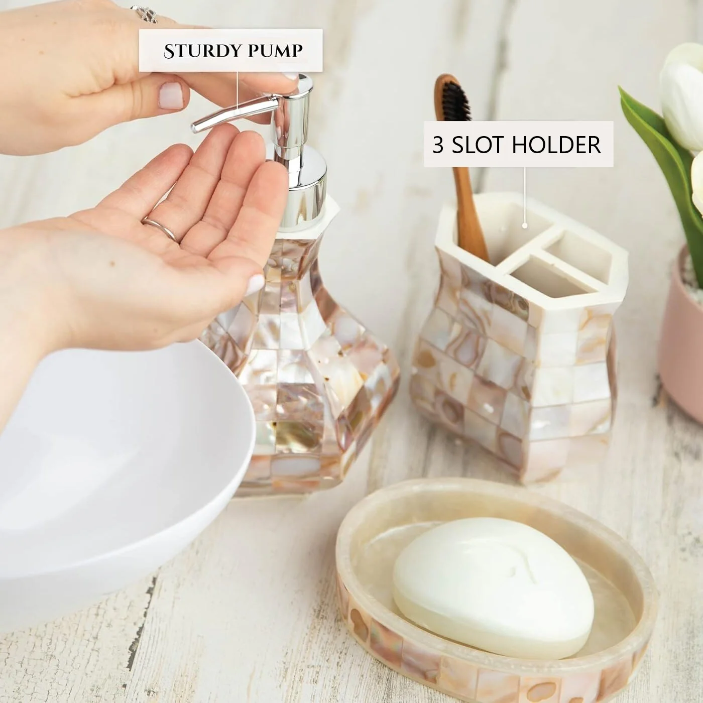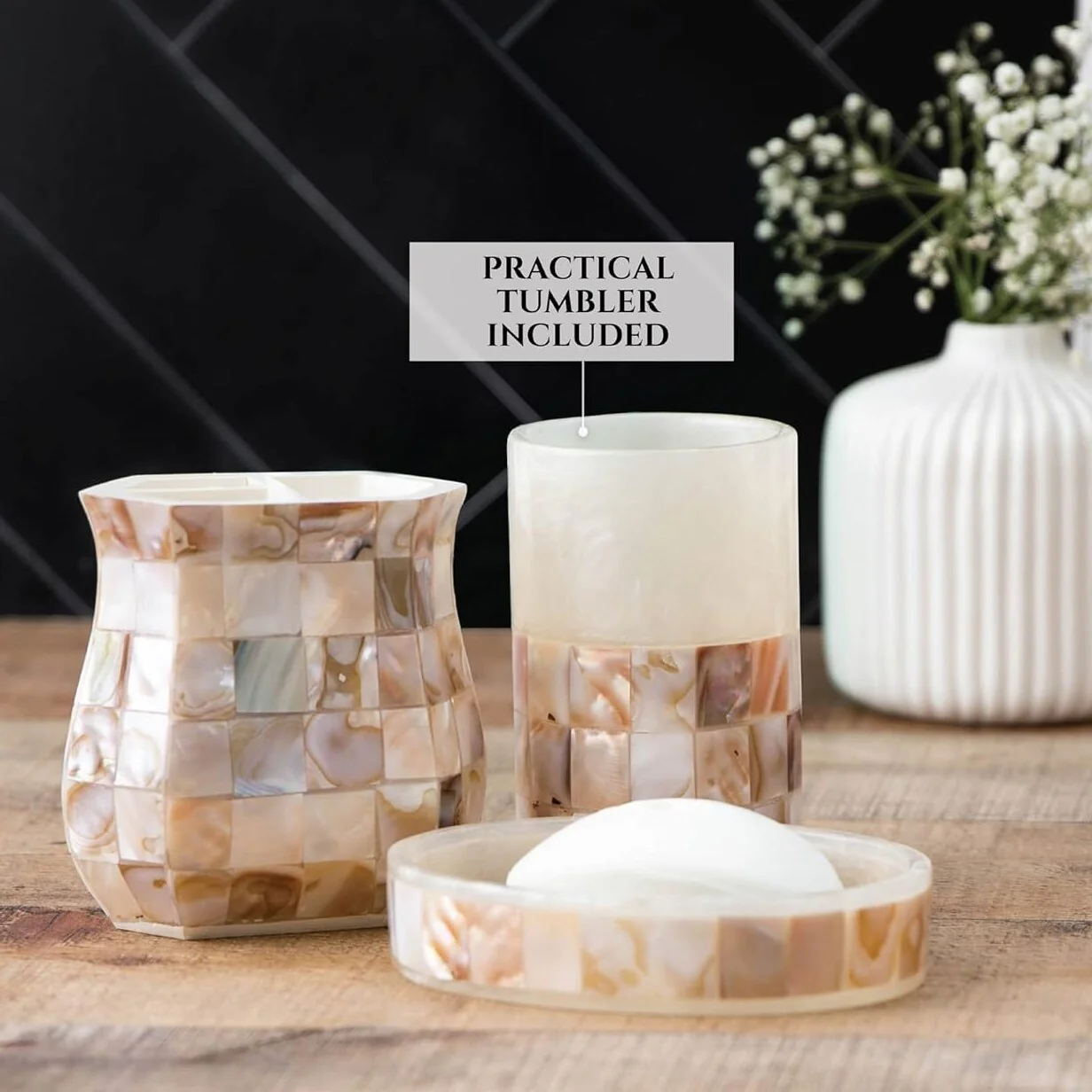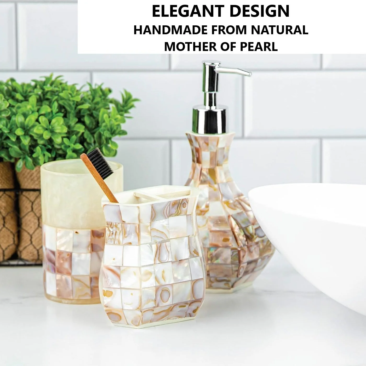 4 Piece Bathroom Accessory Set with Natural Mother of Pearl Shells - Mother of Pearl Color