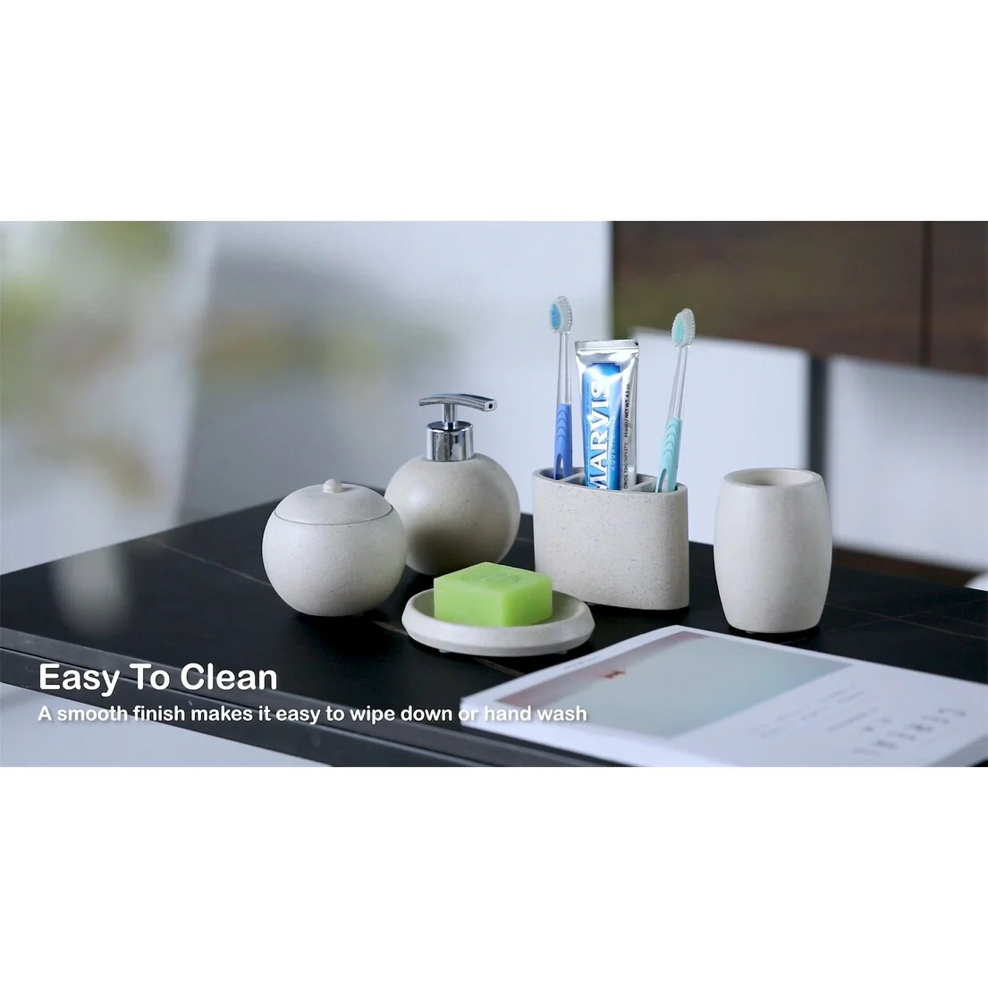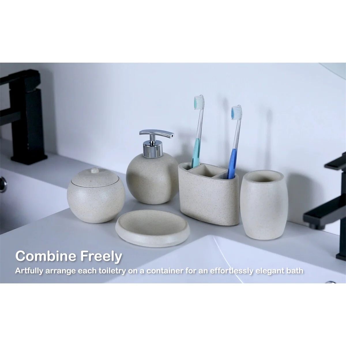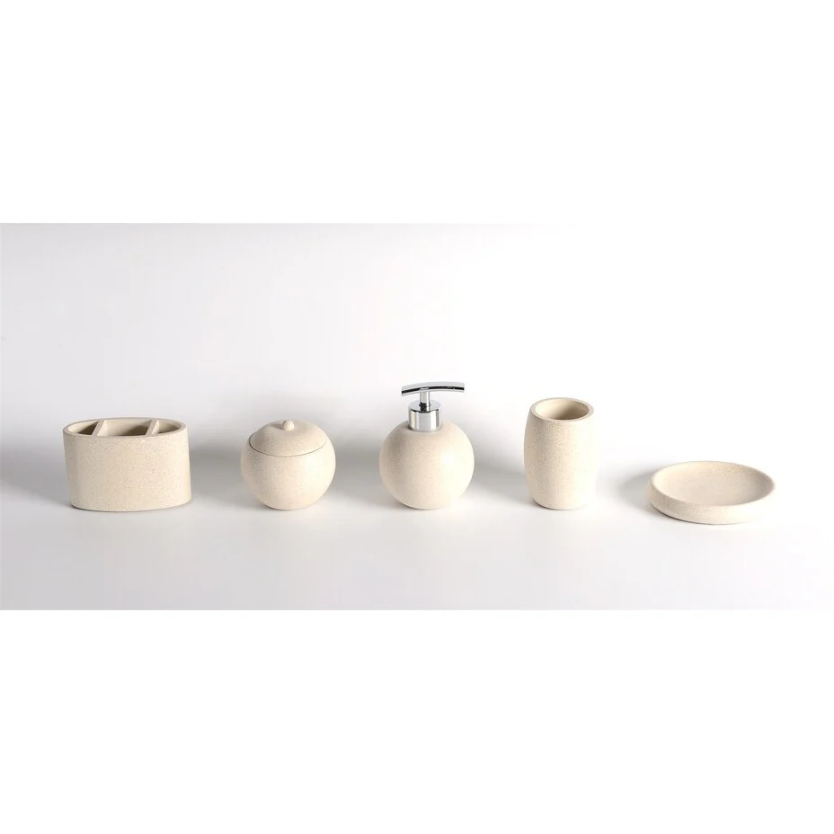 Concrete Terrazzo Bath Accessory Set, White Sandstone Color 5 in 1