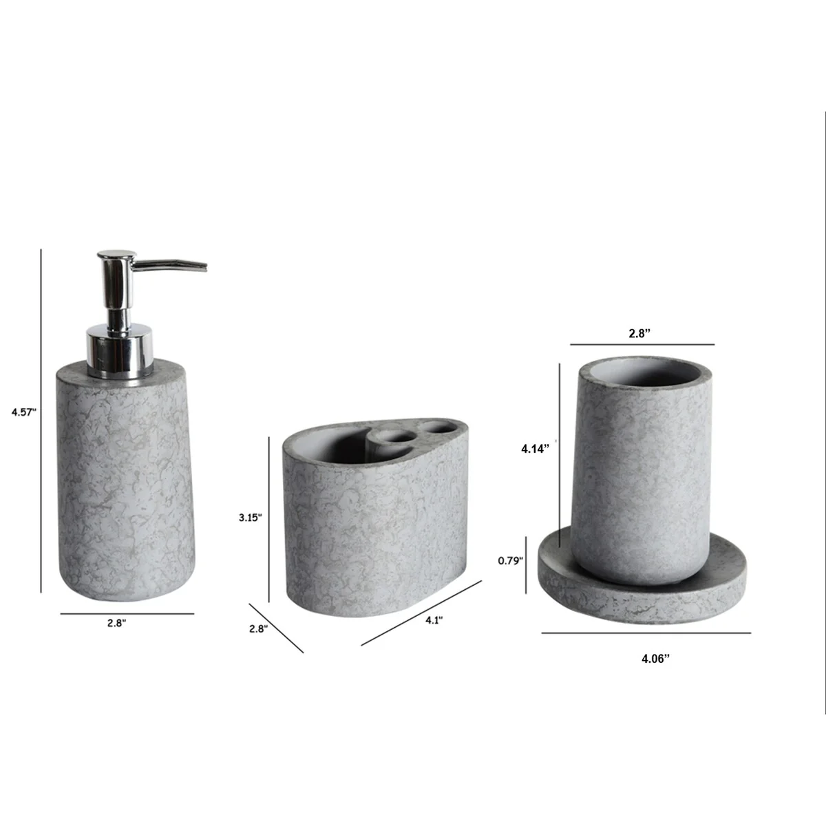 Concrete Bath Accessory Set for Vanity Countertops, Cement Grey