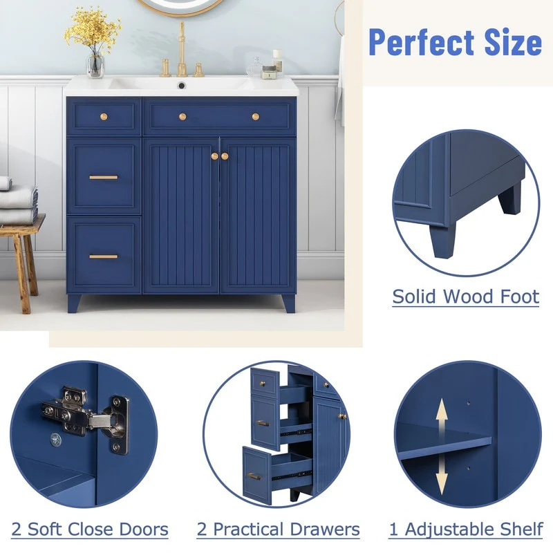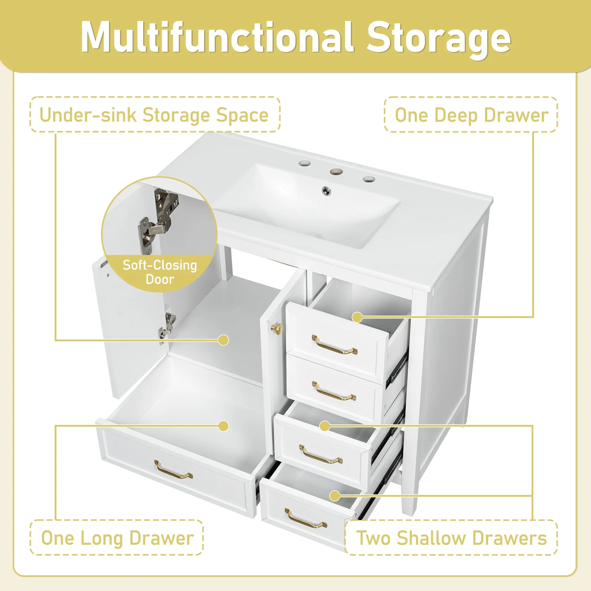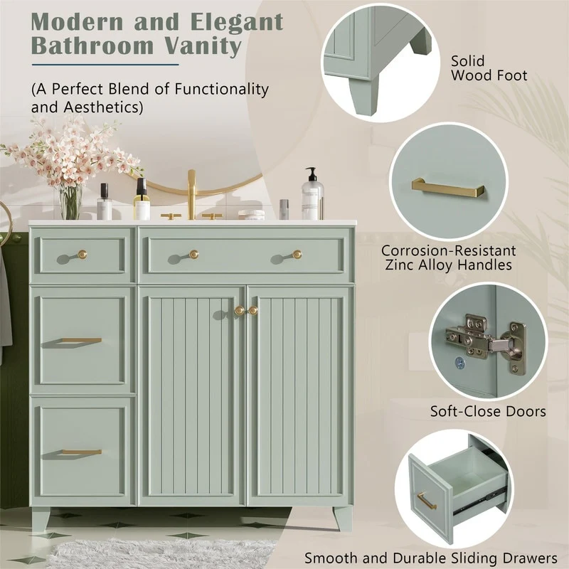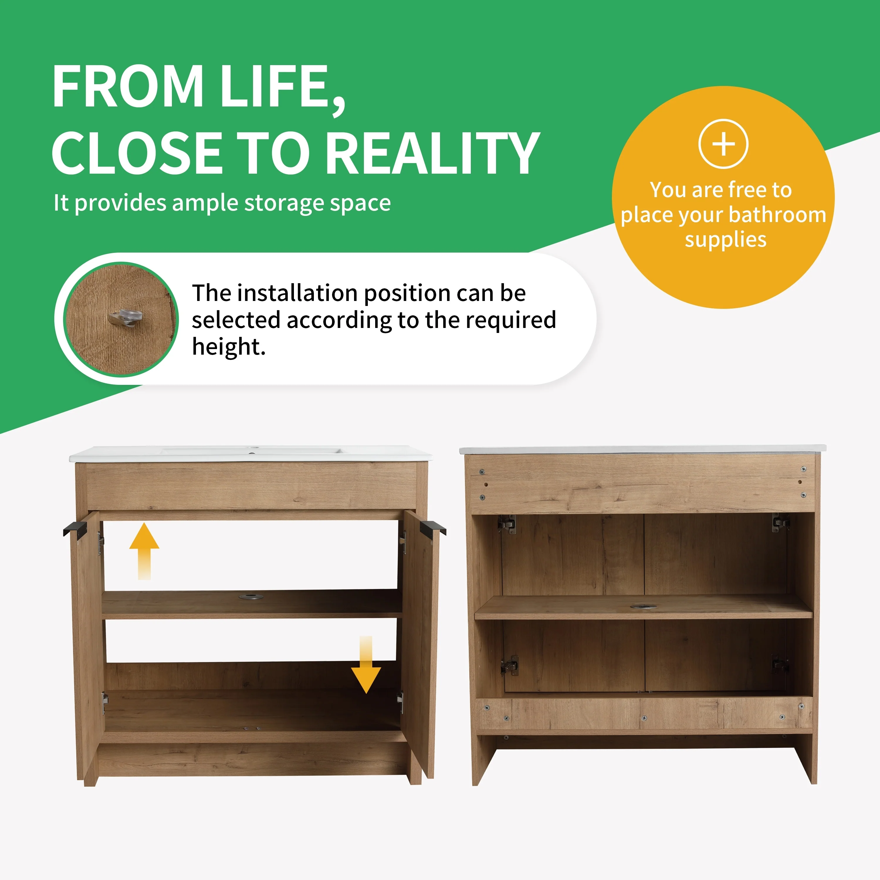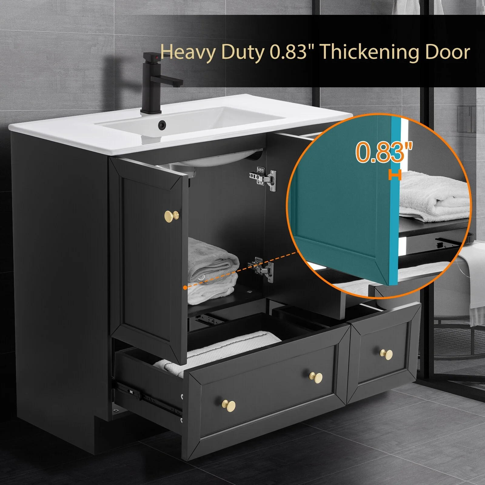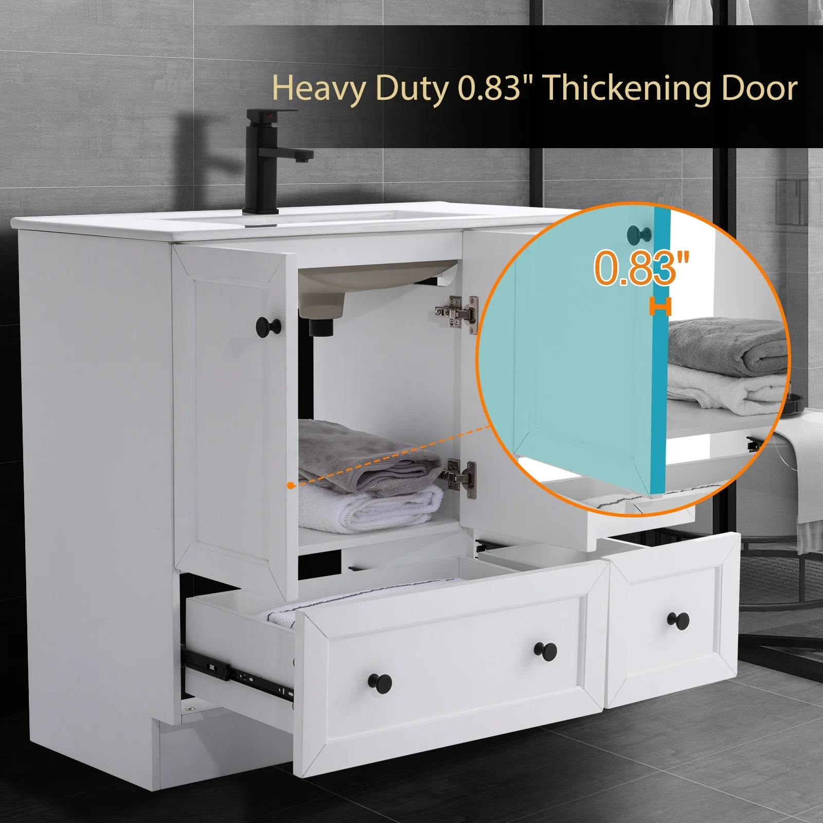 36'' Bathroom Vanity with/without Ceramic Sink, Bathroom Vanity Cabinet w/ 2 Soft Close Doors, 2 Drawers and 1 Adjustable Shelf