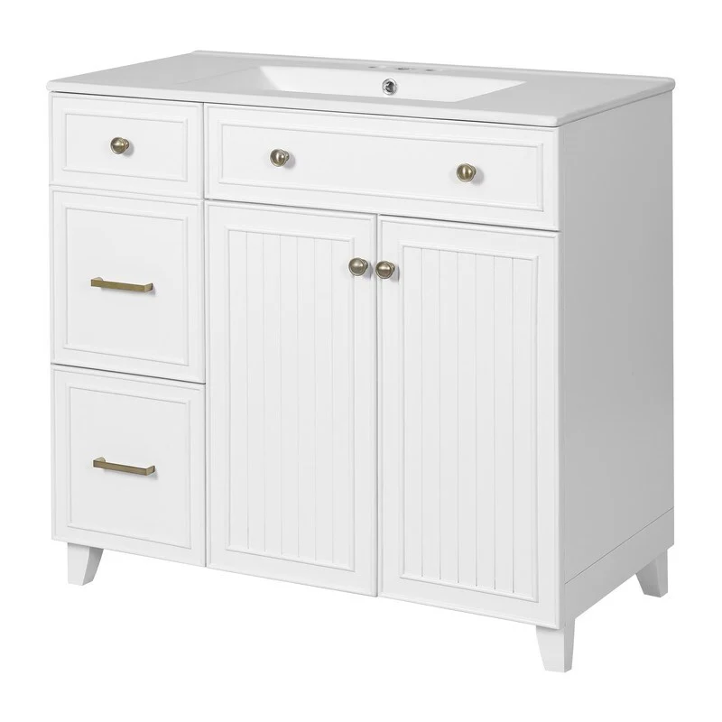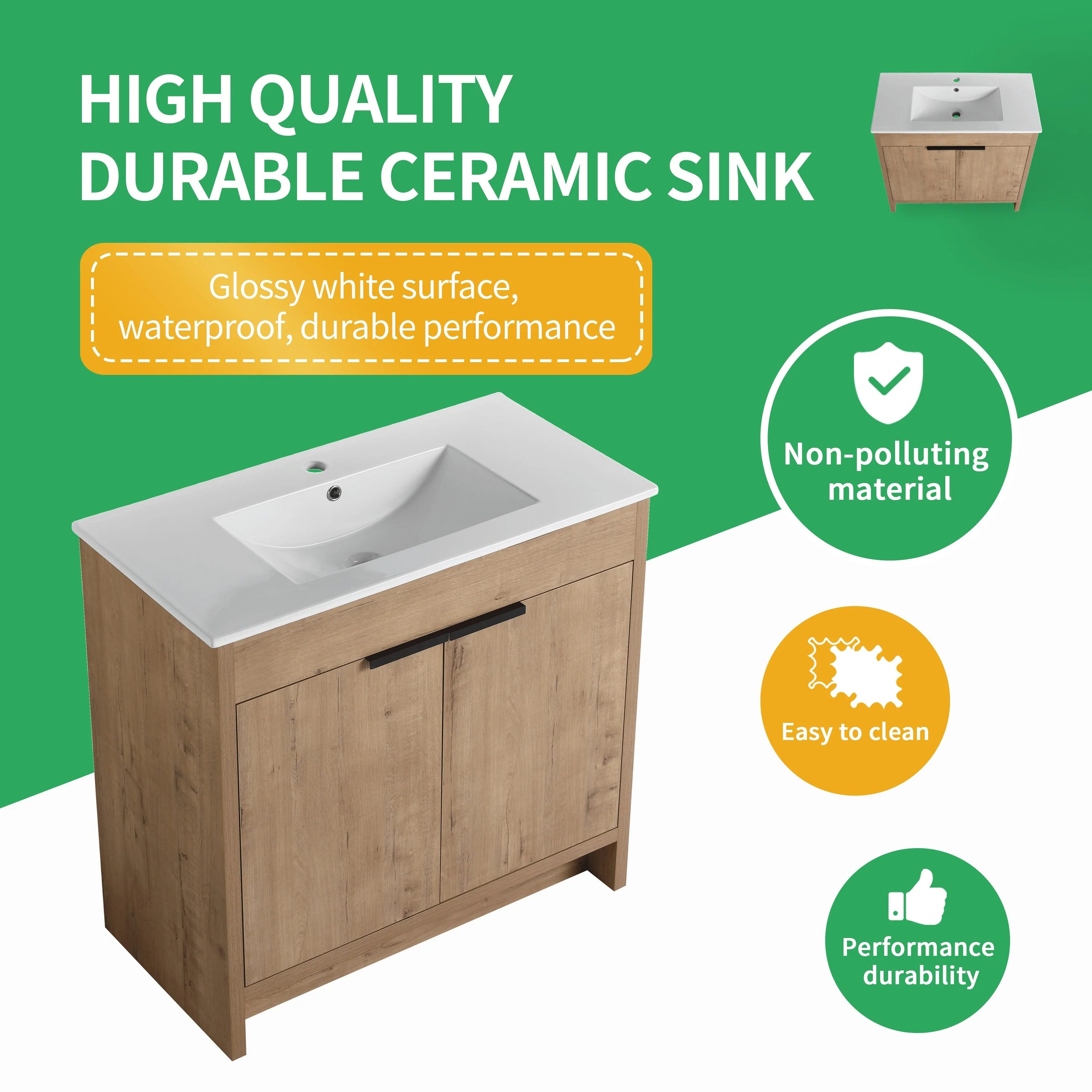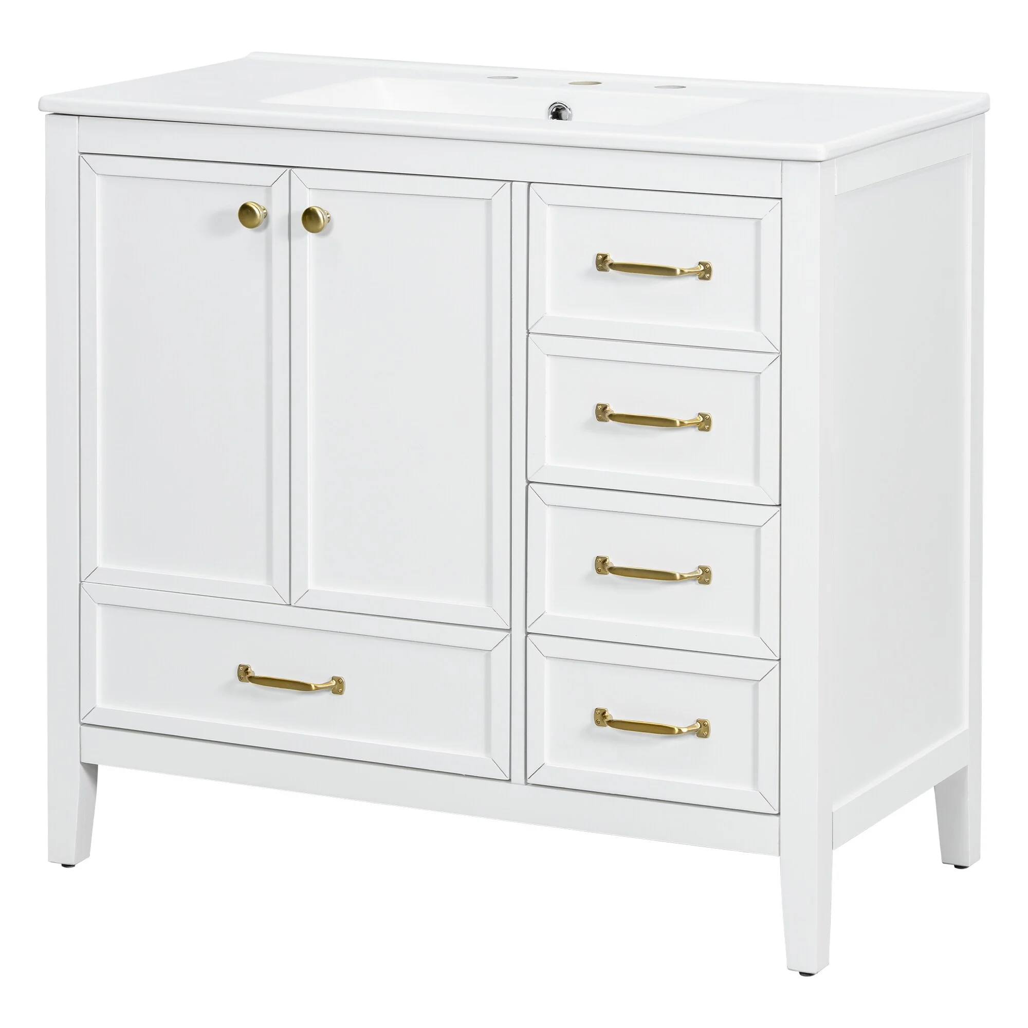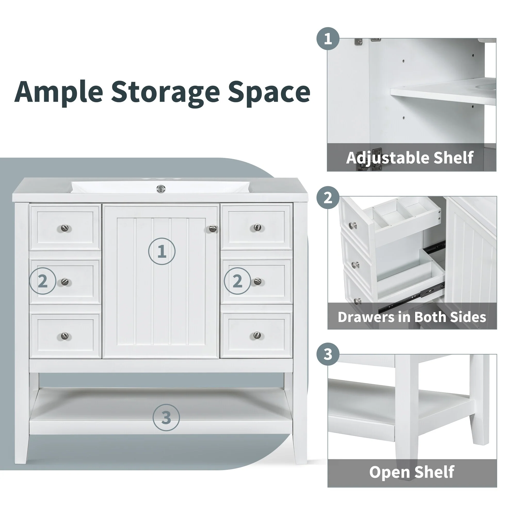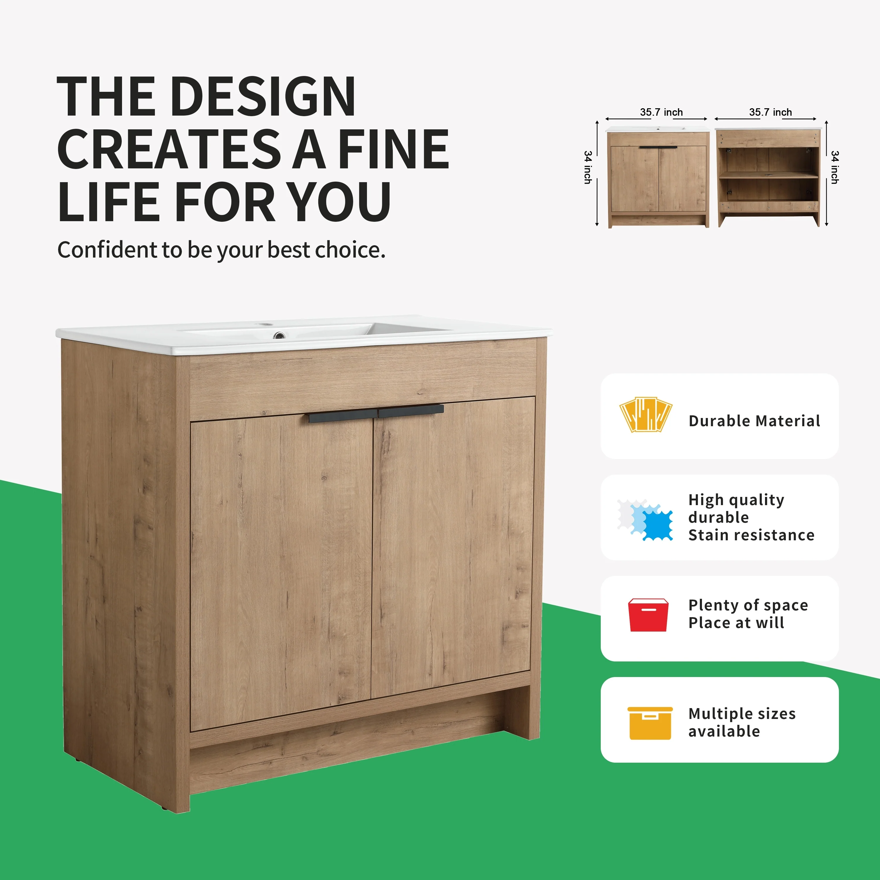 36'' Bathroom Vanity with/without Ceramic Sink, Bathroom Vanity Cabinet w/ 2 Soft Close Doors, 2 Drawers and 1 Adjustable Shelf