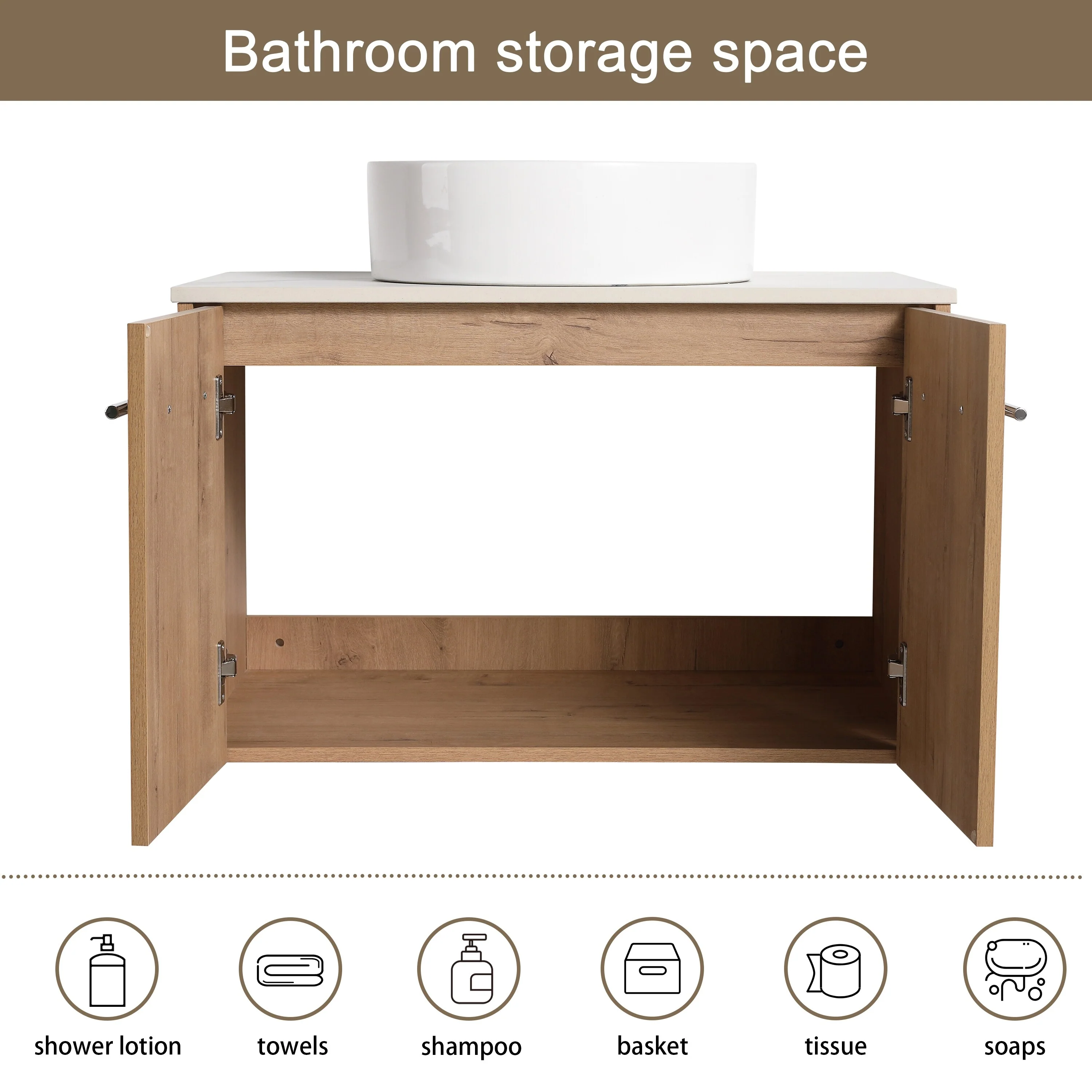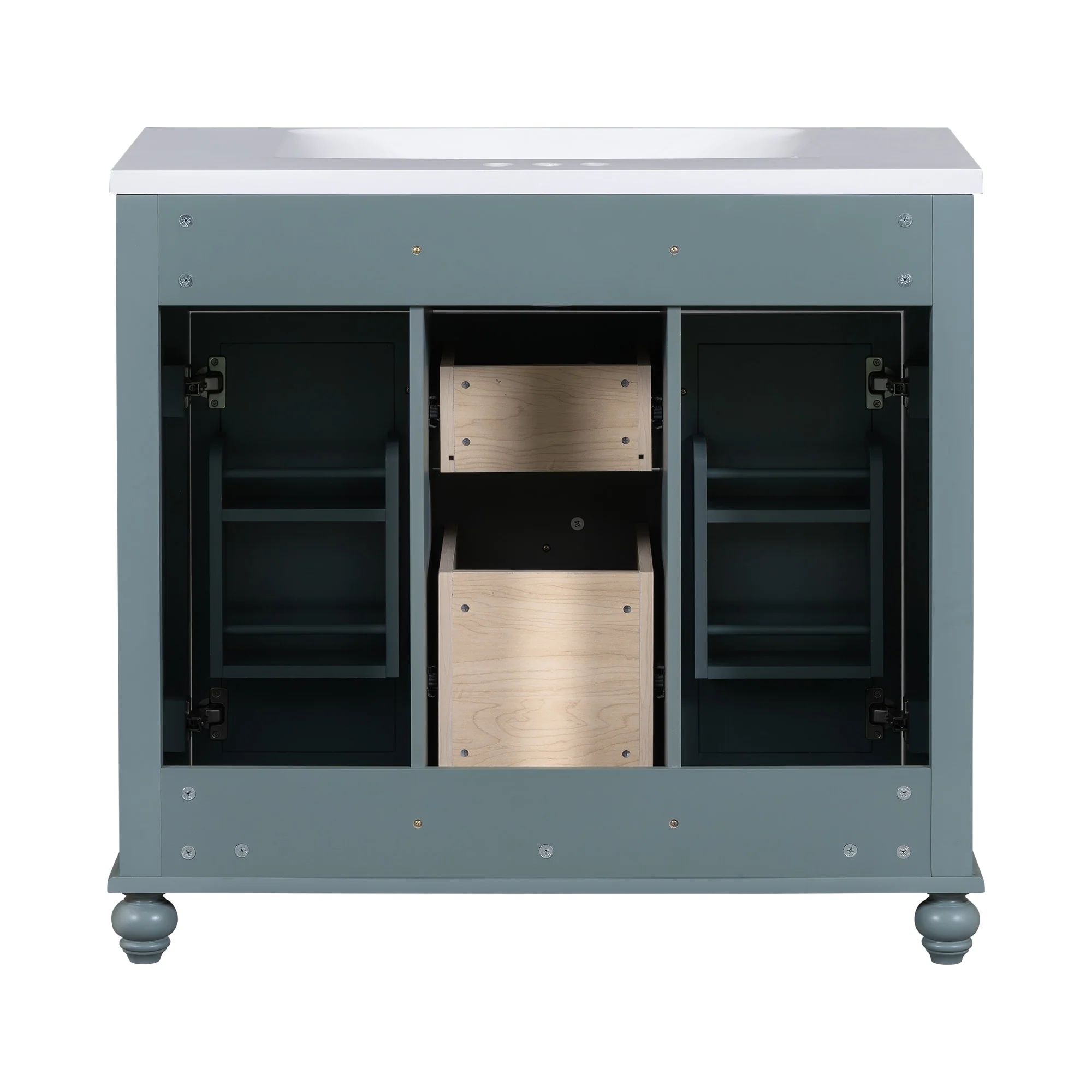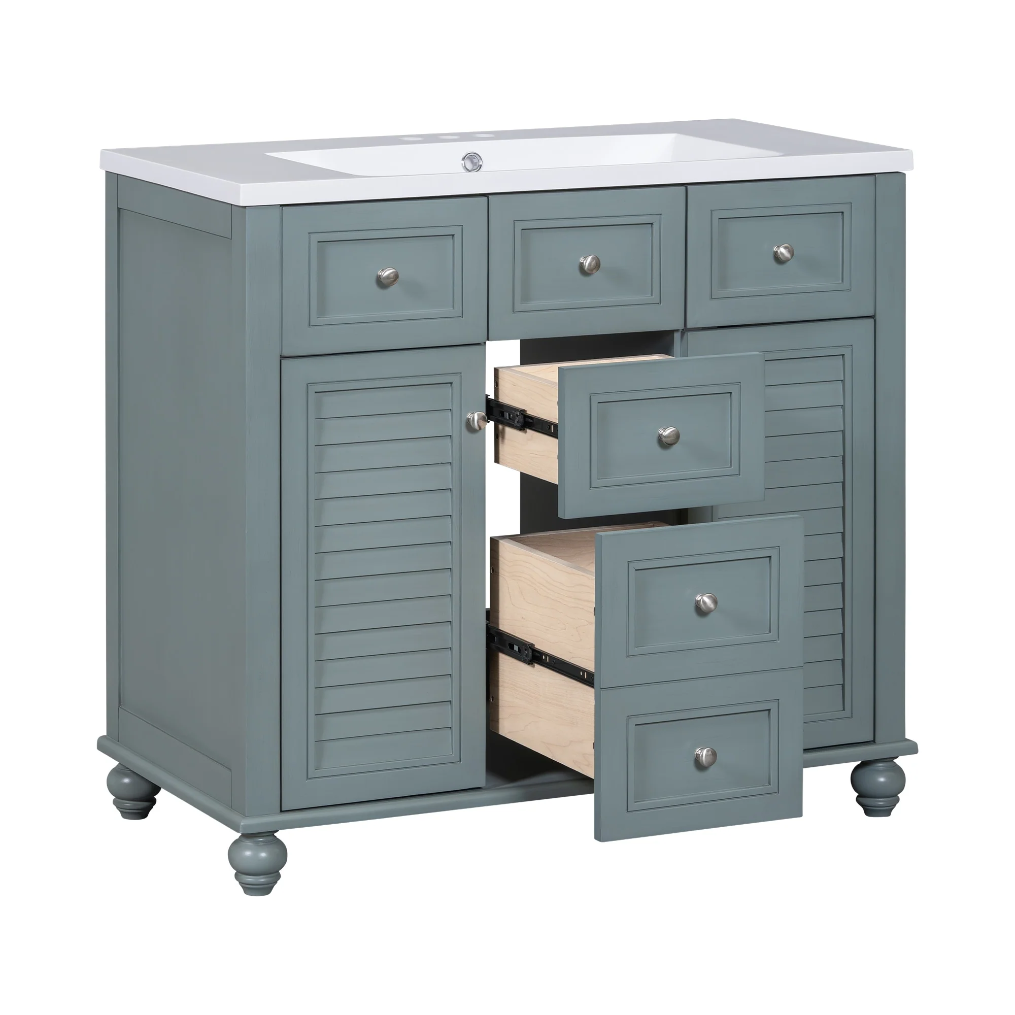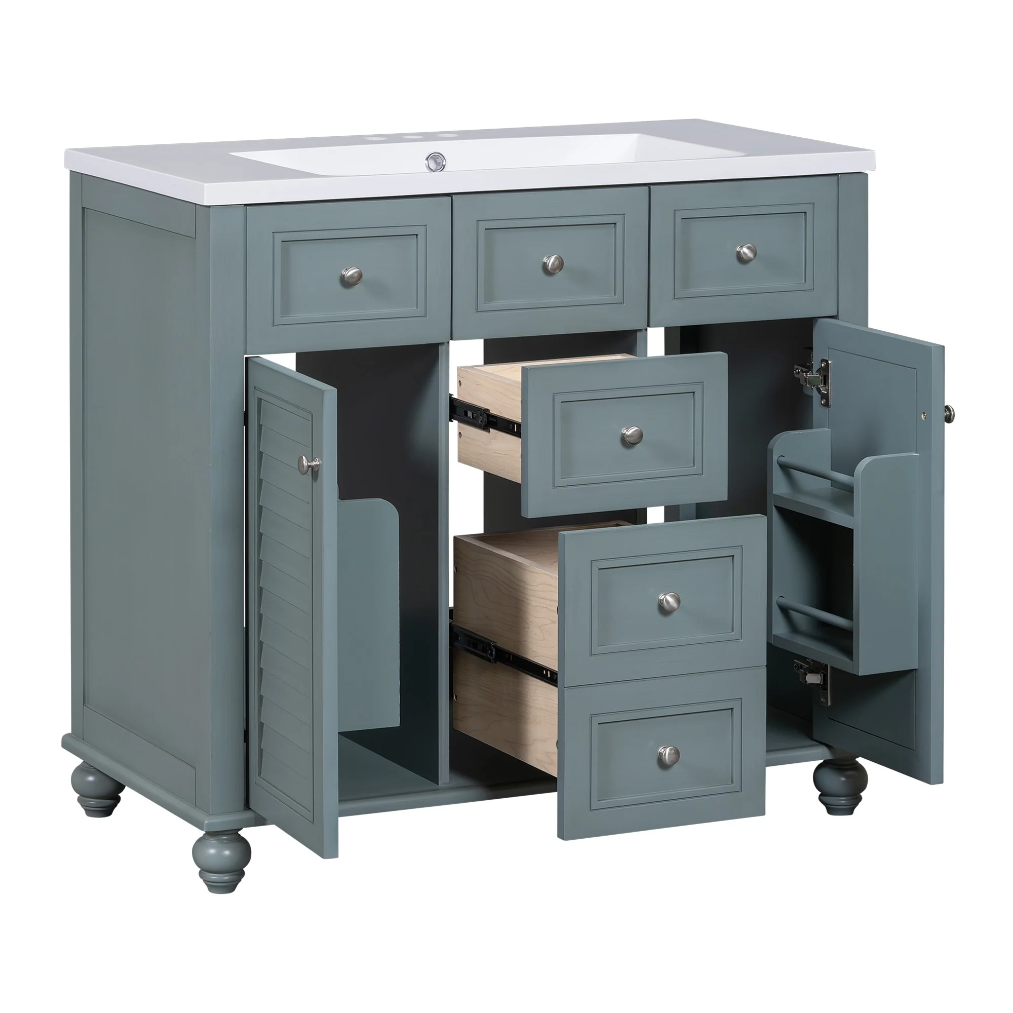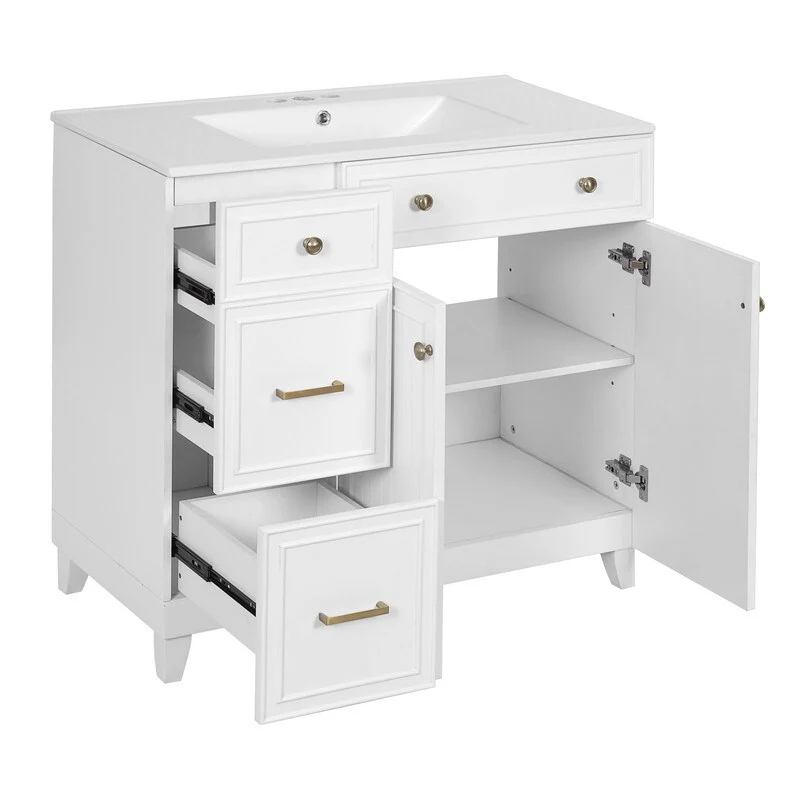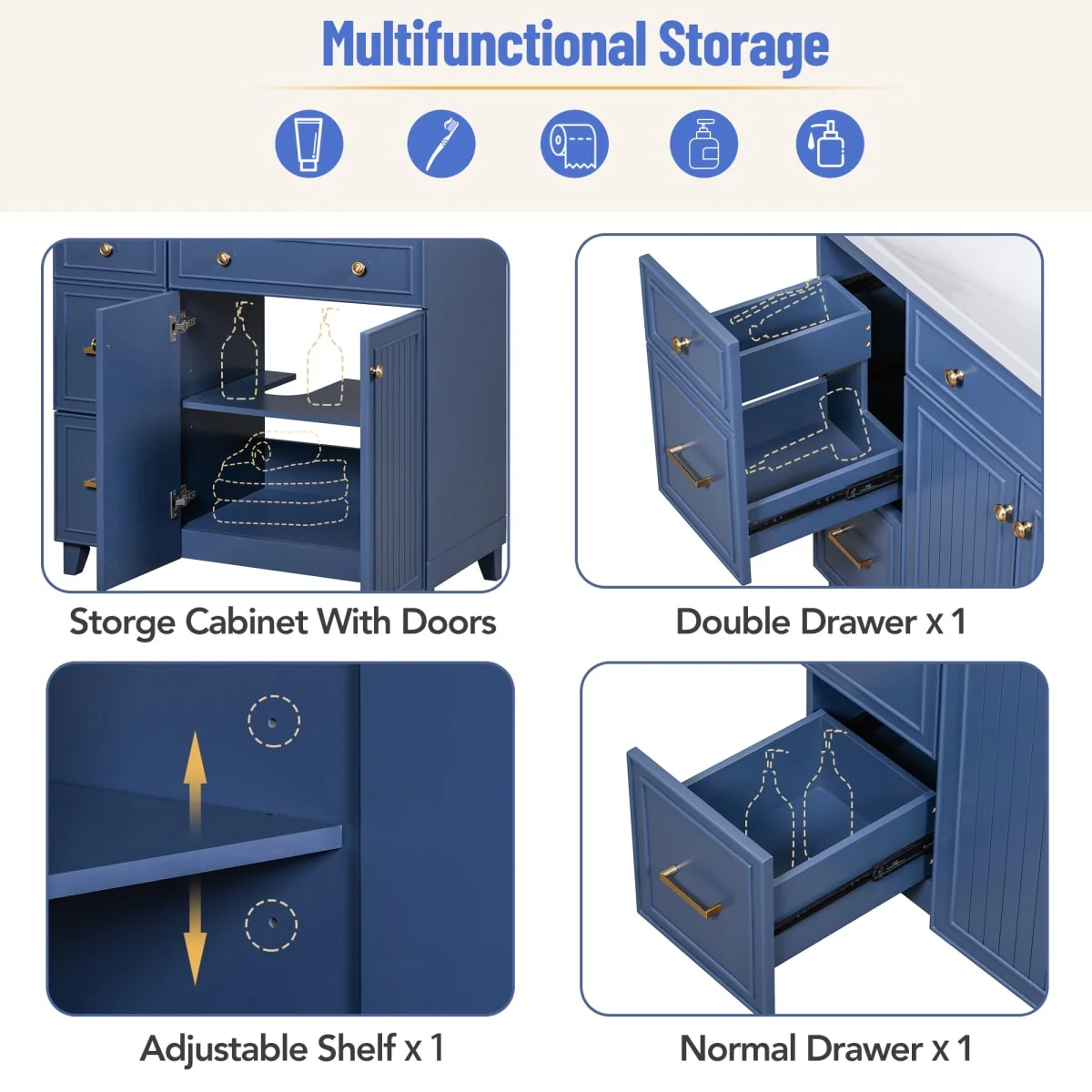 36'' Bathroom Vanity with/without Ceramic Sink, Bathroom Vanity Cabinet w/ 2 Soft Close Doors, 2 Drawers and 1 Adjustable Shelf