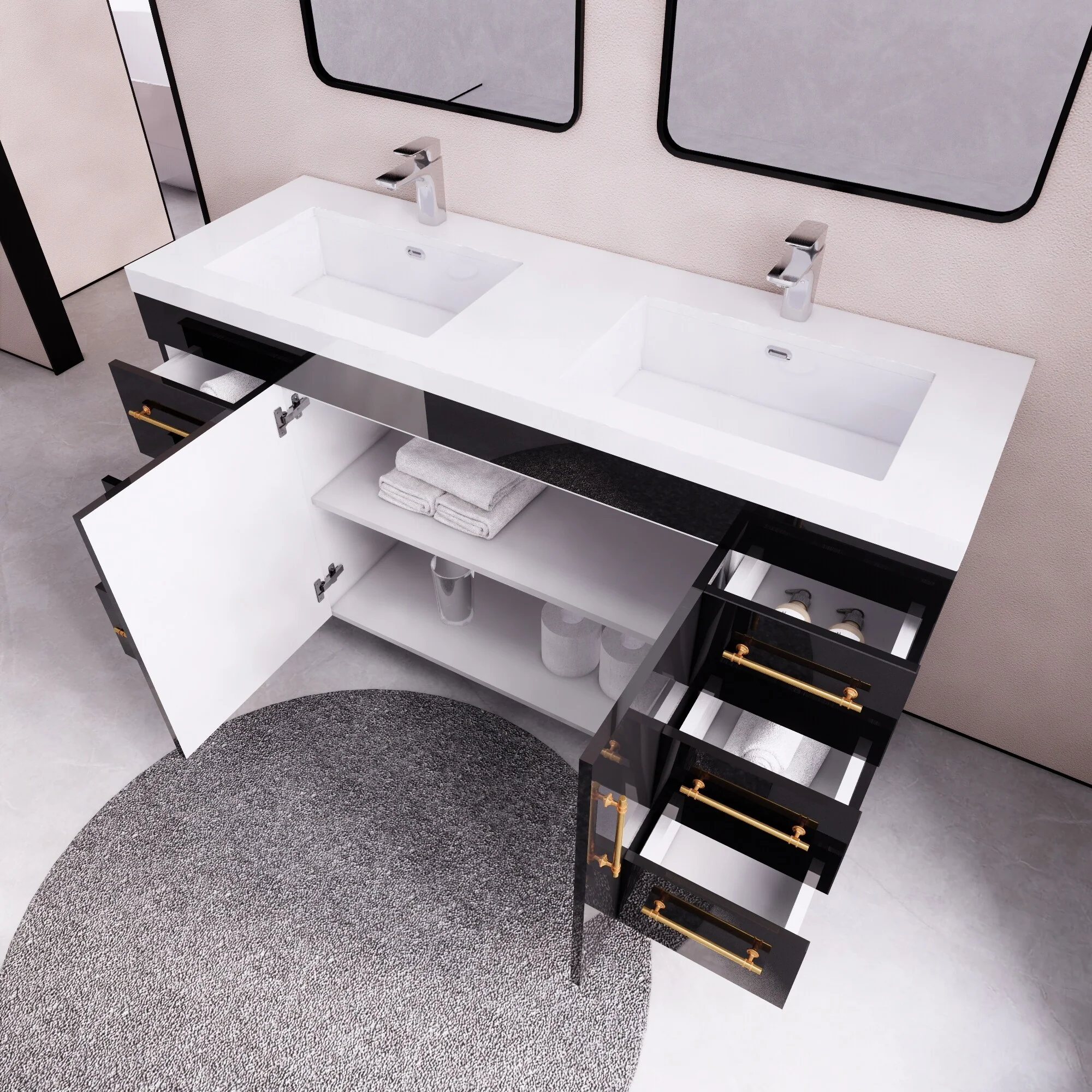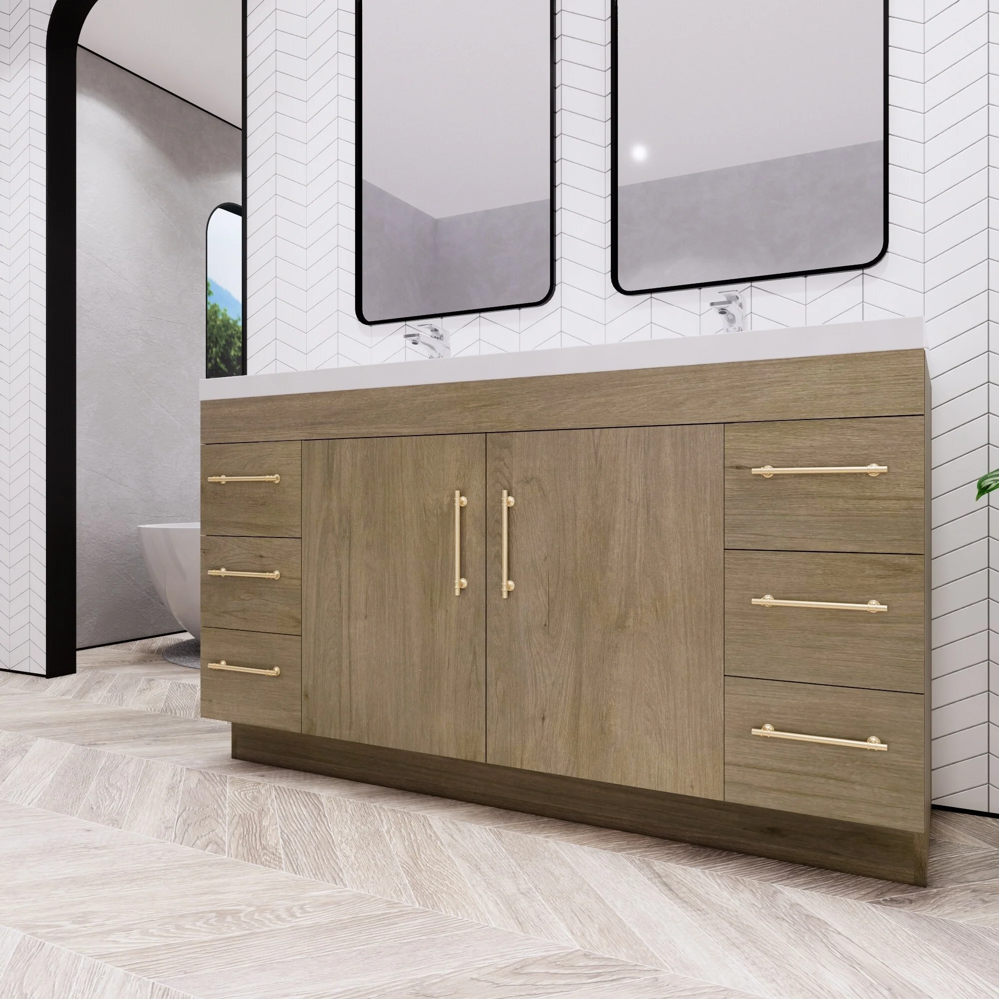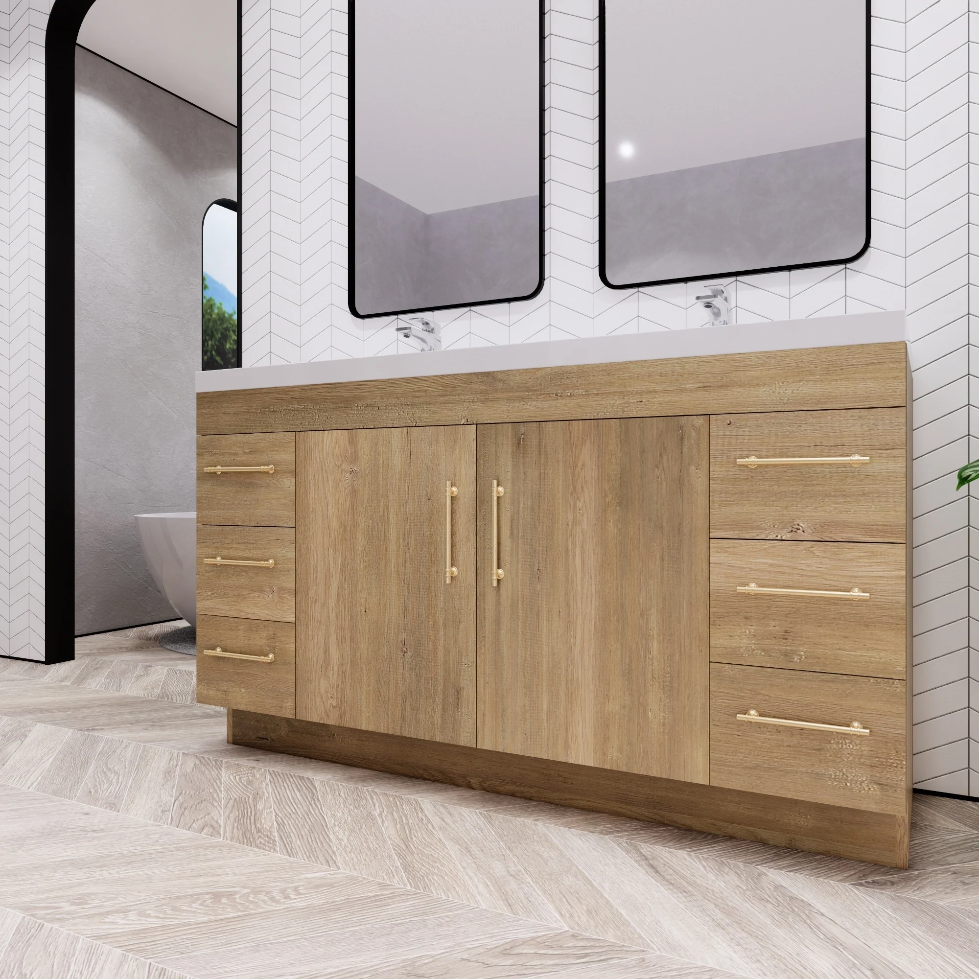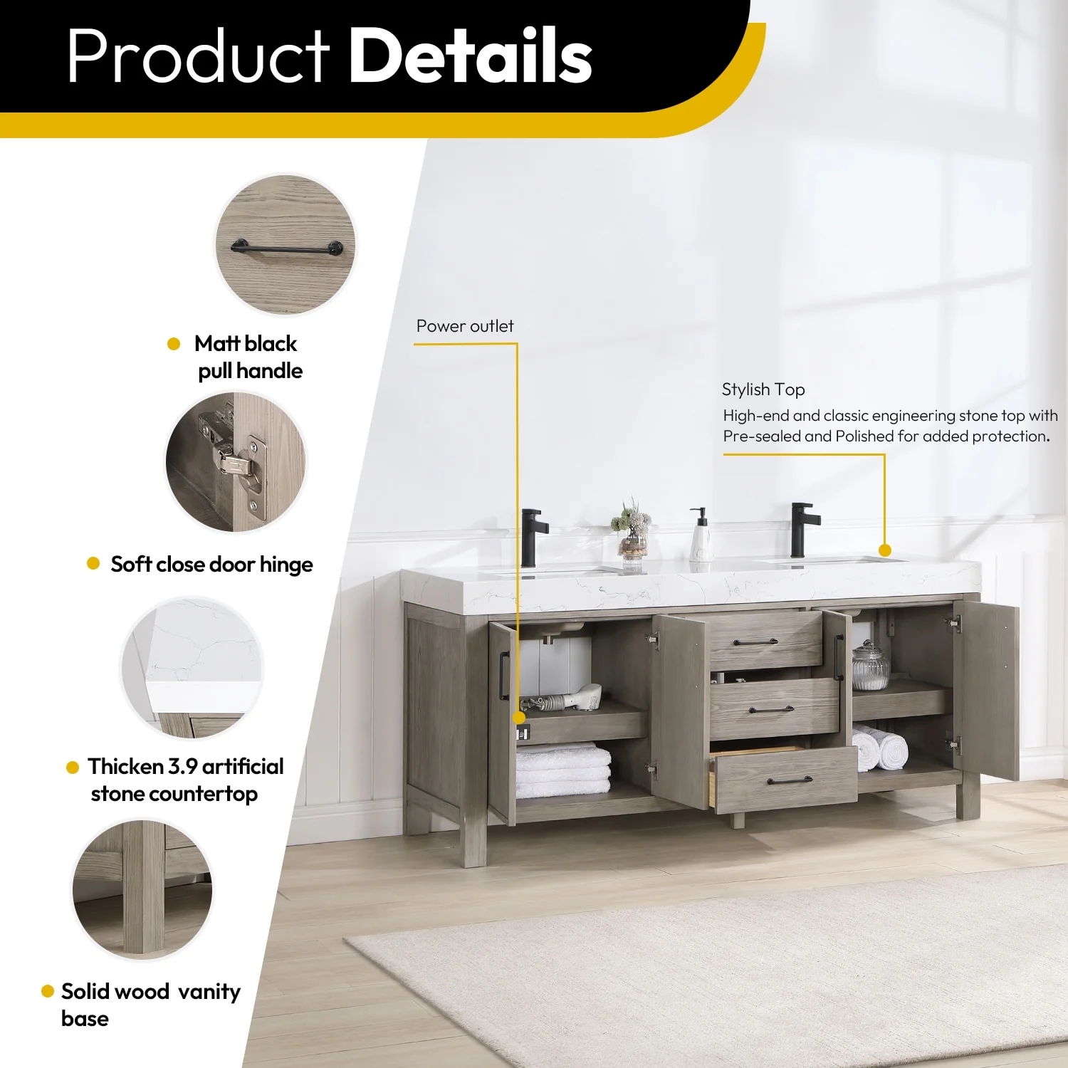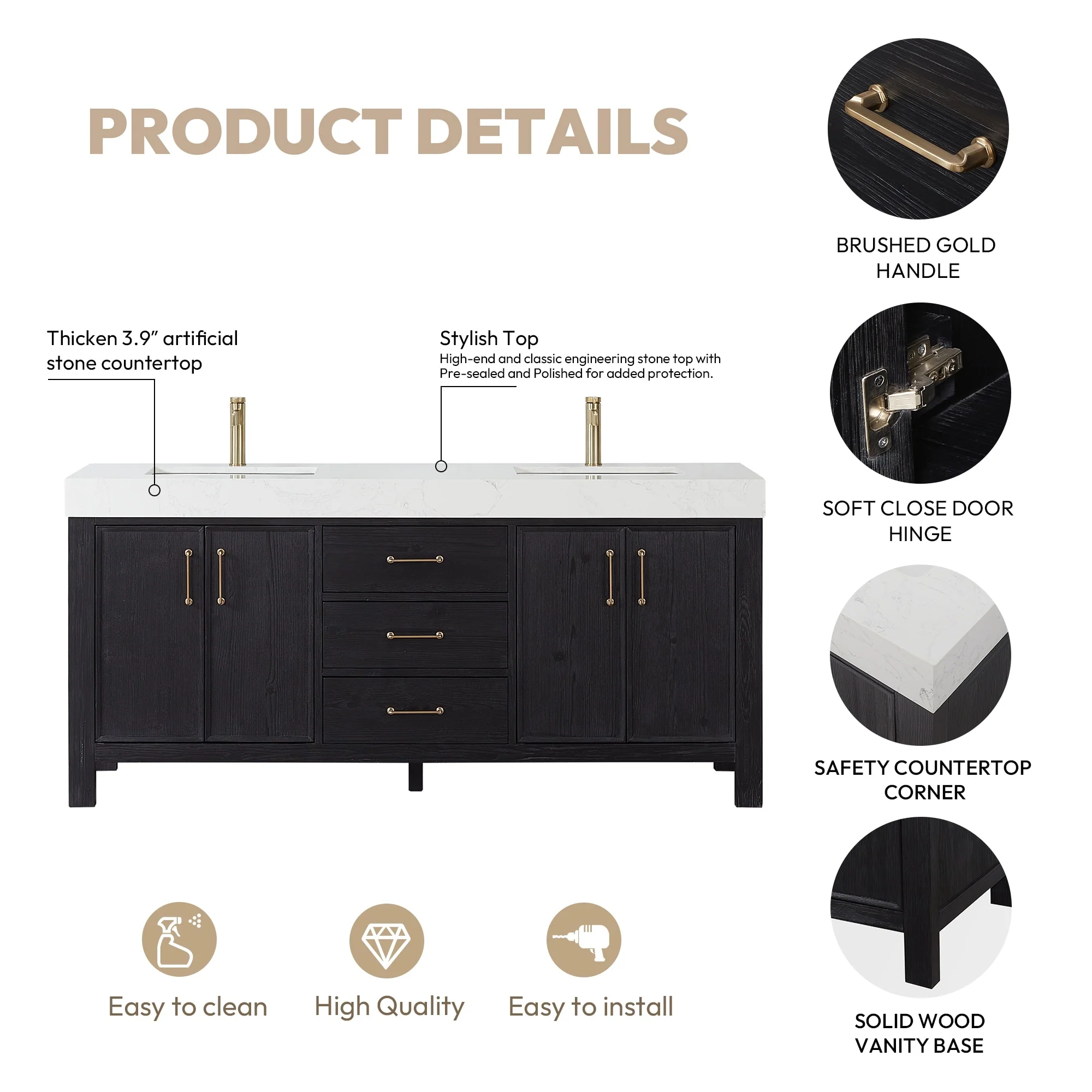 Leon 72 in. Double Bathroom Vanity with Composite Stone Top