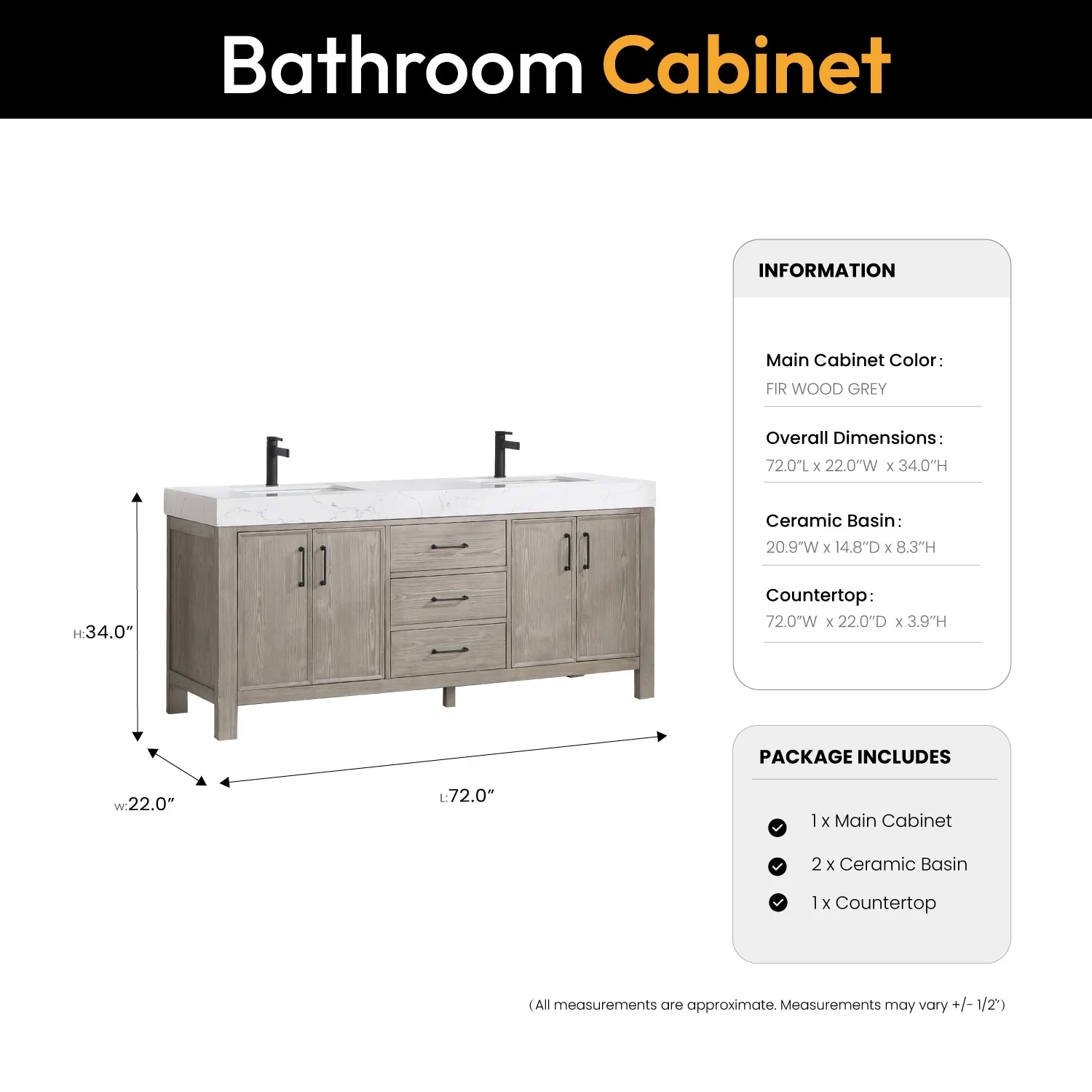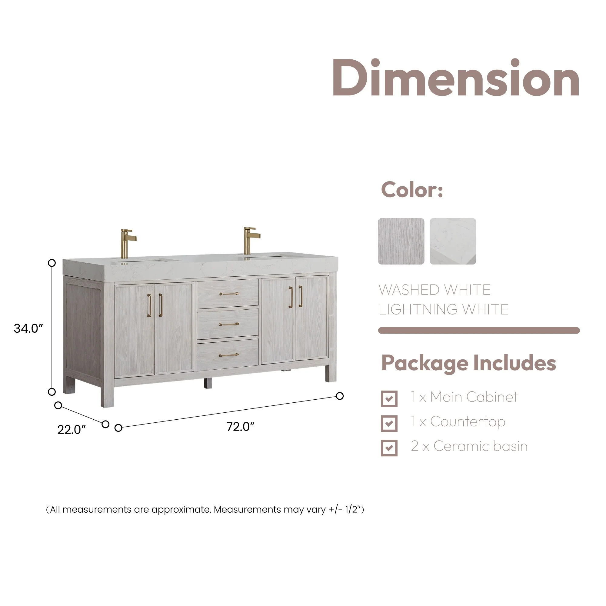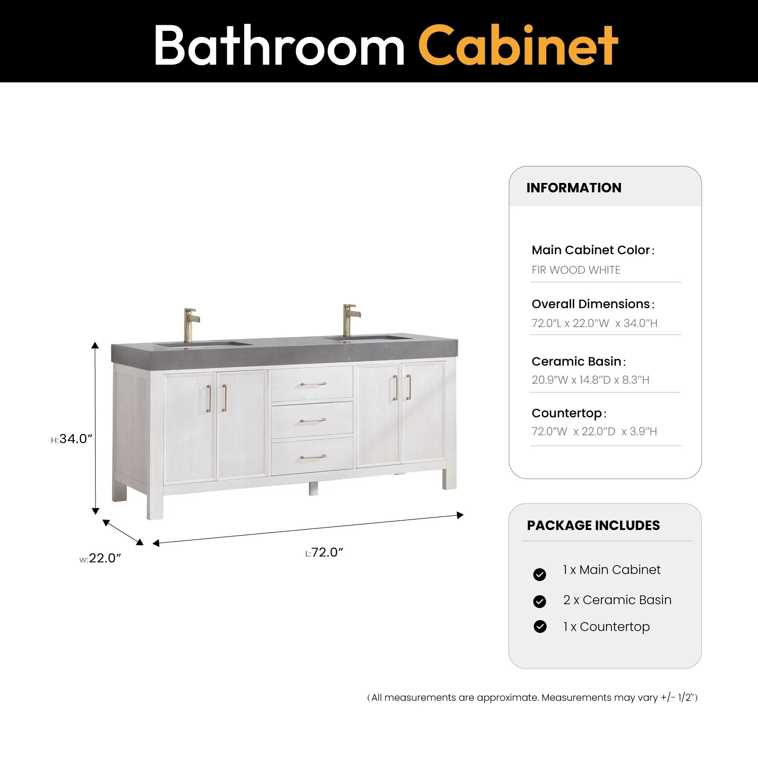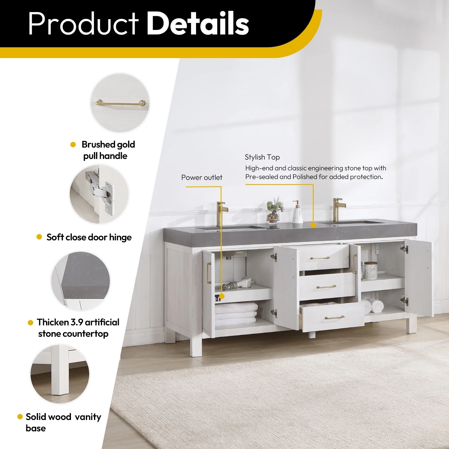 Leon 72 in. Double Bathroom Vanity with Composite Stone Top