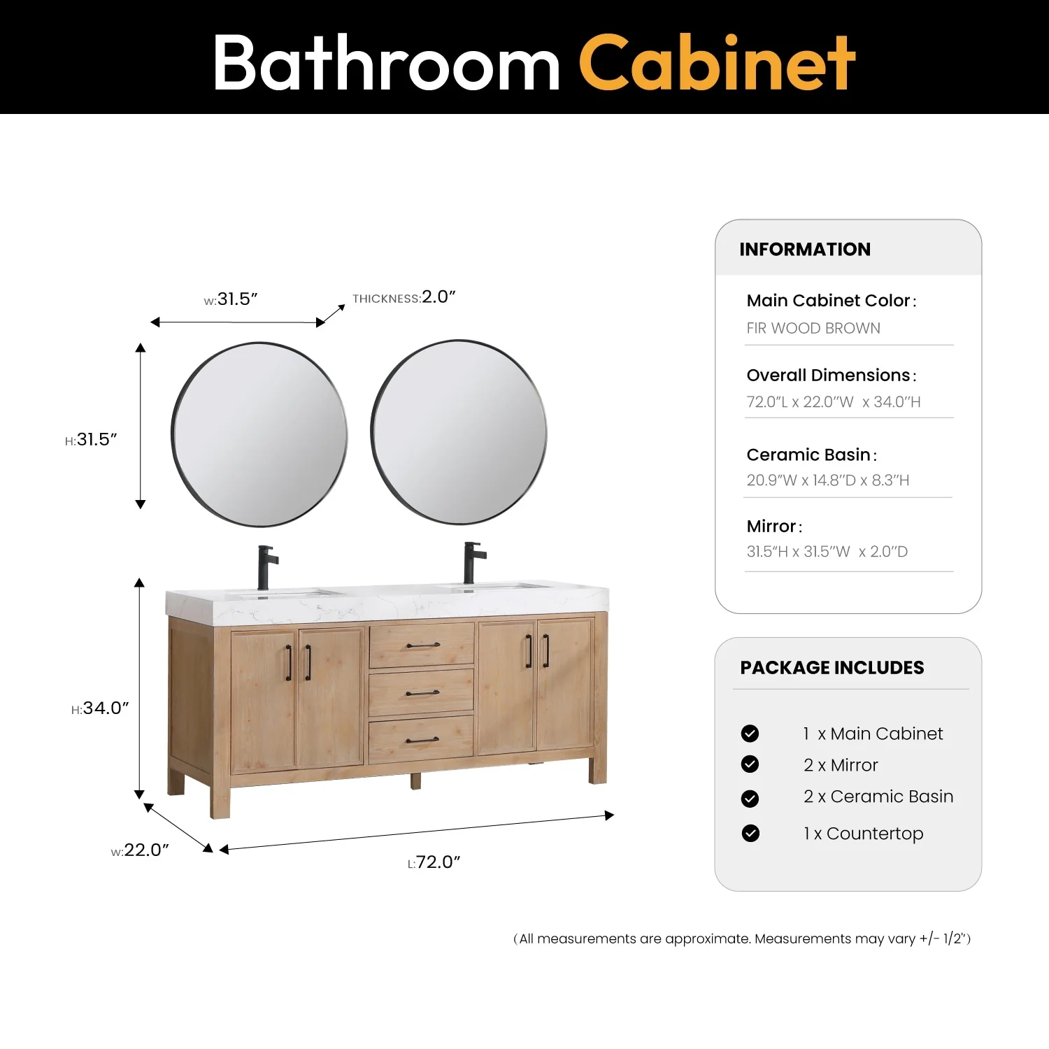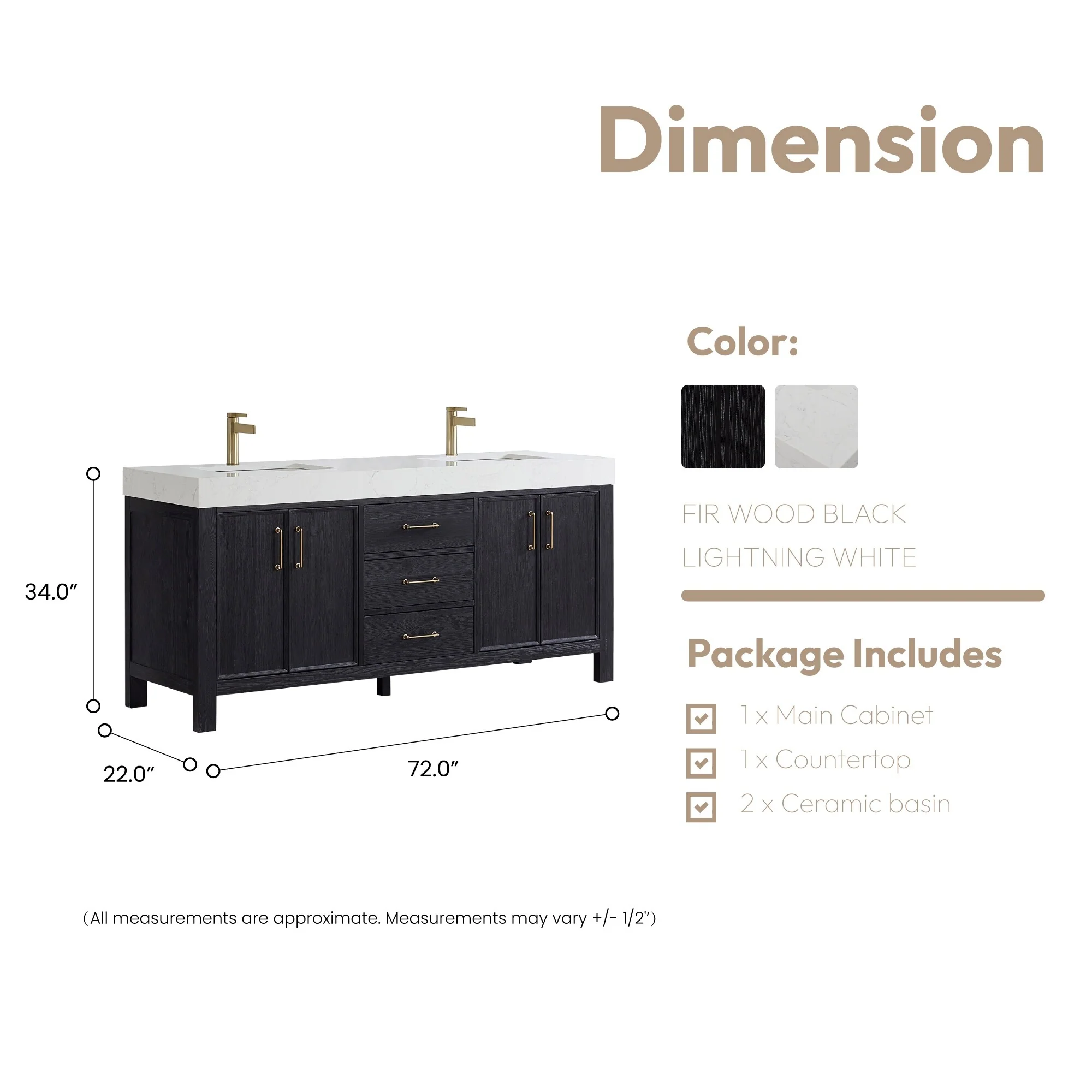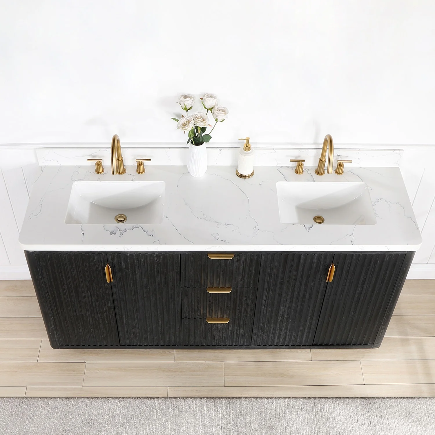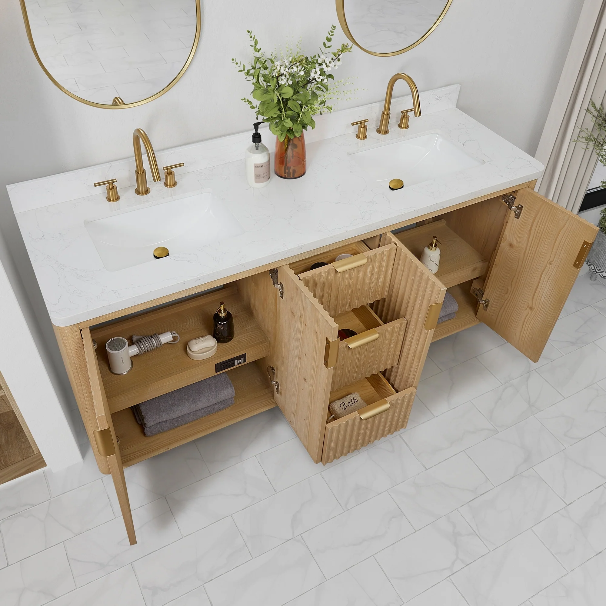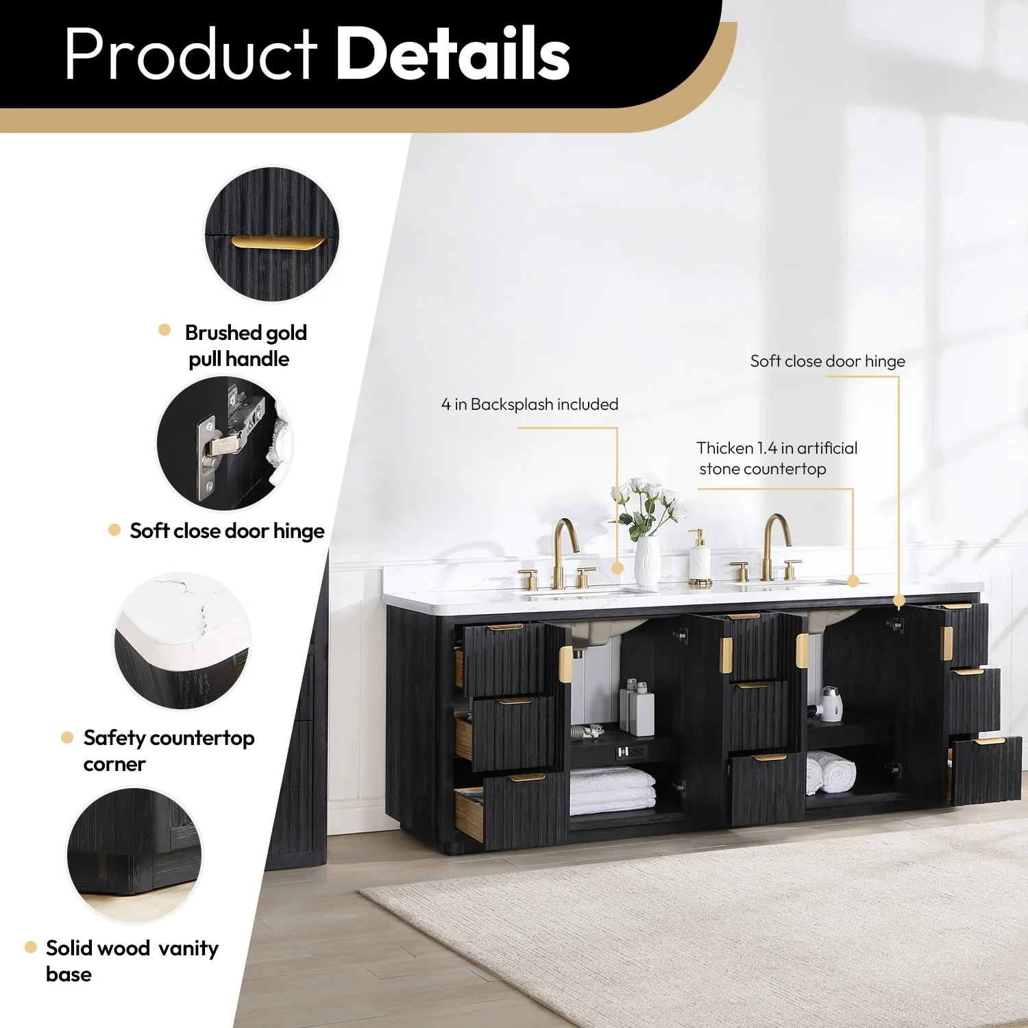 Leon 72 in. Double Bathroom Vanity with Composite Stone Top