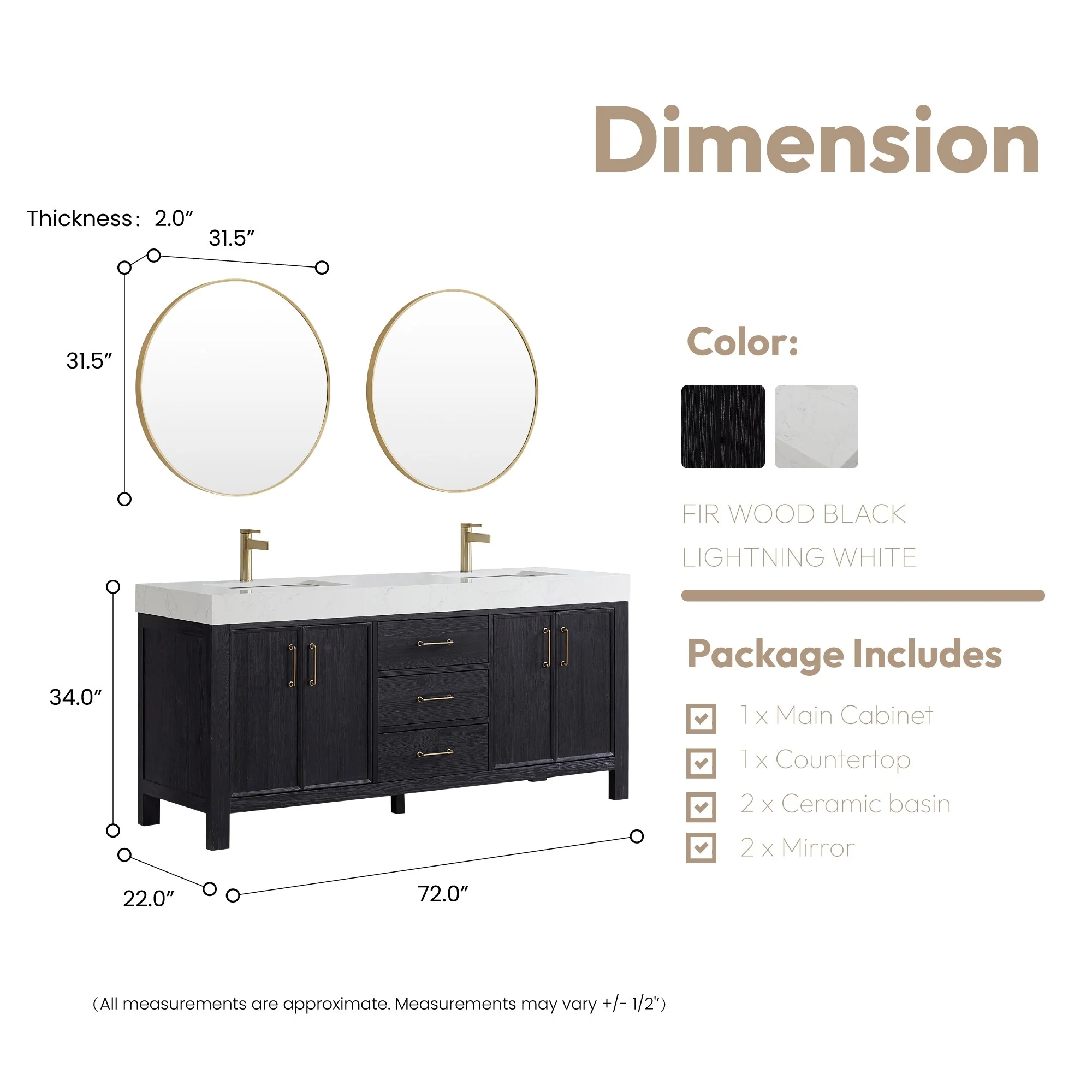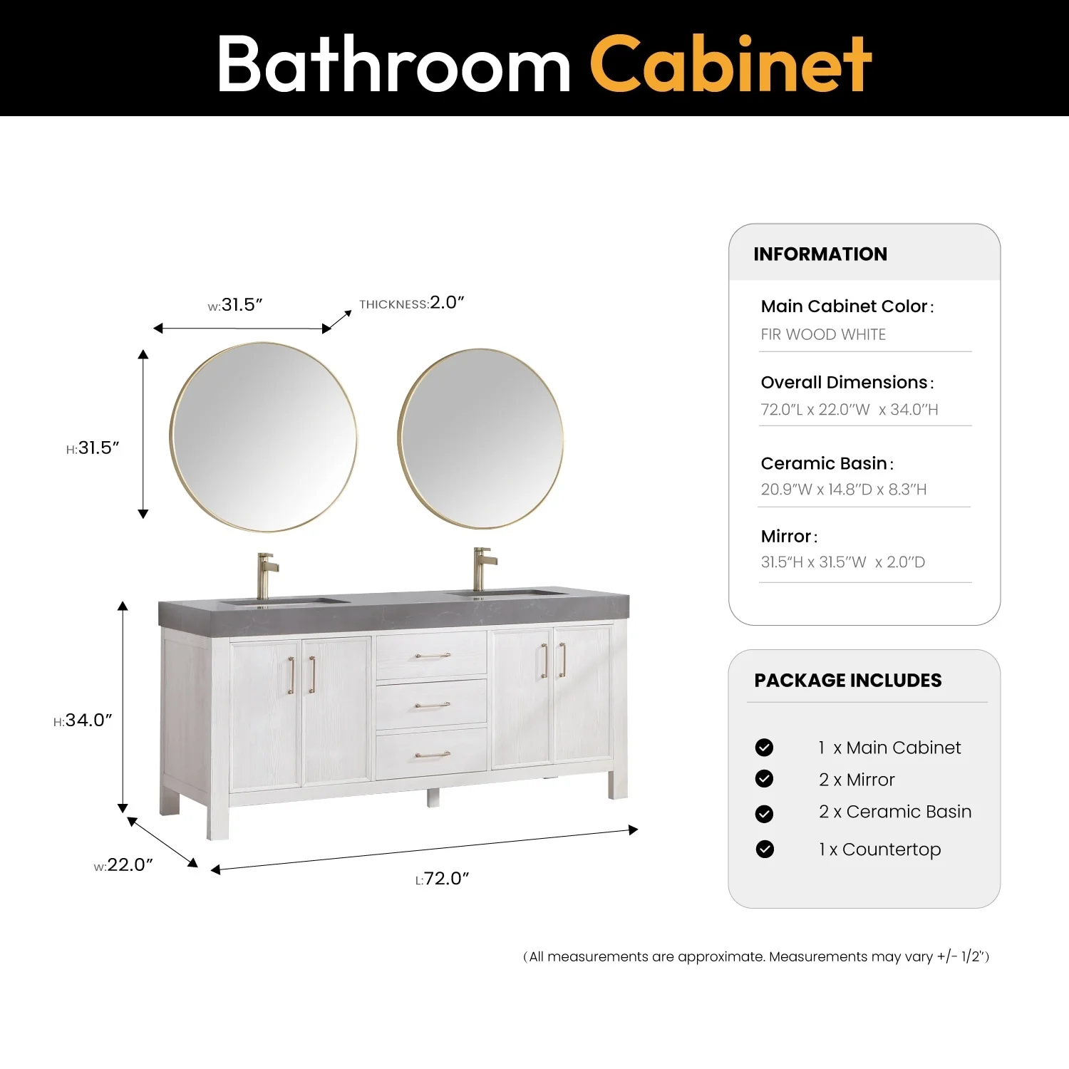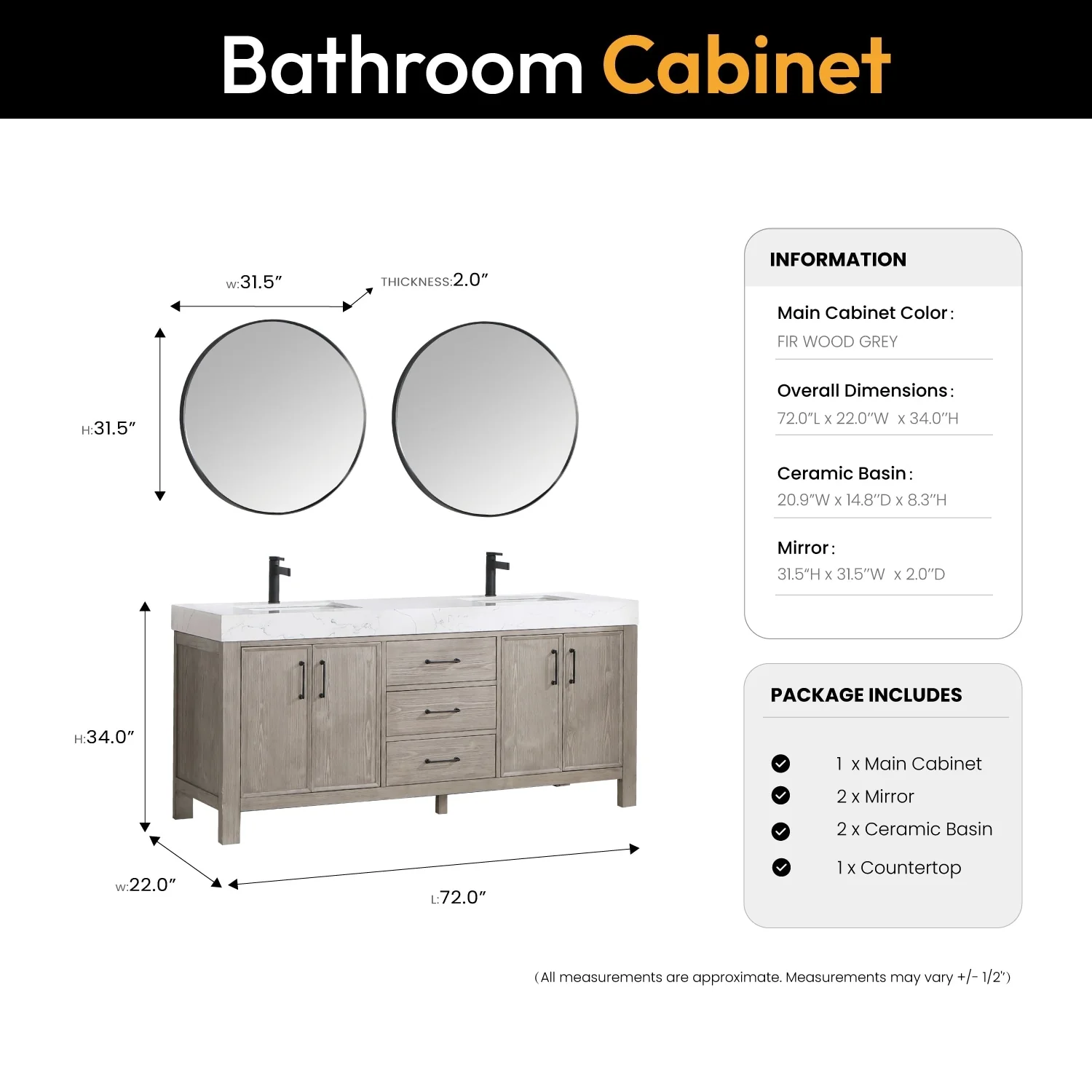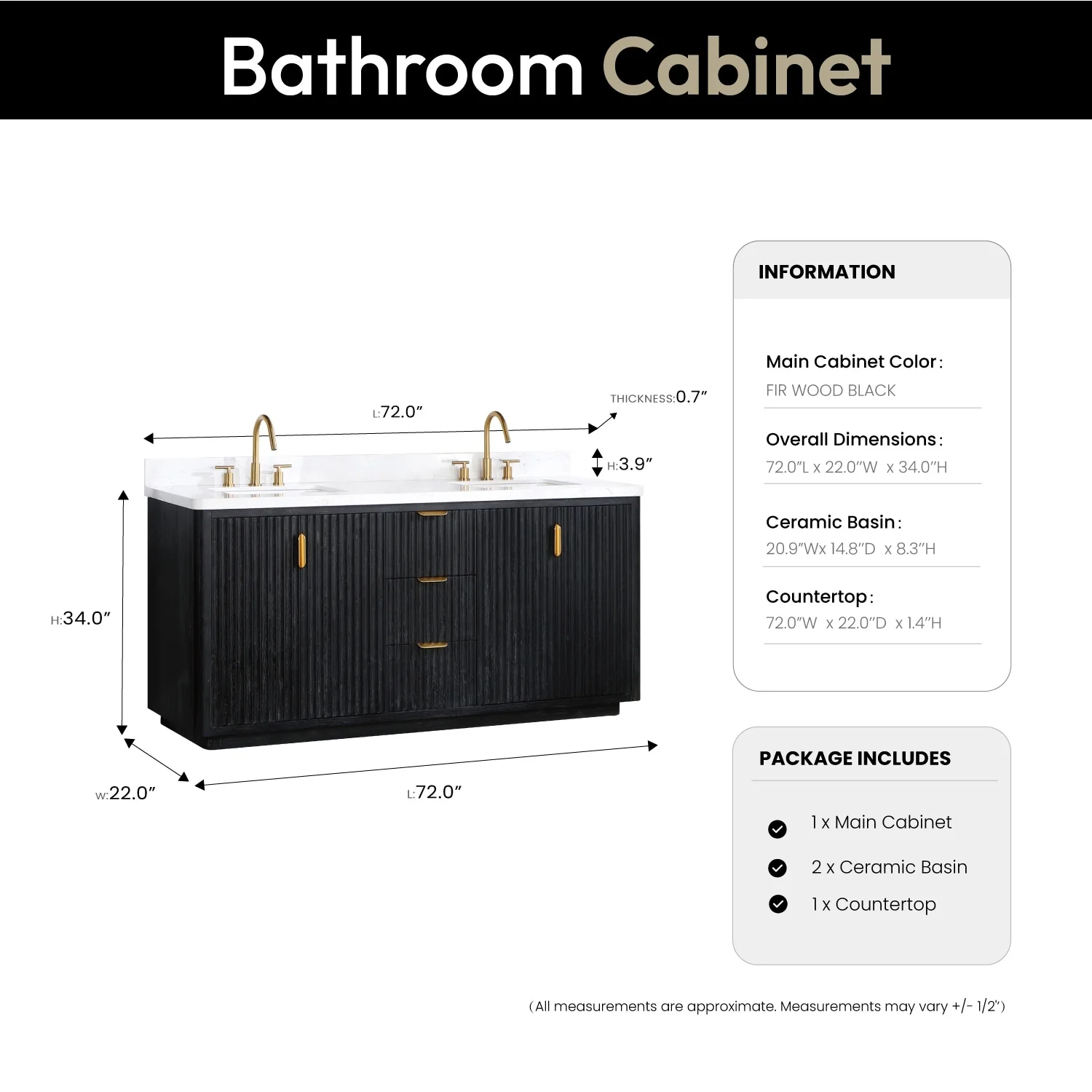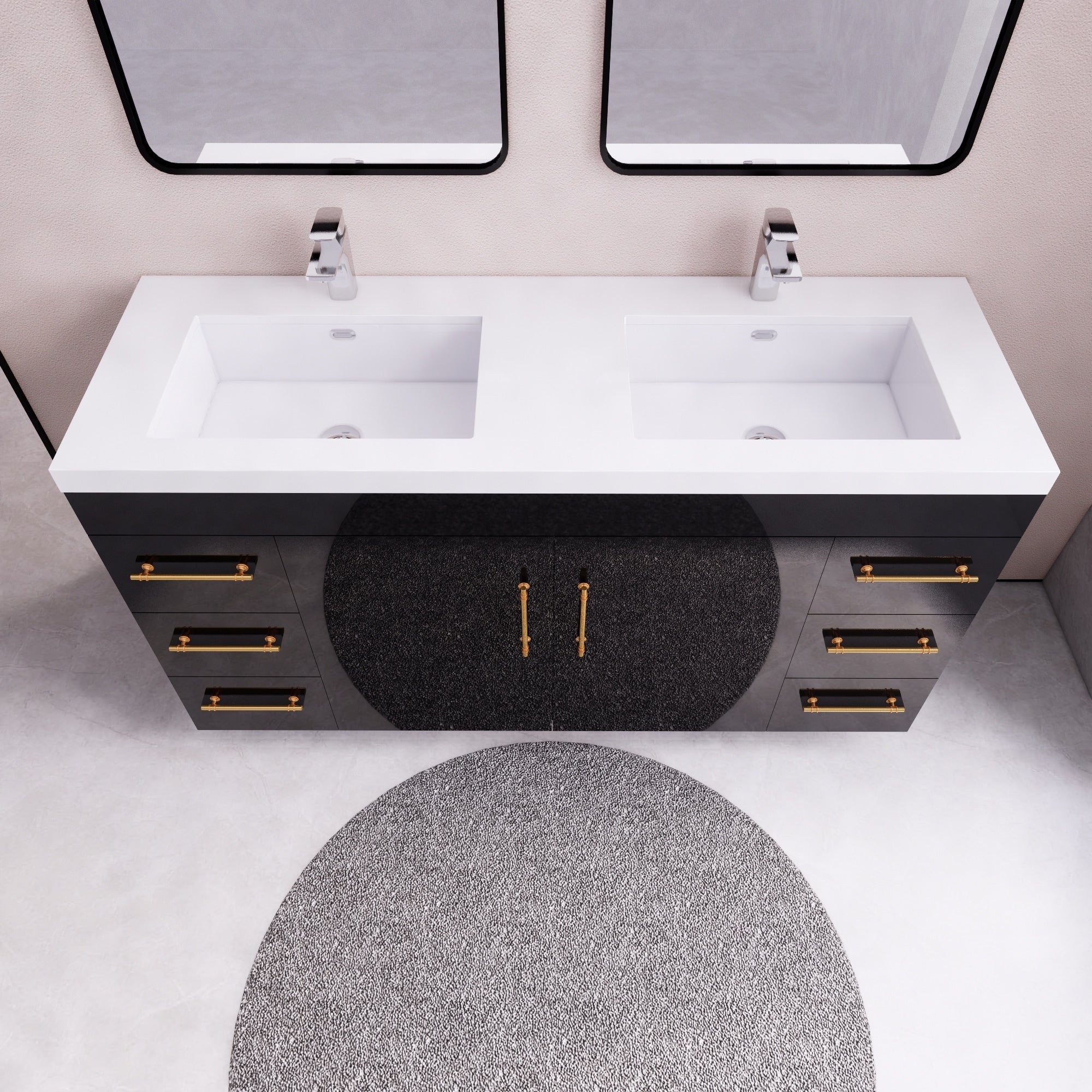 Leon 72 in. Double Bathroom Vanity with Composite Stone Top
