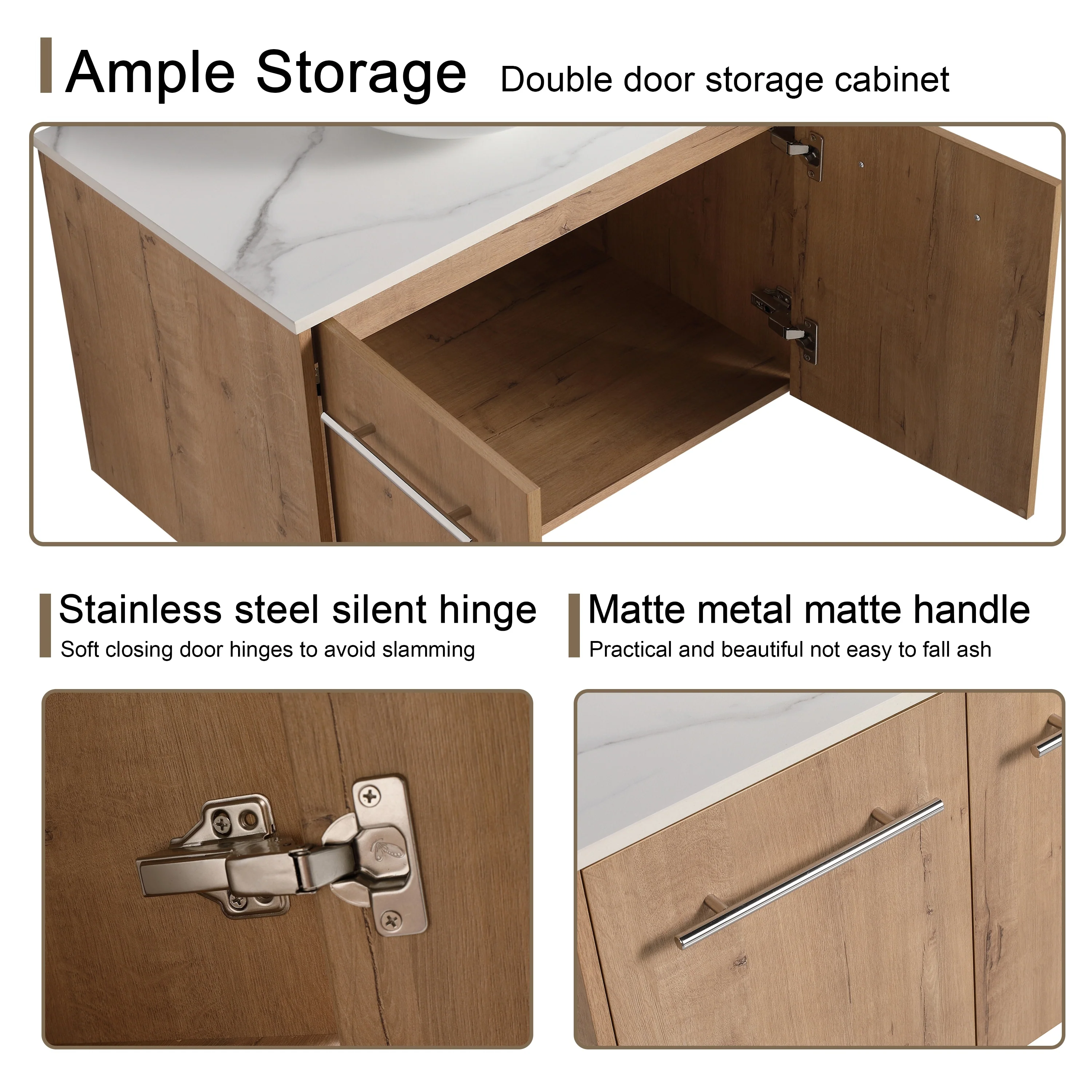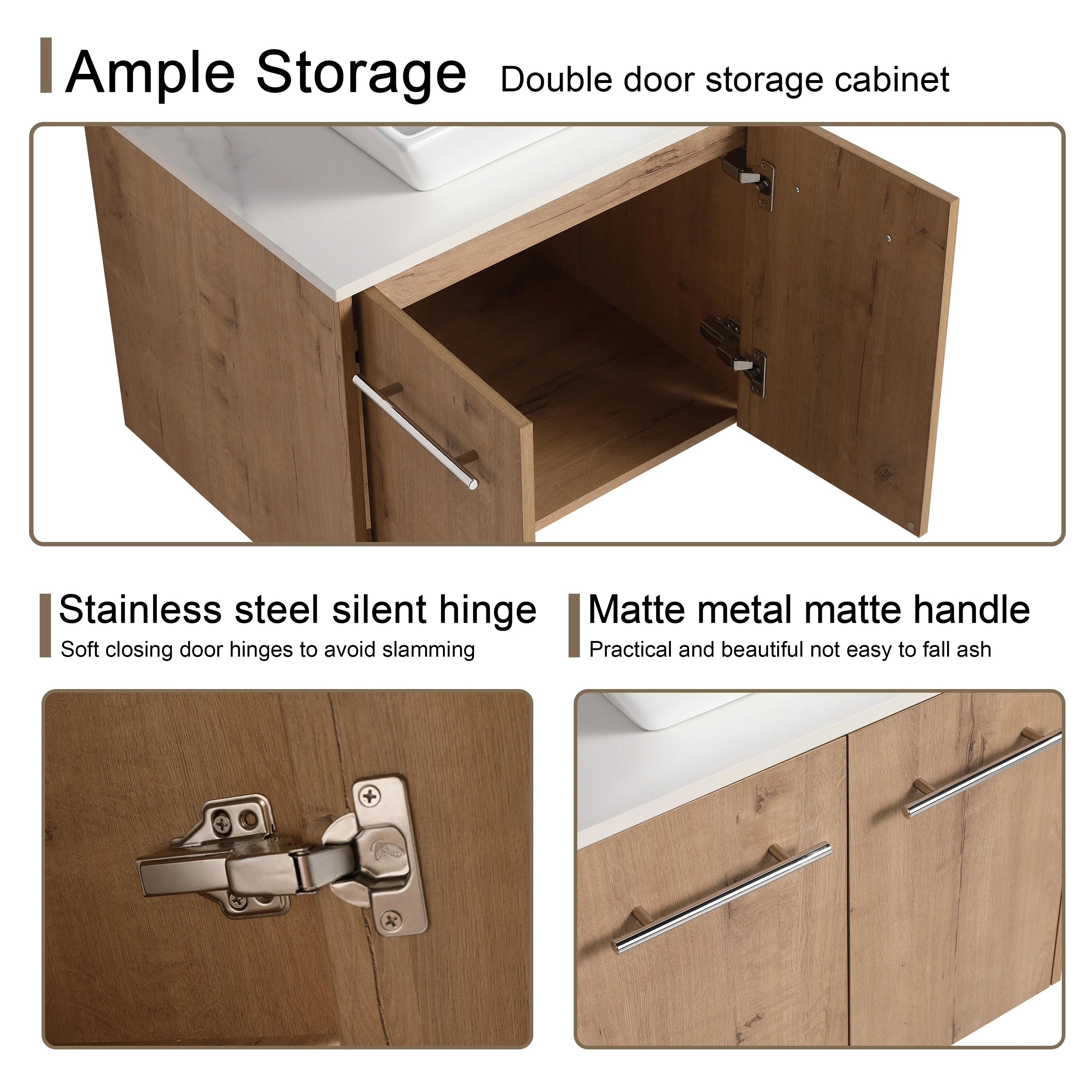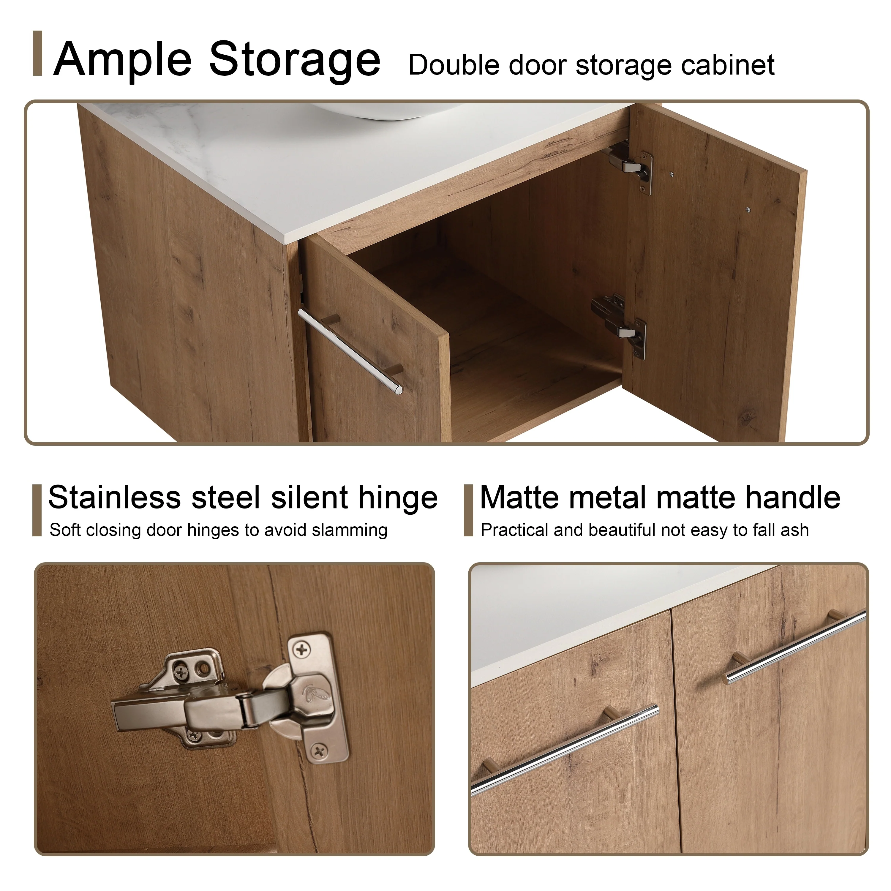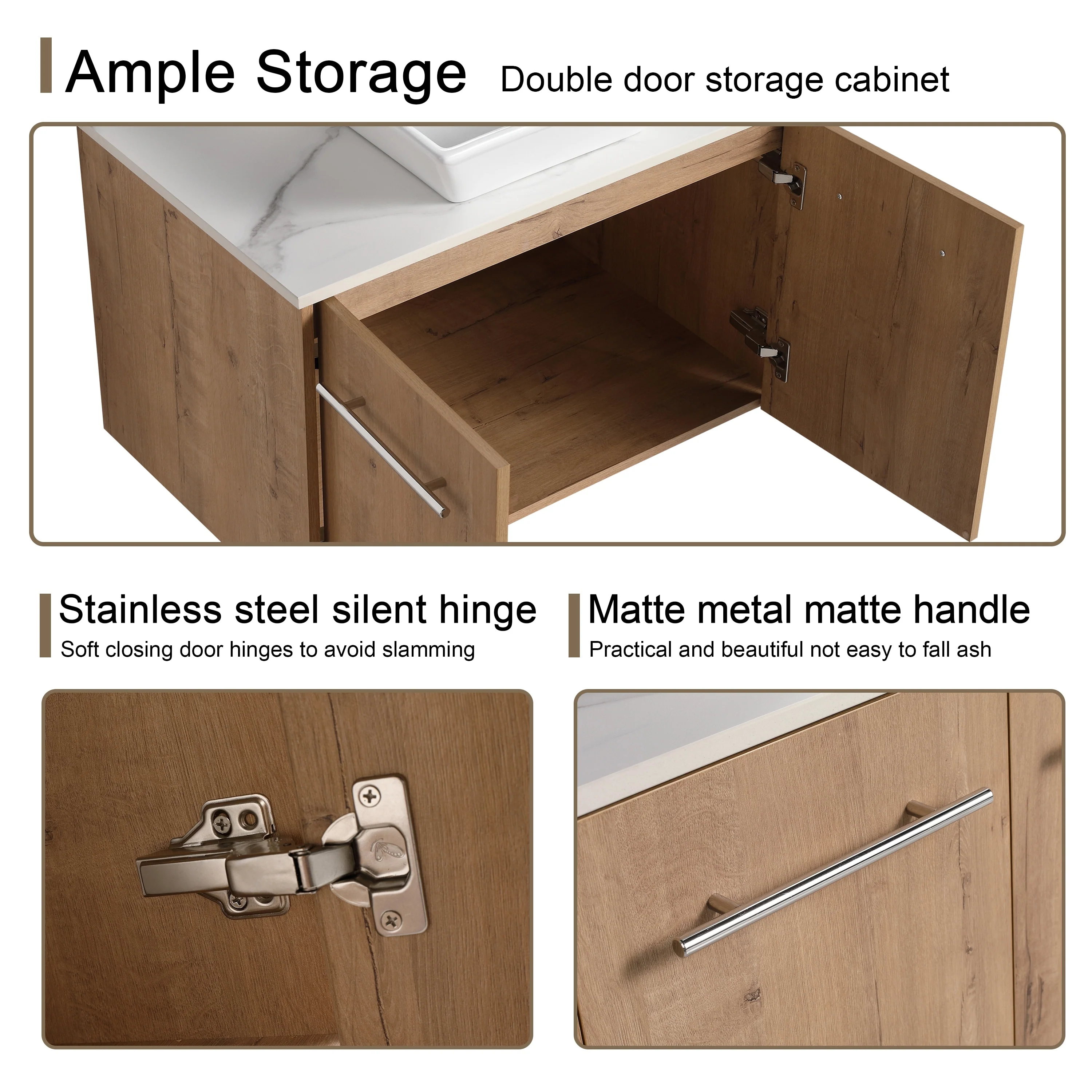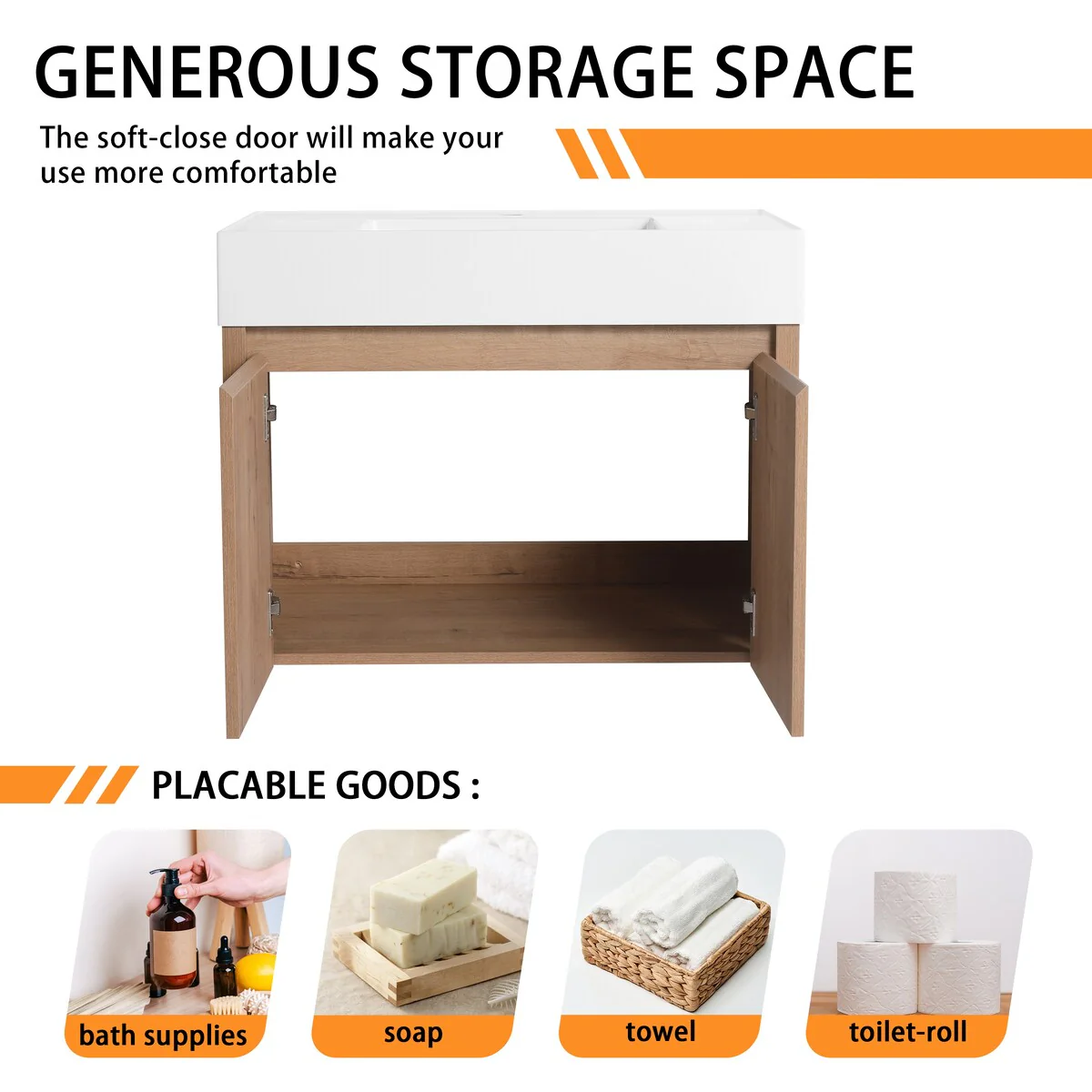 Malwee 24"/30" Floating Bathroom Vanity, Wall Mounted Bathroom Vanity with Ceramic Sink,Soft Close Doors