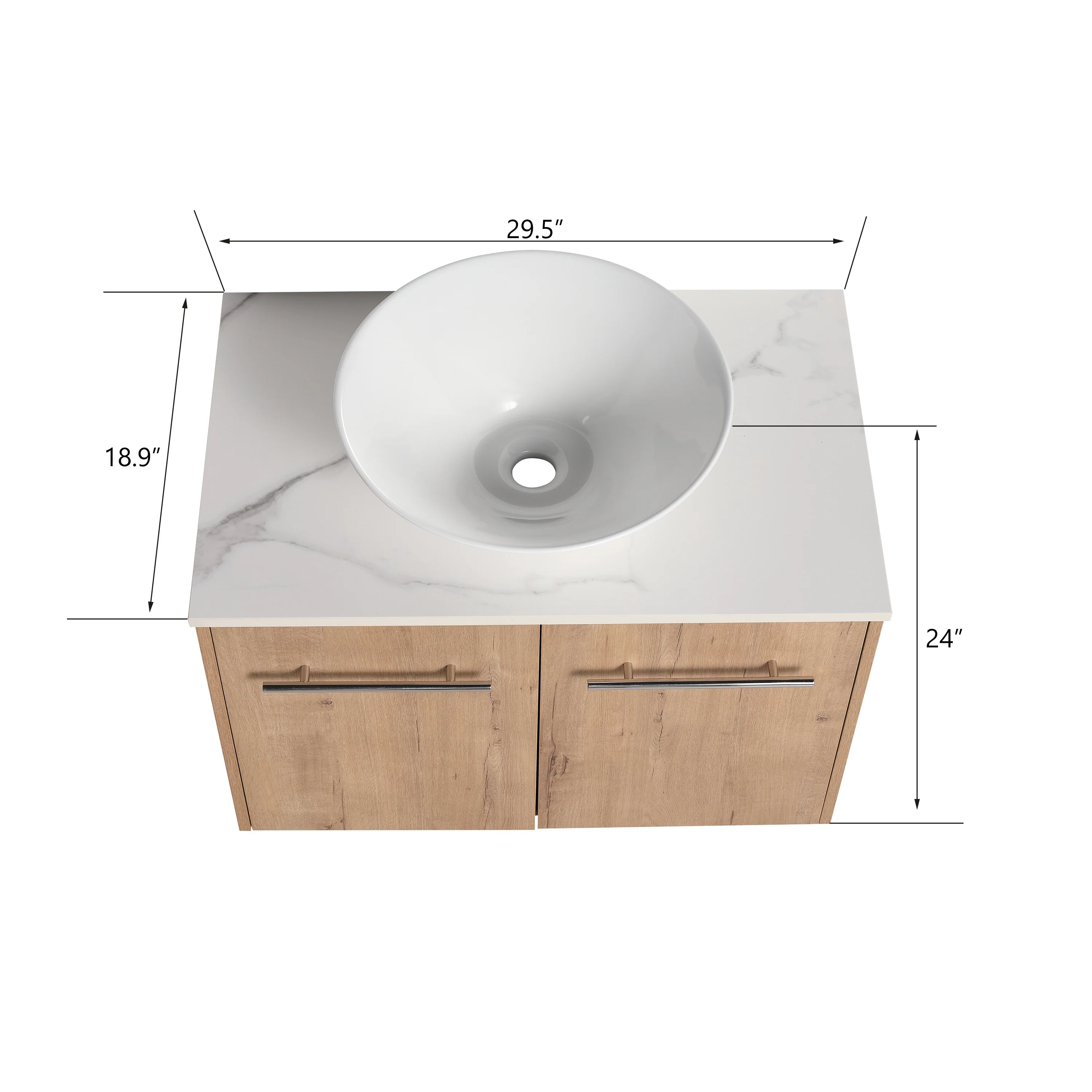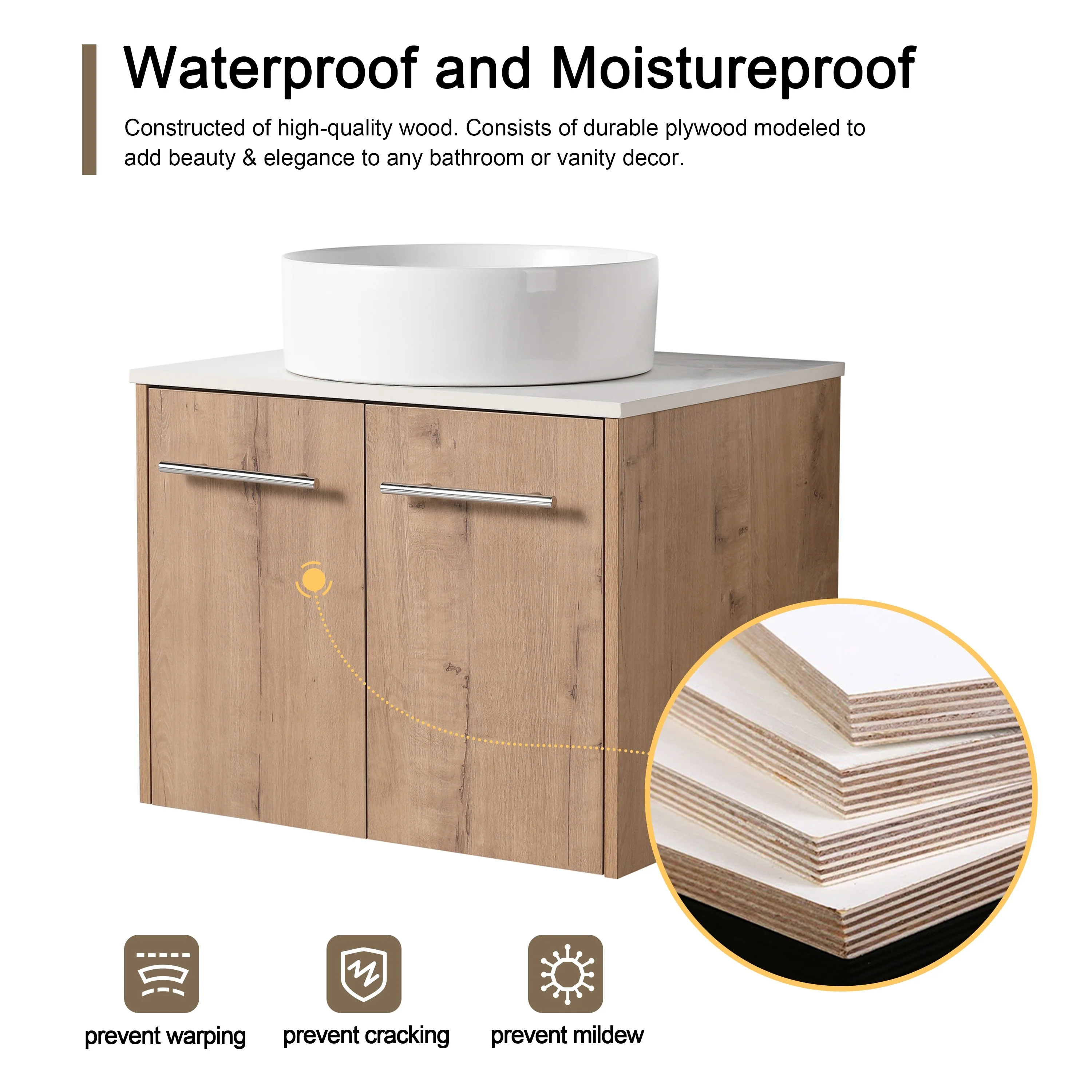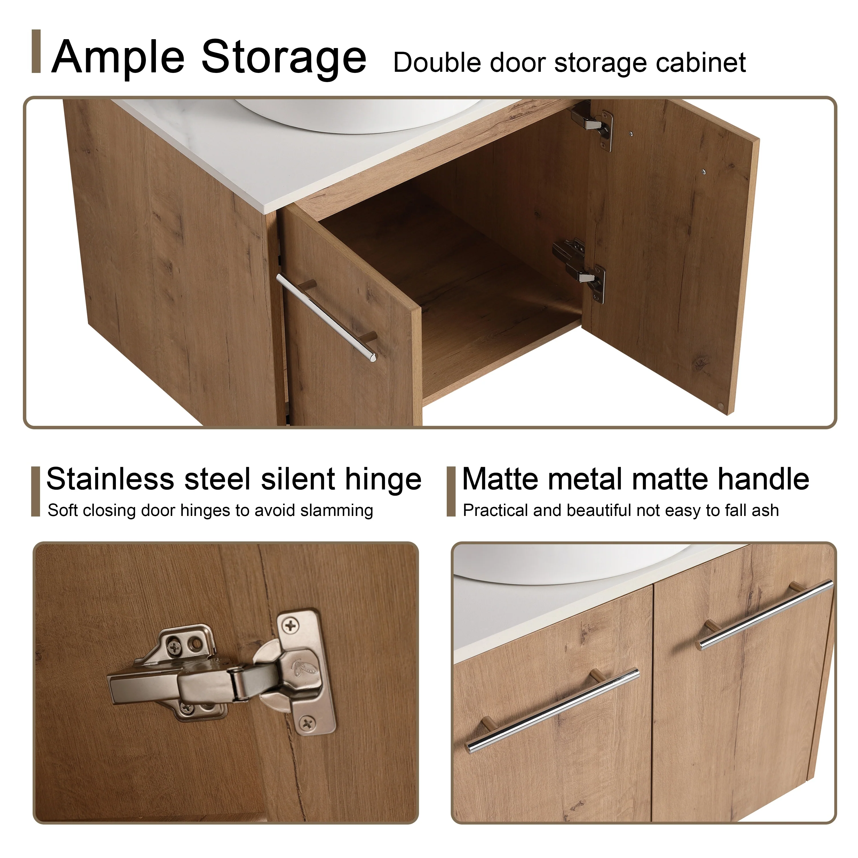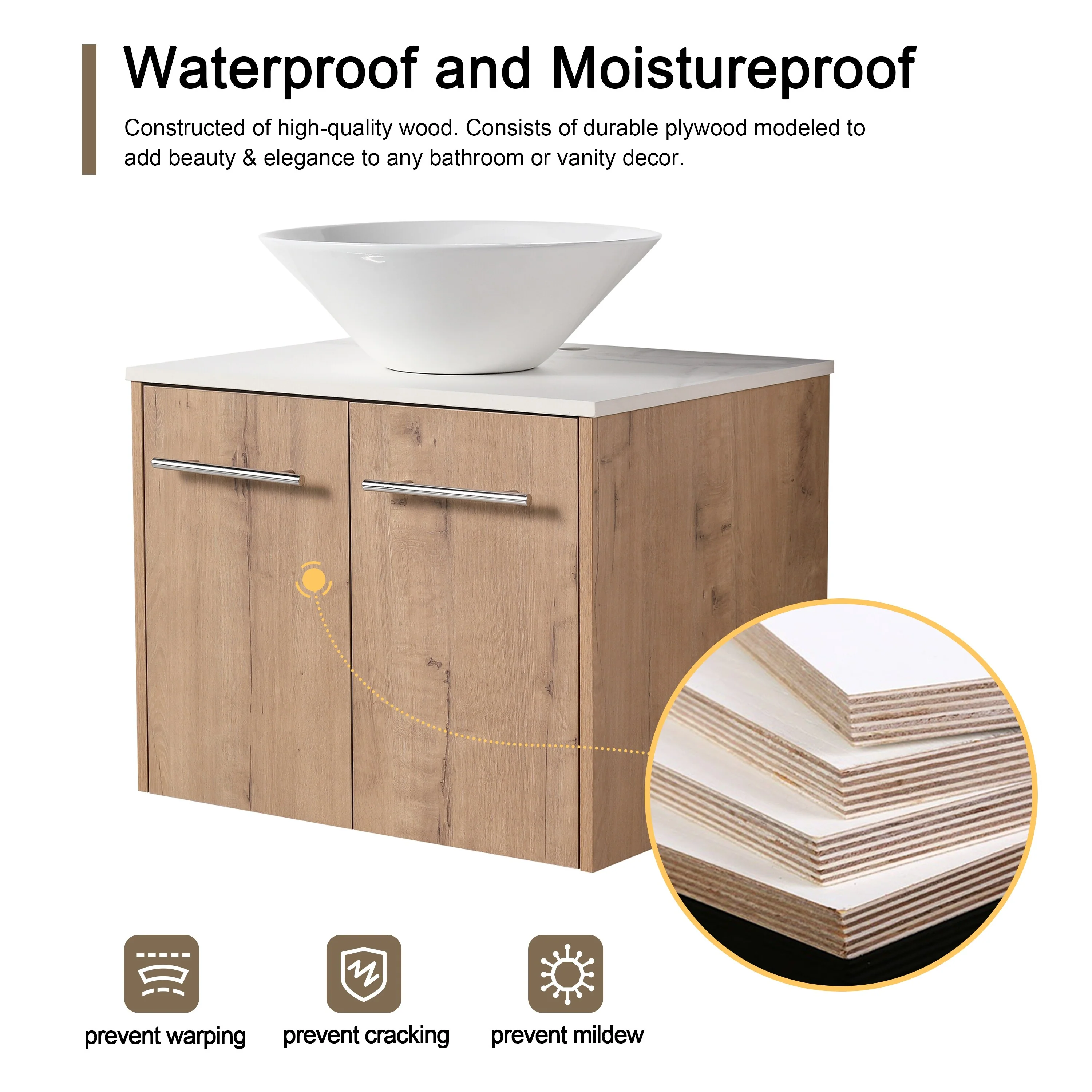 Malwee 24"/30" Floating Bathroom Vanity, Wall Mounted Bathroom Vanity with Ceramic Sink,Soft Close Doors