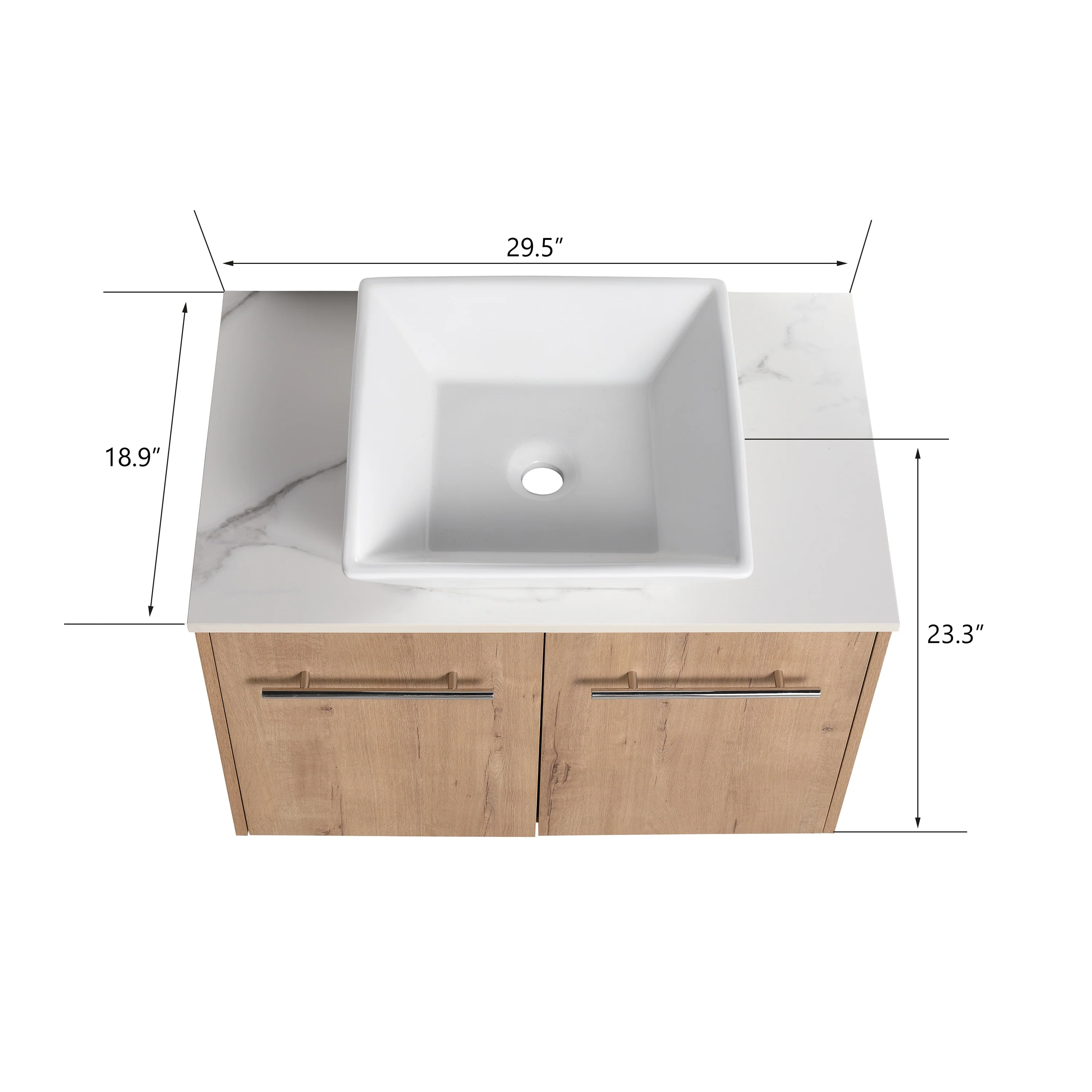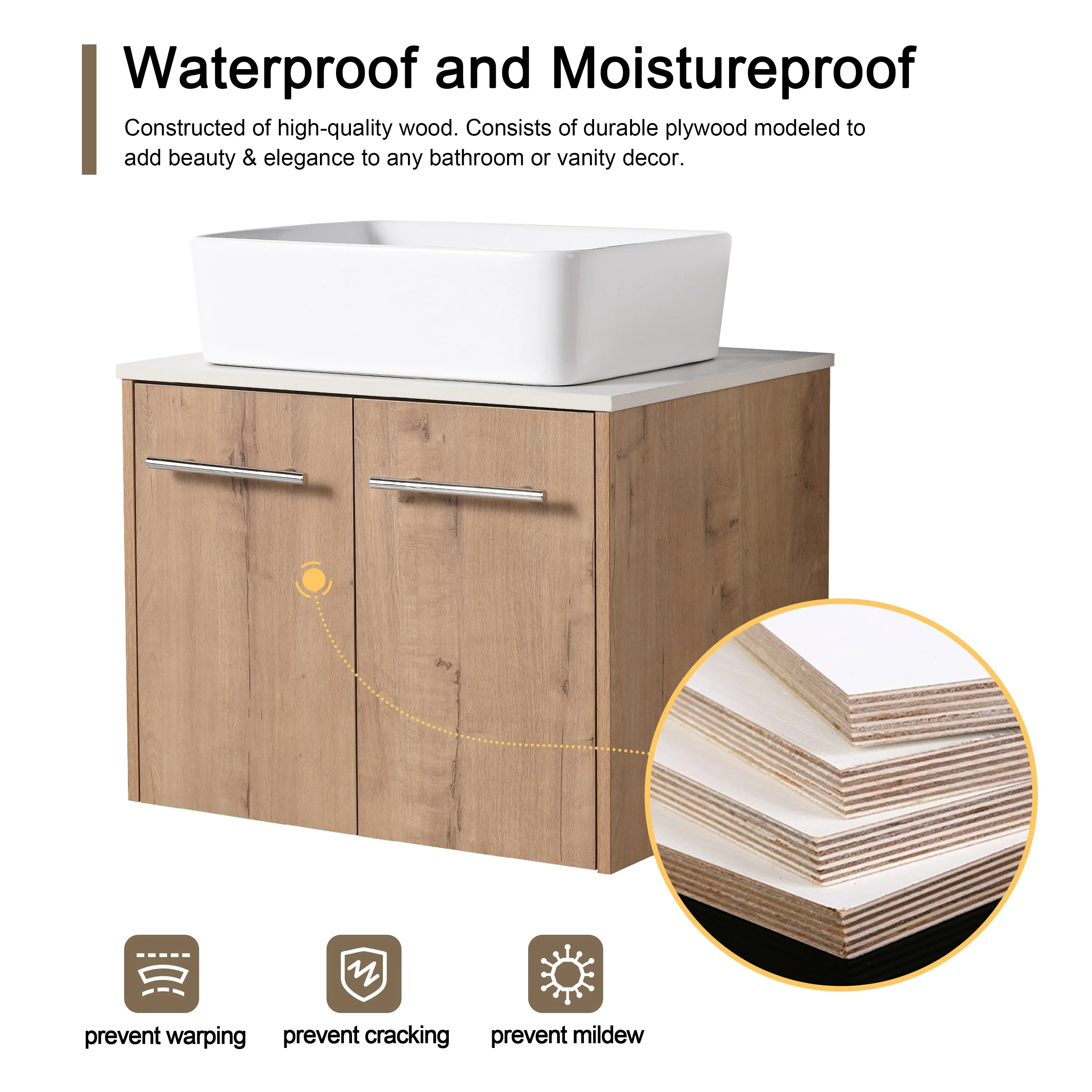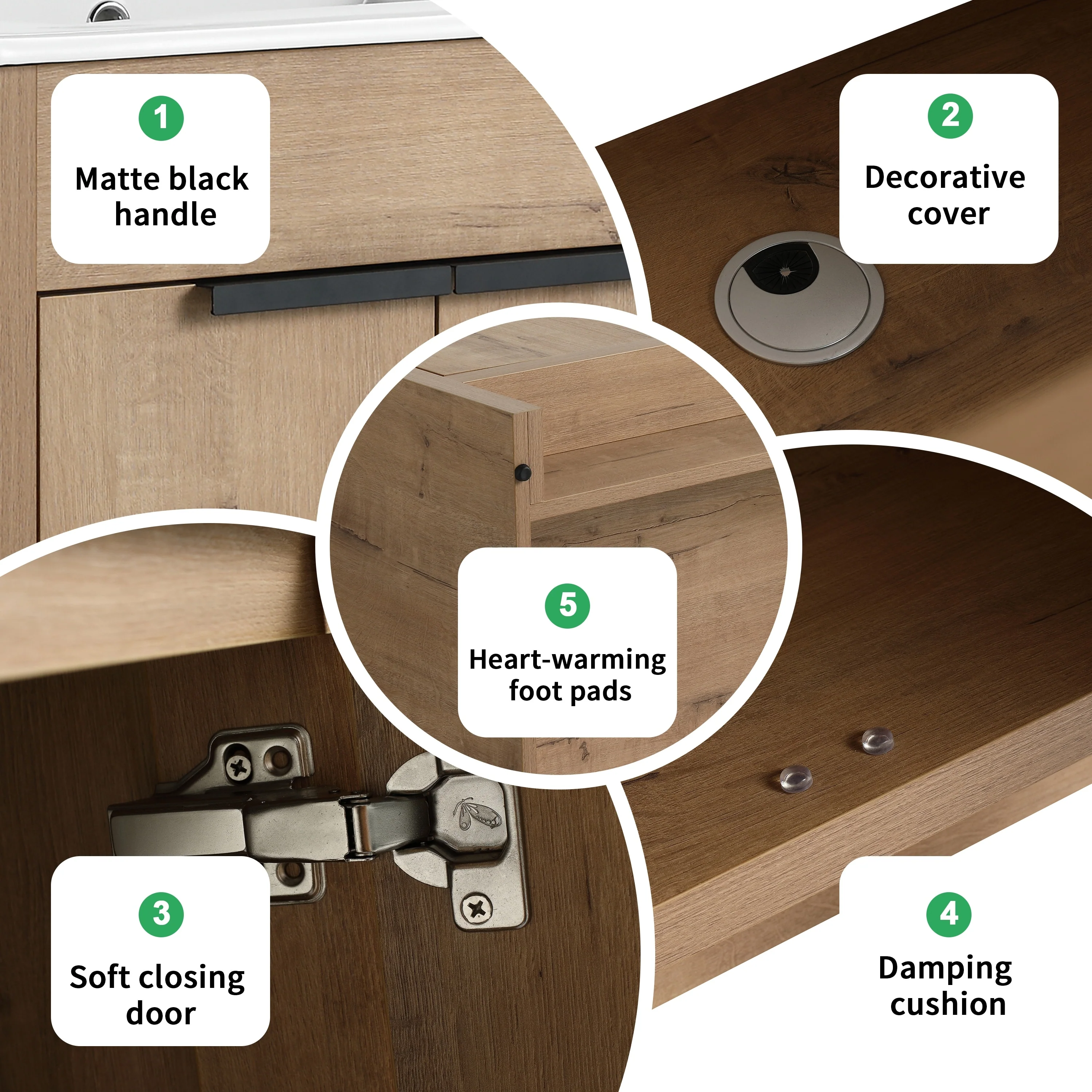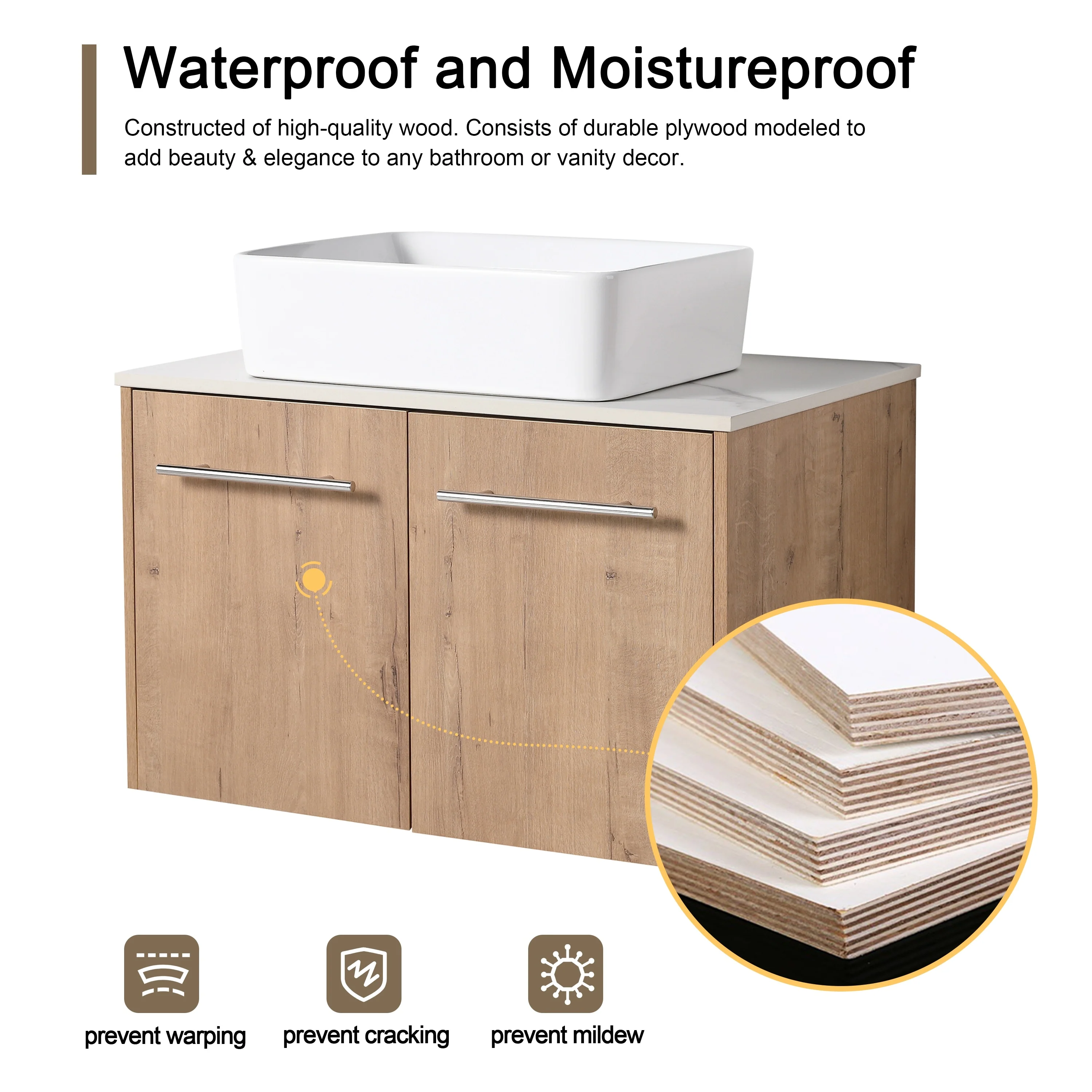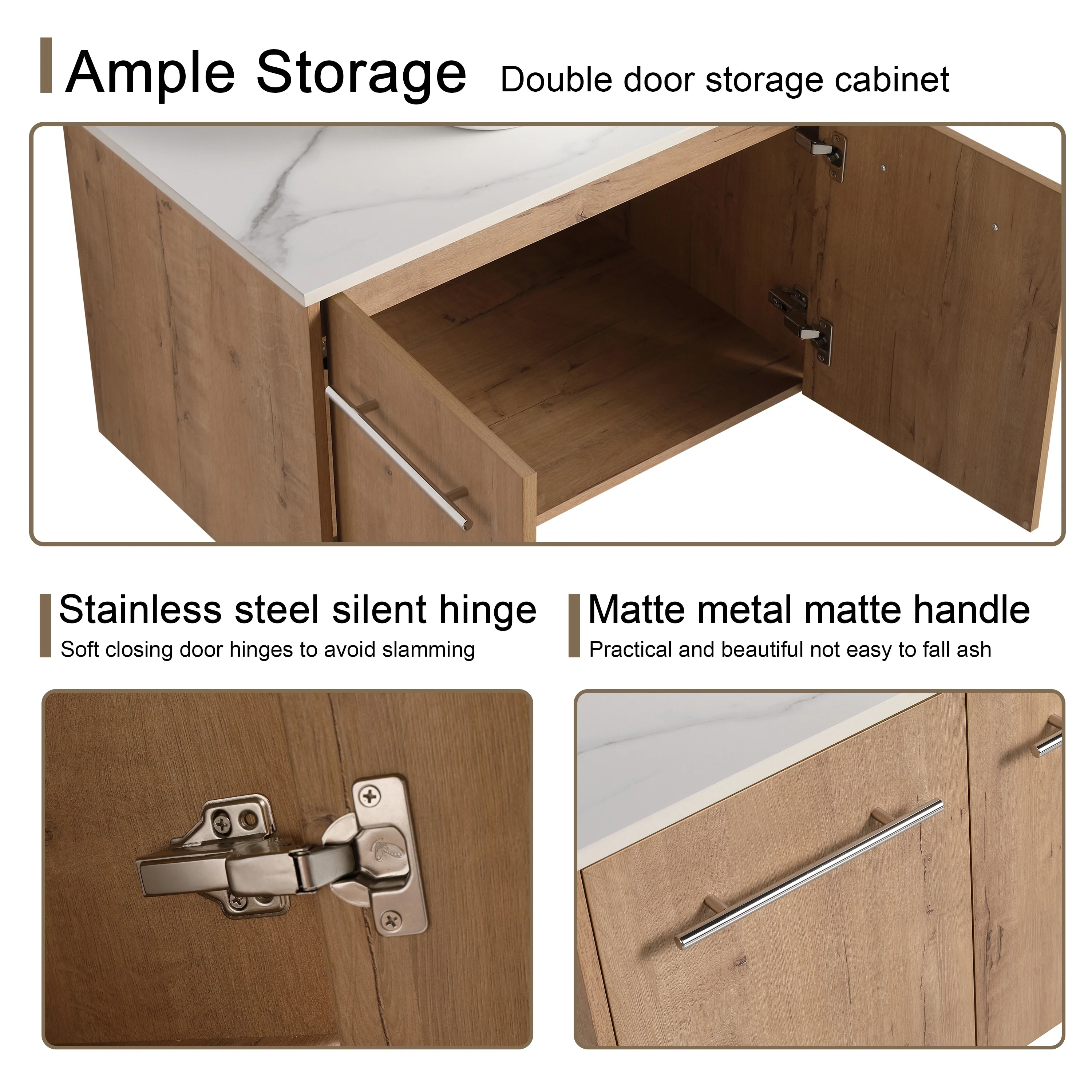 Malwee 24"/30" Floating Bathroom Vanity, Wall Mounted Bathroom Vanity with Ceramic Sink,Soft Close Doors