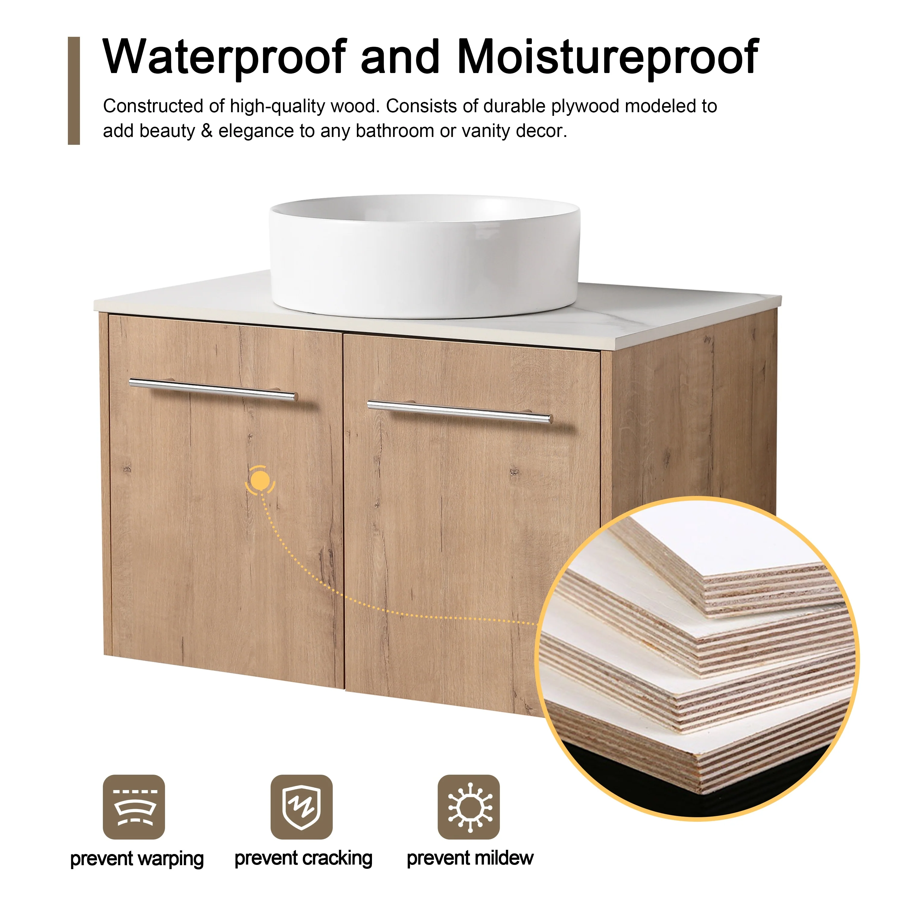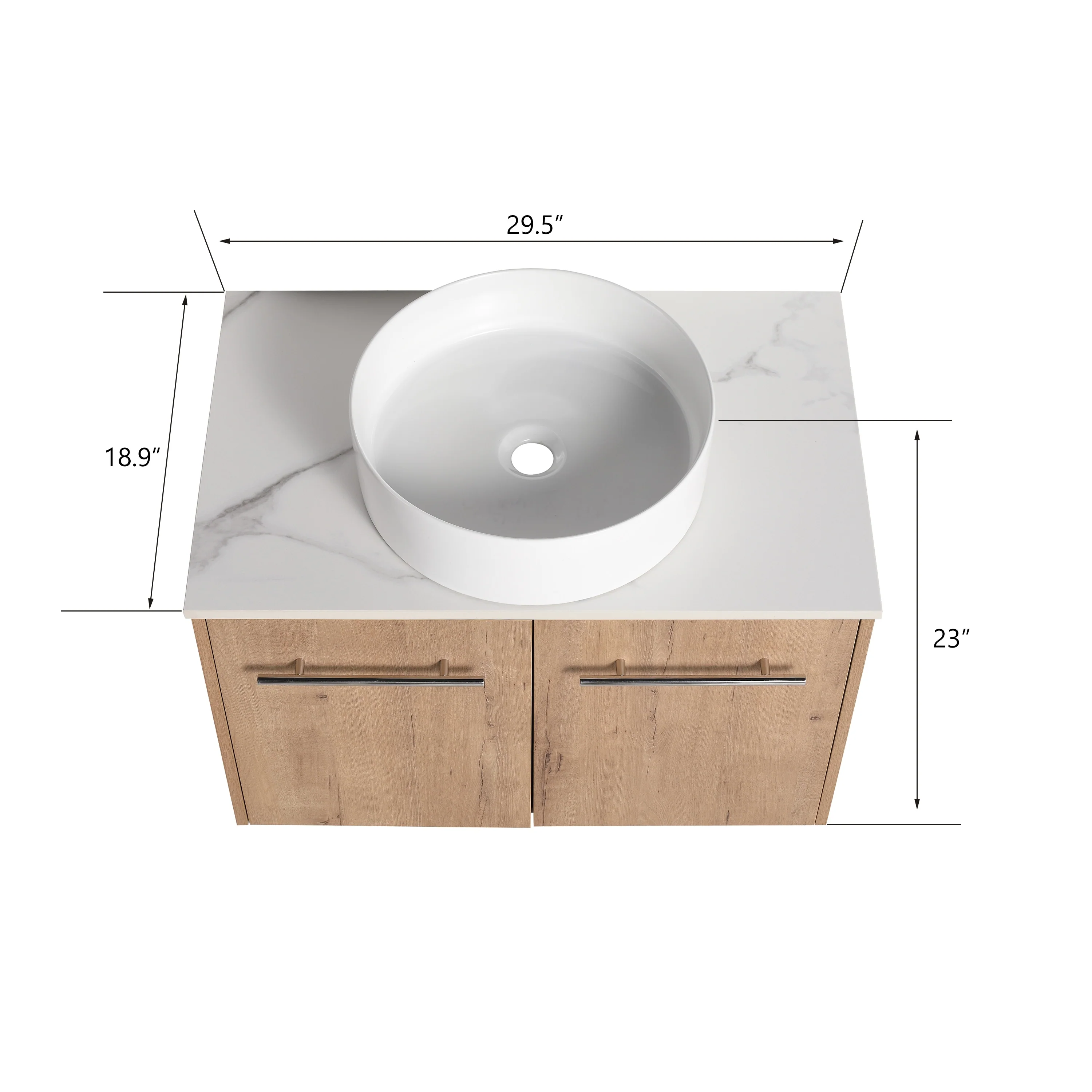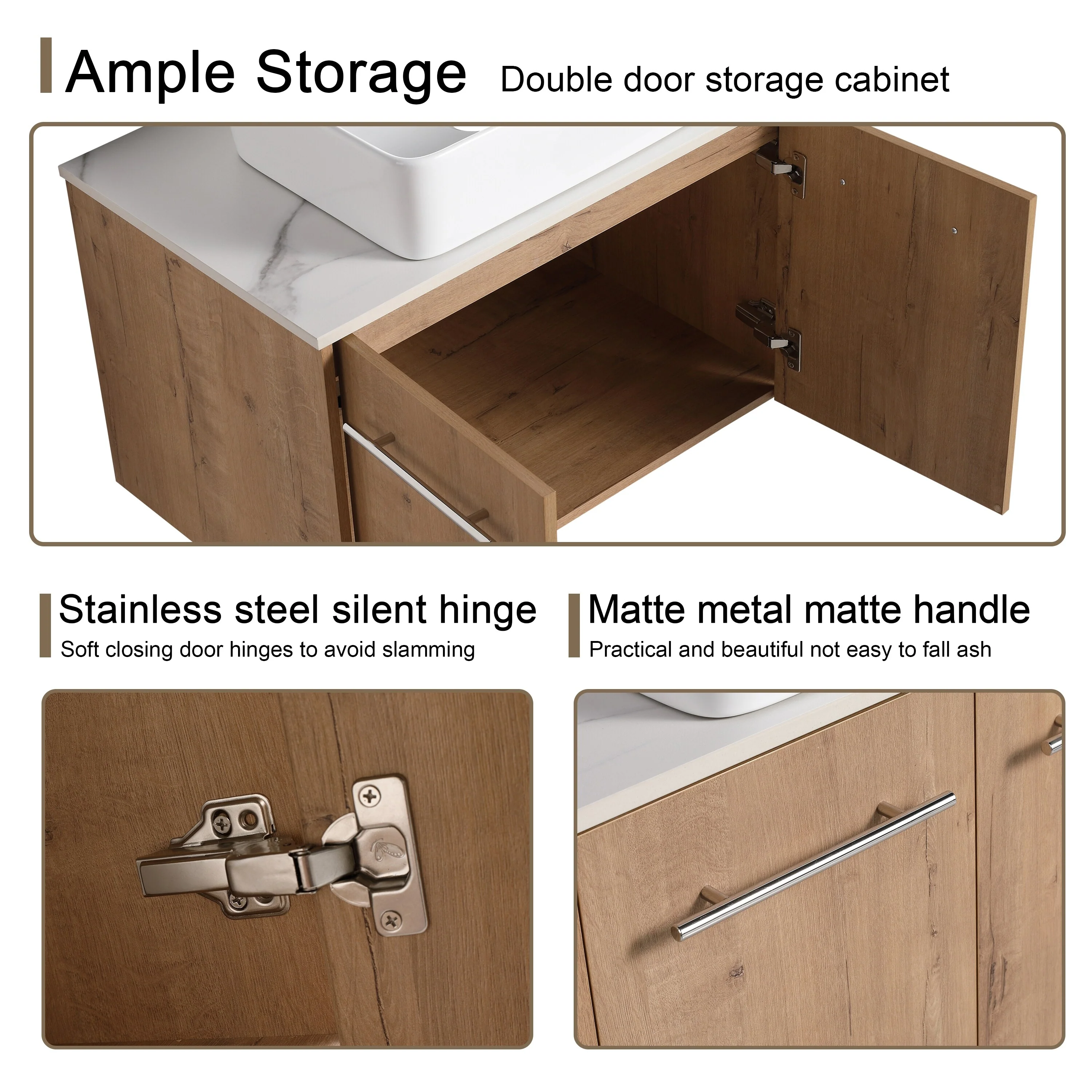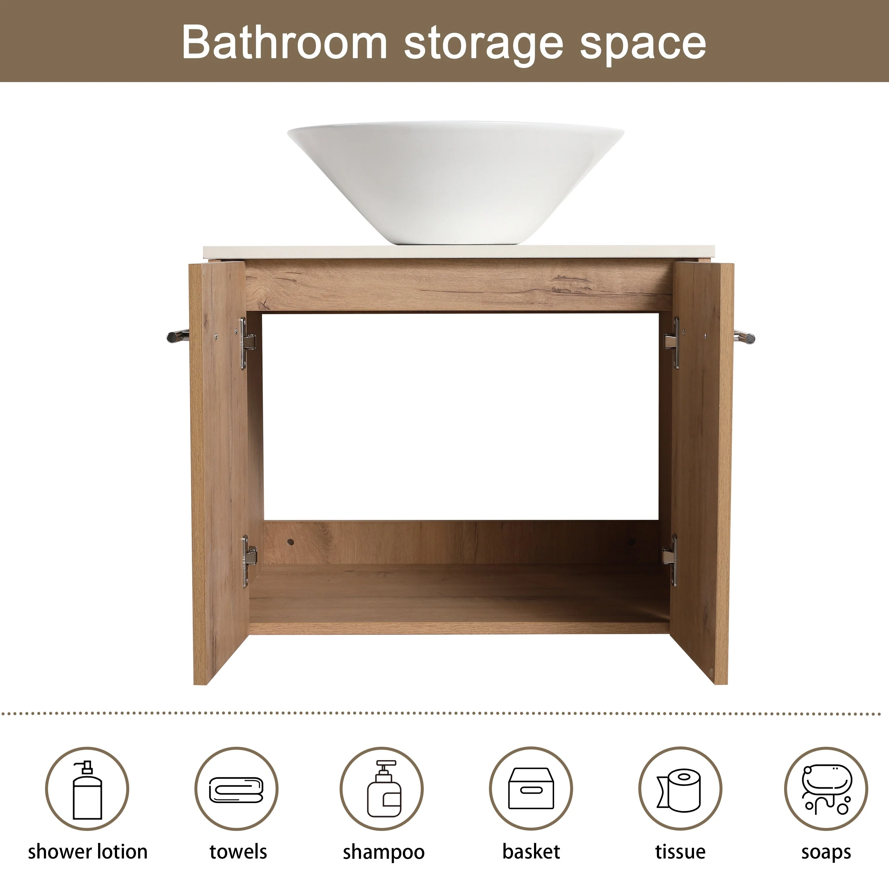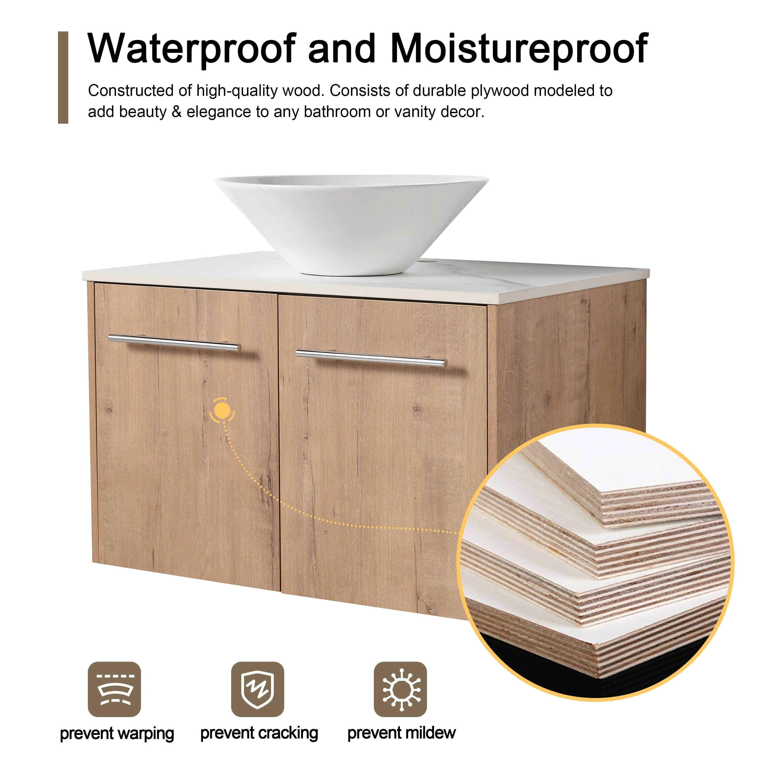 Malwee 24"/30" Floating Bathroom Vanity, Wall Mounted Bathroom Vanity with Ceramic Sink,Soft Close Doors