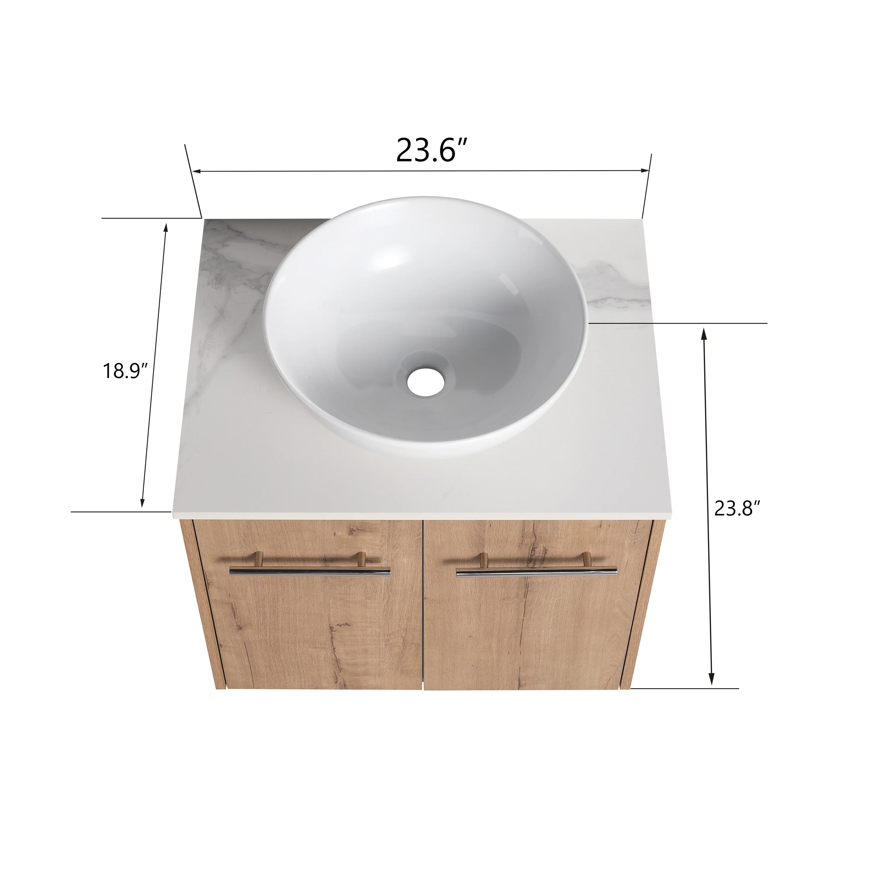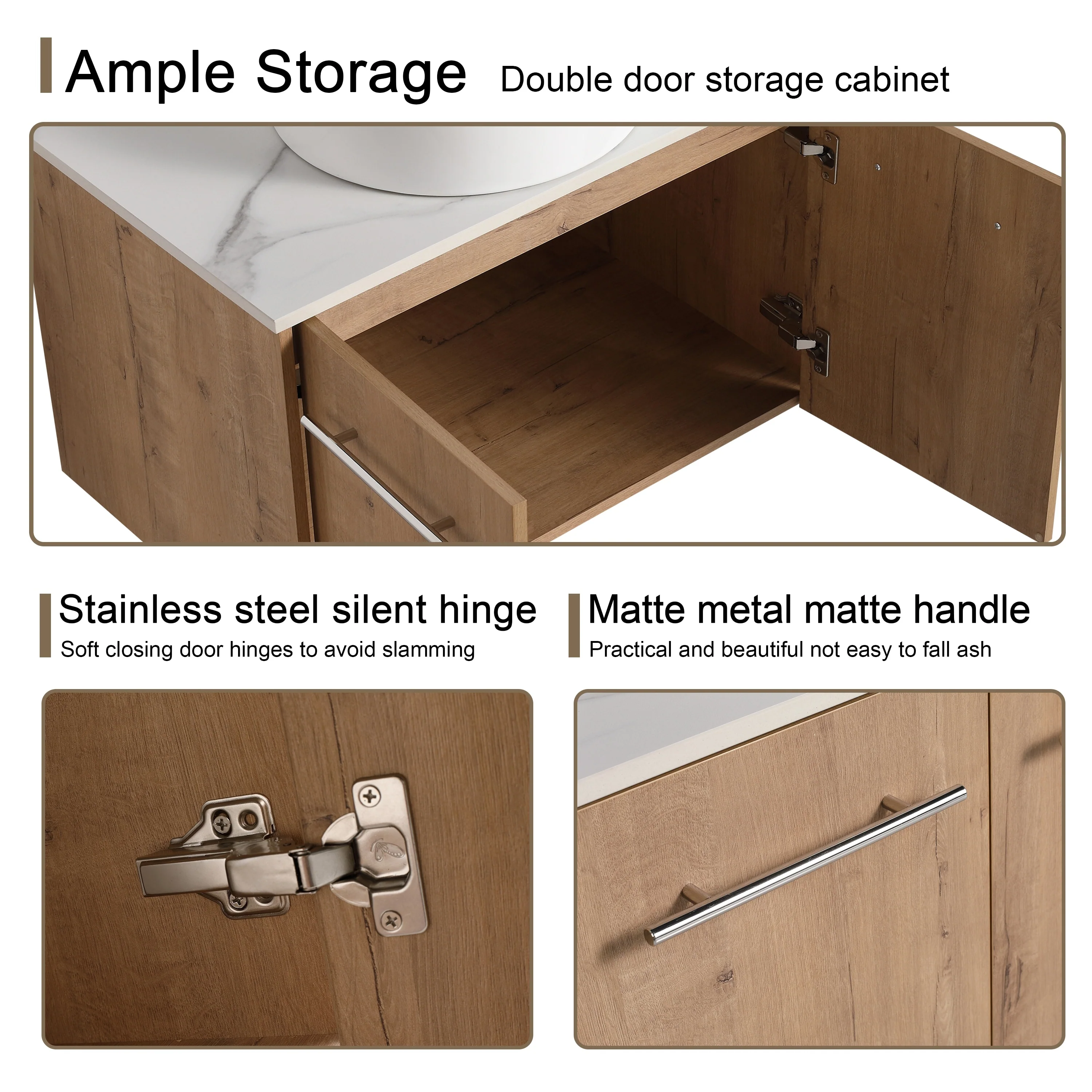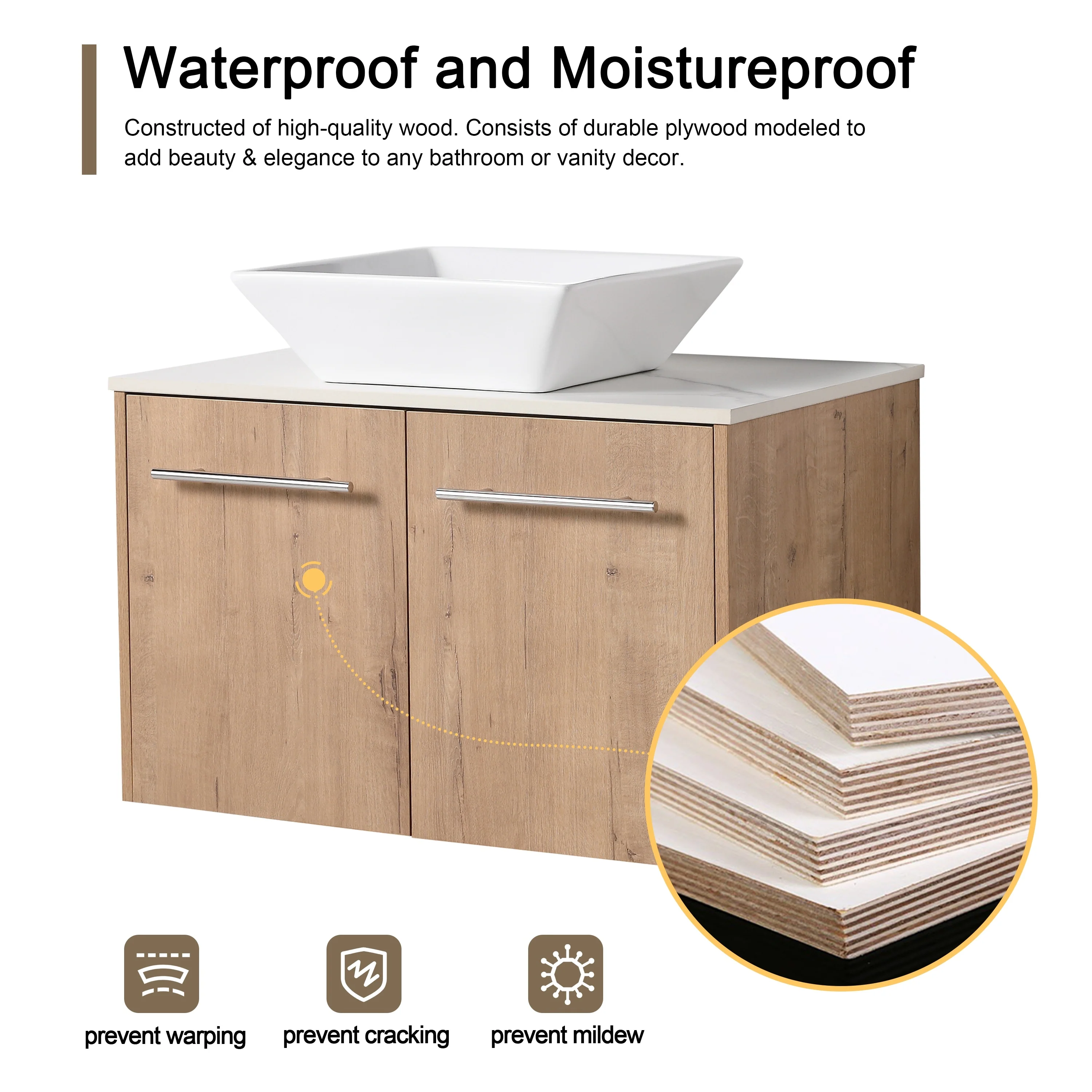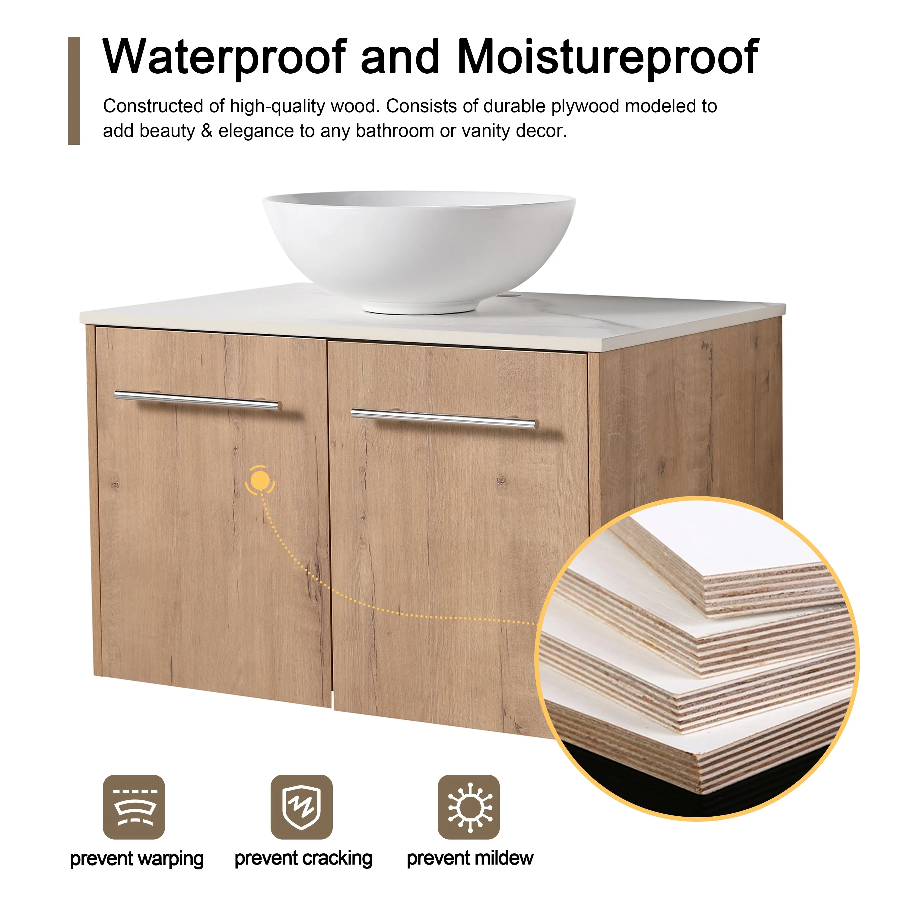 Malwee 24"/30" Floating Bathroom Vanity, Wall Mounted Bathroom Vanity with Ceramic Sink,Soft Close Doors