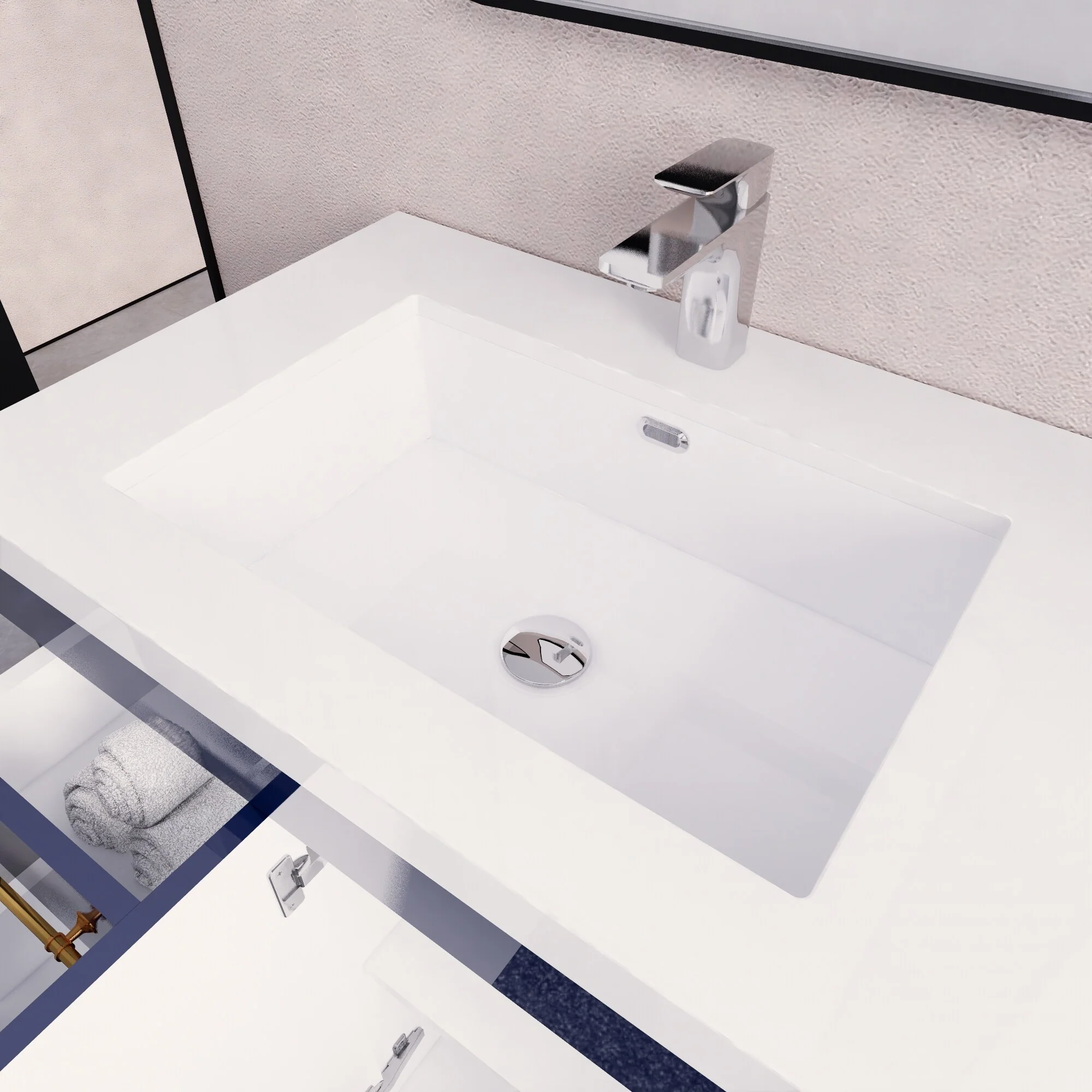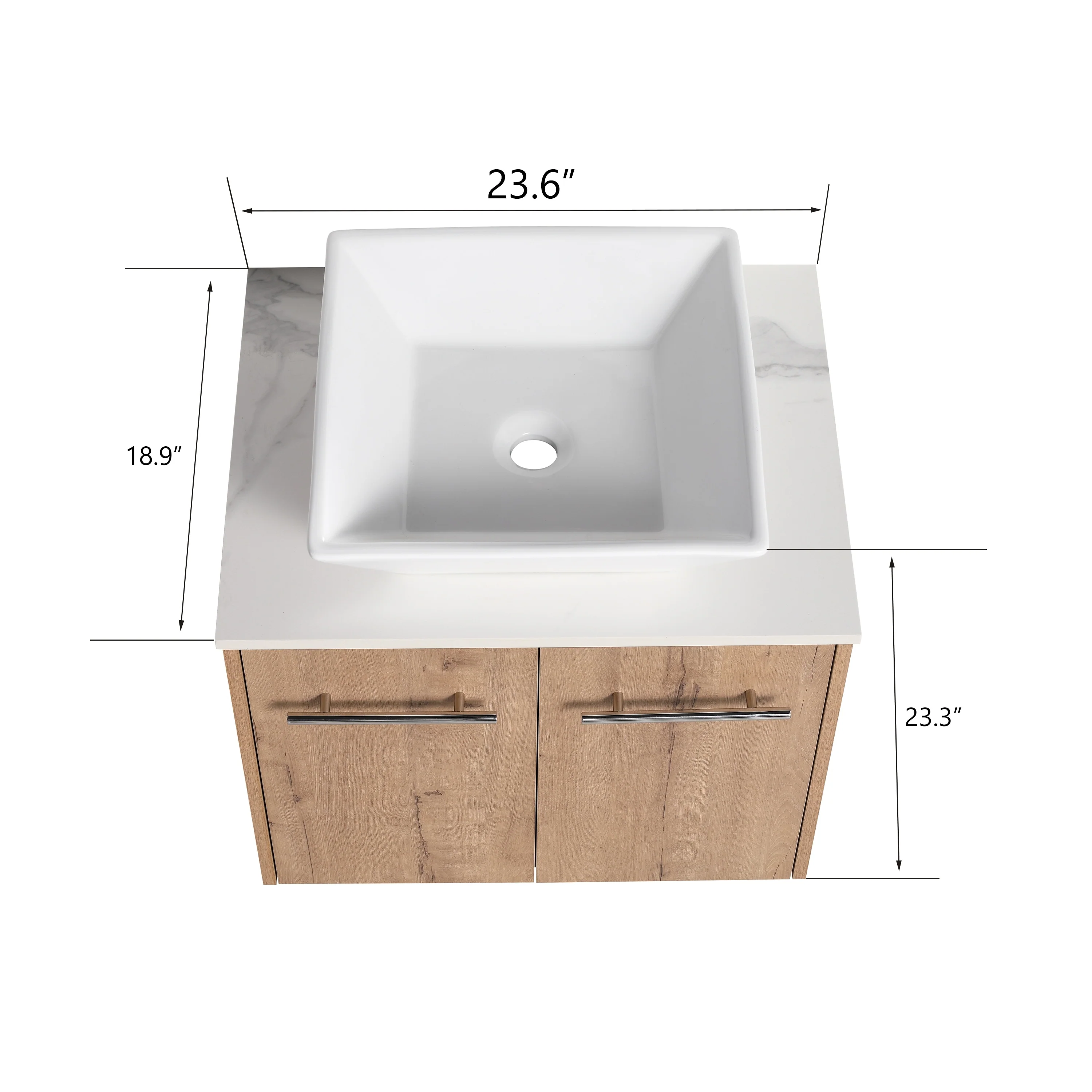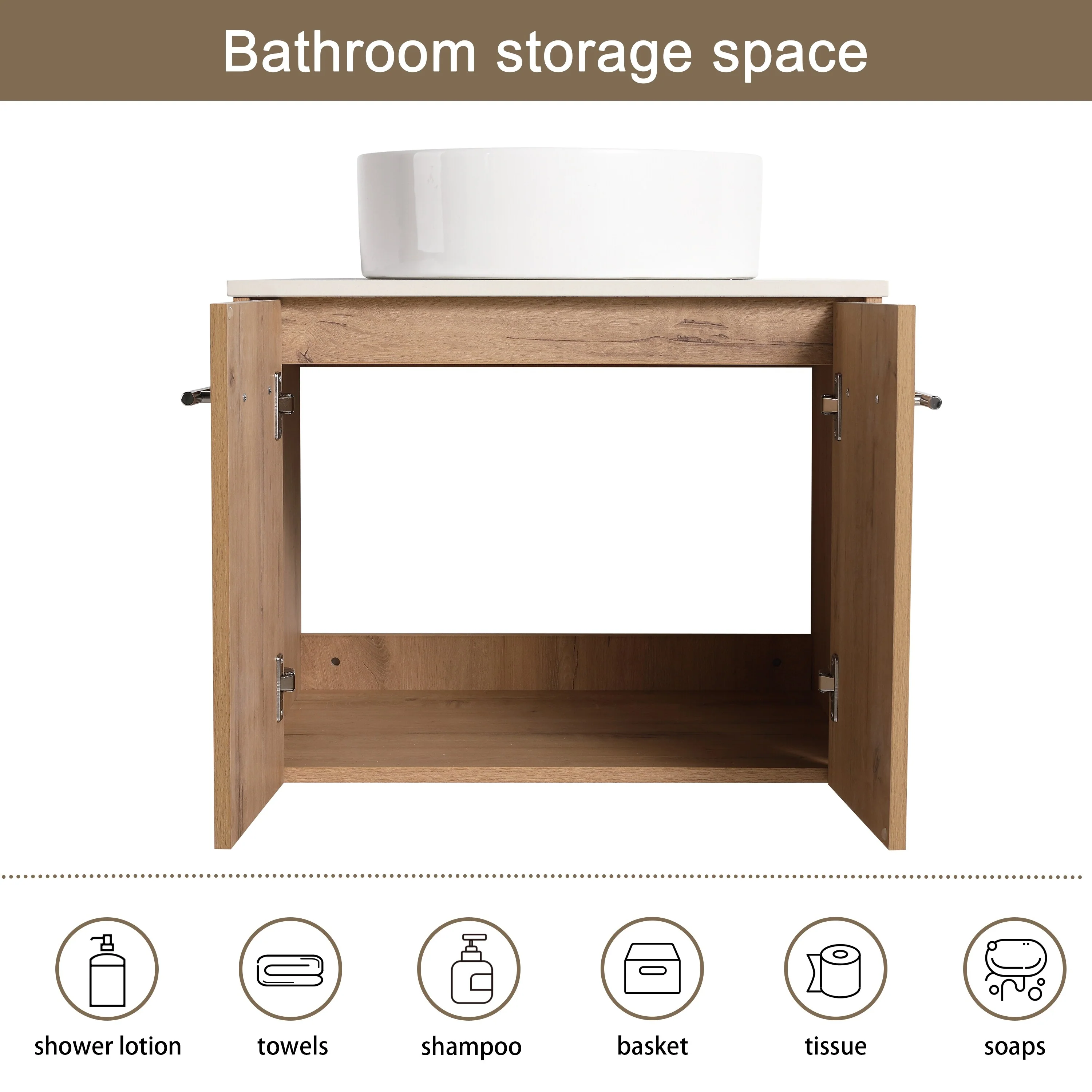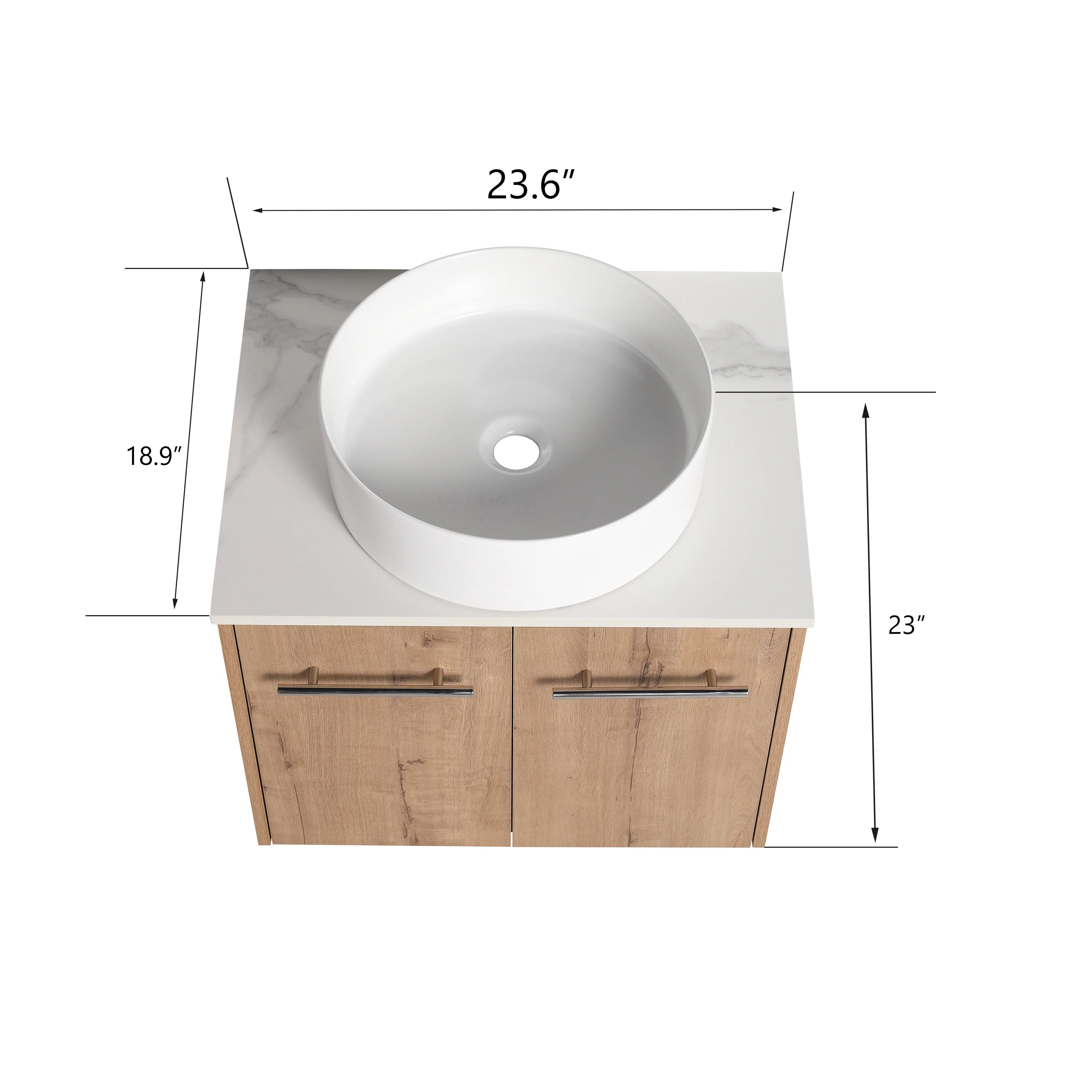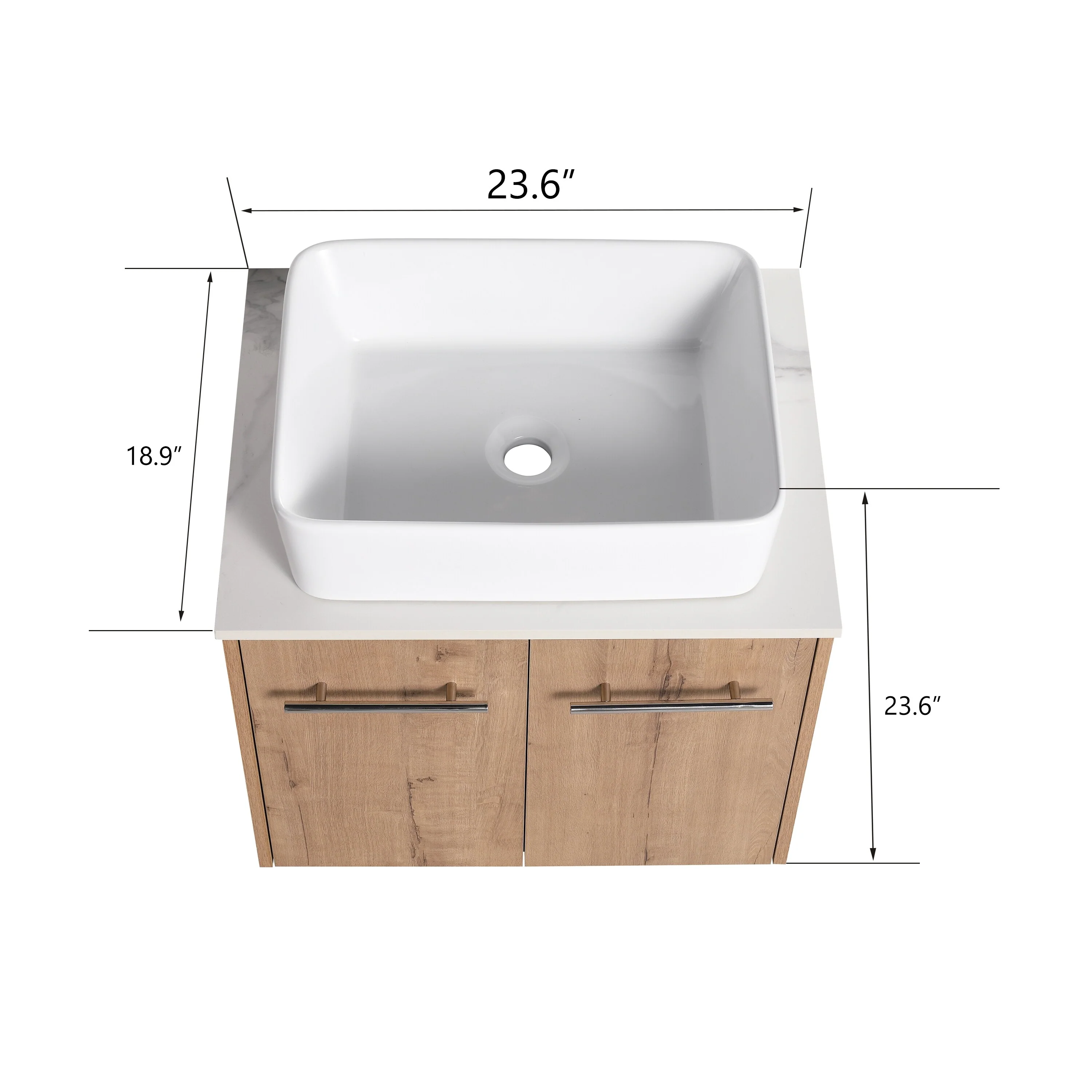 Malwee 24"/30" Floating Bathroom Vanity, Wall Mounted Bathroom Vanity with Ceramic Sink,Soft Close Doors
