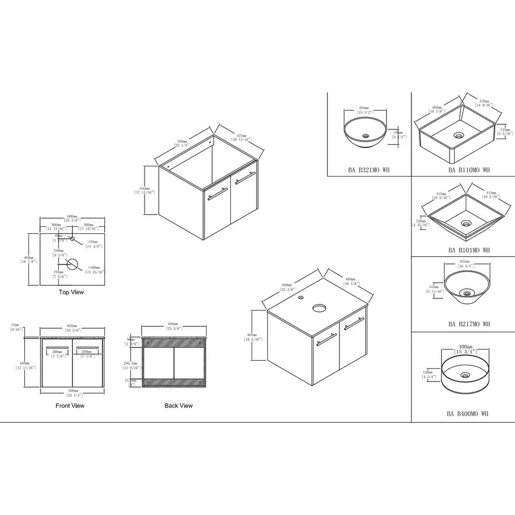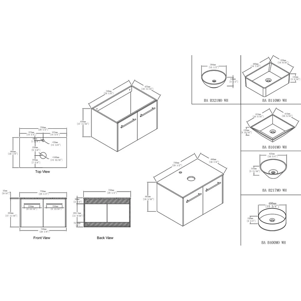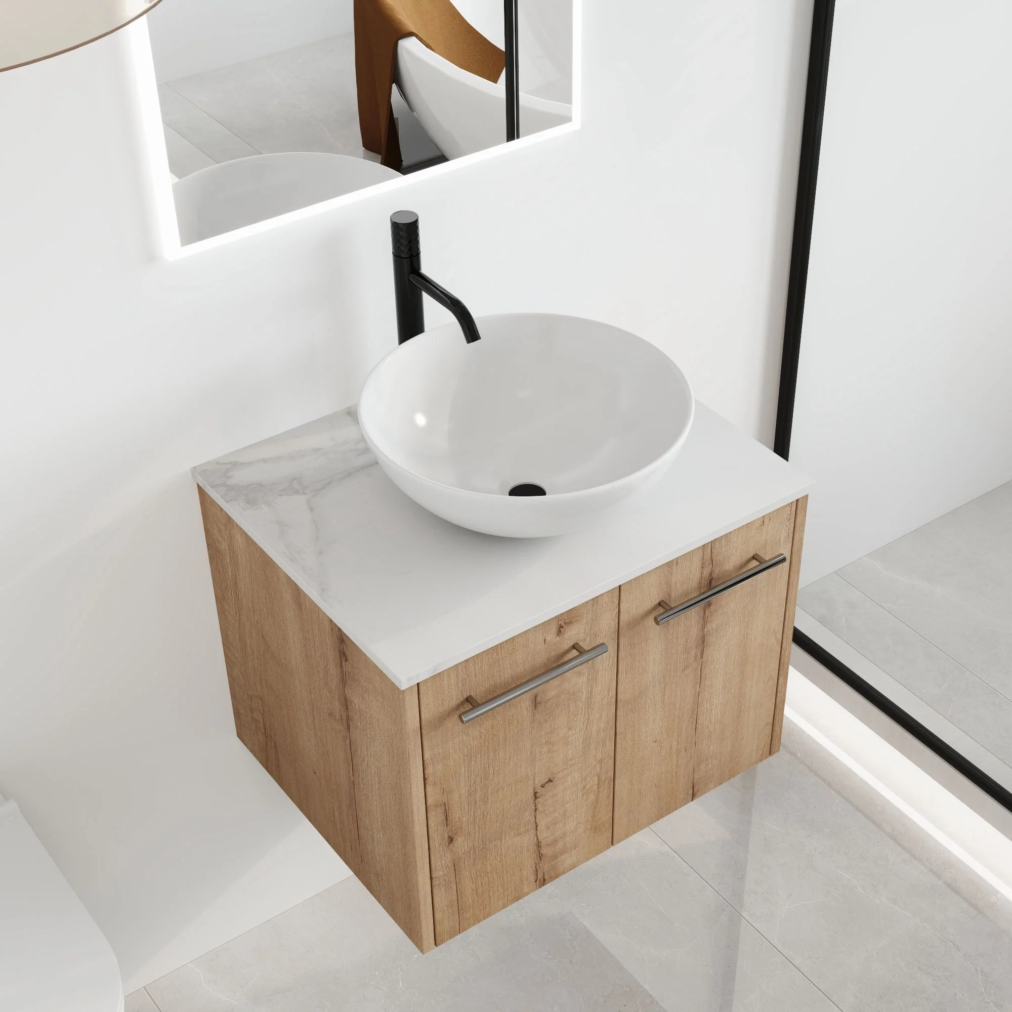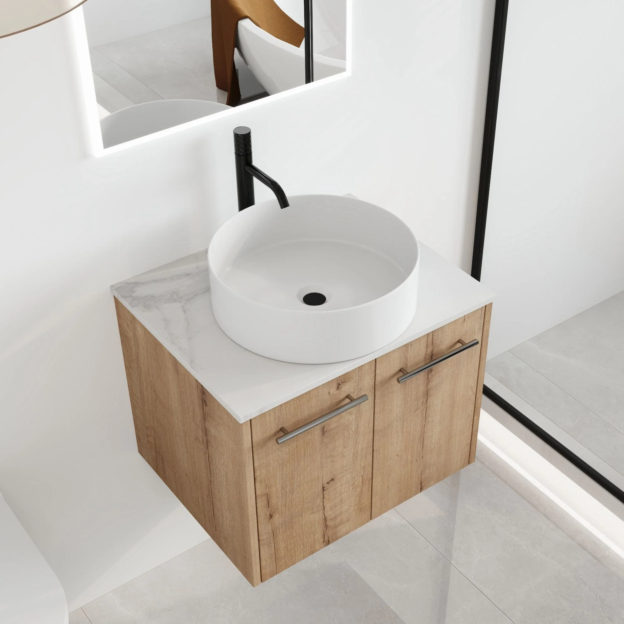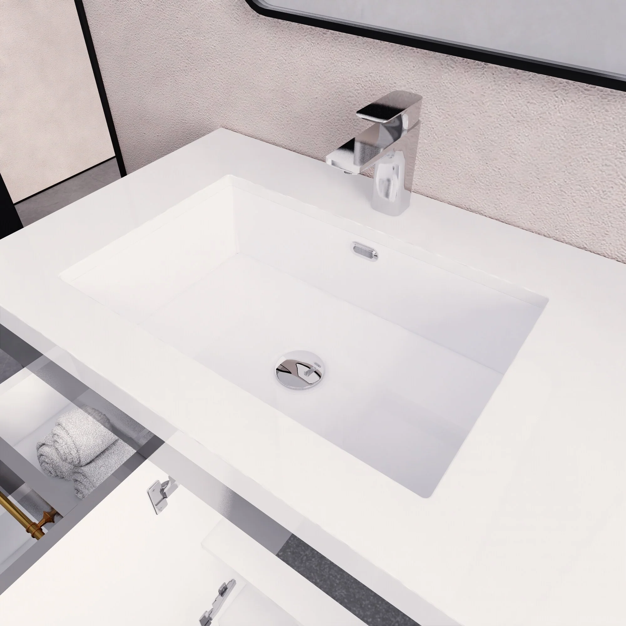 Malwee 24"/30" Floating Bathroom Vanity, Wall Mounted Bathroom Vanity with Ceramic Sink,Soft Close Doors