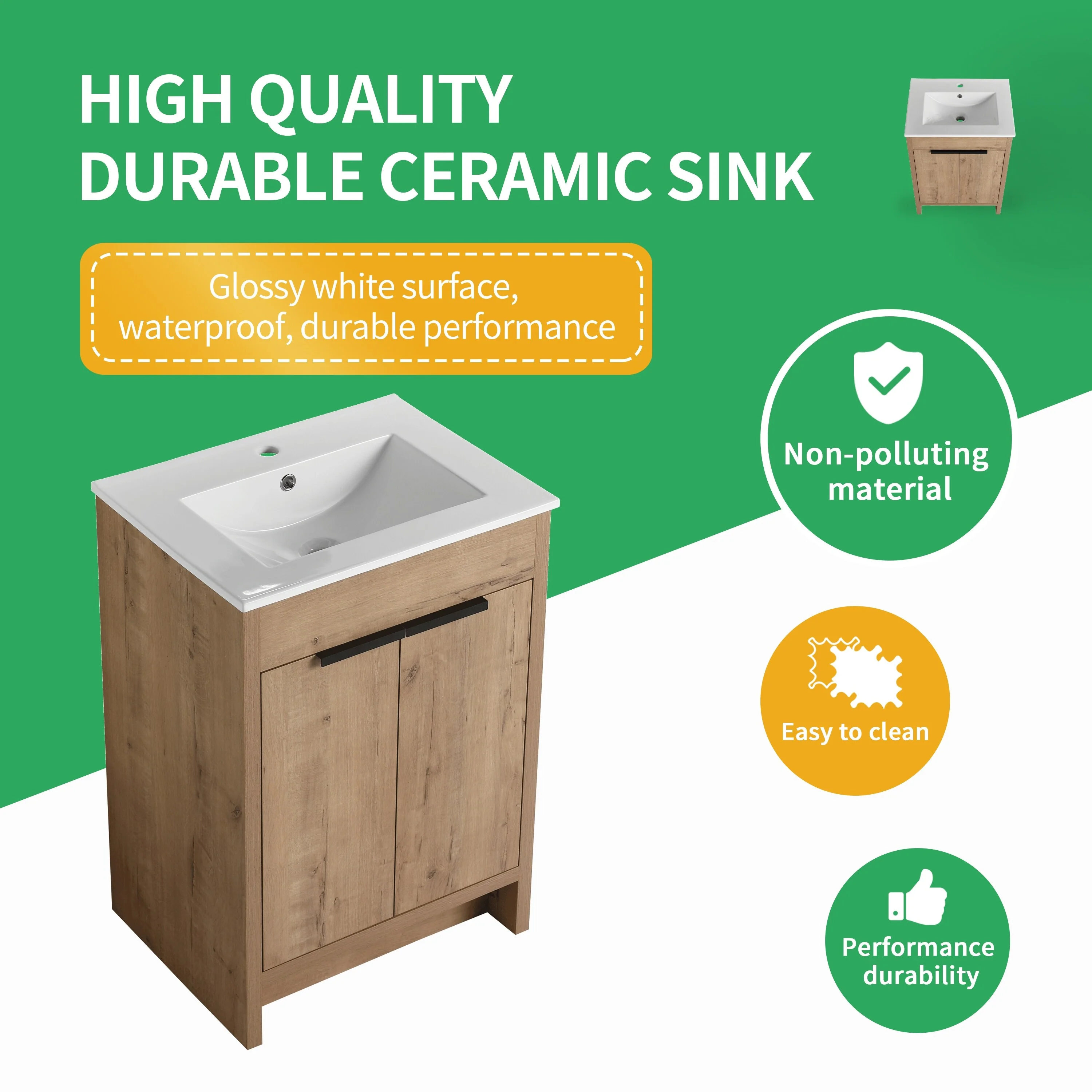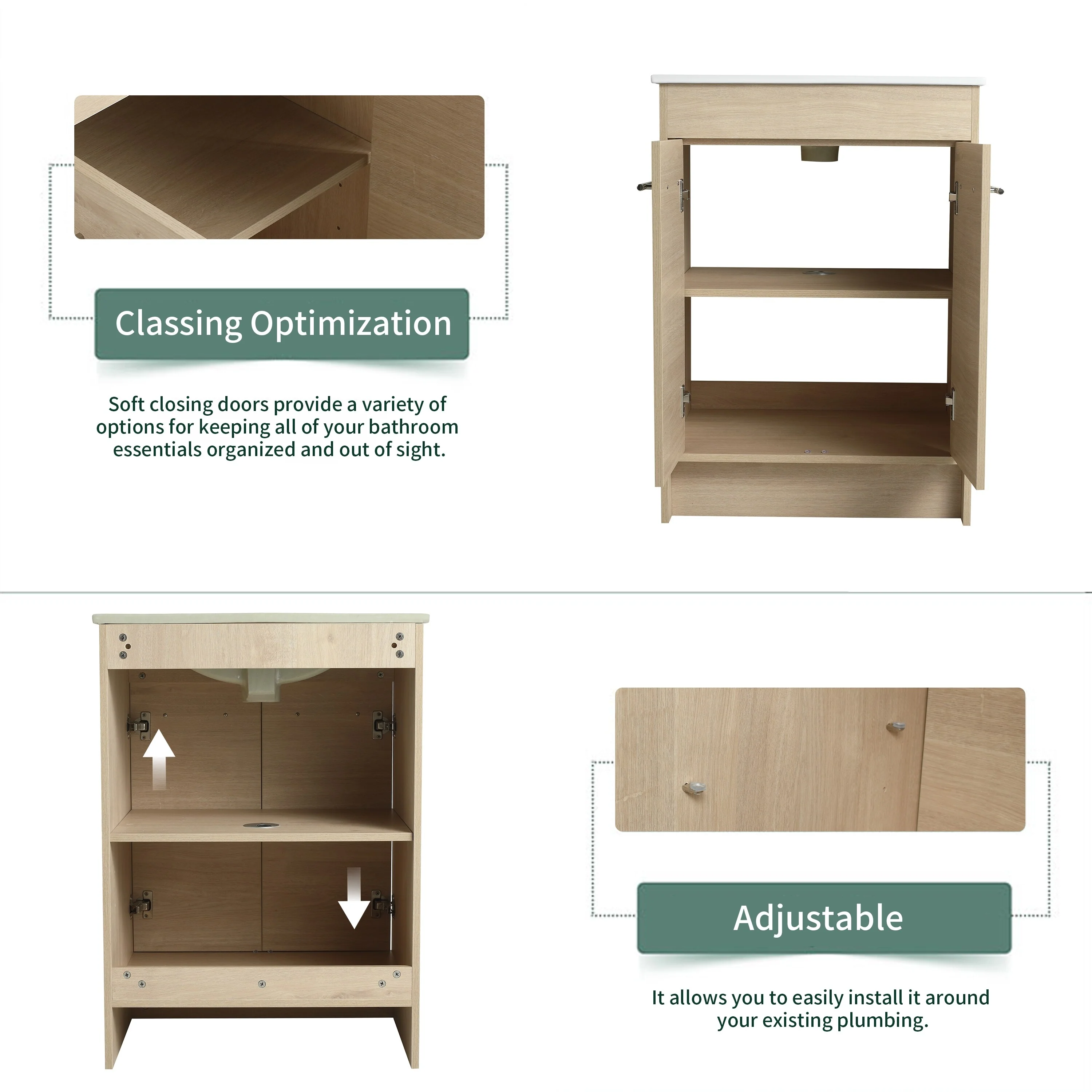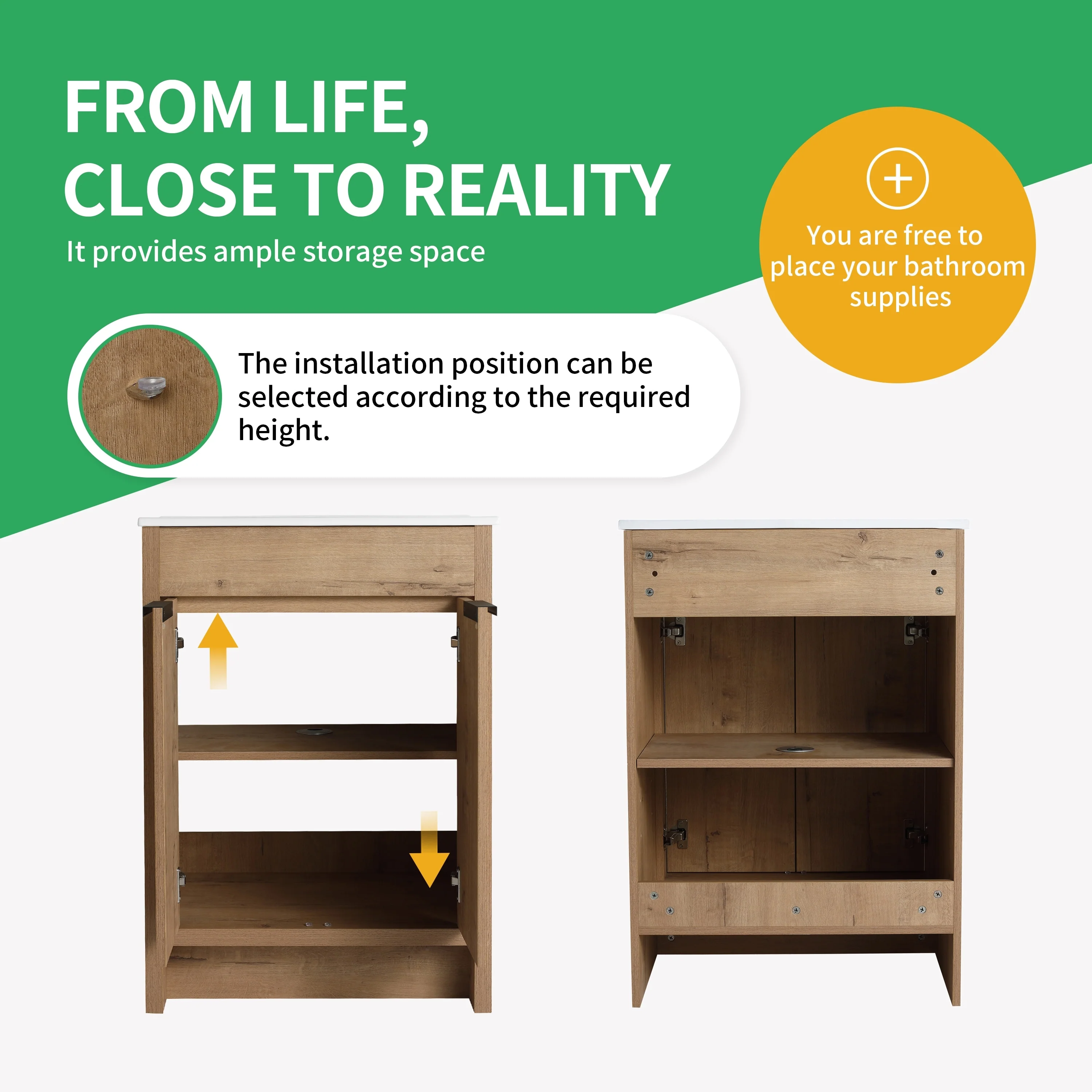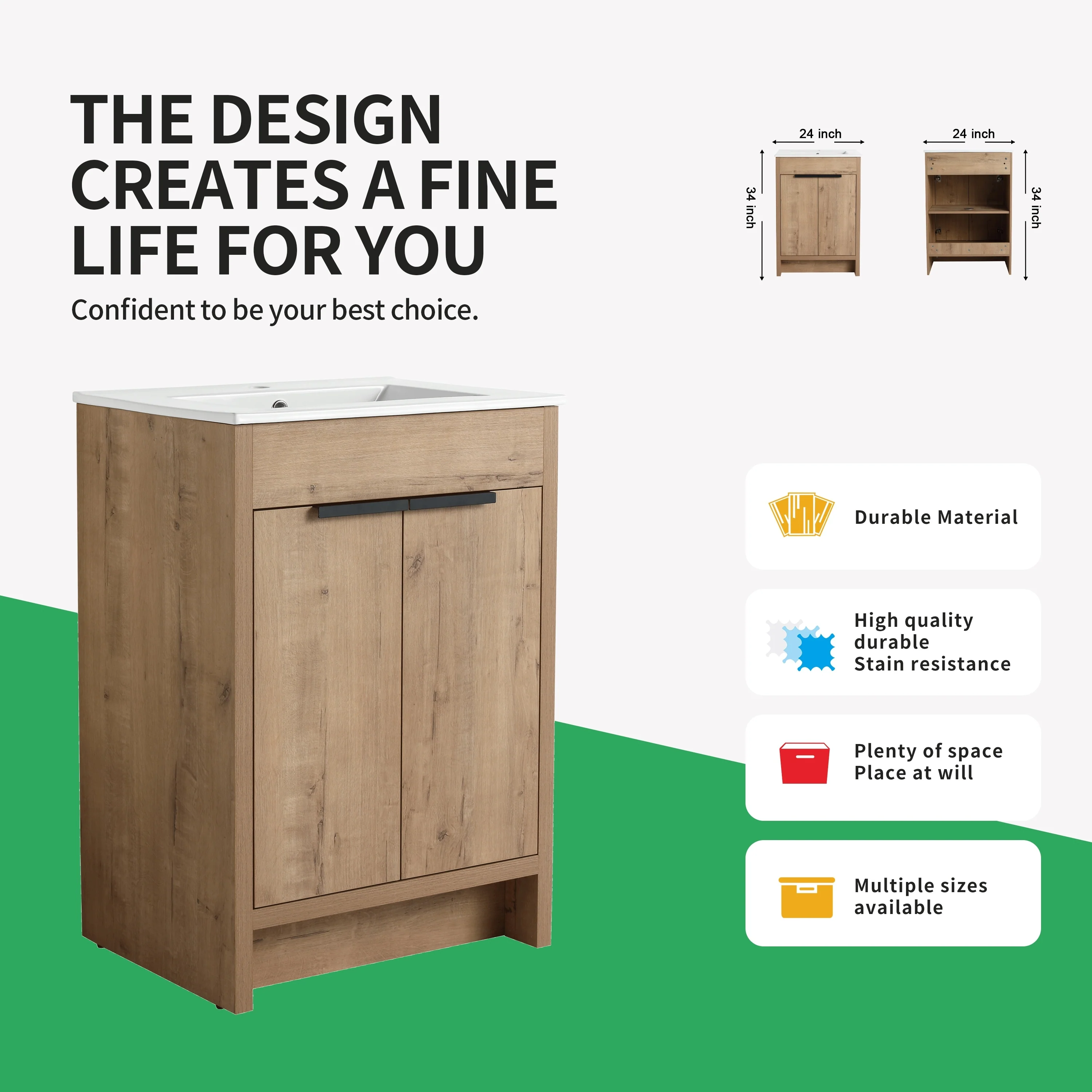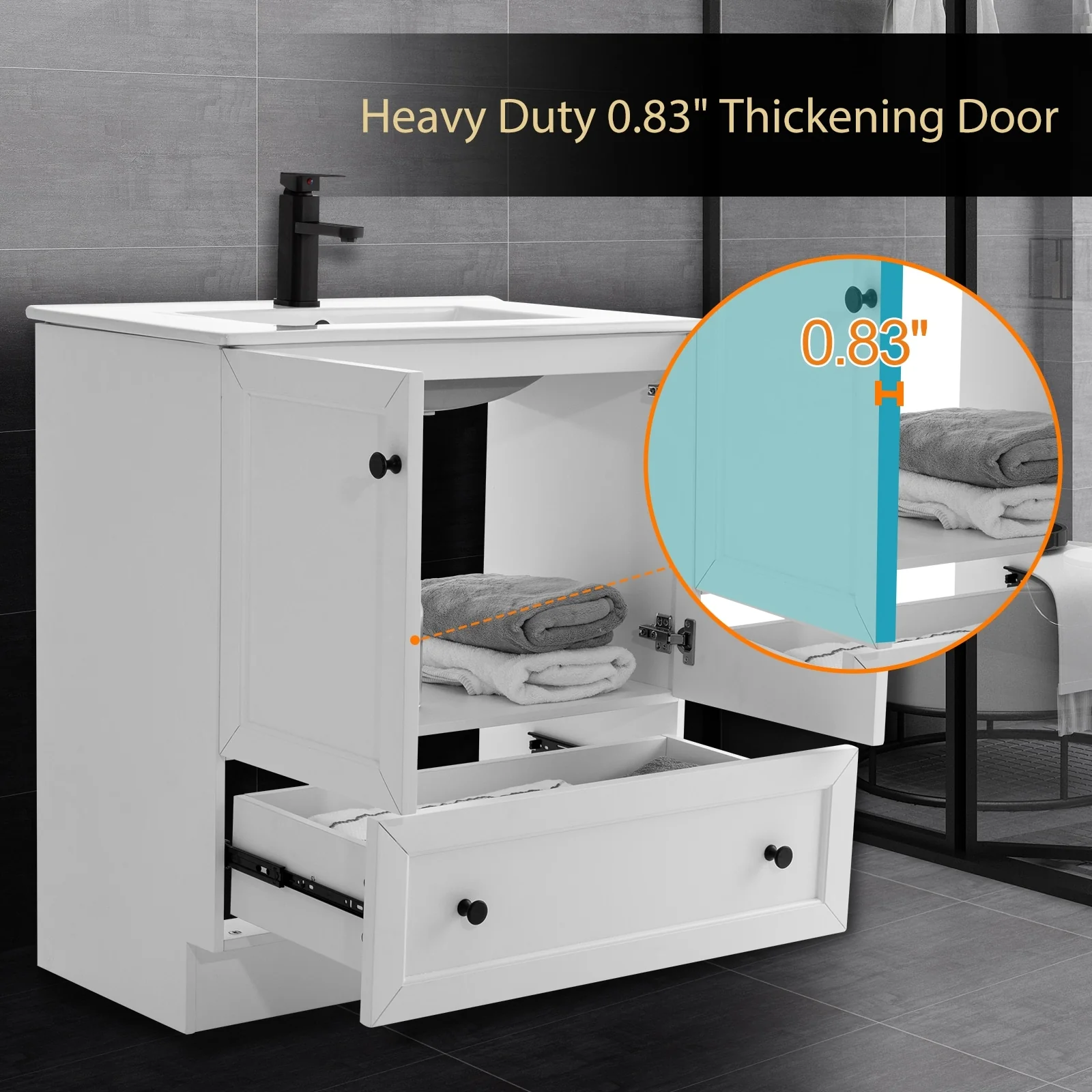 BNK 24/30/36 inch Freestanding Single Sink Bathroom Vanity with Soft Close Door and 1 Adjustable Shelf
