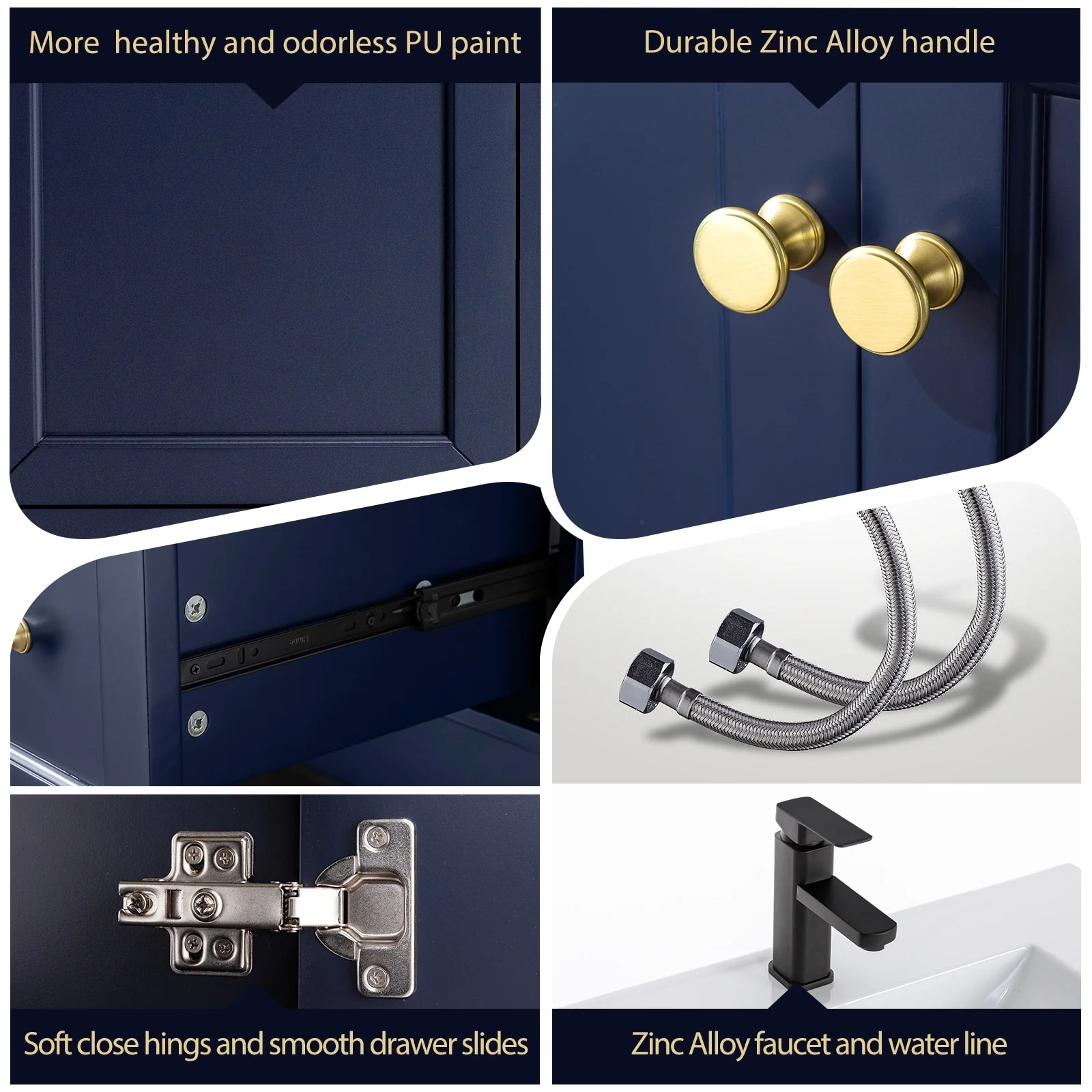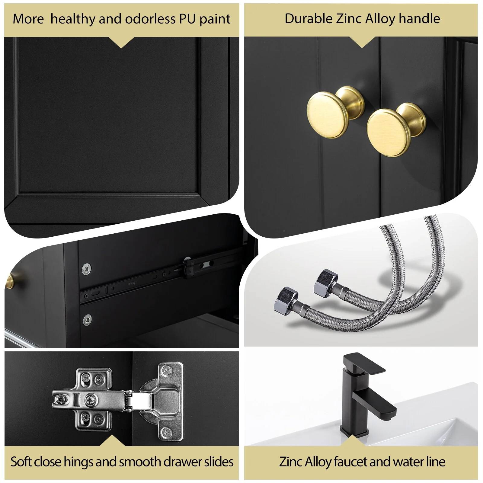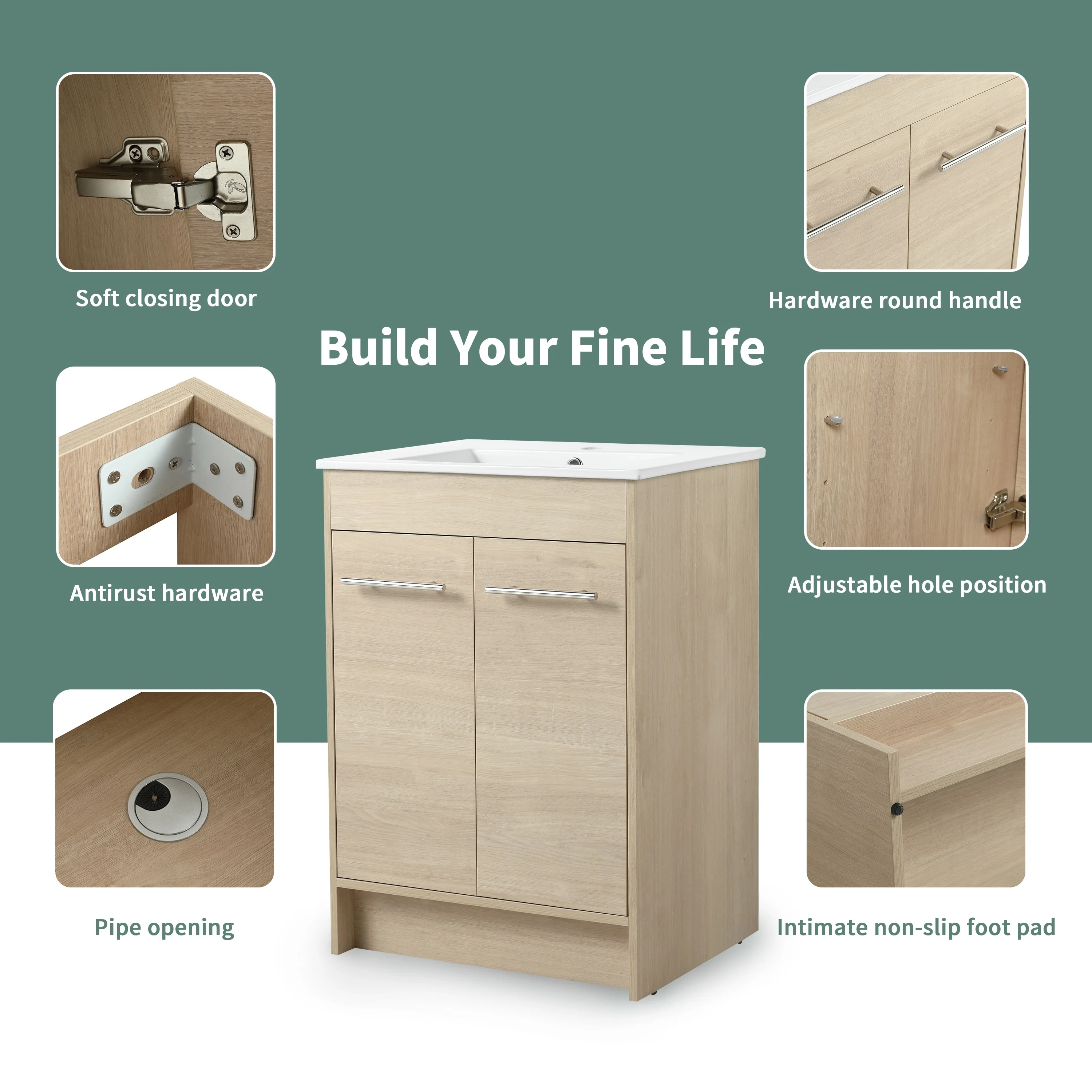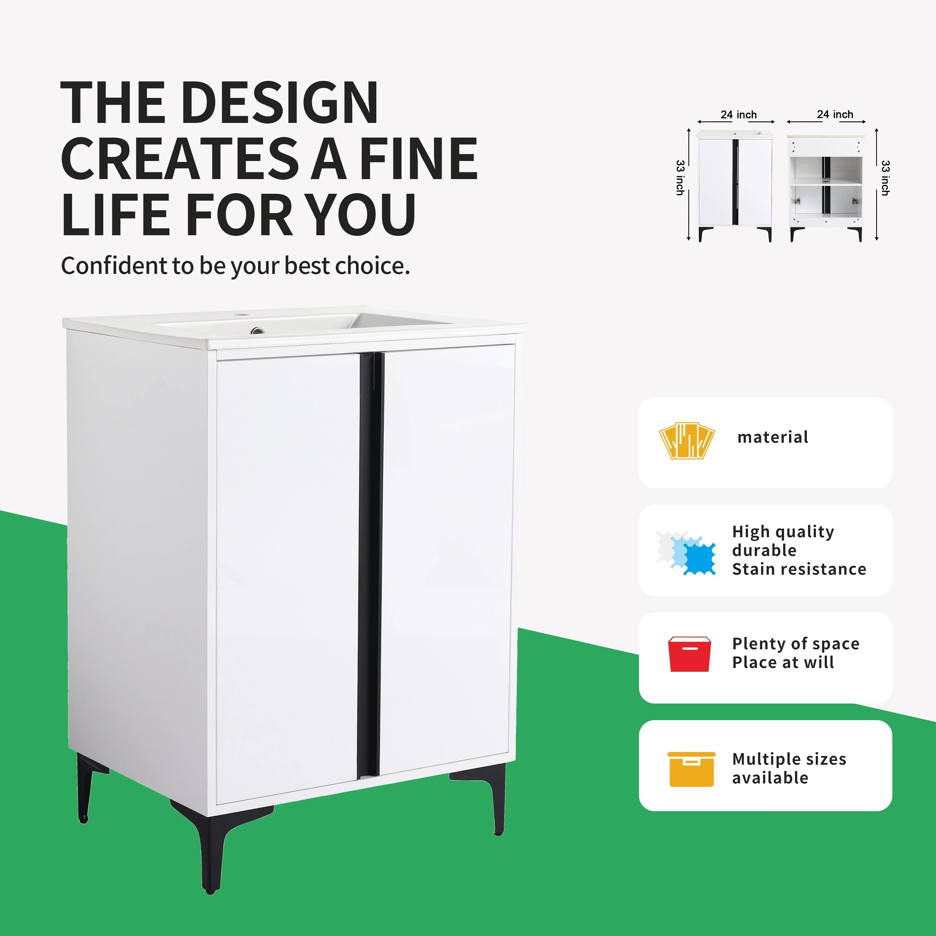 BNK 24/30/36 inch Freestanding Single Sink Bathroom Vanity with Soft Close Door and 1 Adjustable Shelf