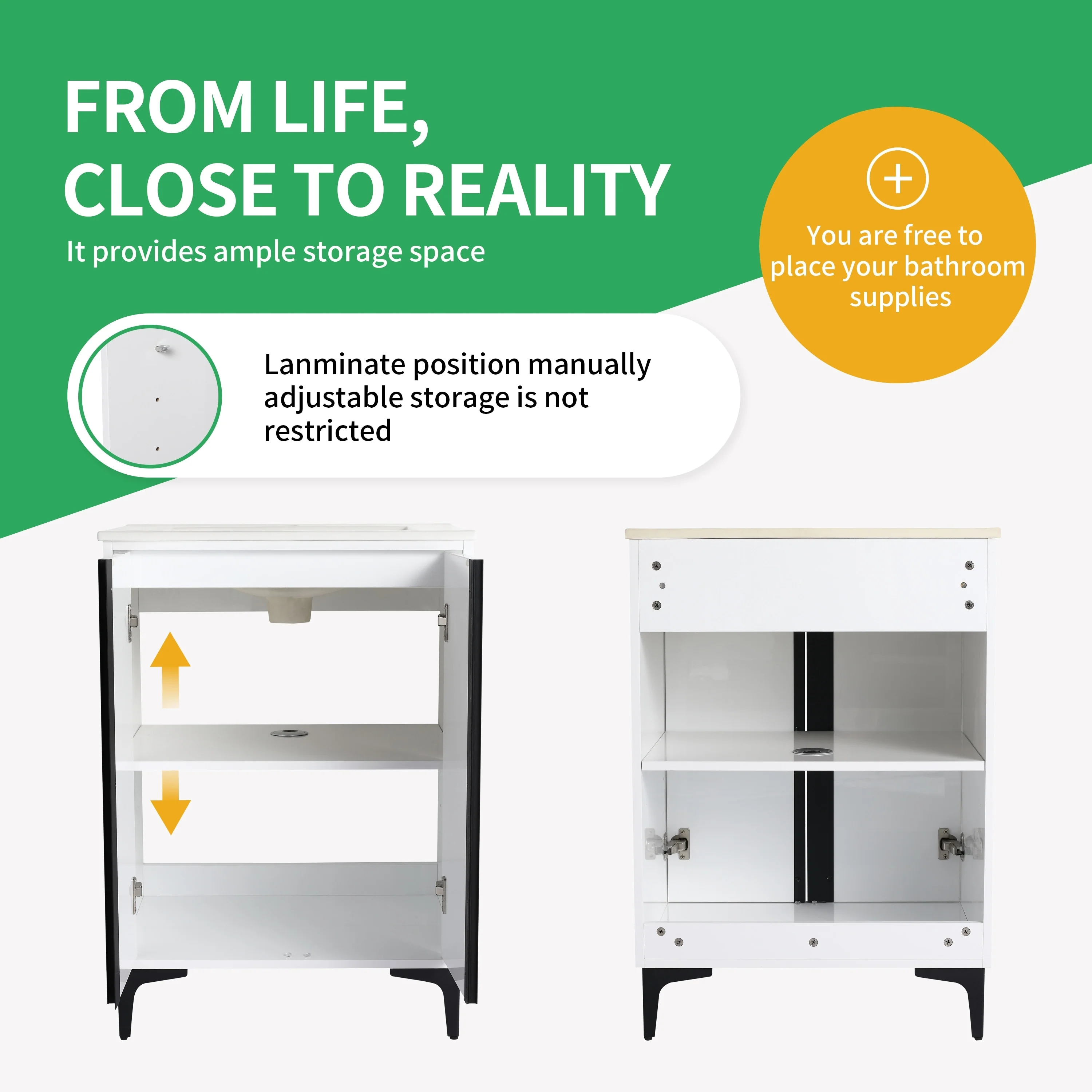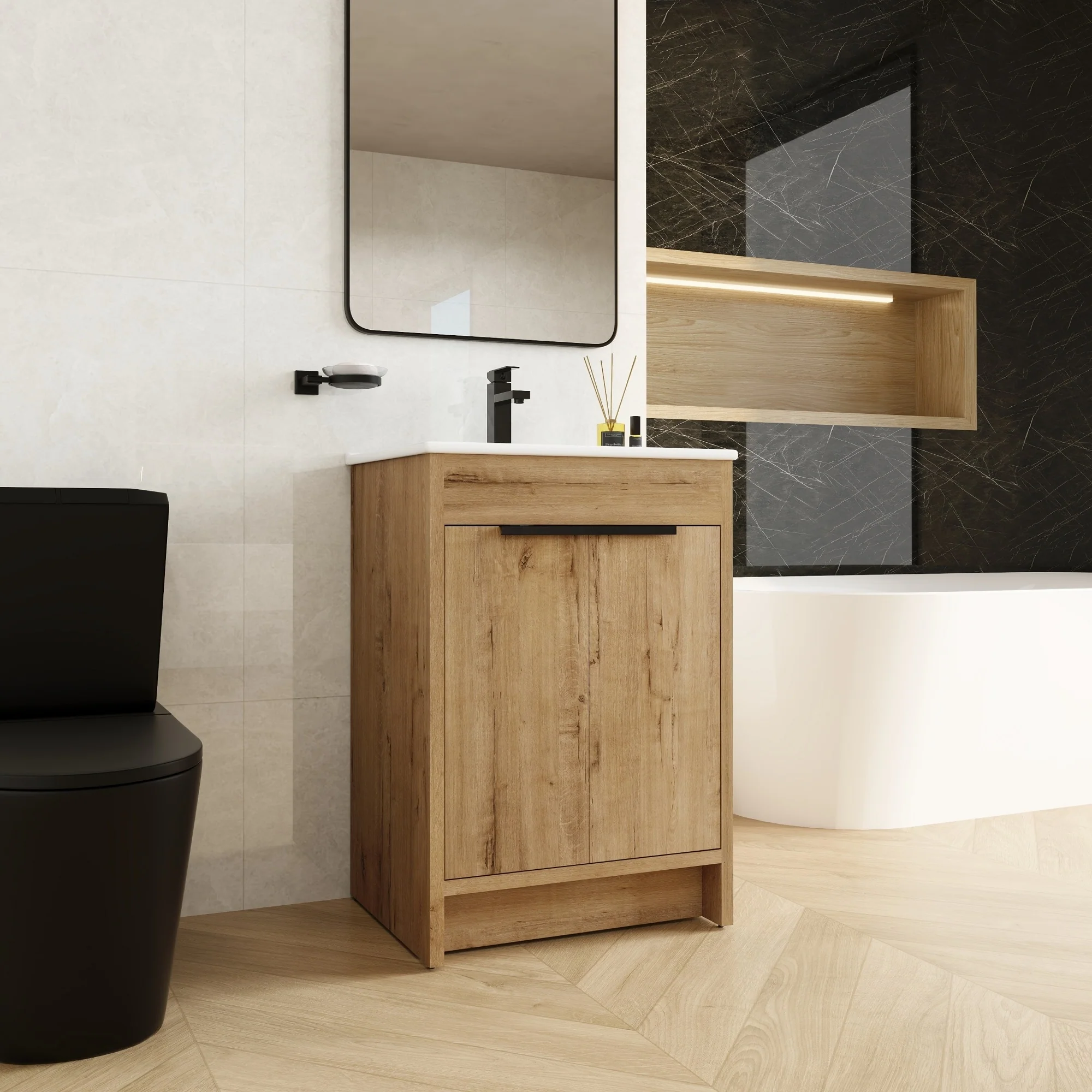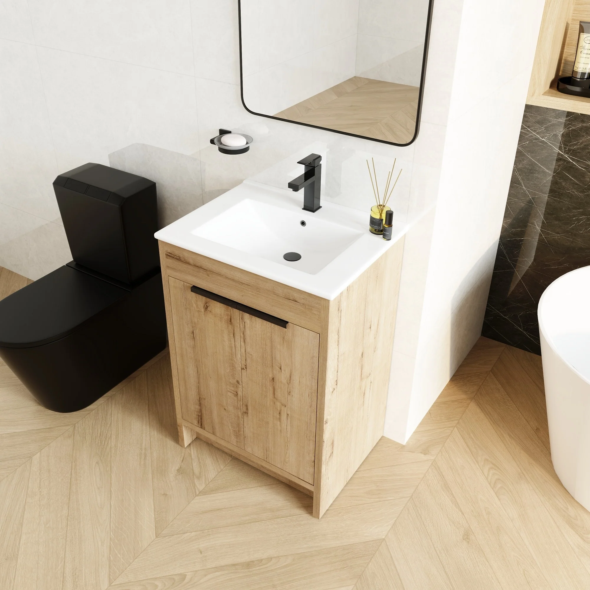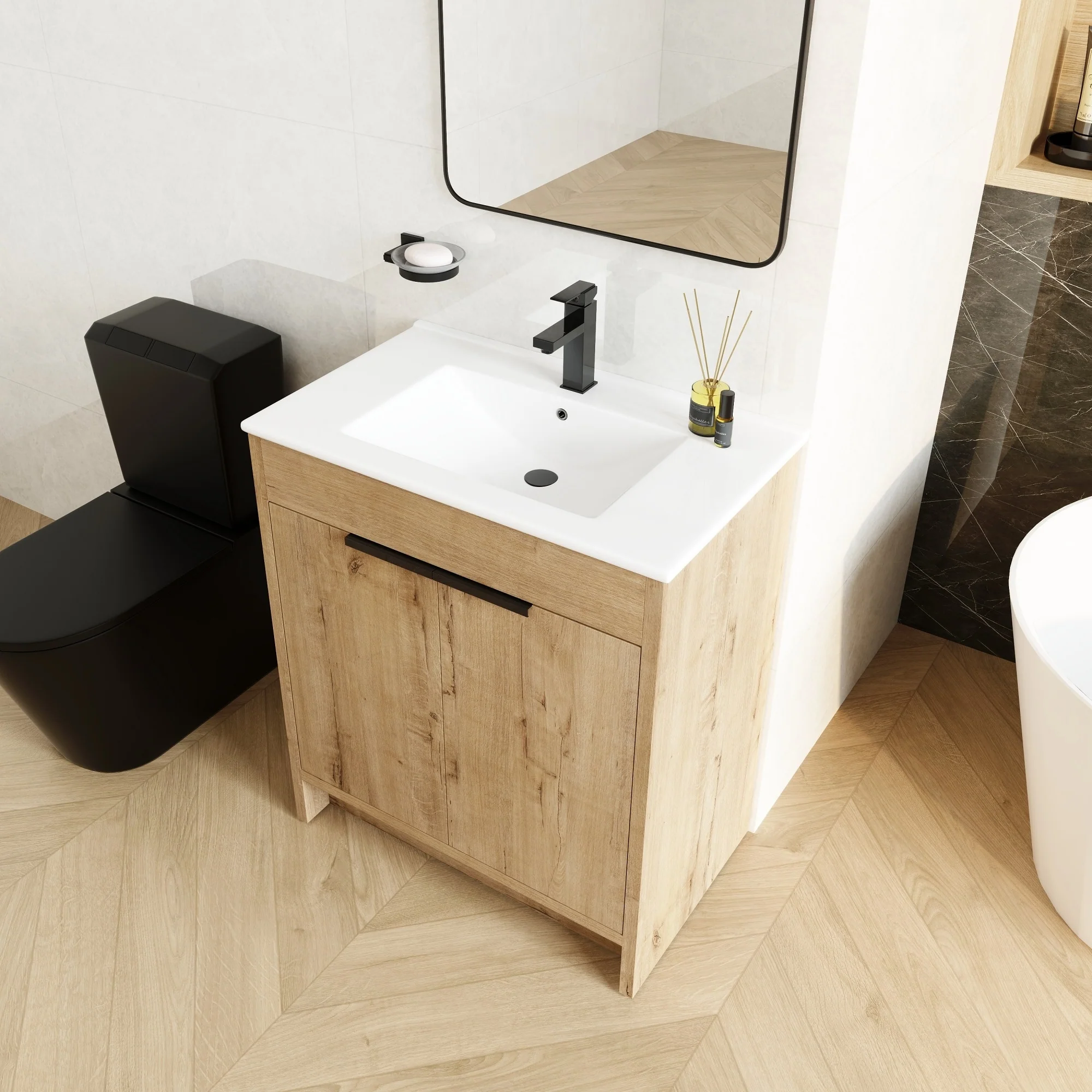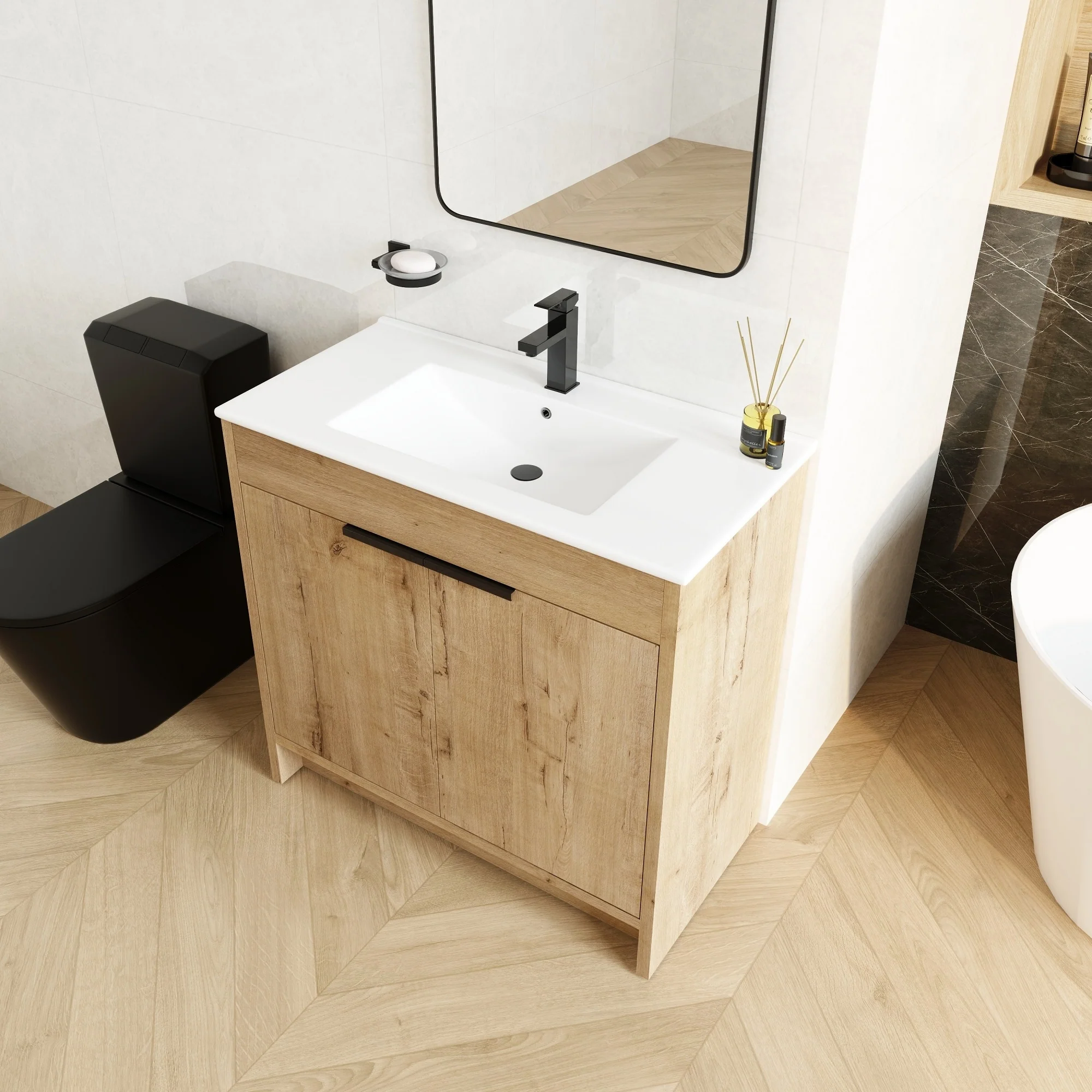 BNK 24/30/36 inch Freestanding Single Sink Bathroom Vanity with Soft Close Door and 1 Adjustable Shelf