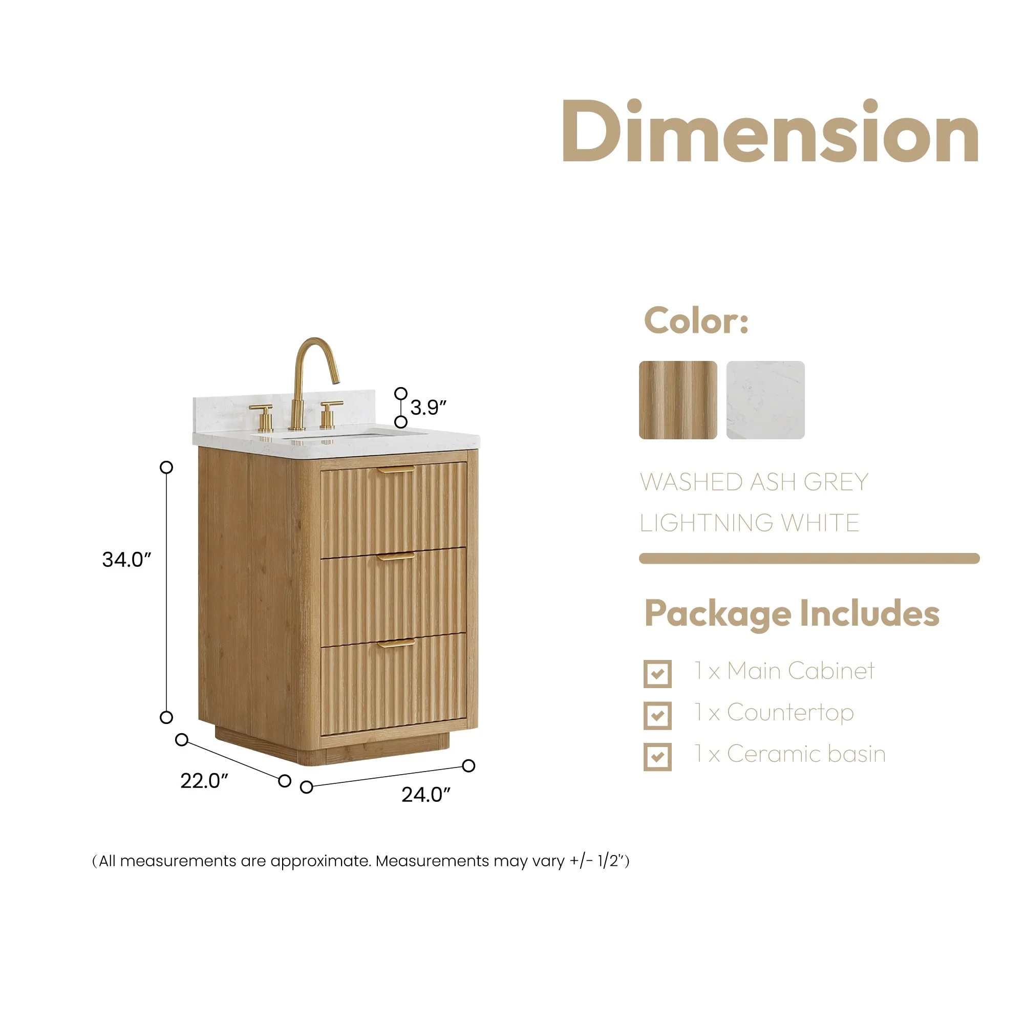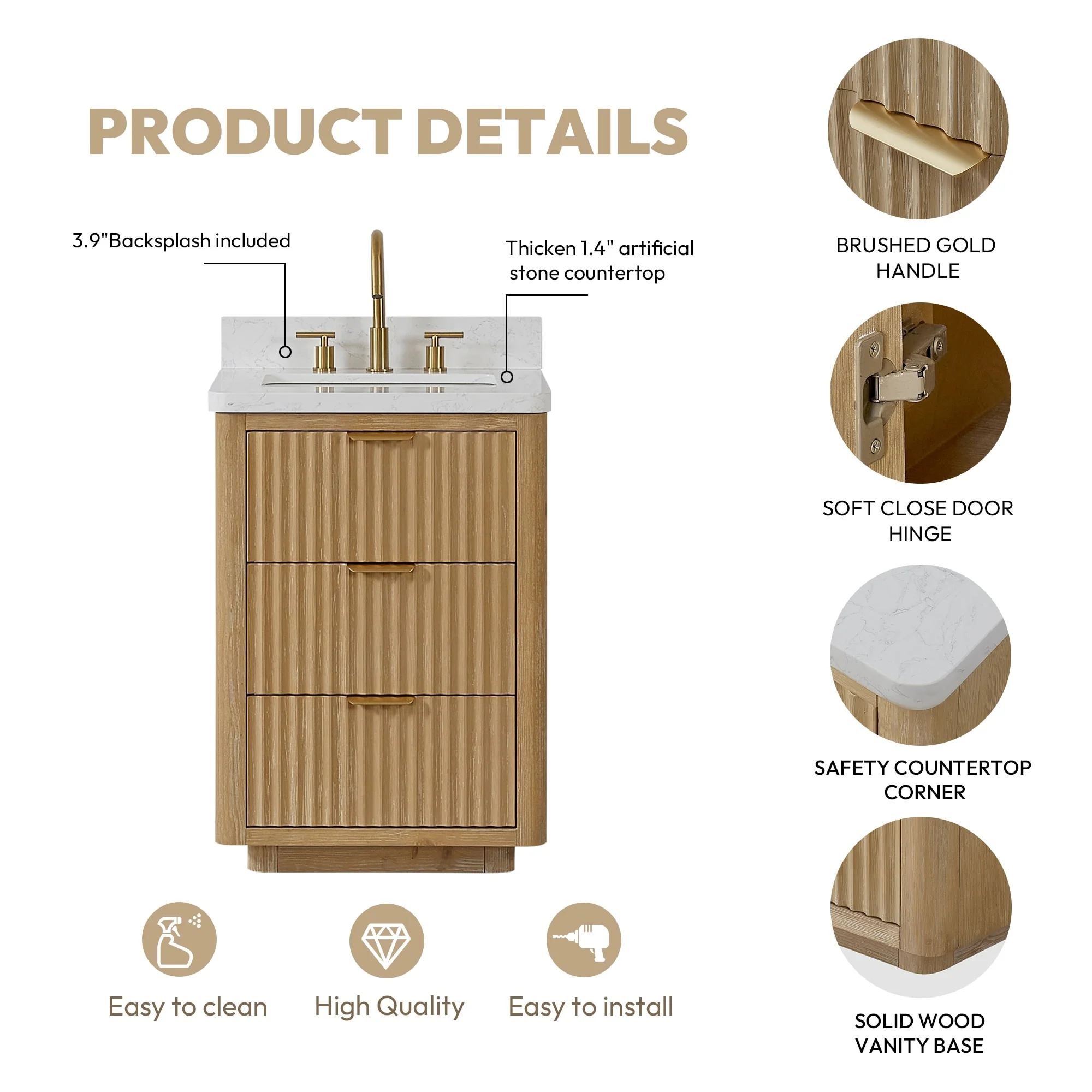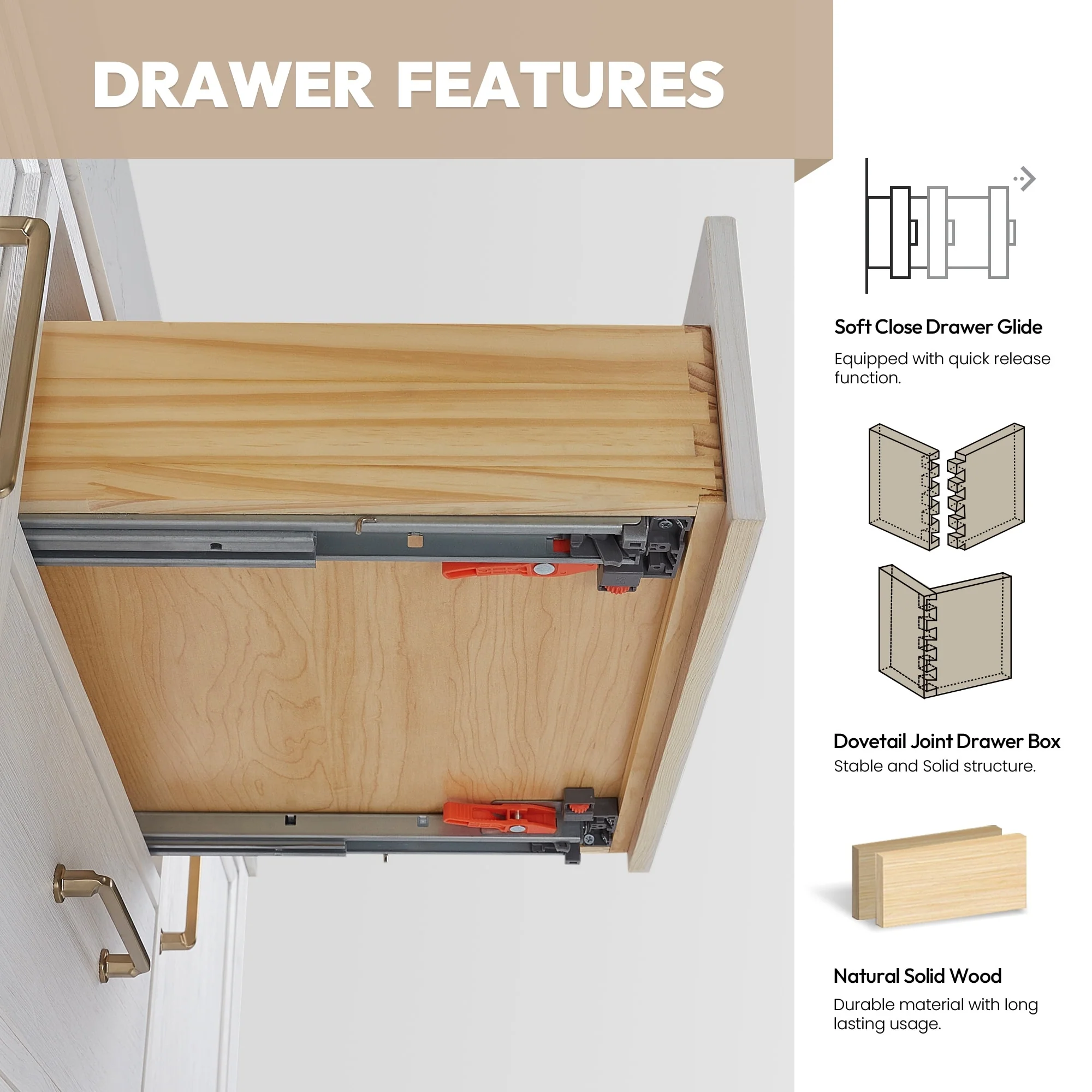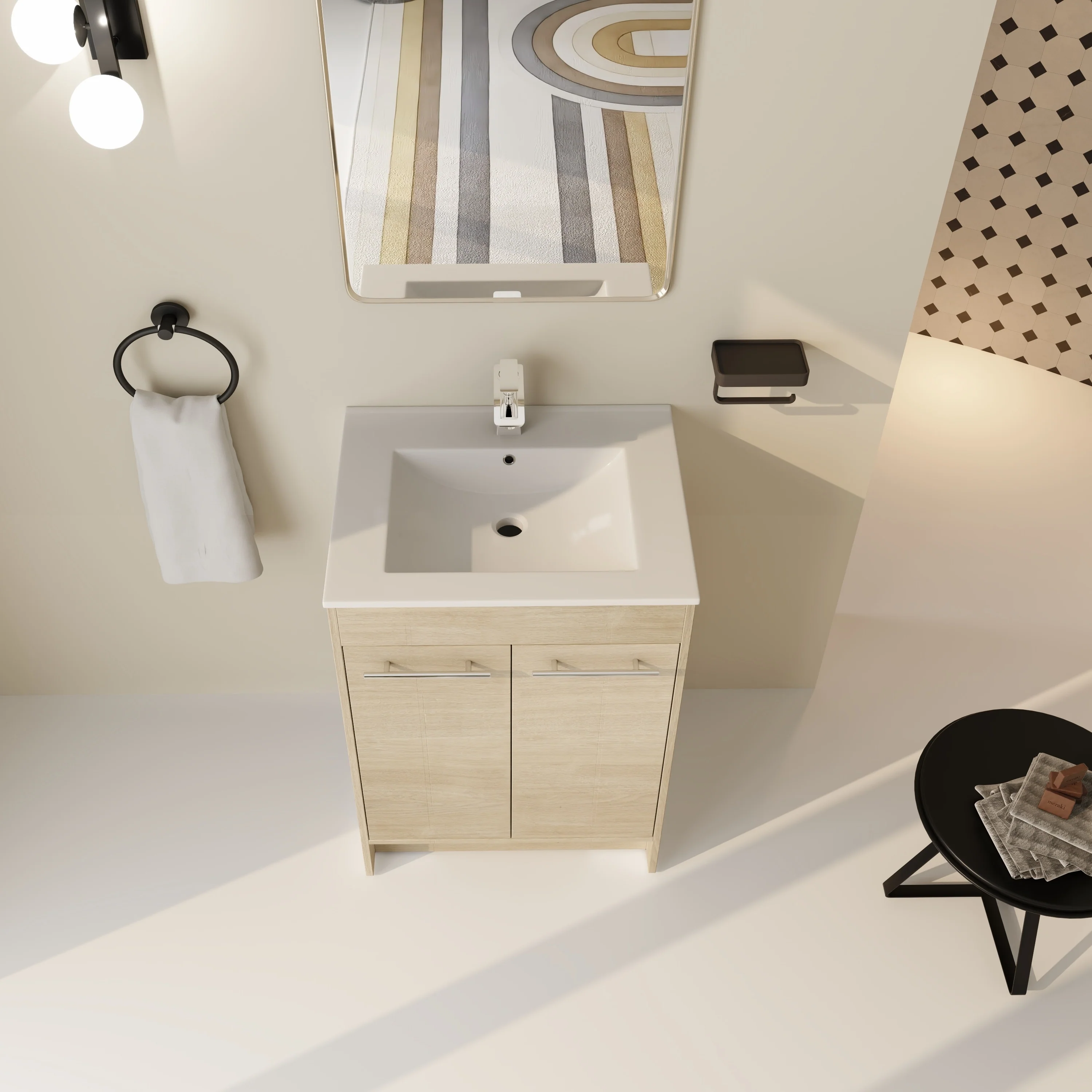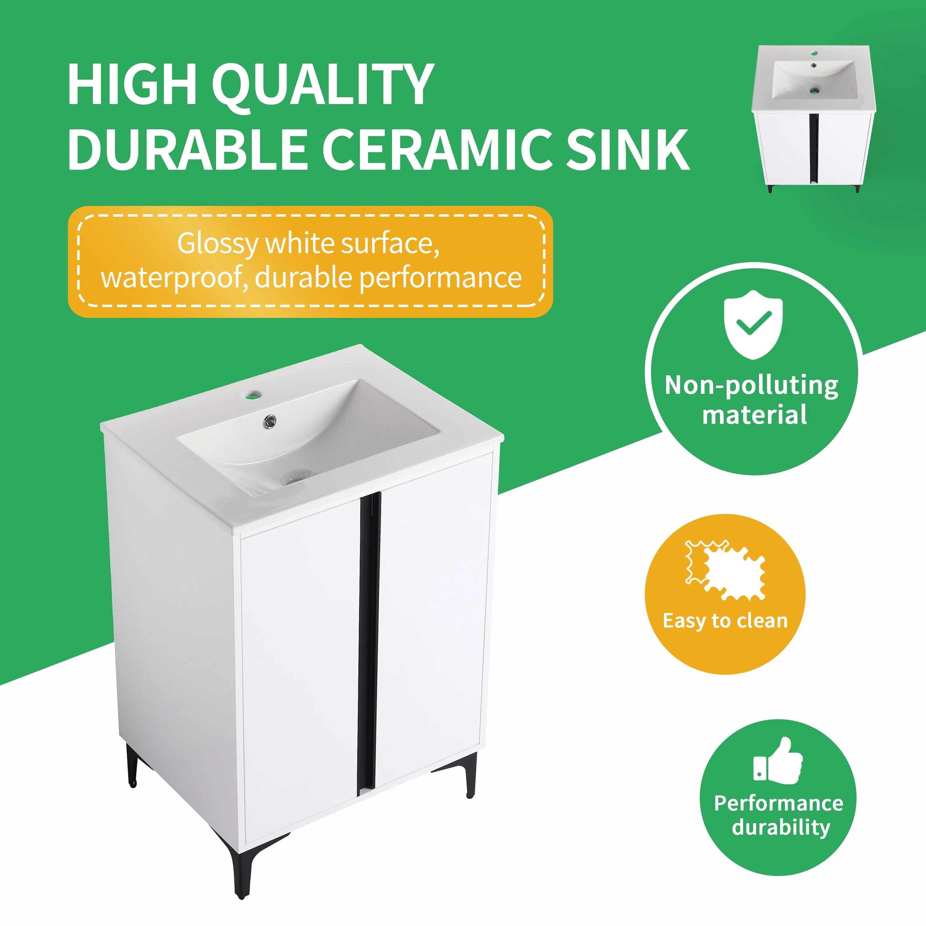 BNK 24/30/36 inch Freestanding Single Sink Bathroom Vanity with Soft Close Door and 1 Adjustable Shelf
