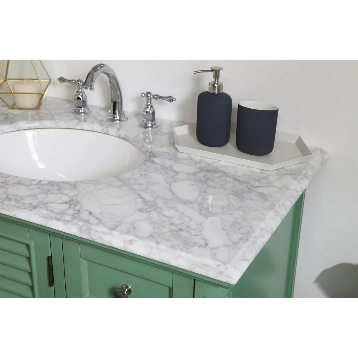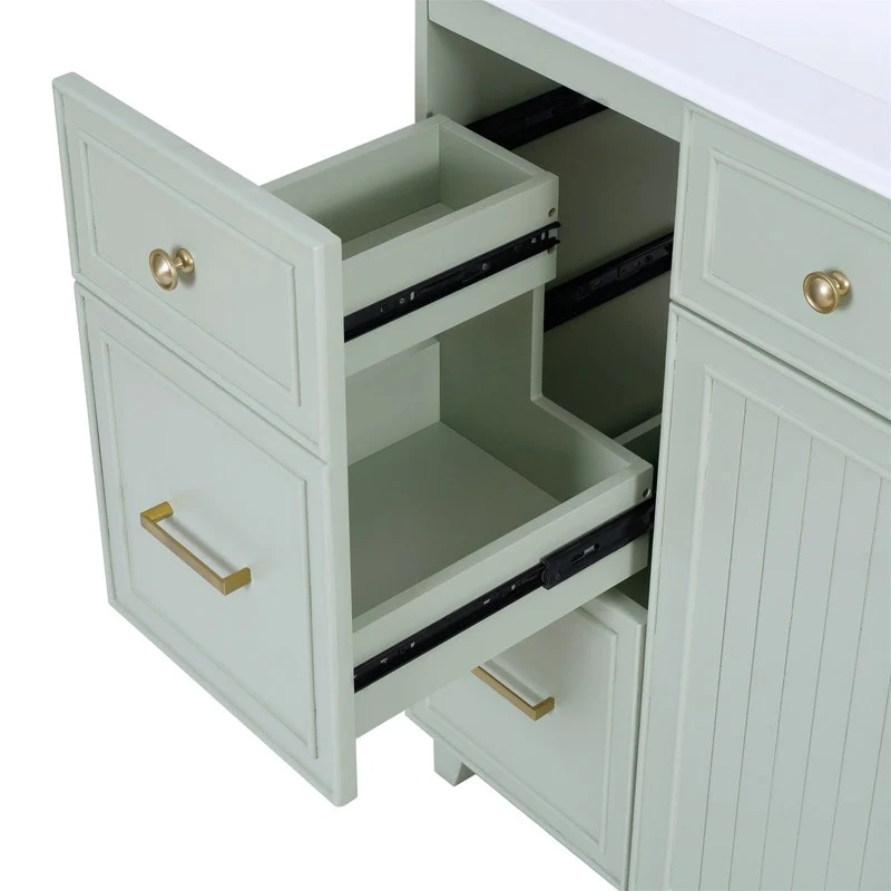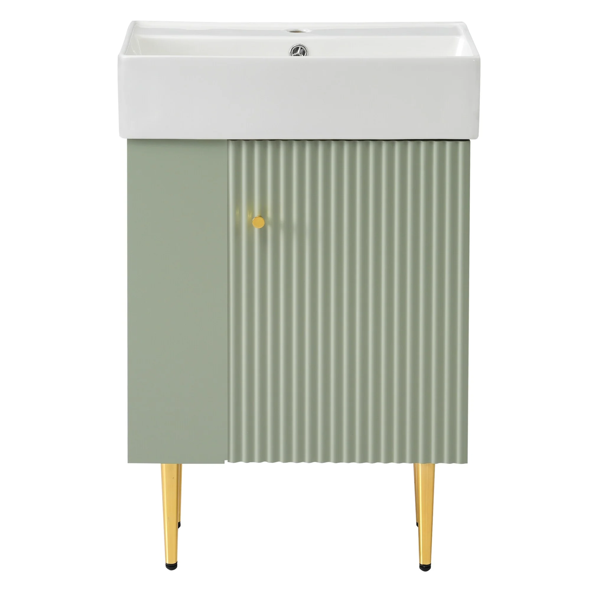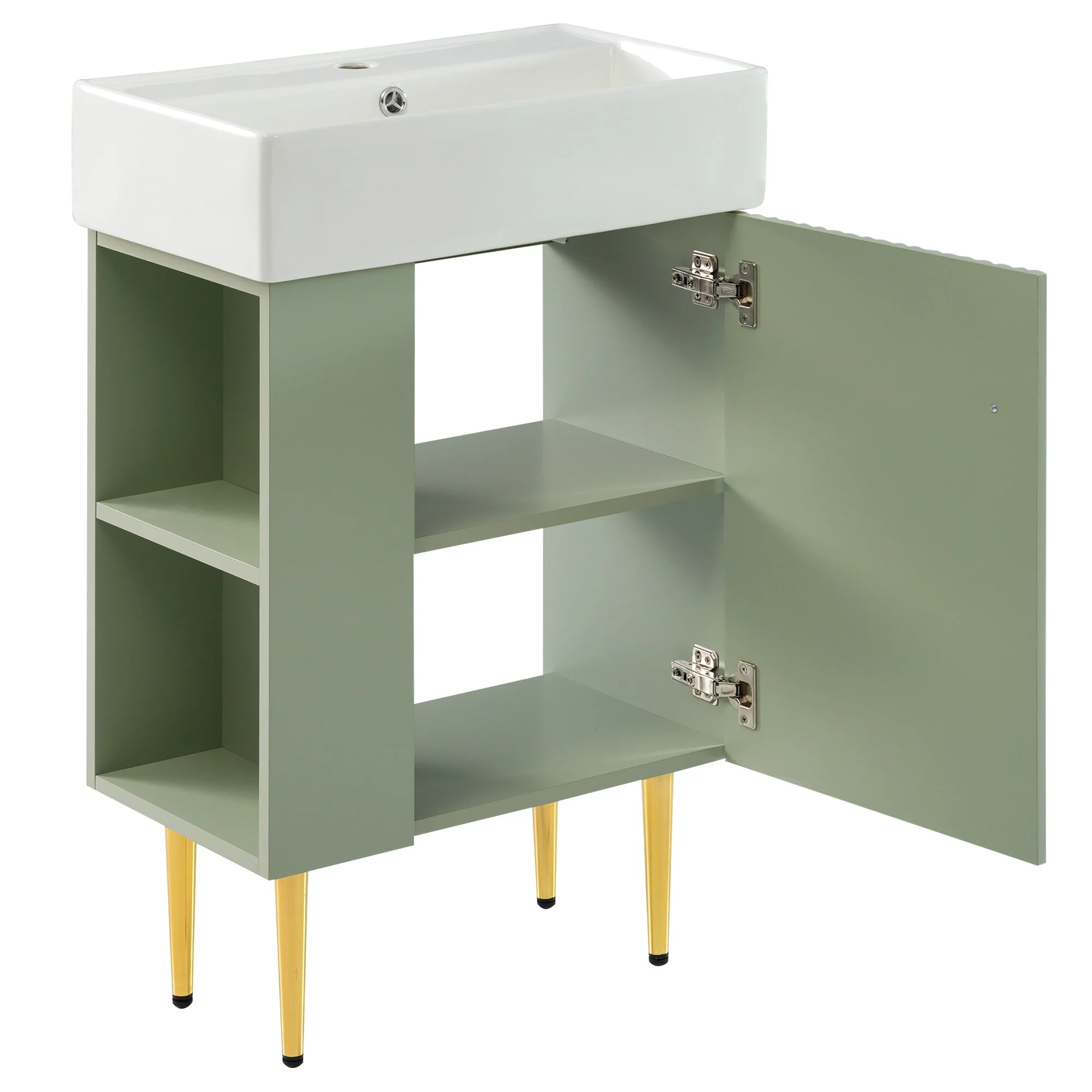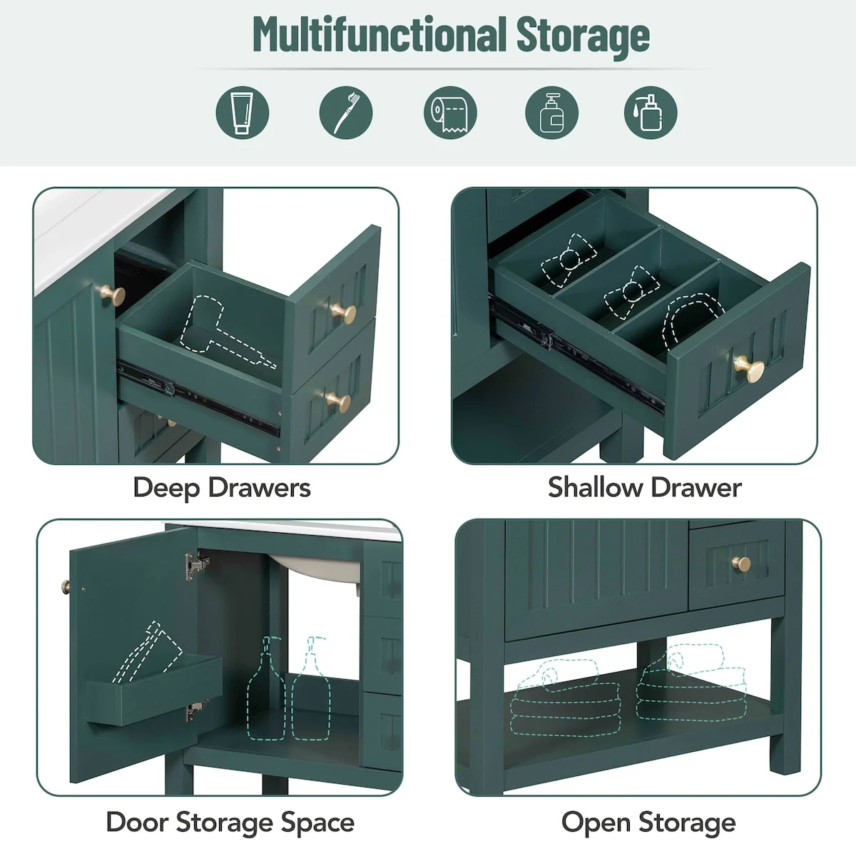 30-inch Bathroom Vanity with Ceramic Sink, Modern Green Single Bathroom Cabinet with 2 Doors and a Shelf, Soft Close Doors