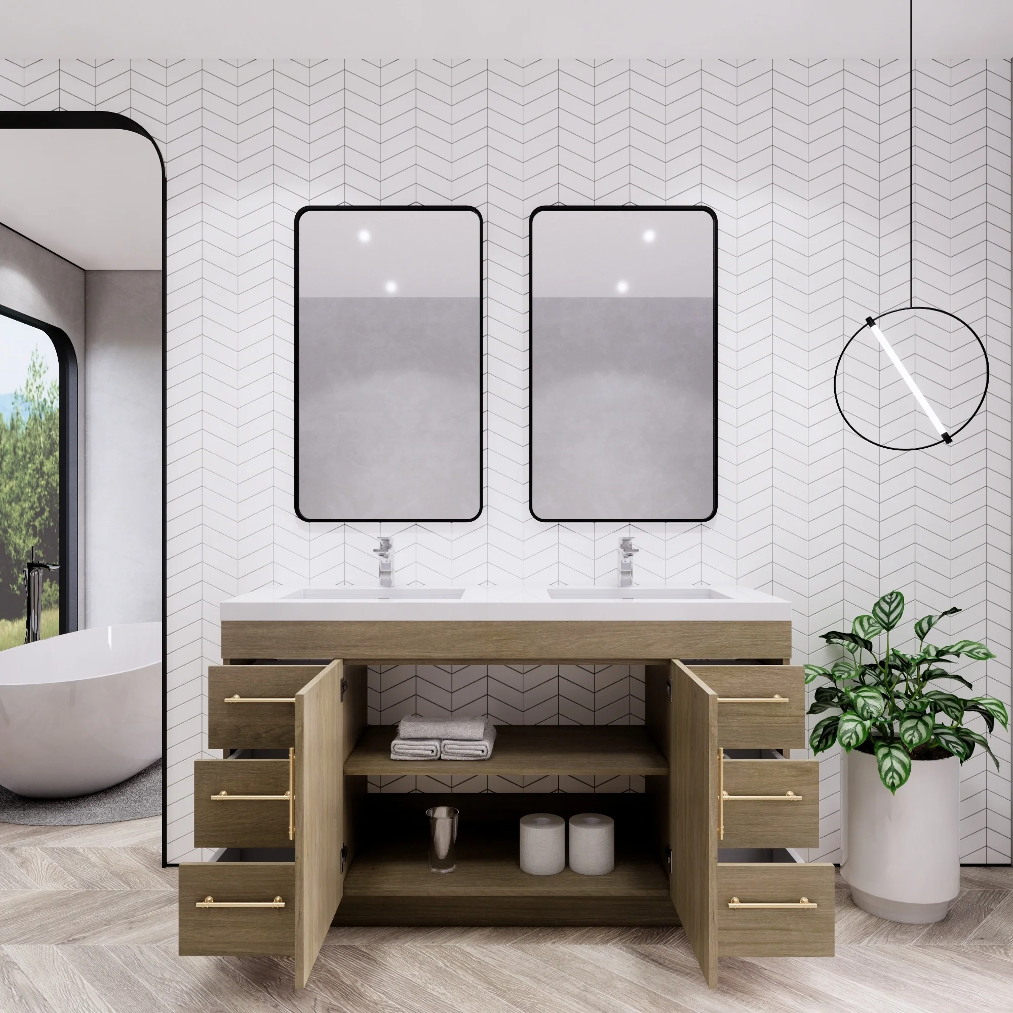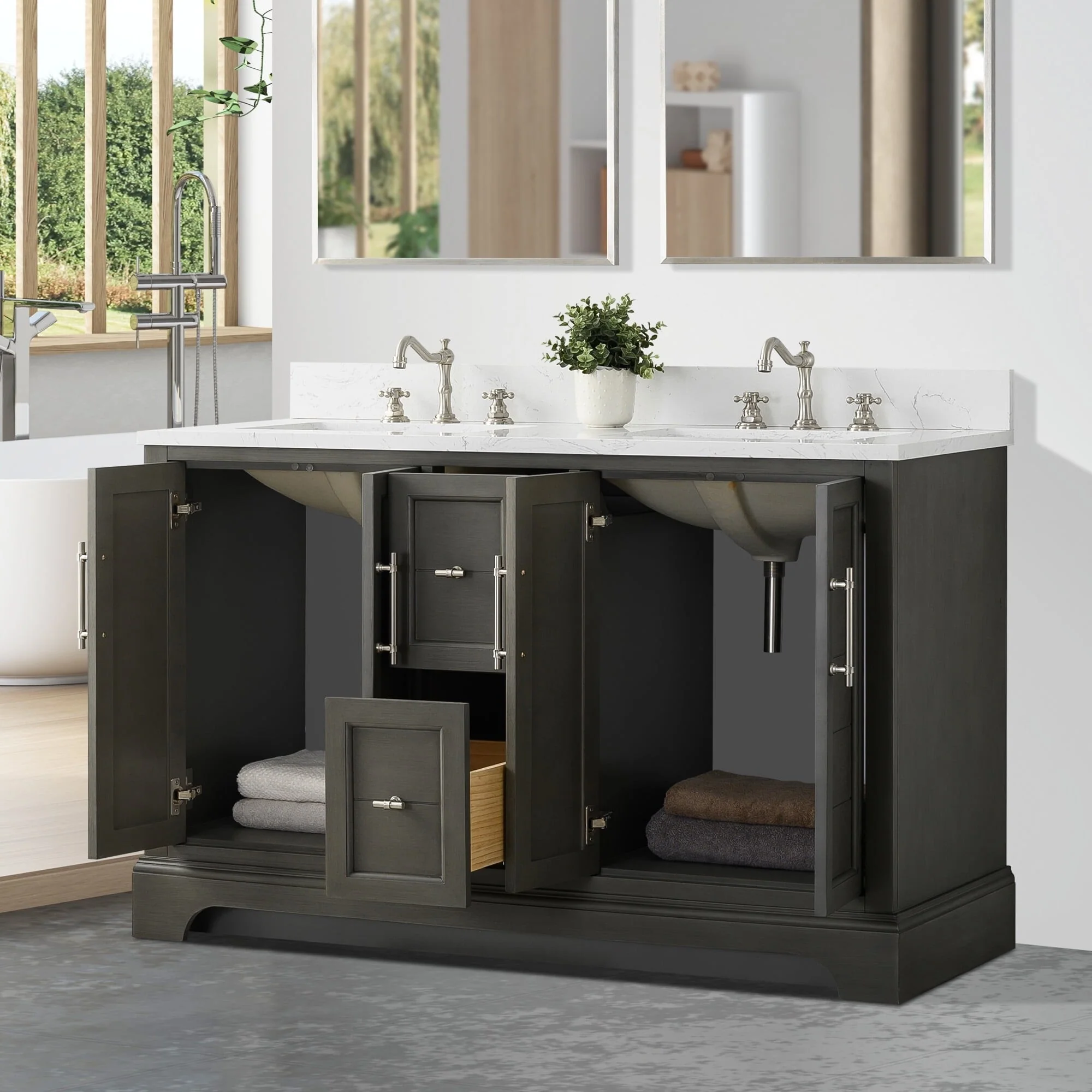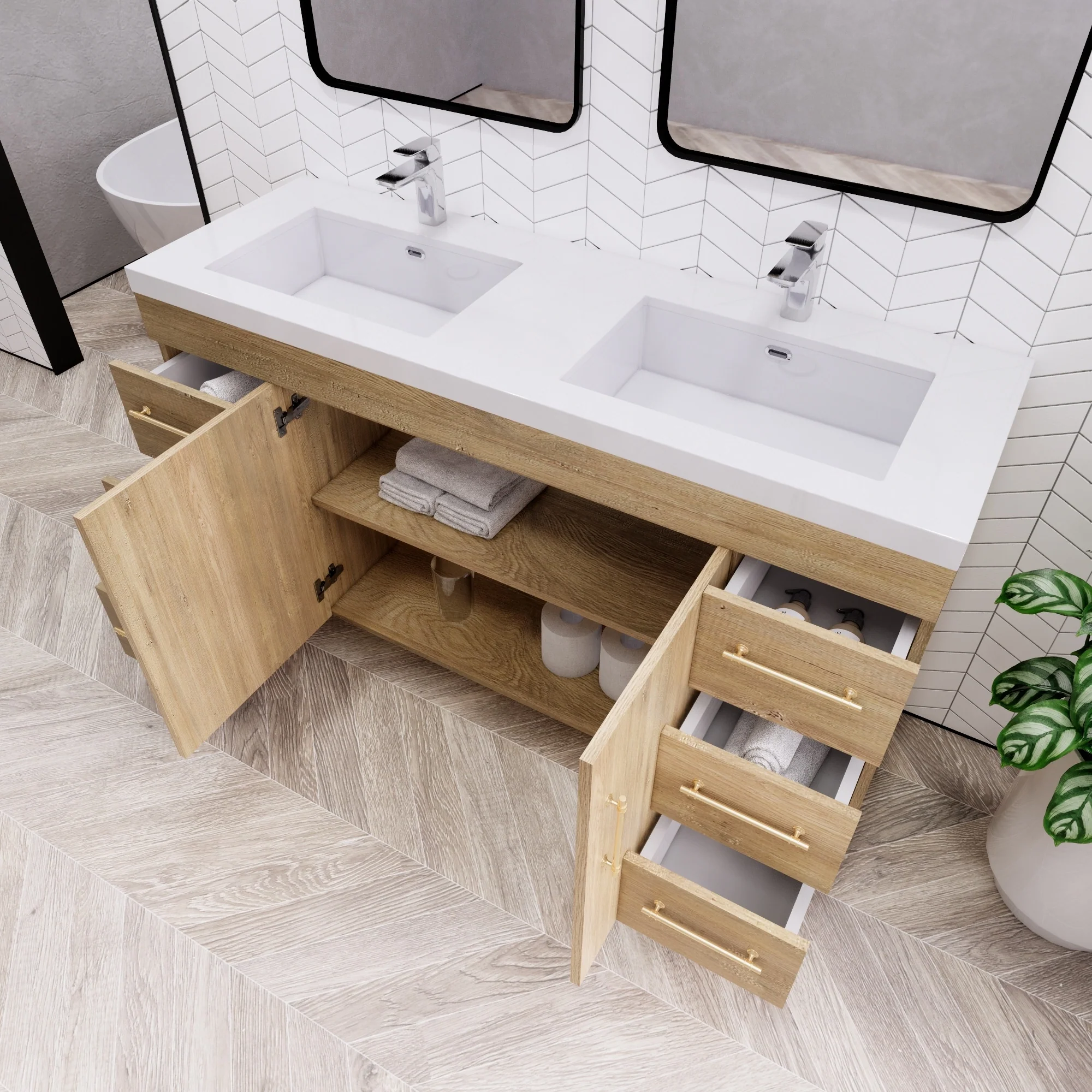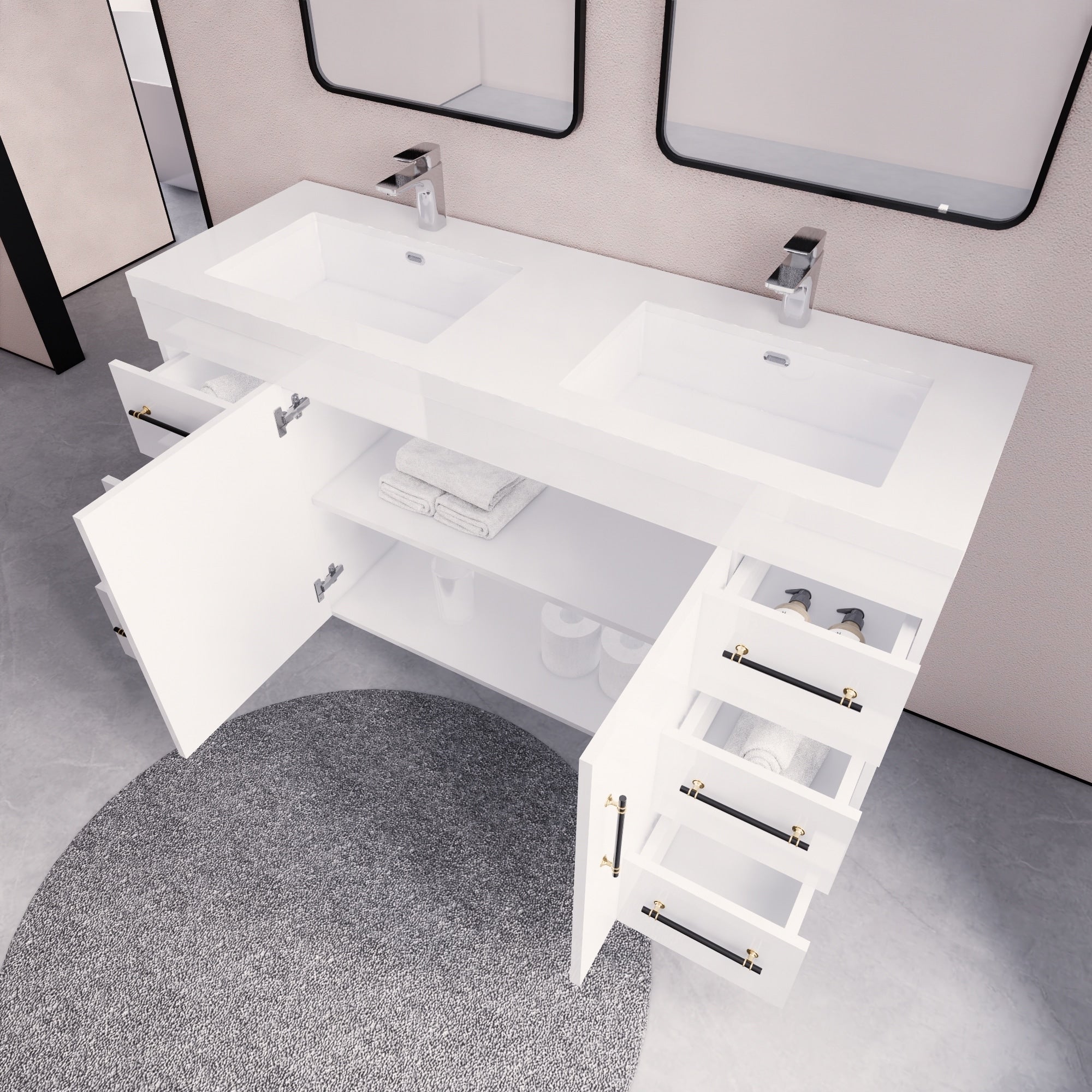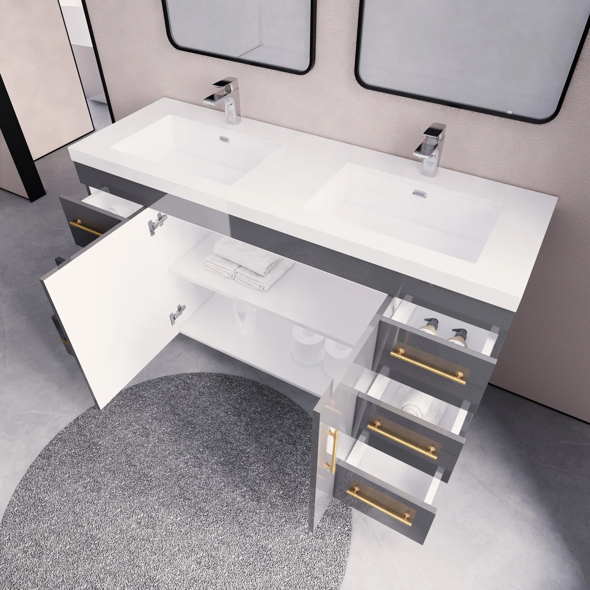 Stufurhome 60 inch Amelia Double Sink Bathroom Vanity