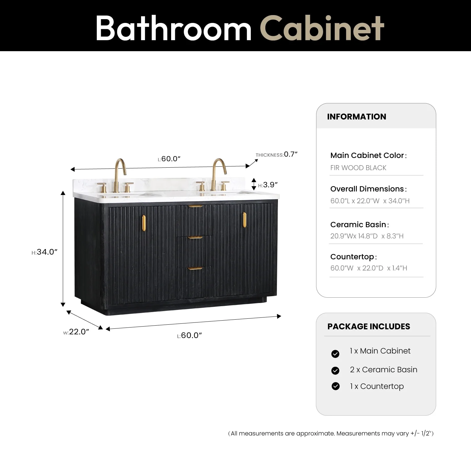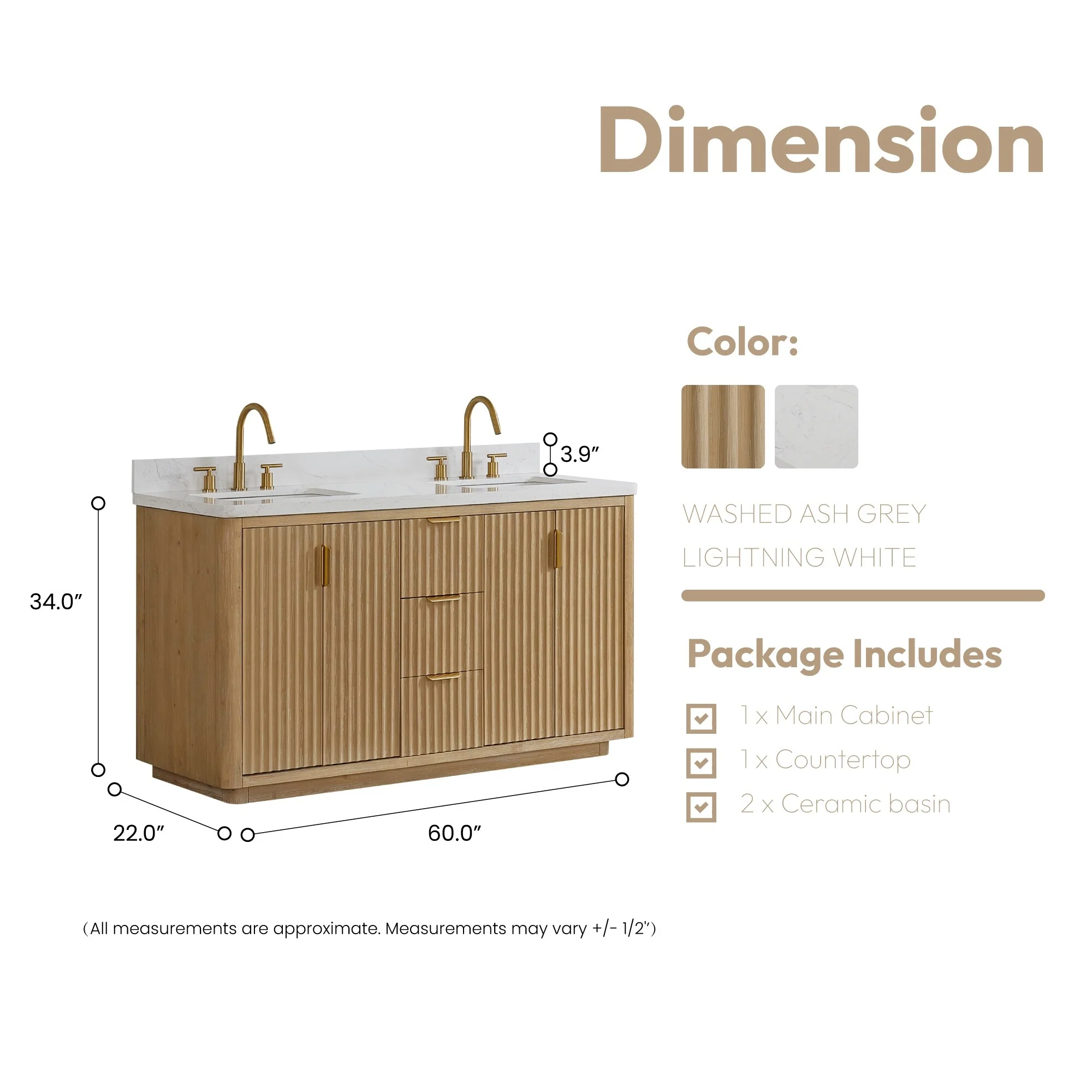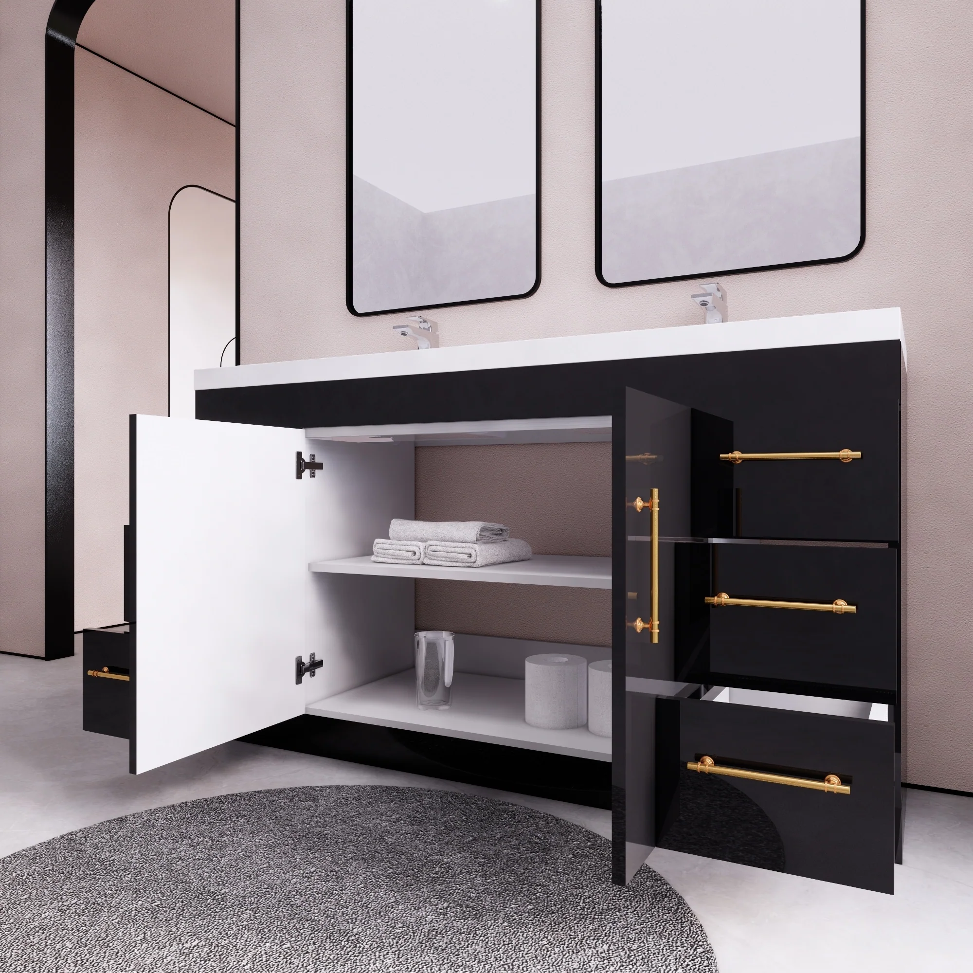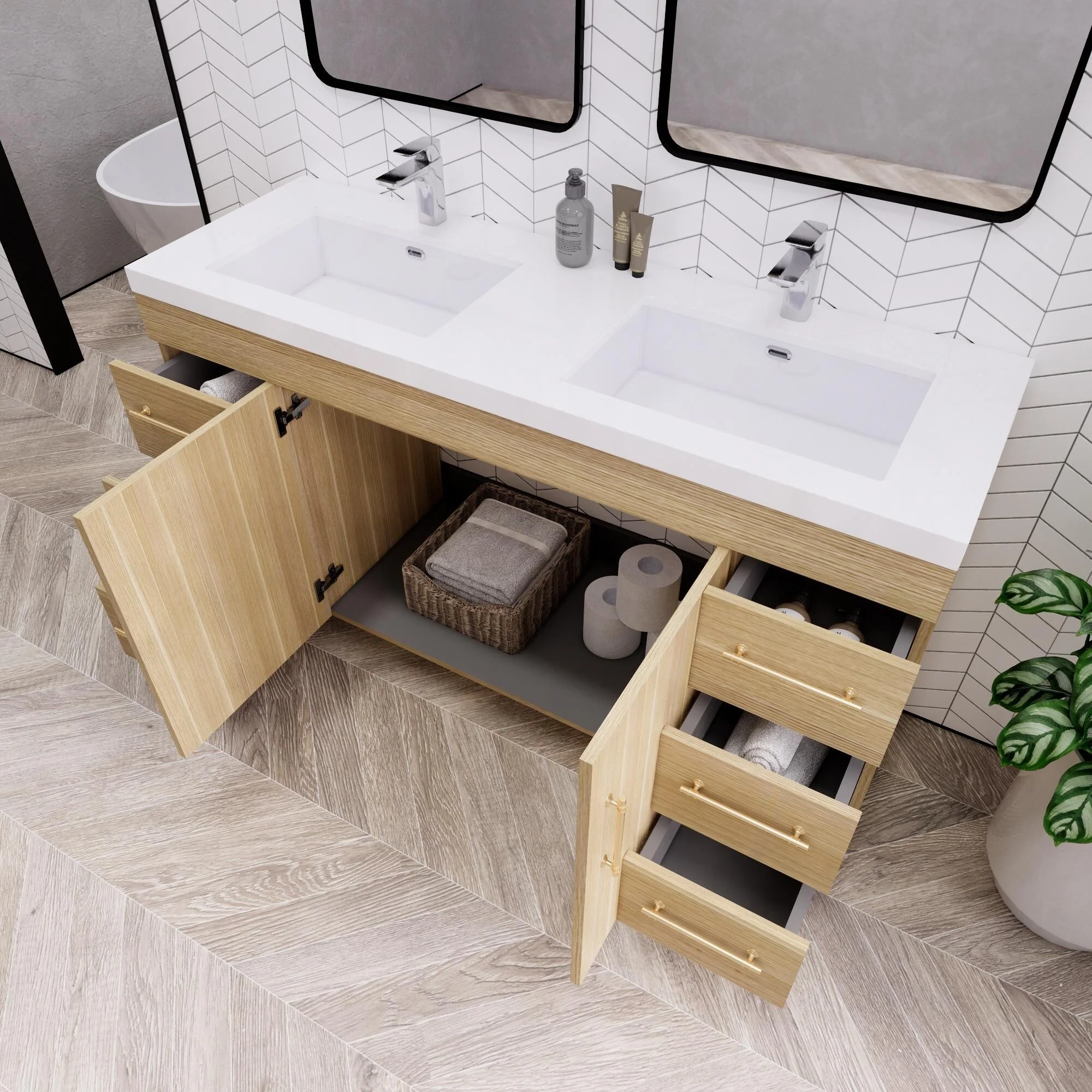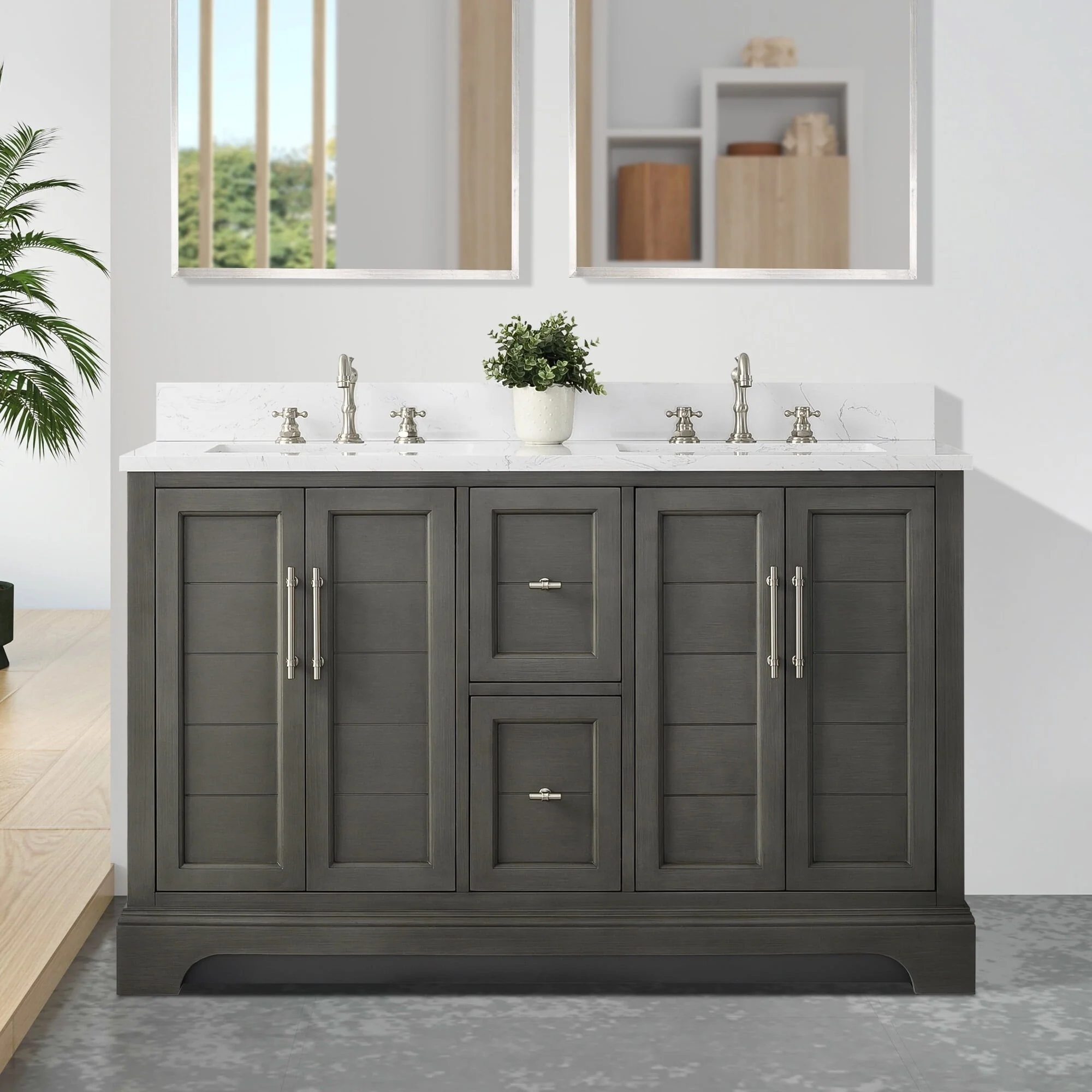 Stufurhome 60 inch Amelia Double Sink Bathroom Vanity
