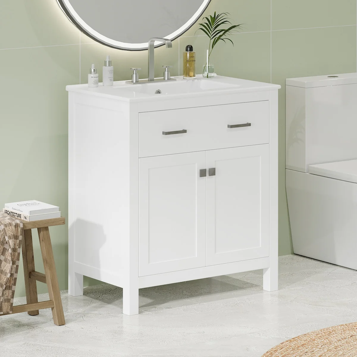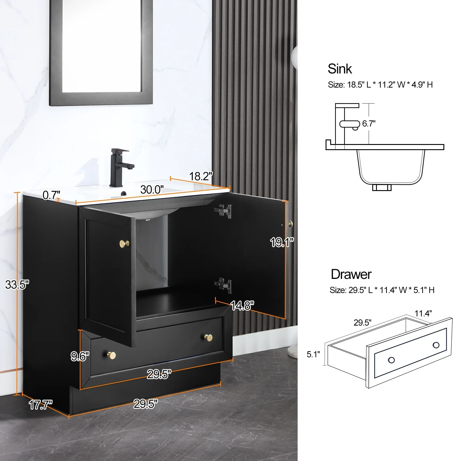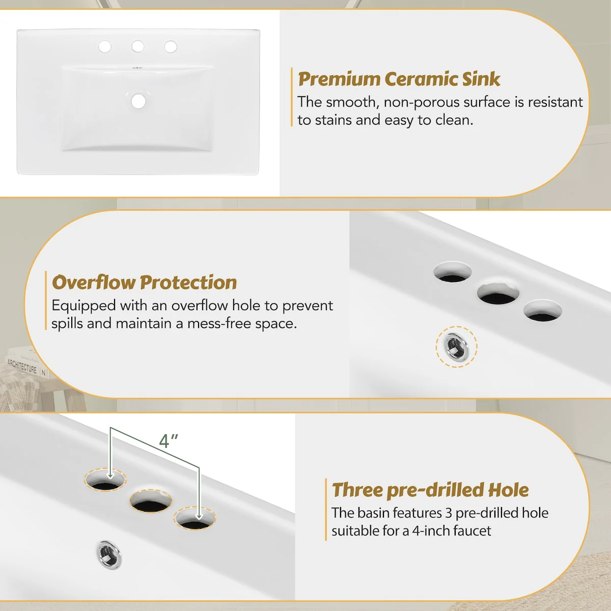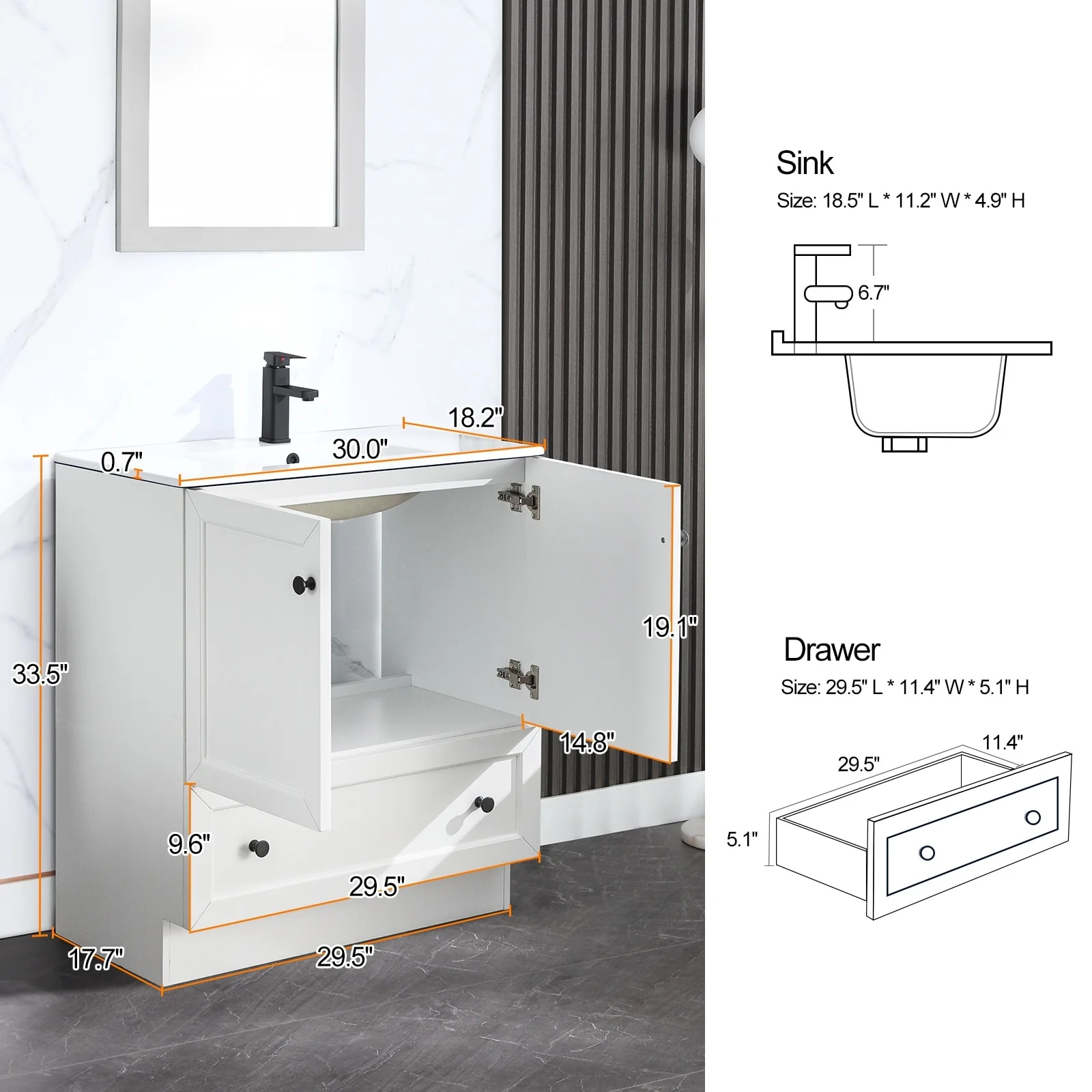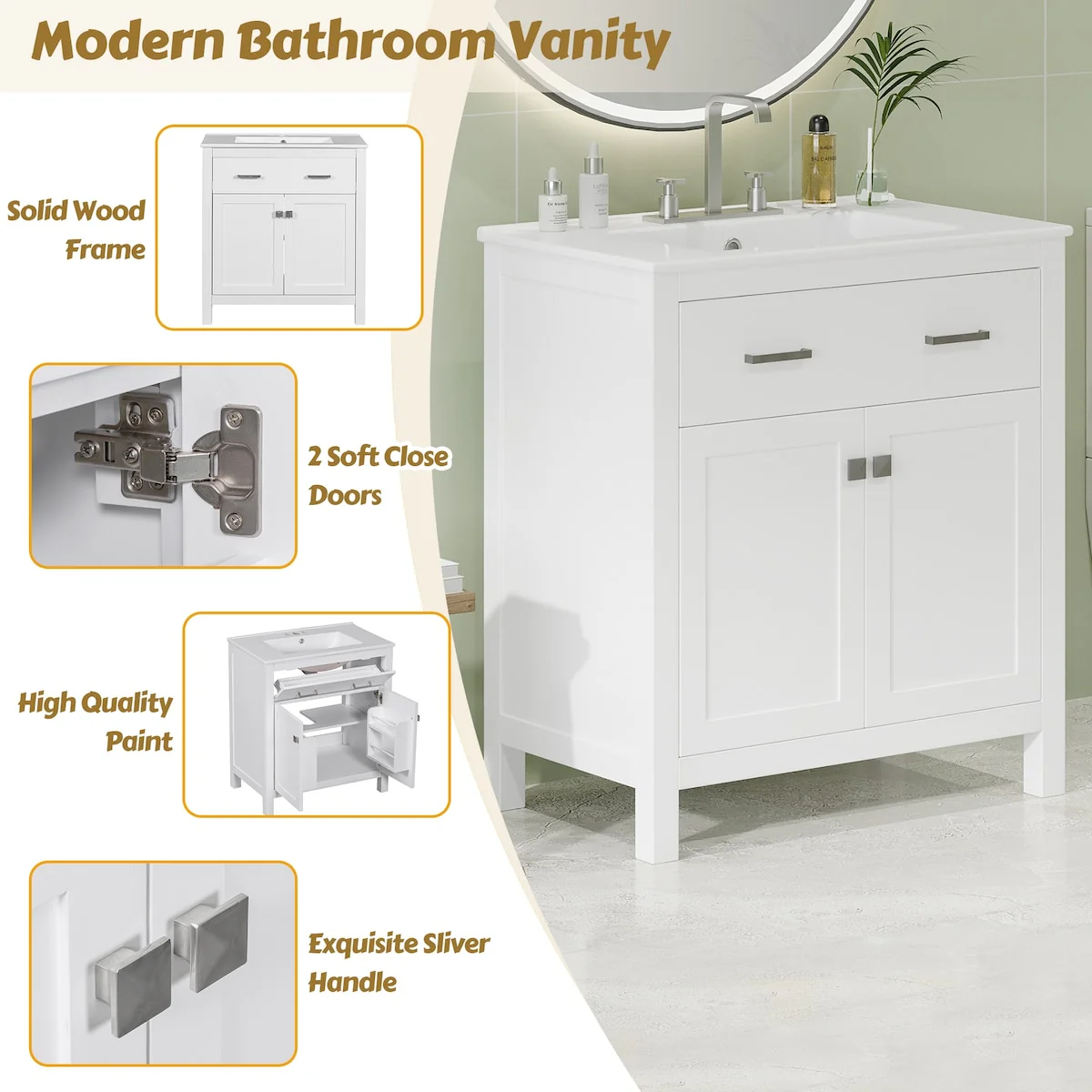 30inch Transitional Style Bathroom Vanity Cabinet Combo with Ceramic Sink