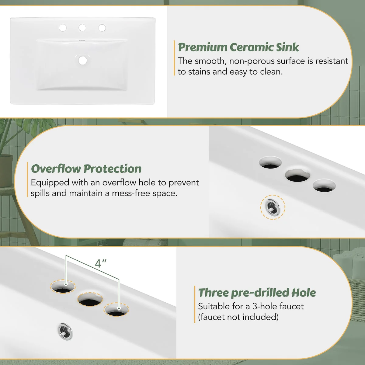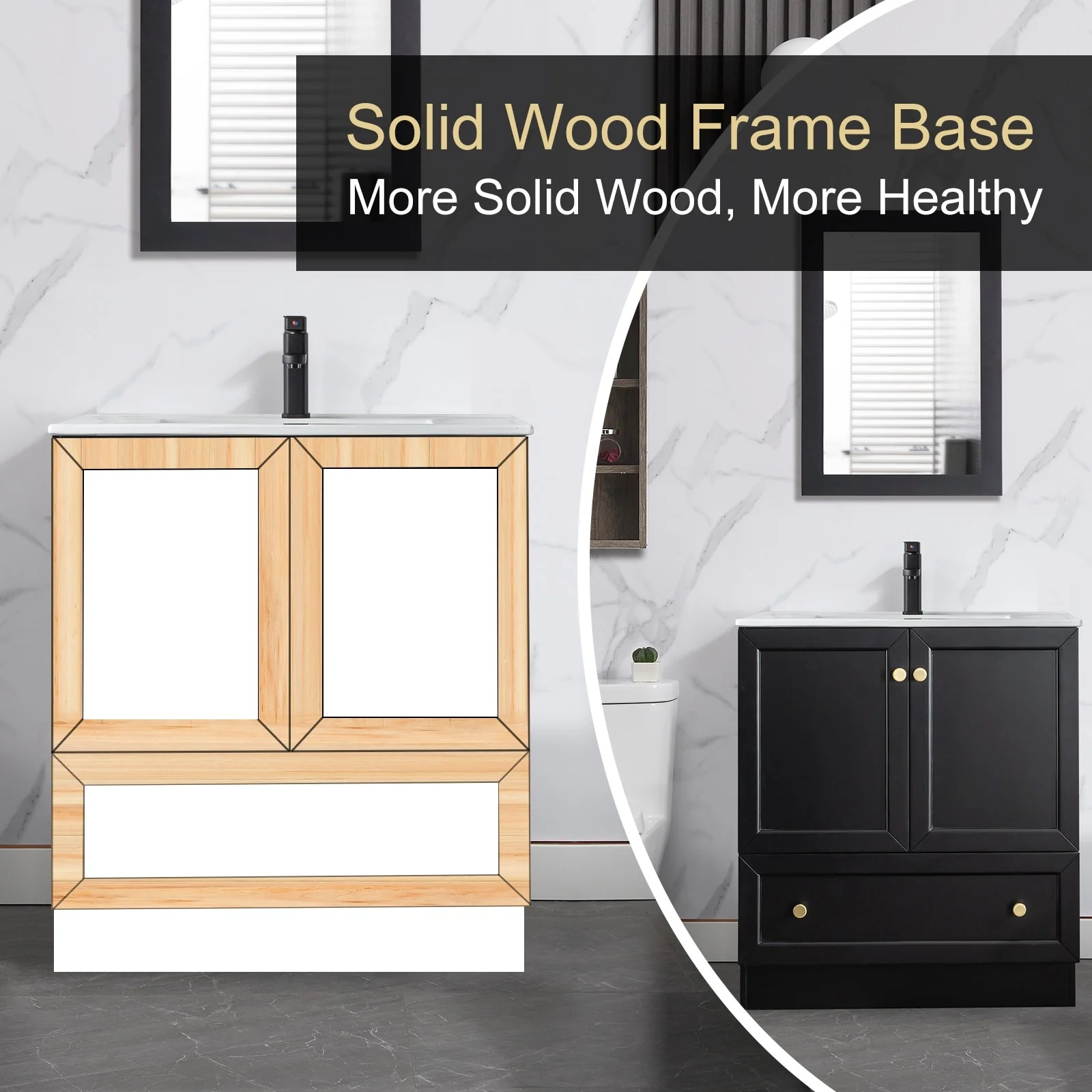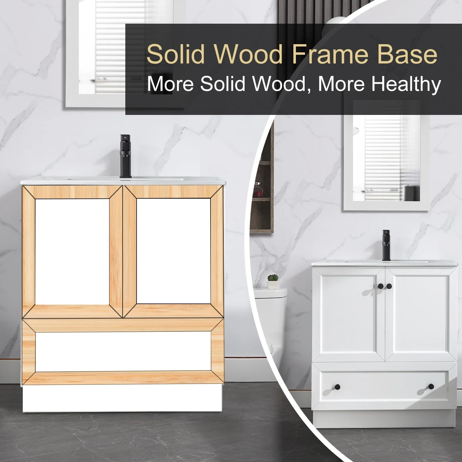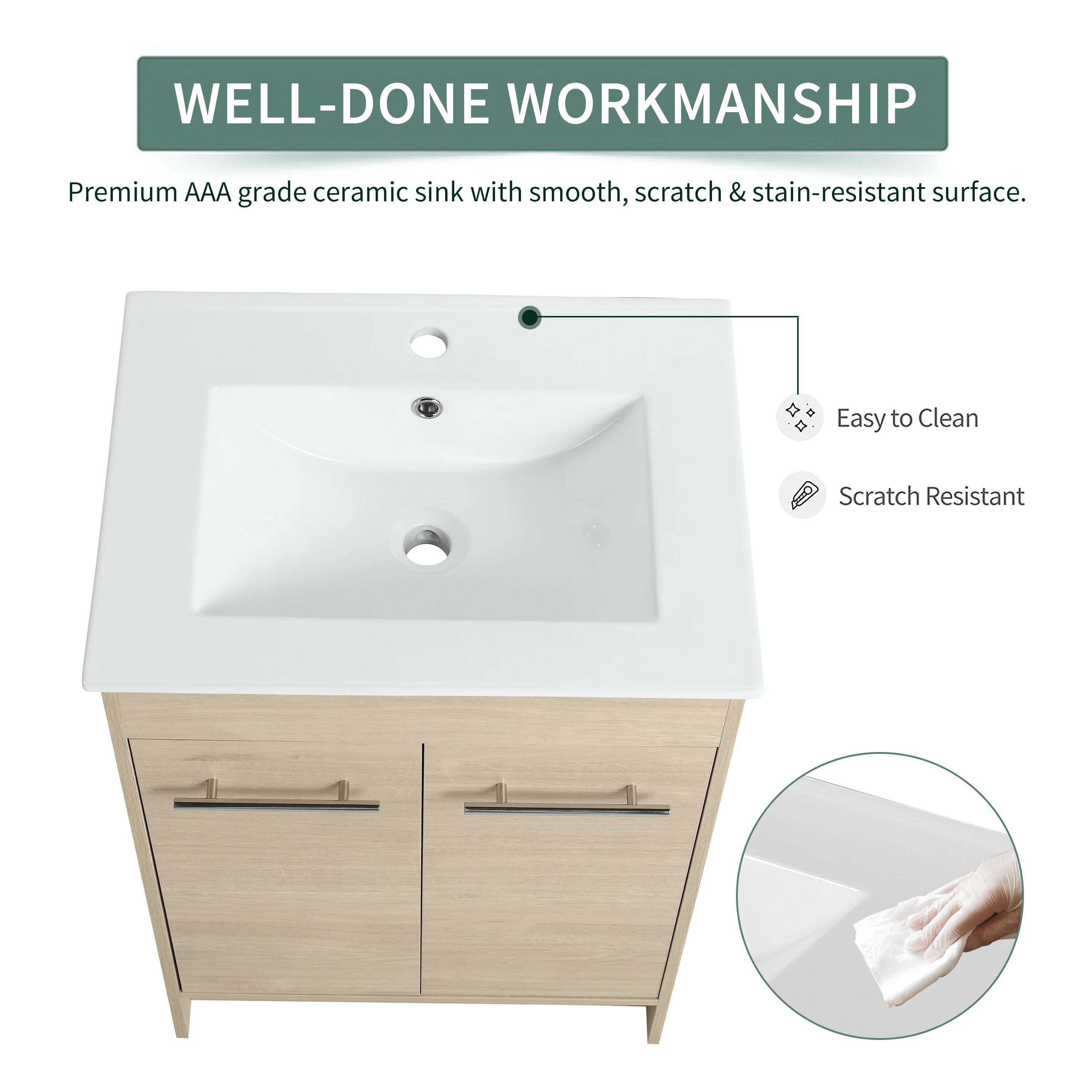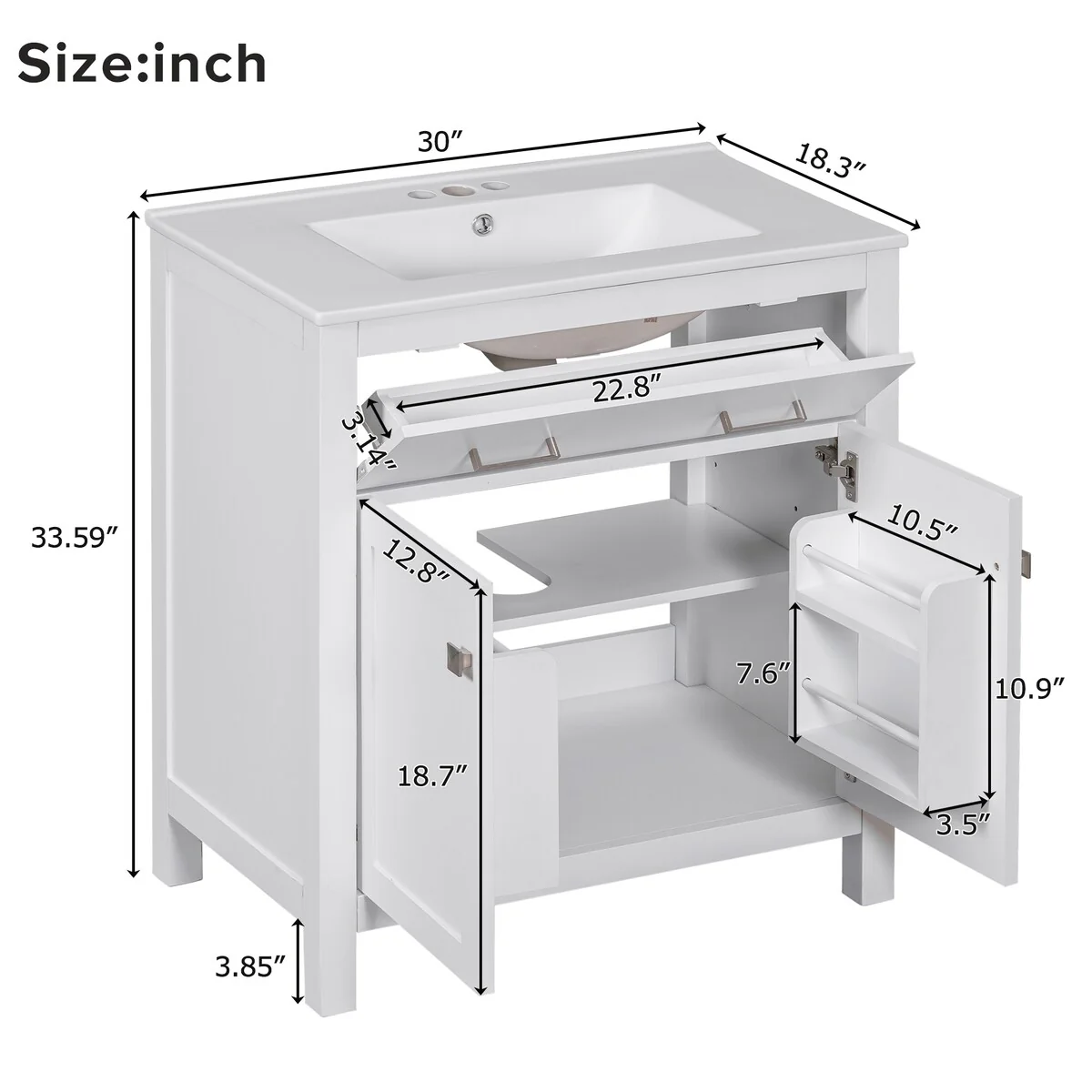 30inch Transitional Style Bathroom Vanity Cabinet Combo with Ceramic Sink