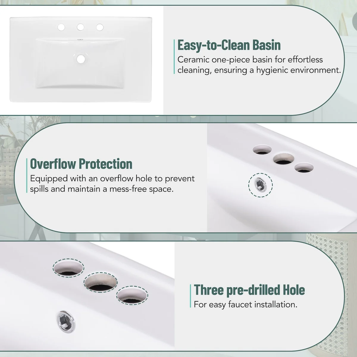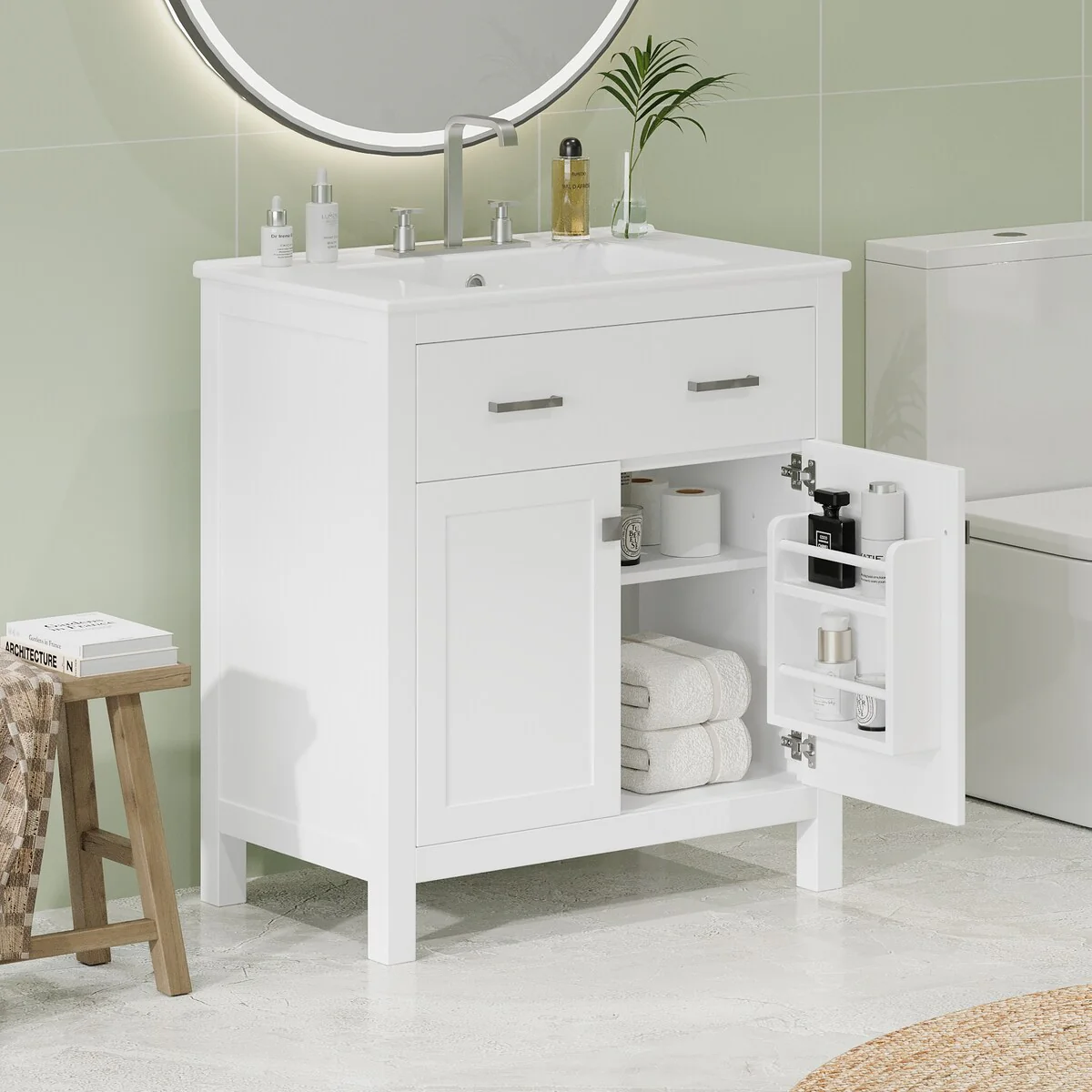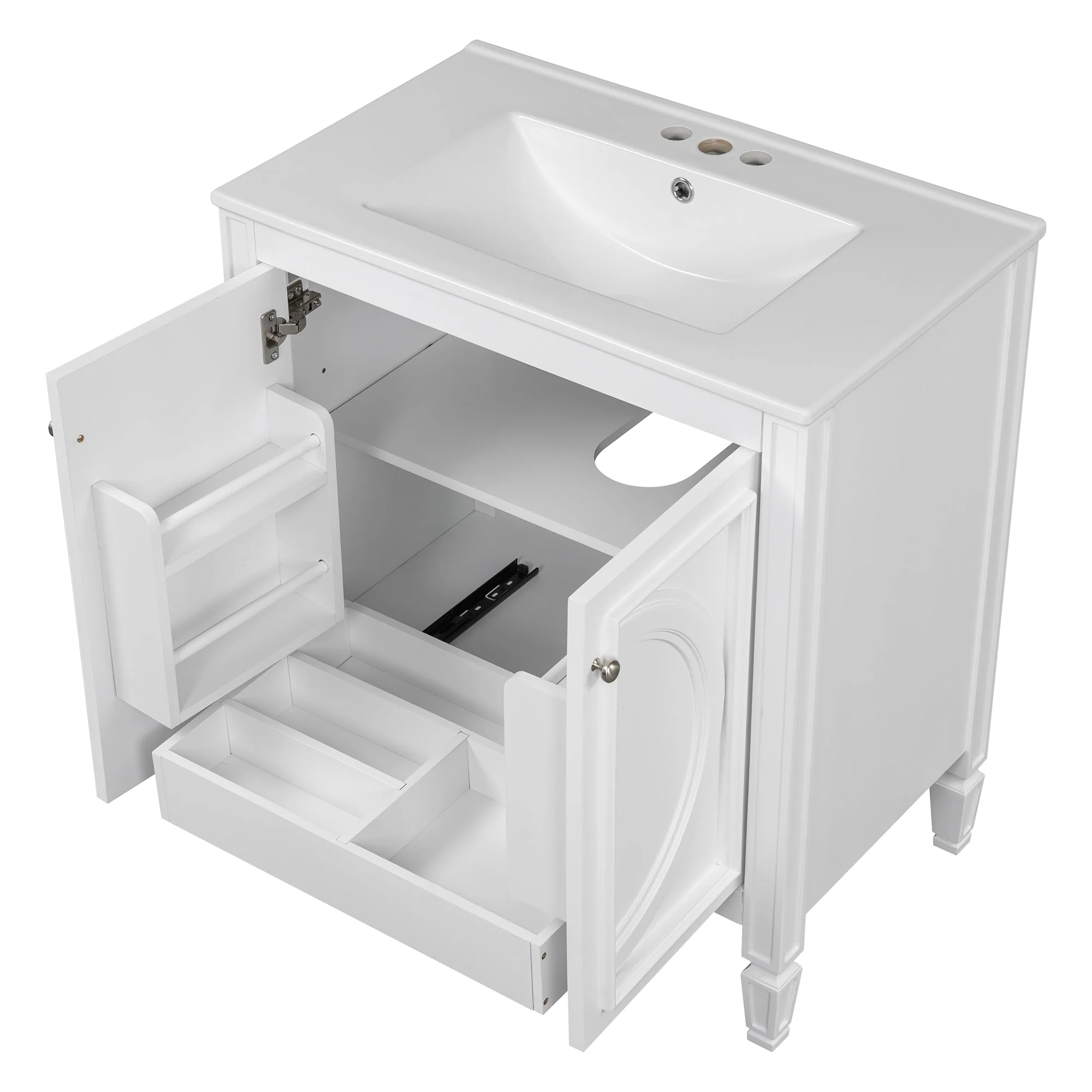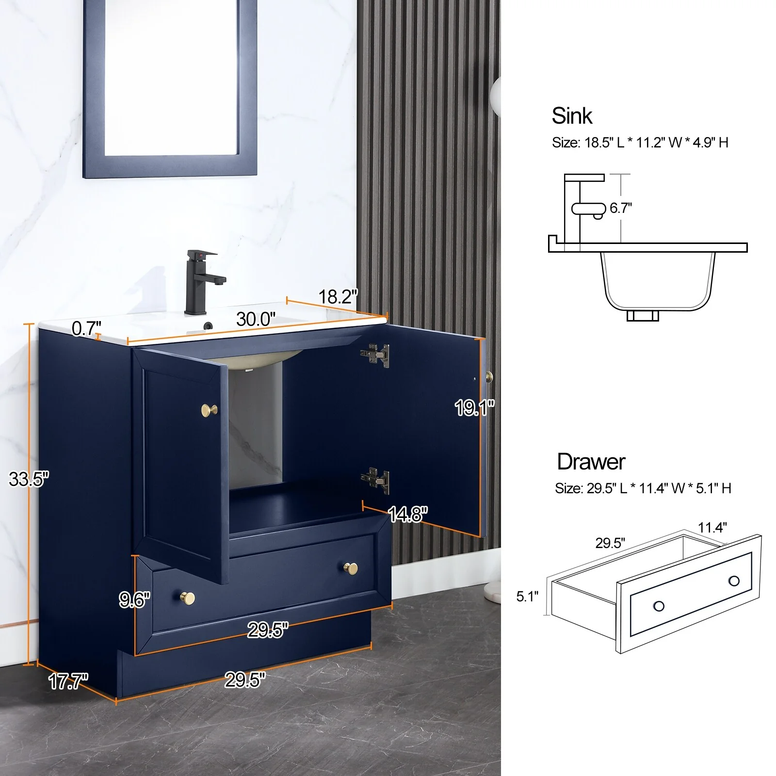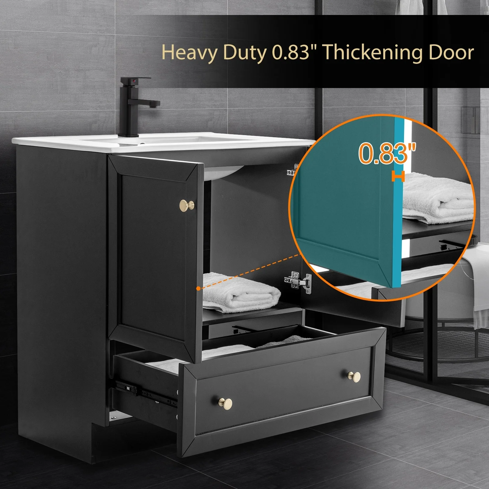 30inch Transitional Style Bathroom Vanity Cabinet Combo with Ceramic Sink