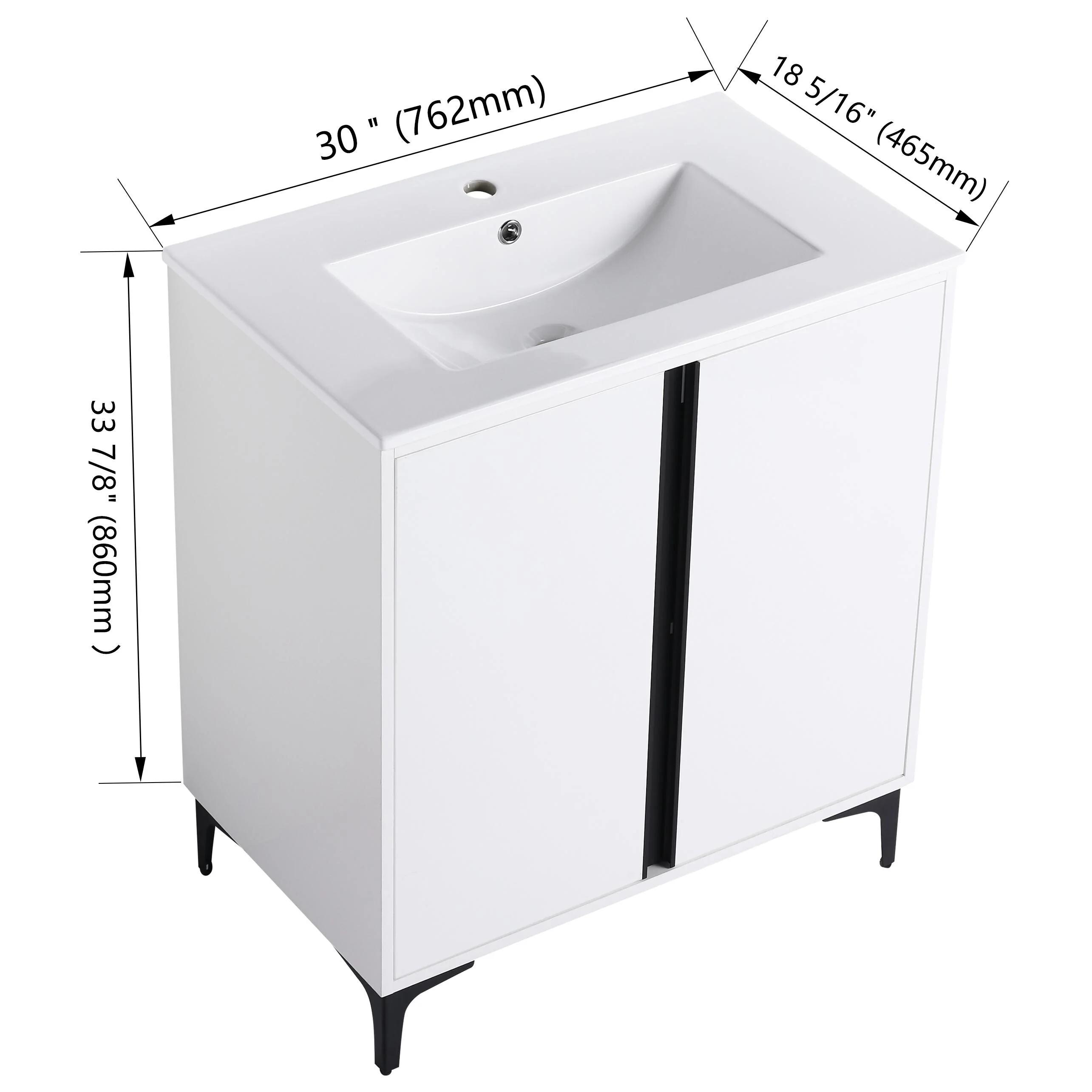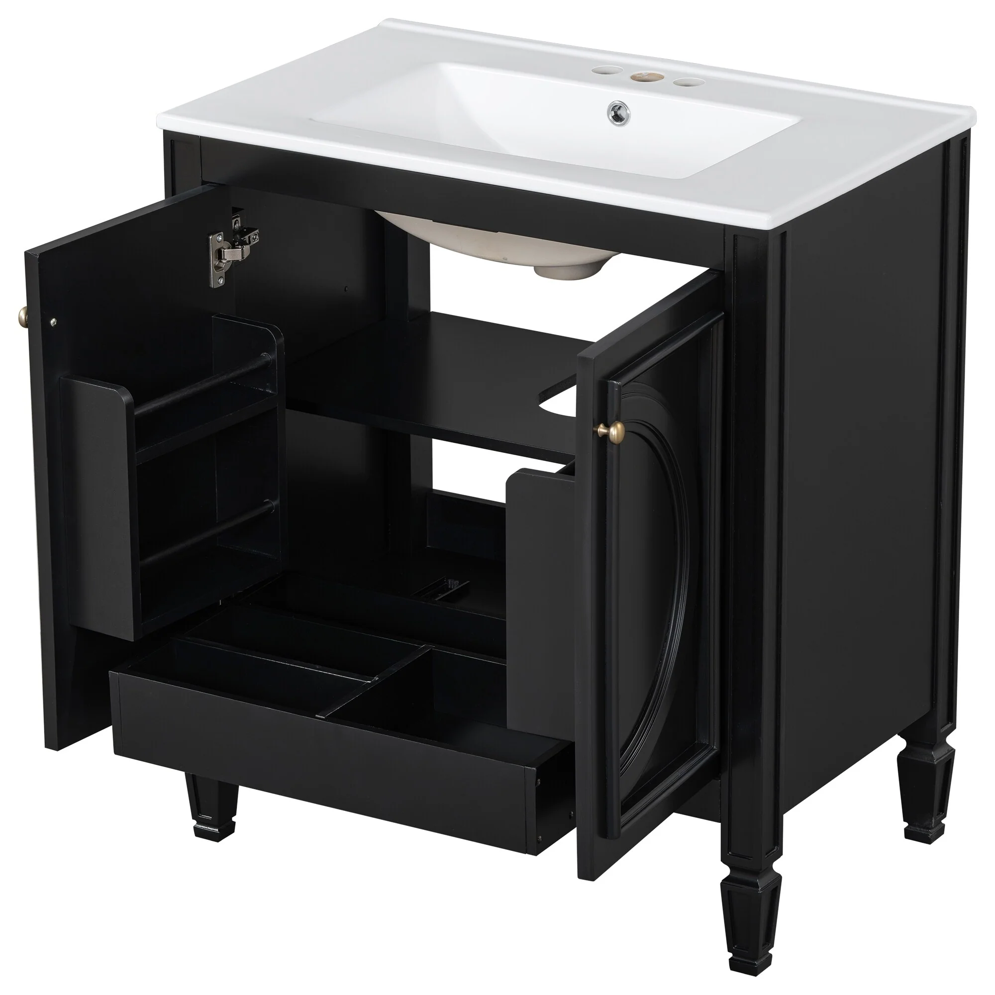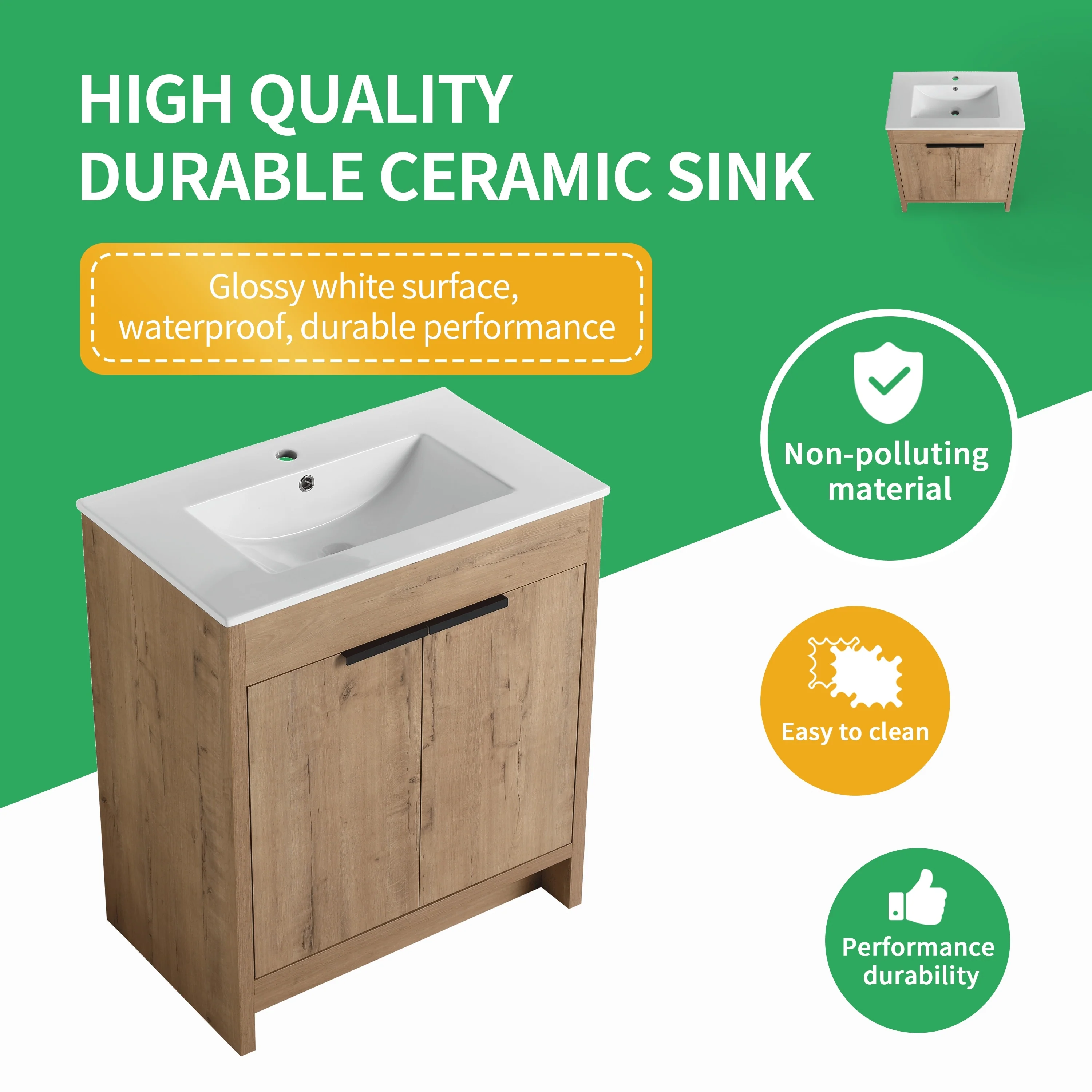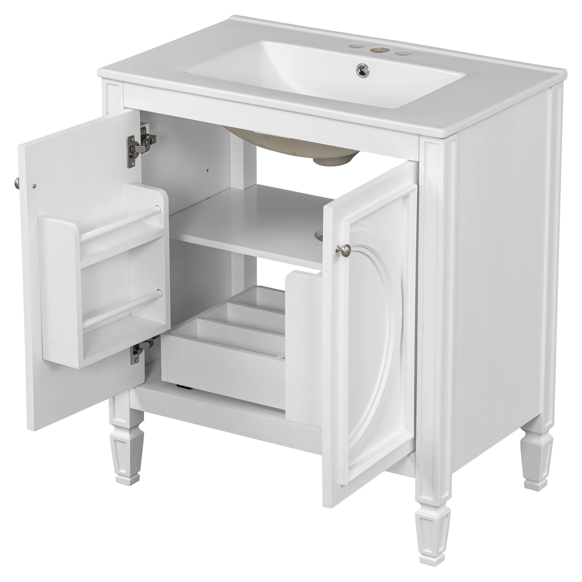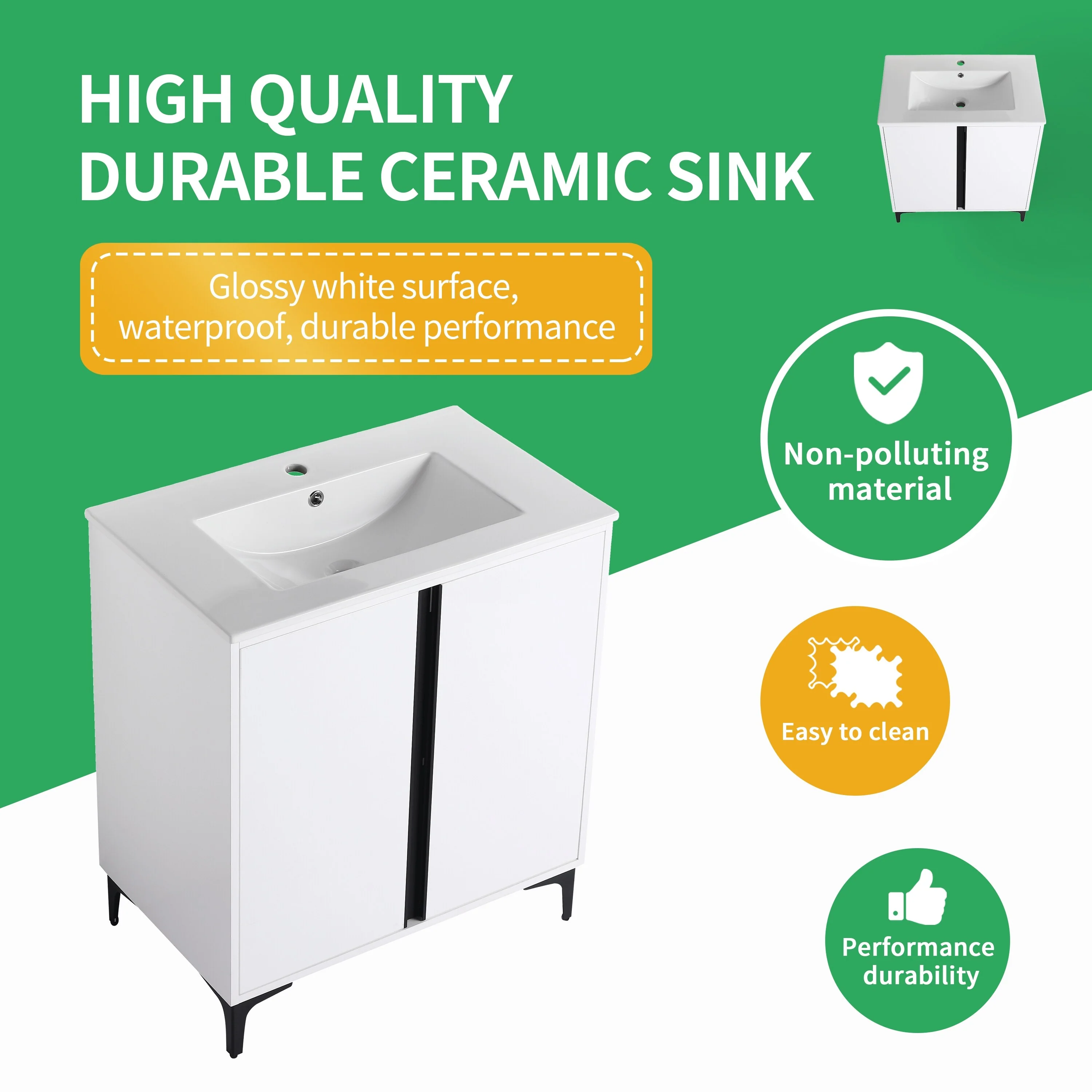 30inch Transitional Style Bathroom Vanity Cabinet Combo with Ceramic Sink