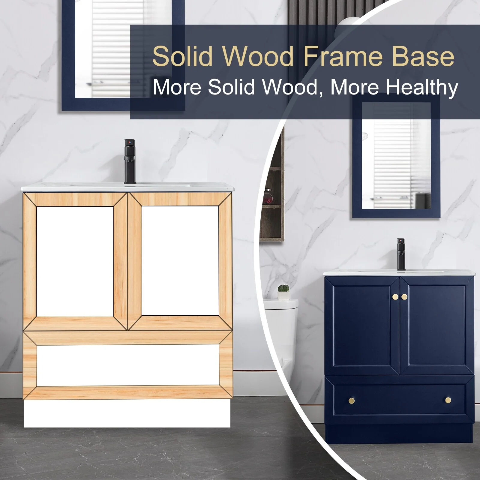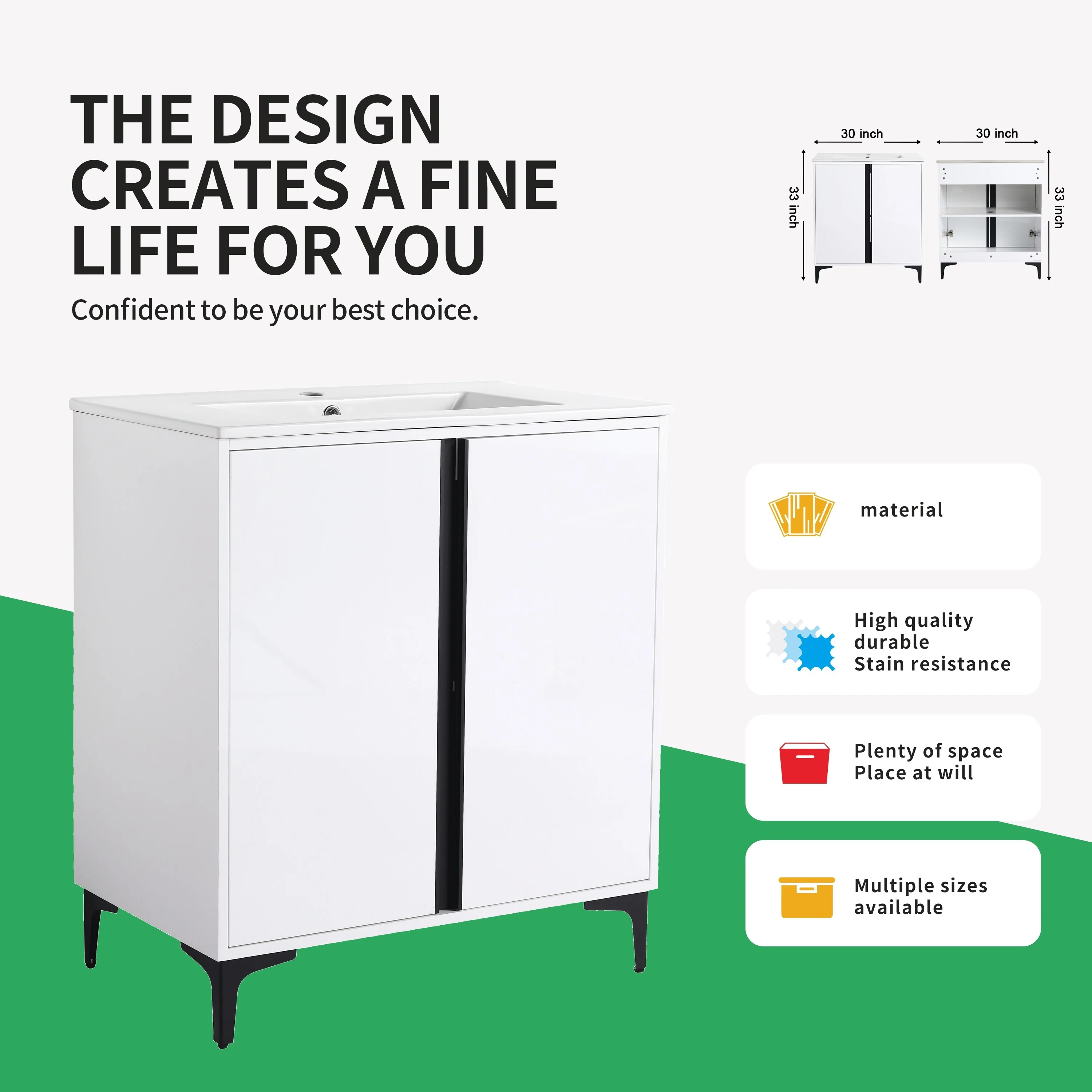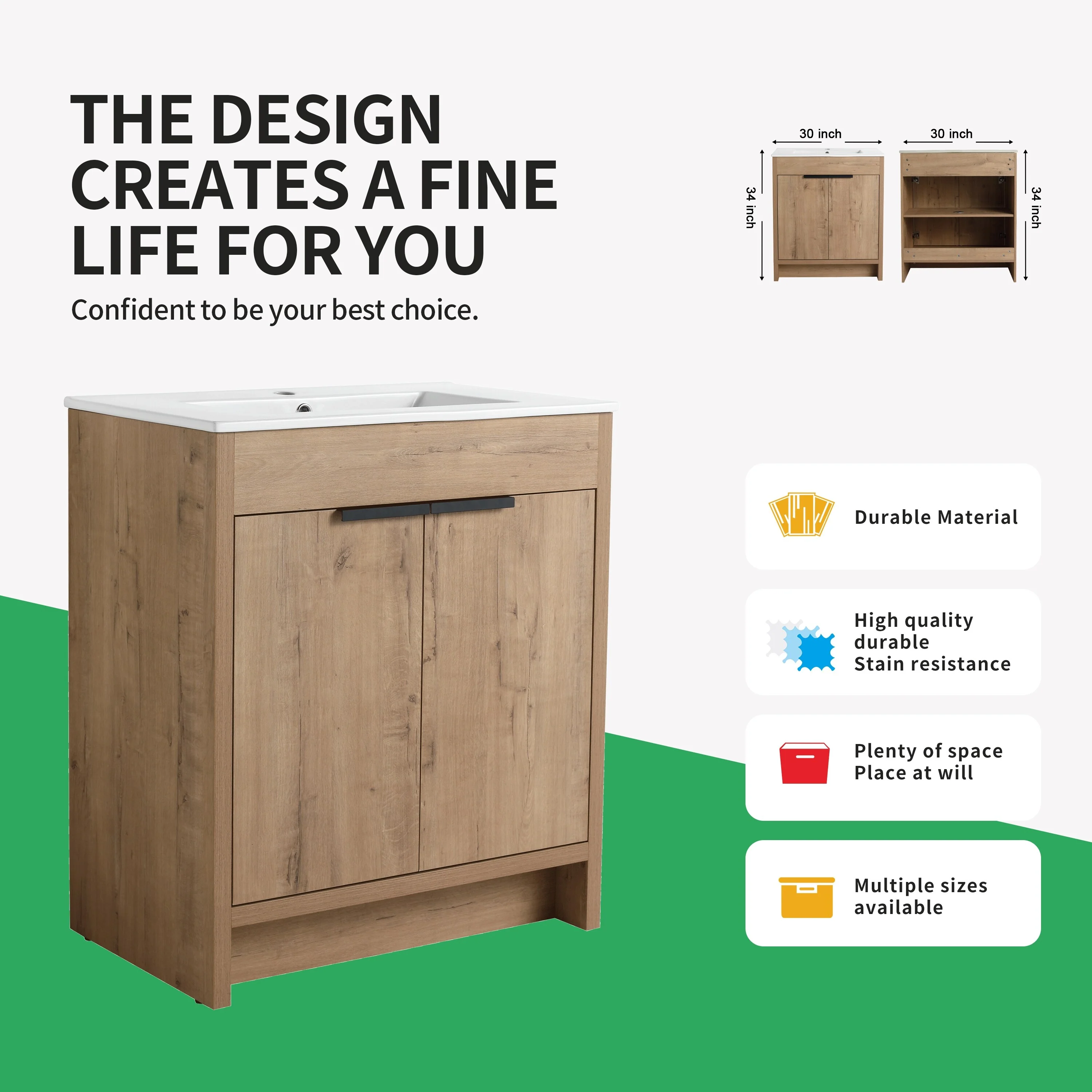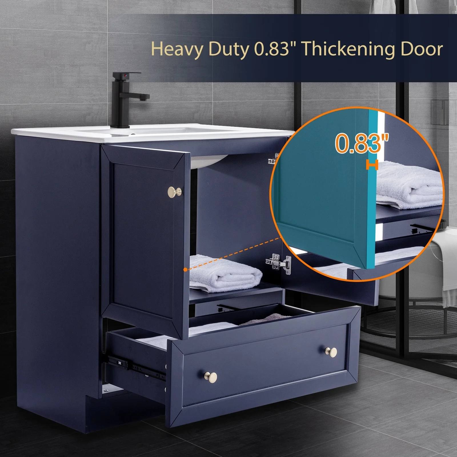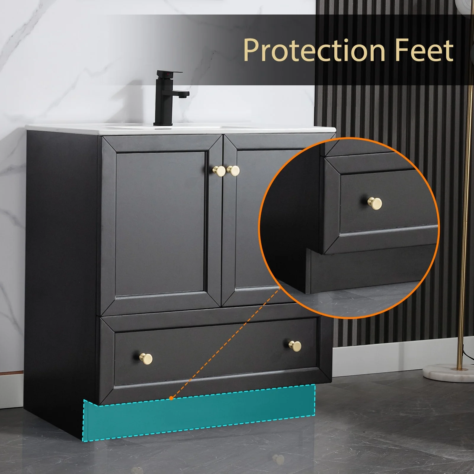 30inch Transitional Style Bathroom Vanity Cabinet Combo with Ceramic Sink